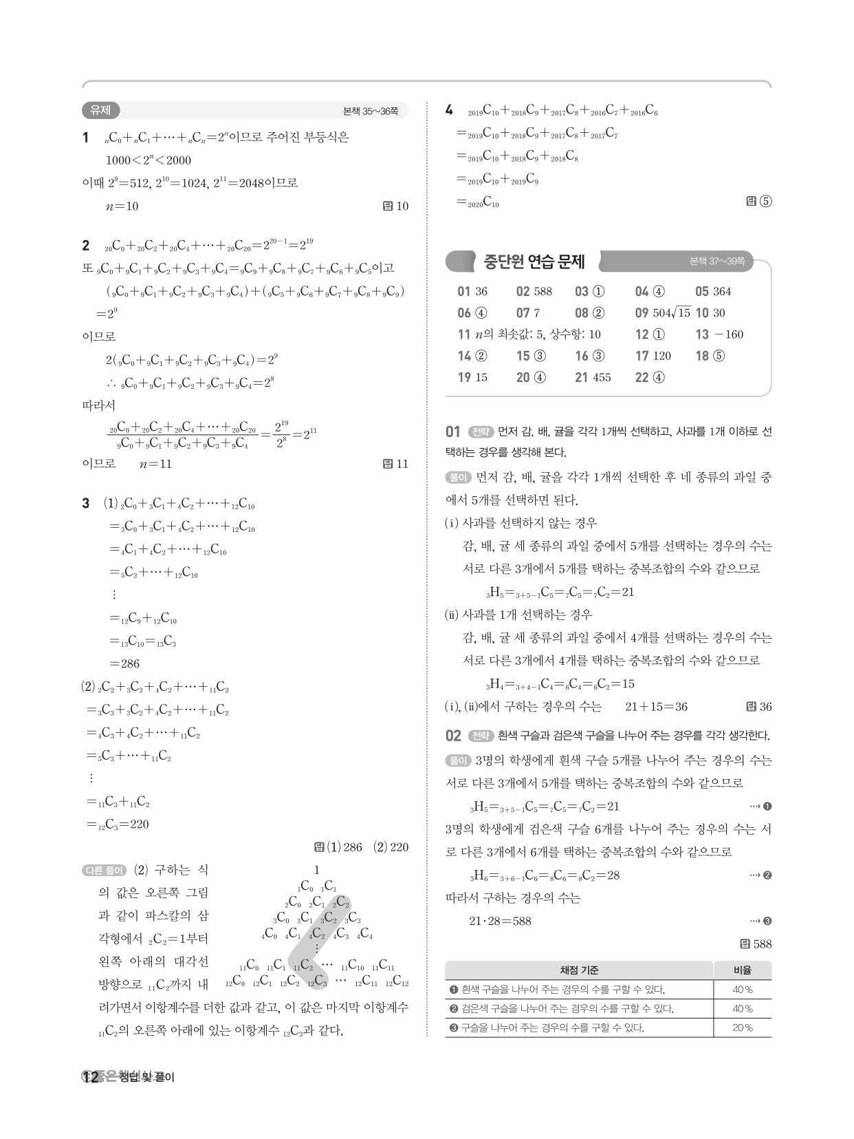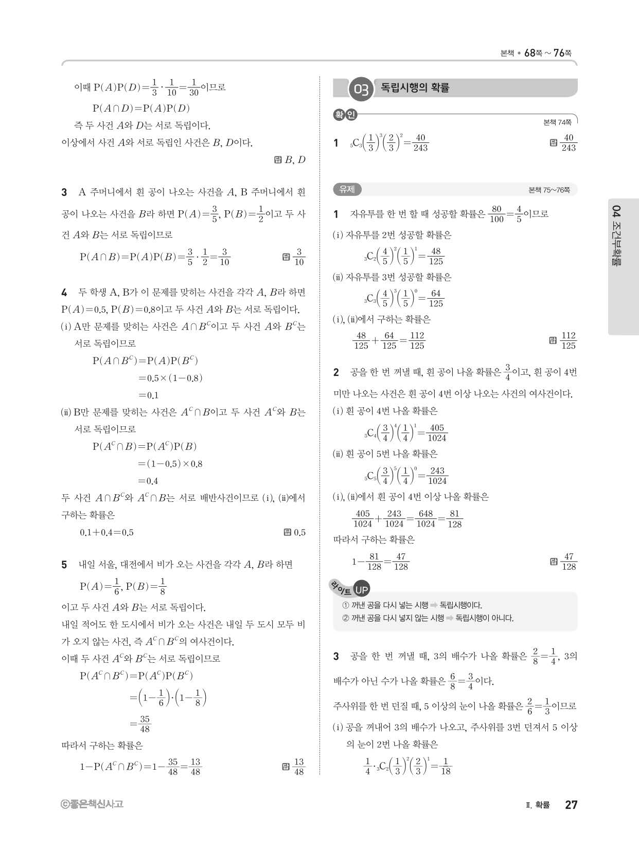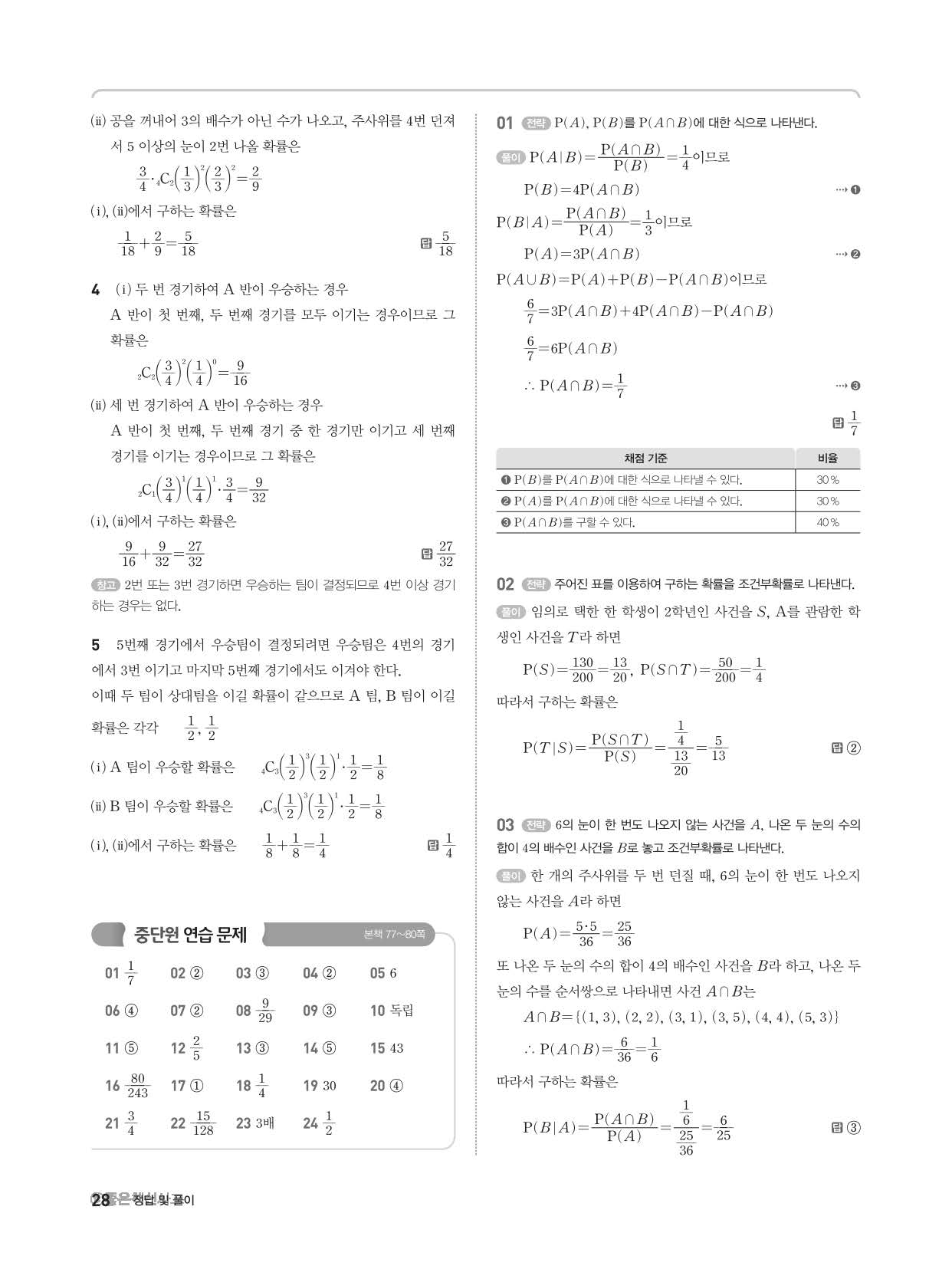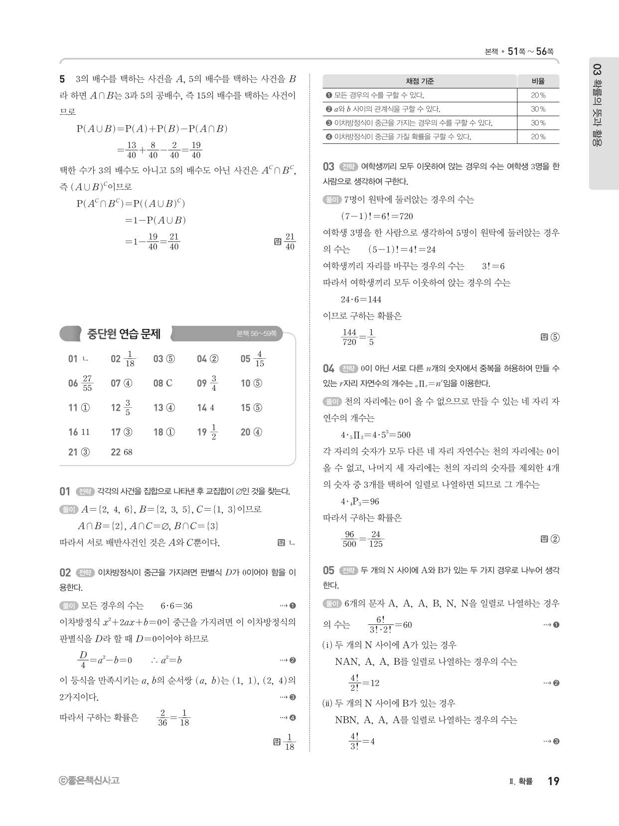 개념쎈라이트 확률과통계 답지 해설지 사진답지 빠른답지 모바일최적화
