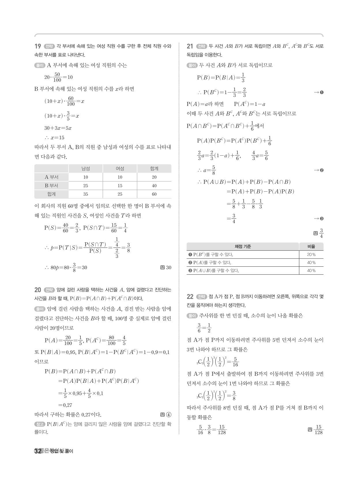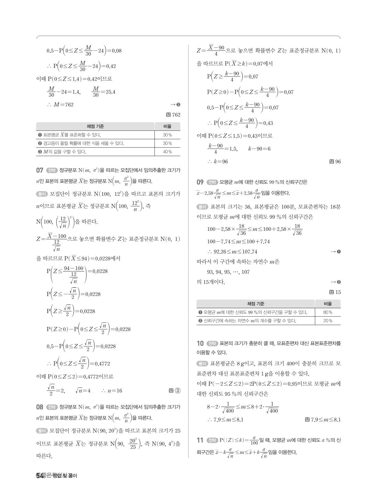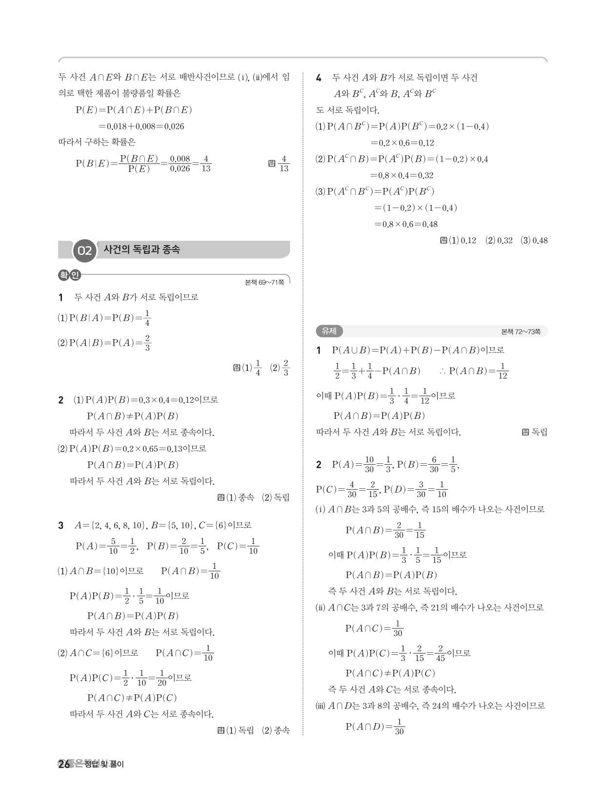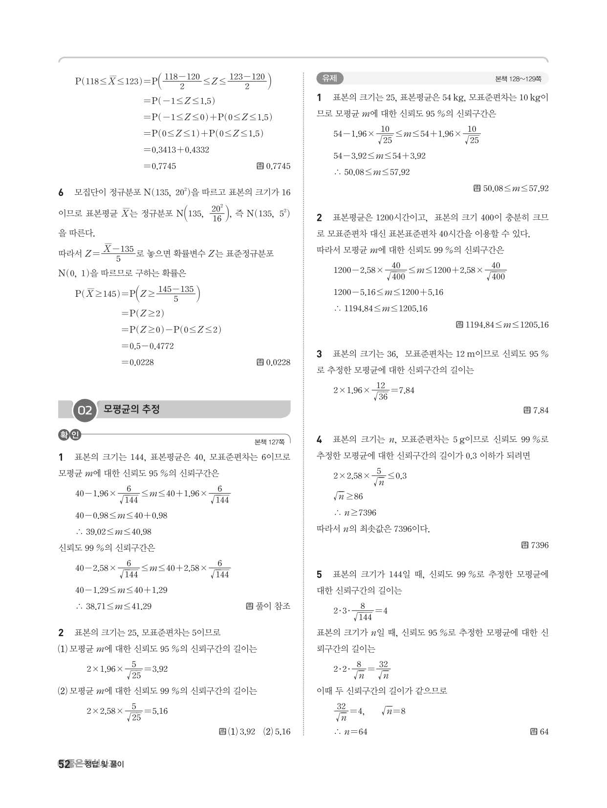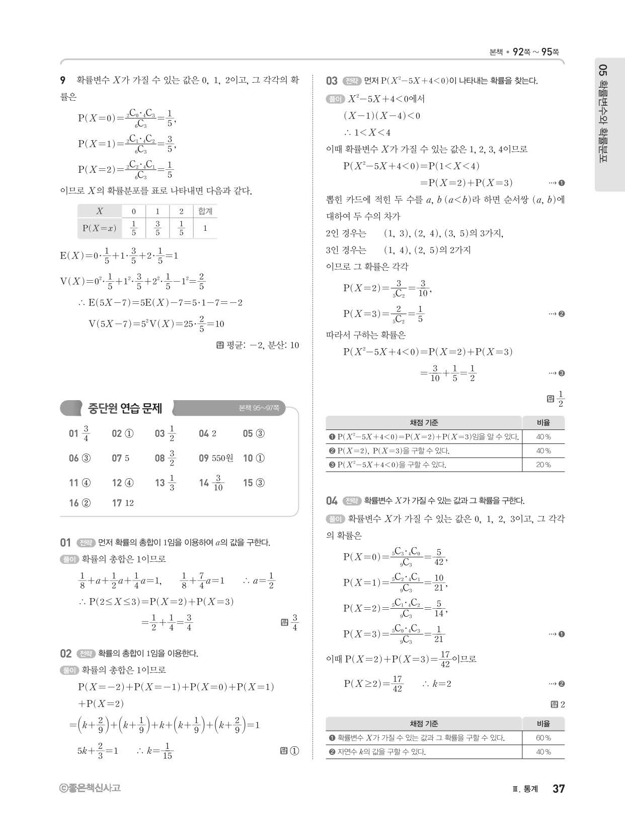 개념쎈라이트 확률과통계 답지 해설지 사진답지 빠른답지 모바일최적화