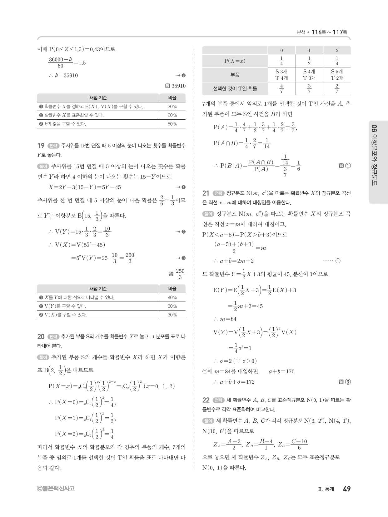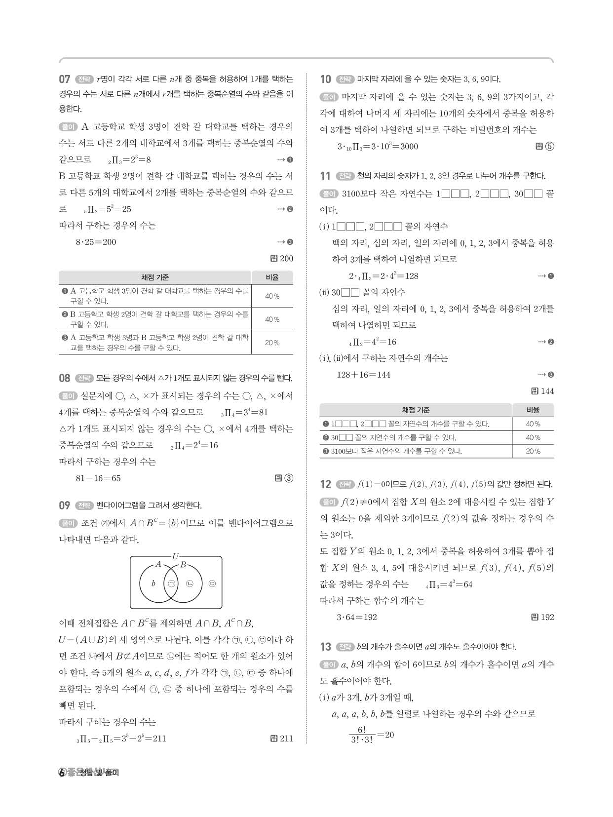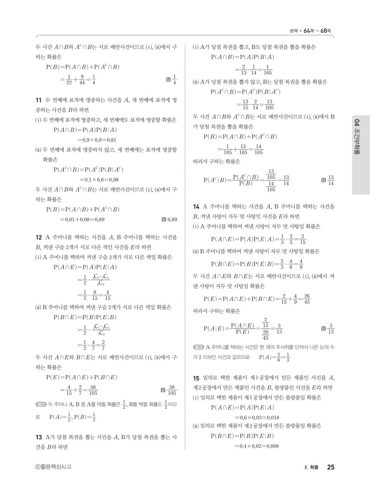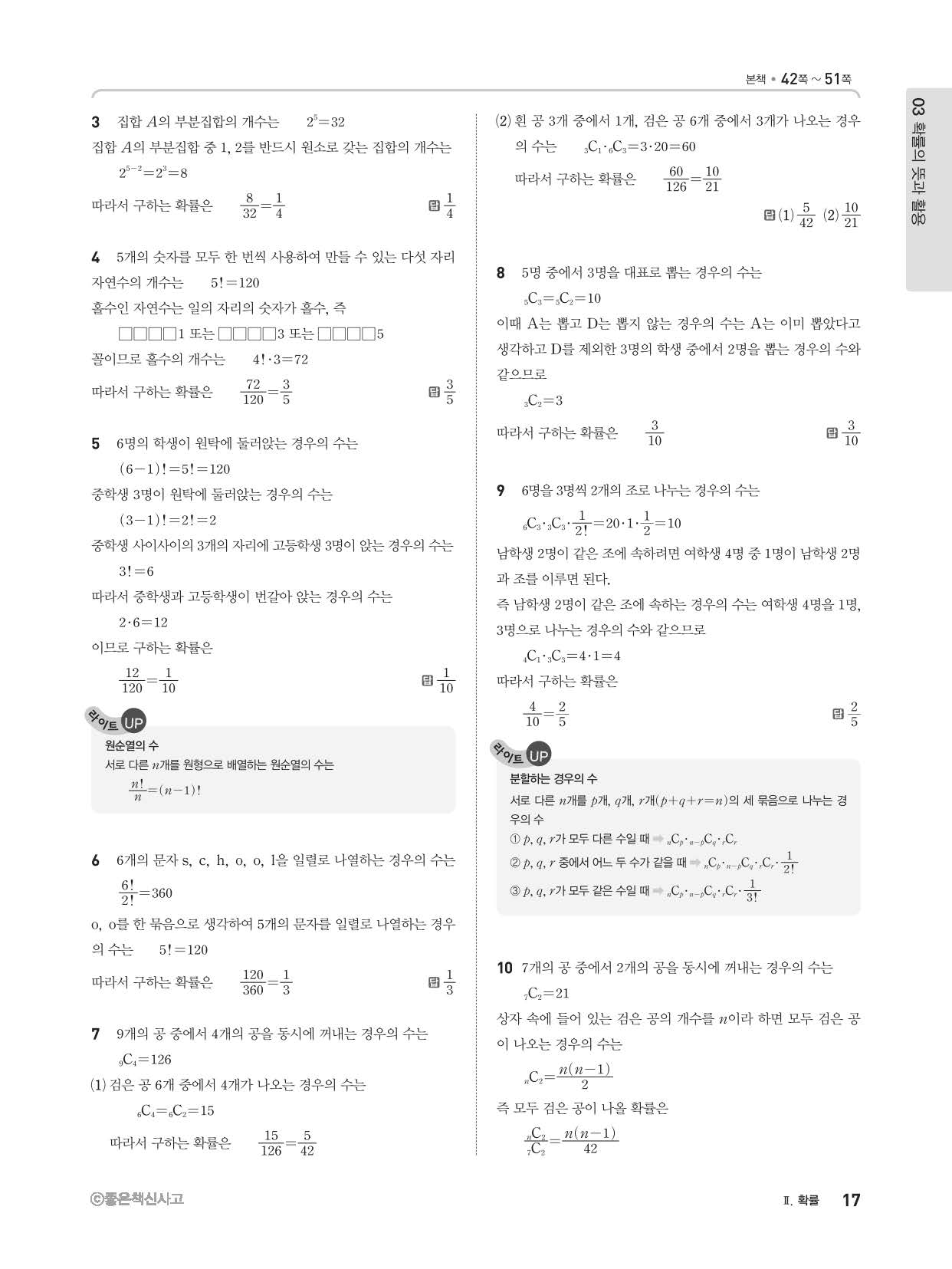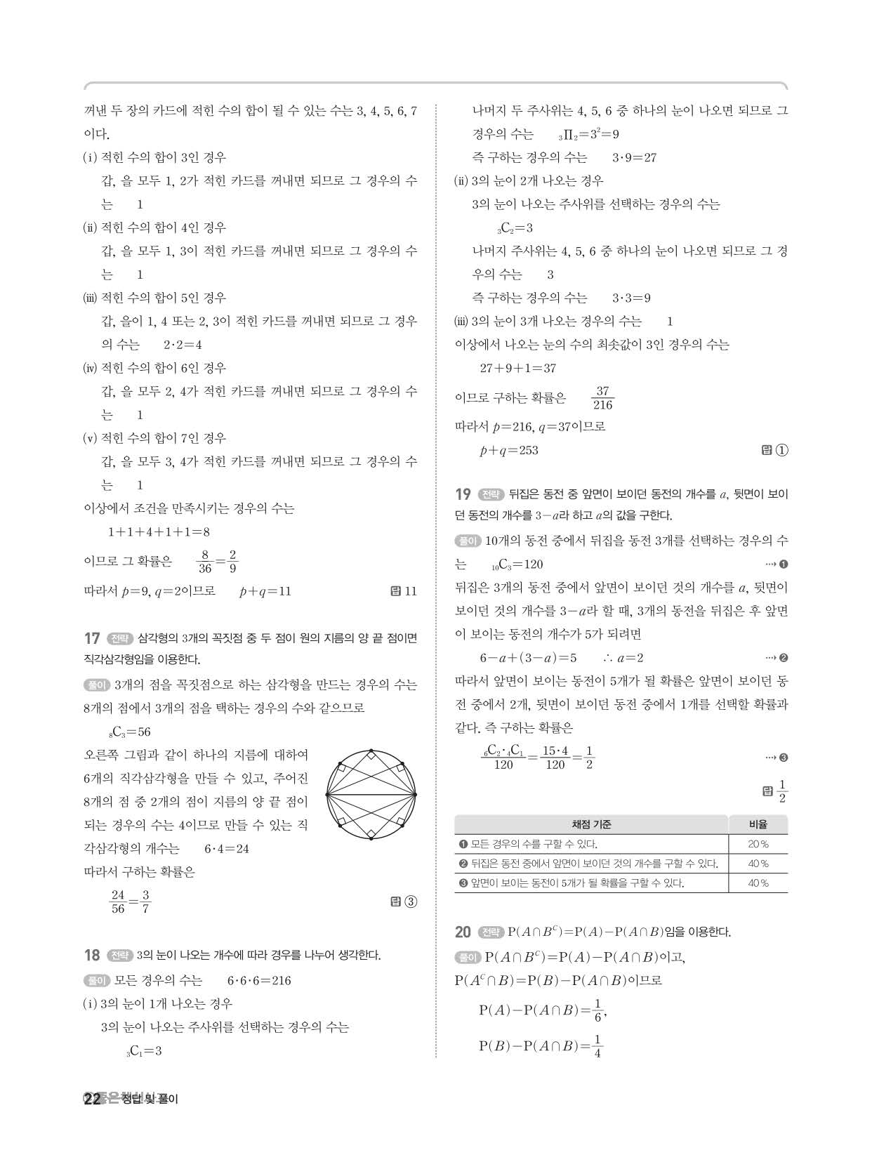 개념쎈라이트 확률과통계 답지 해설지 사진답지 빠른답지 모바일최적화