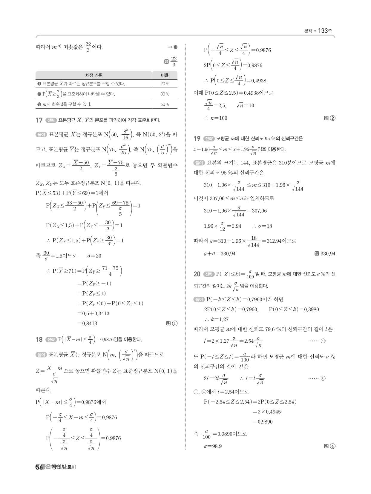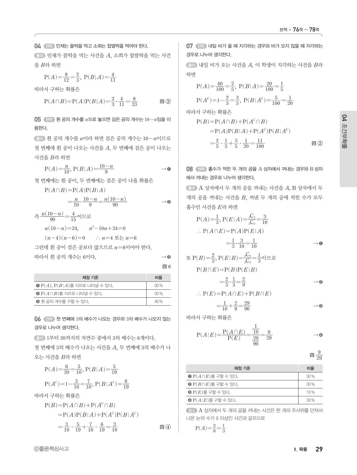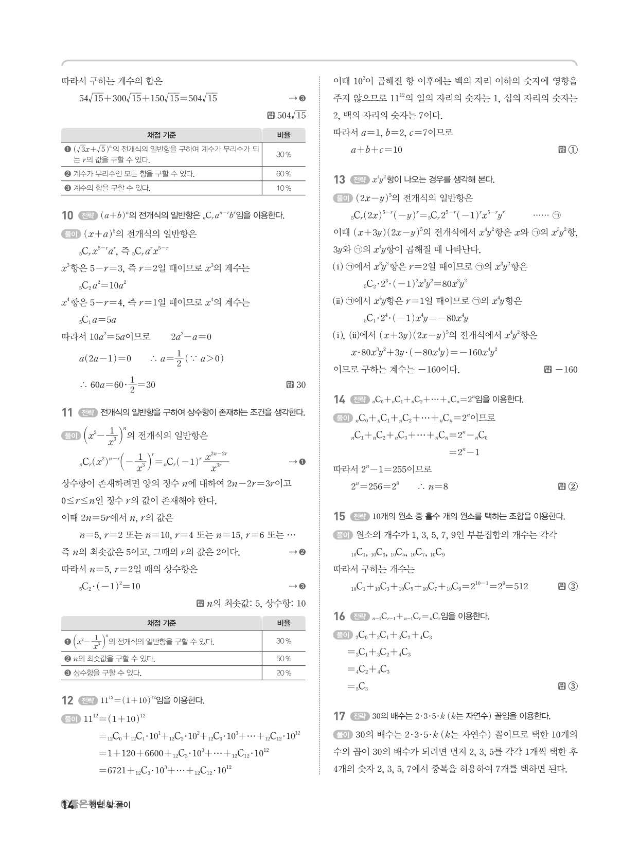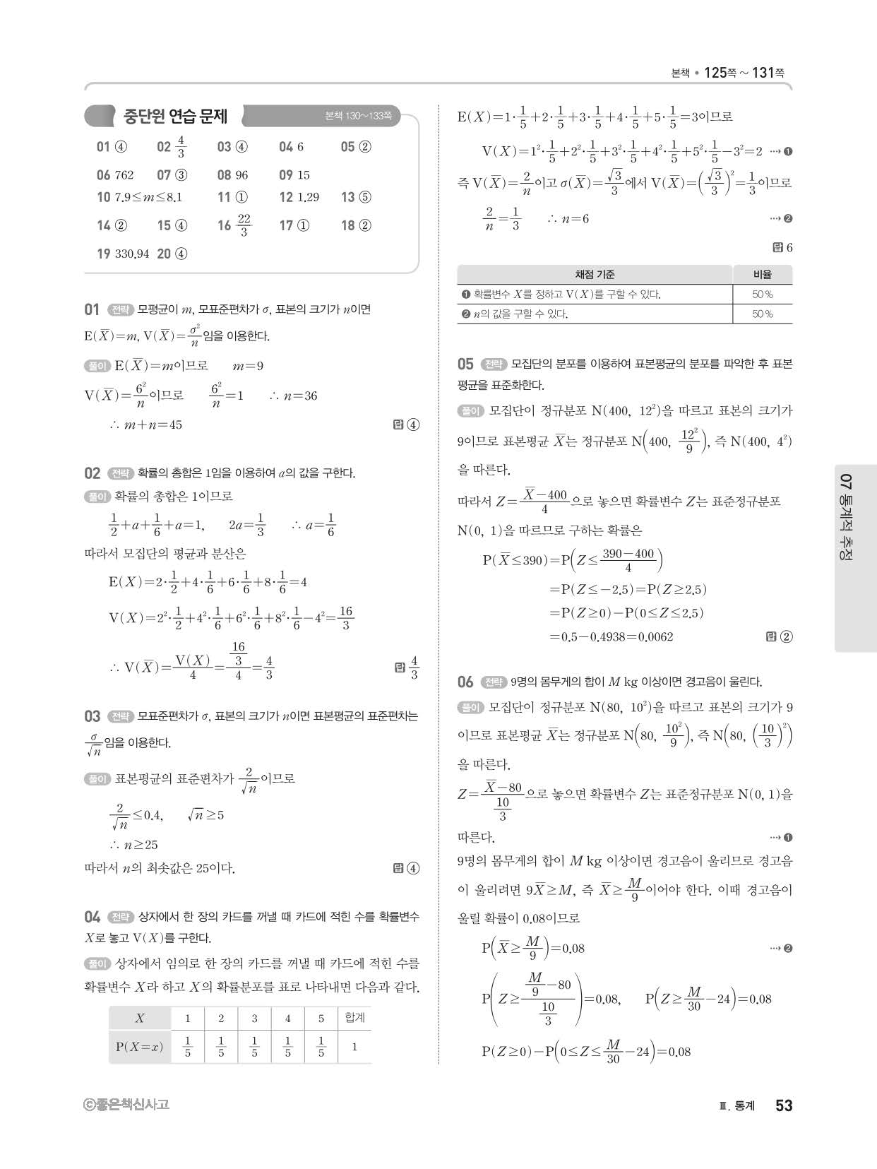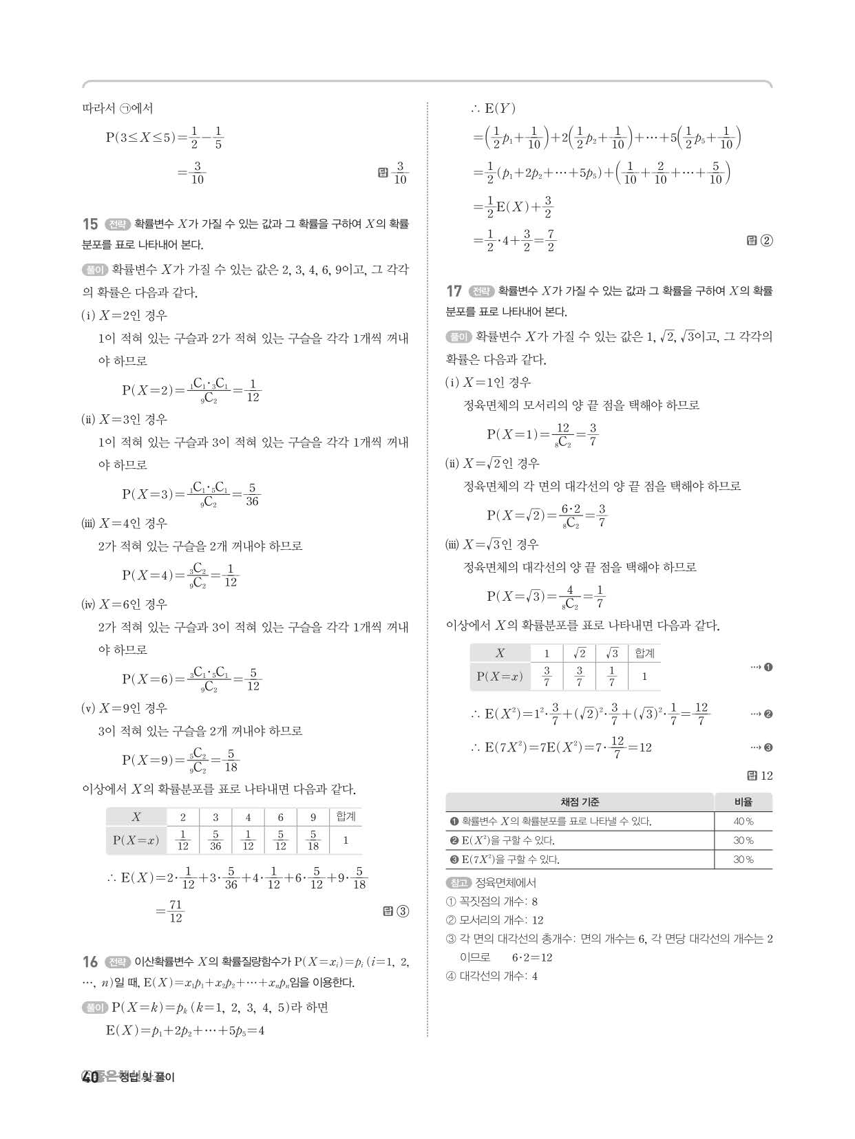 개념쎈라이트 확률과통계 답지 해설지 사진답지 빠른답지 모바일최적화