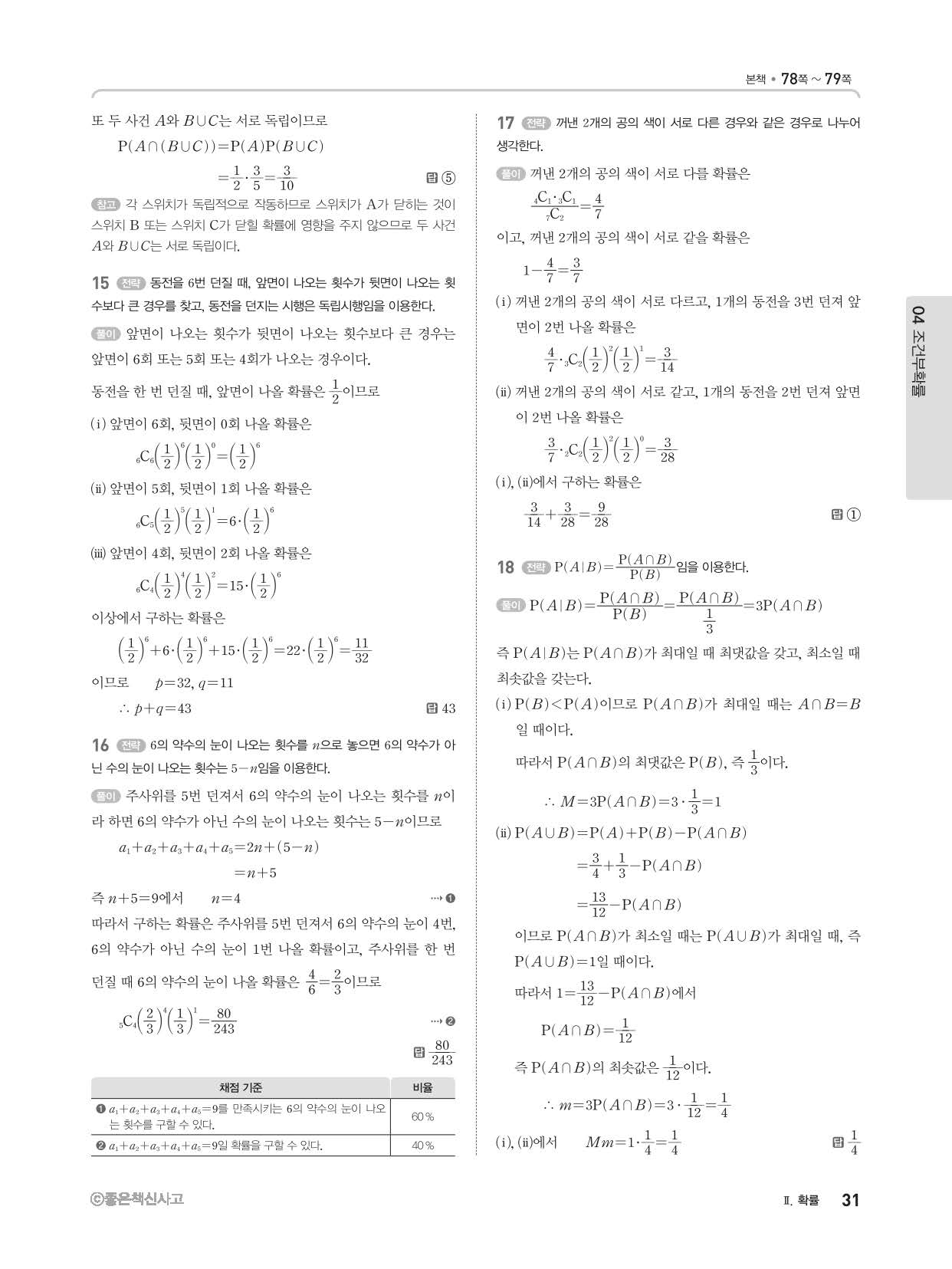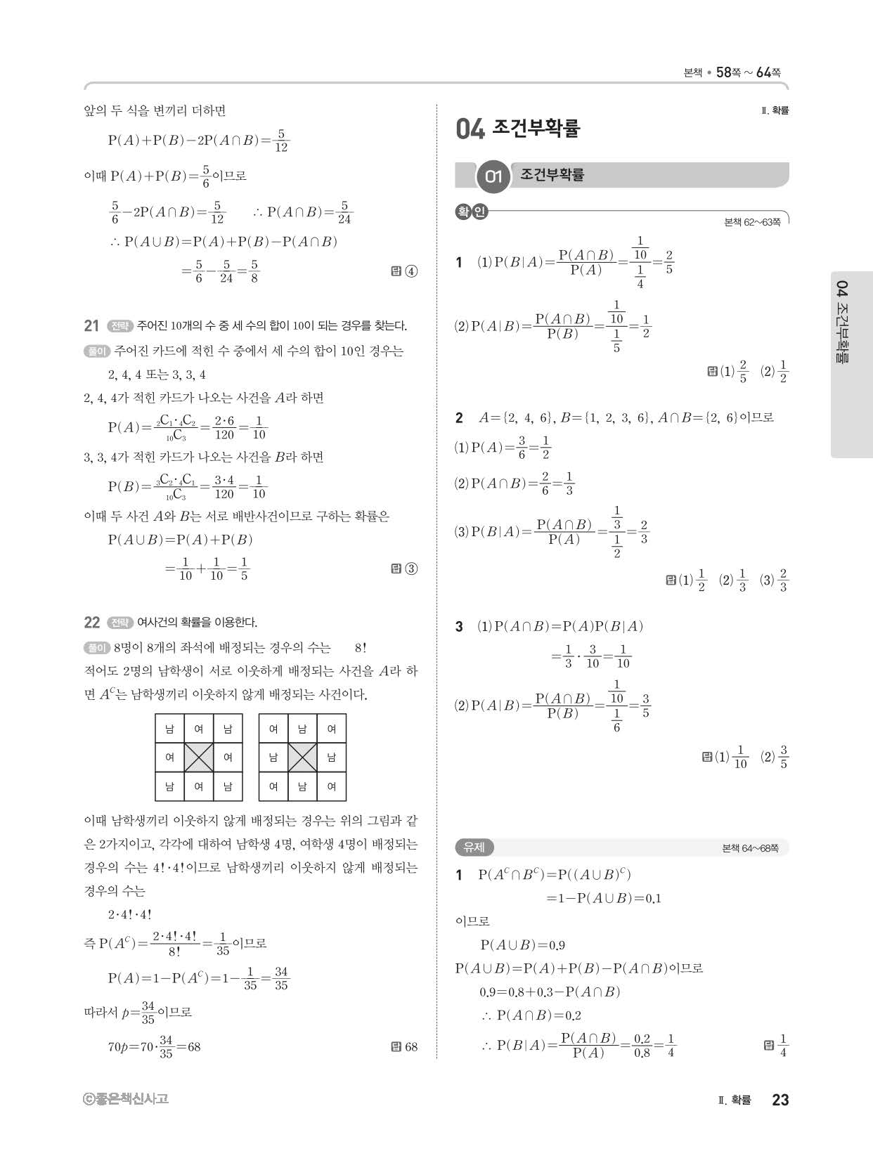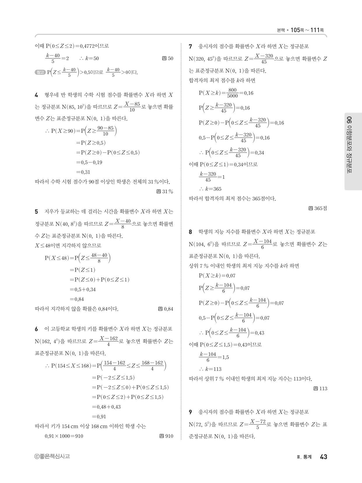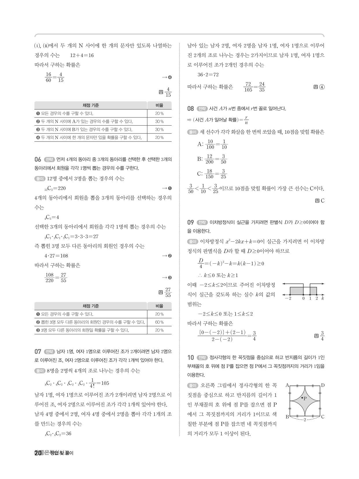 개념쎈라이트 확률과통계 답지 해설지 사진답지 빠른답지 모바일최적화