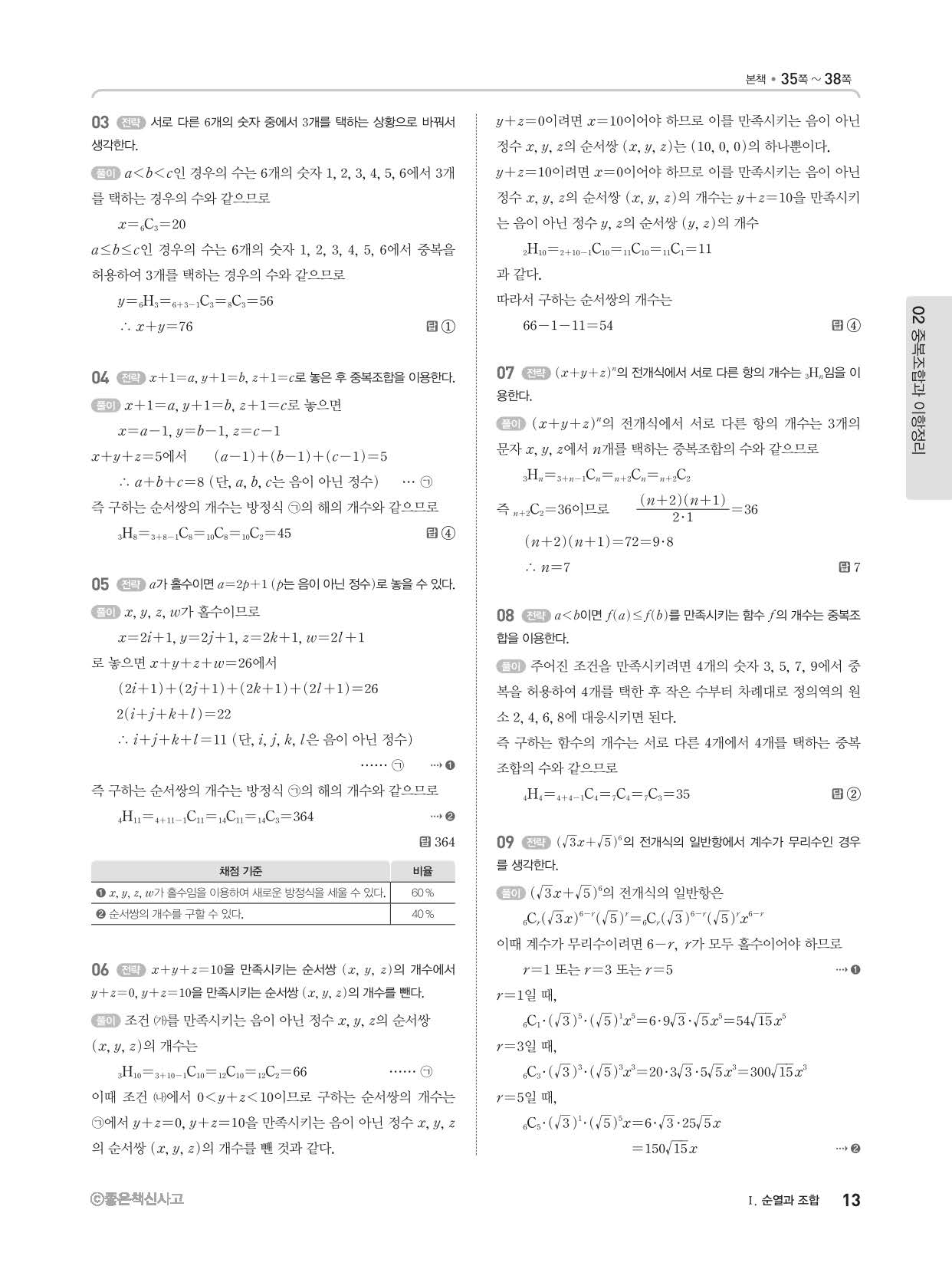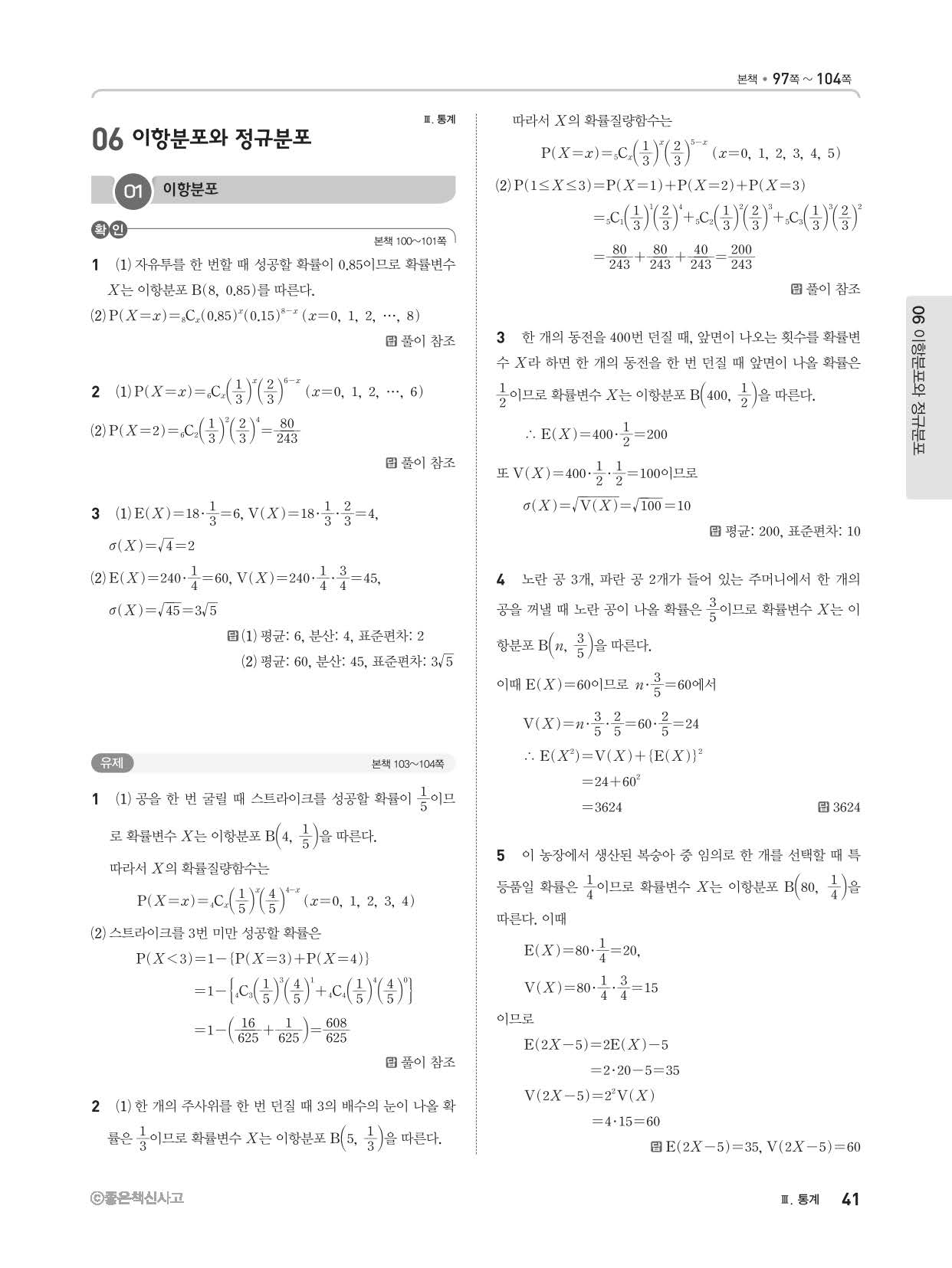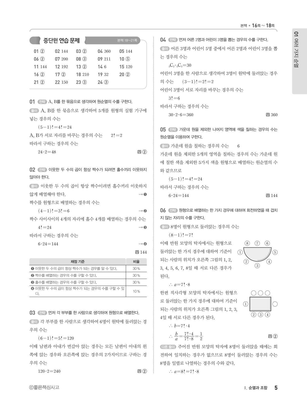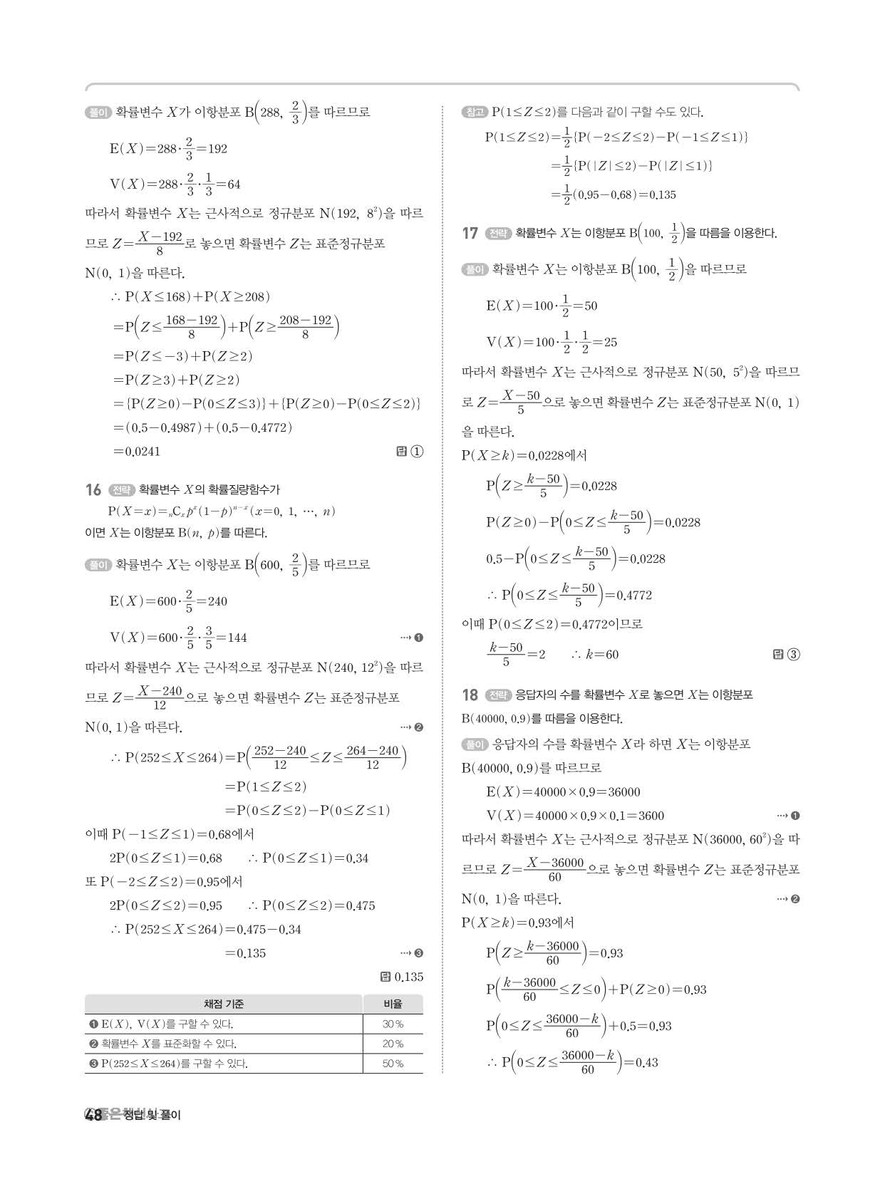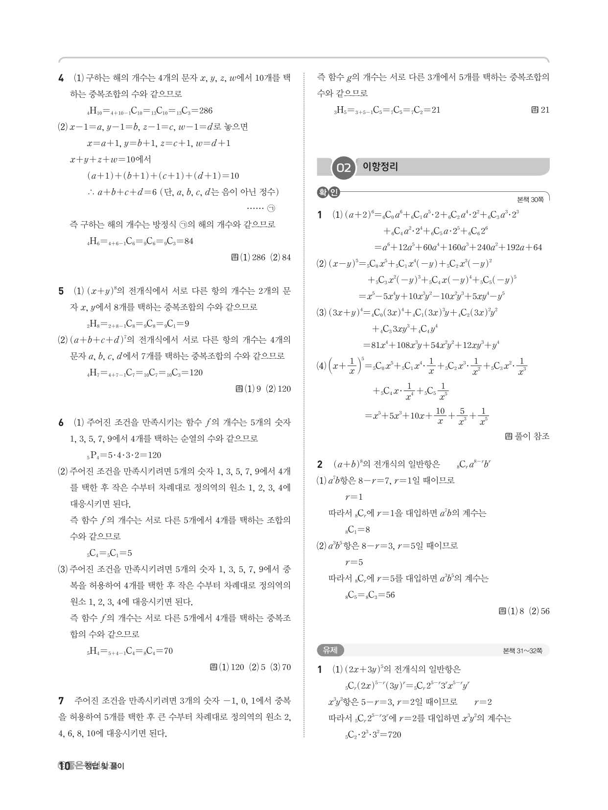 개념쎈라이트 확률과통계 답지 해설지 사진답지 빠른답지 모바일최적화