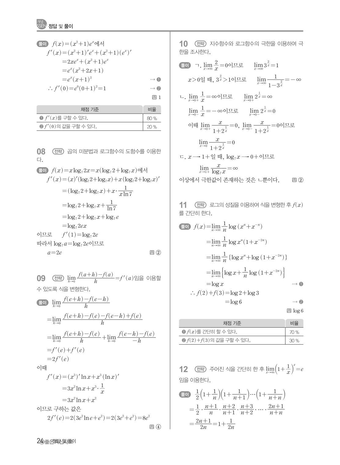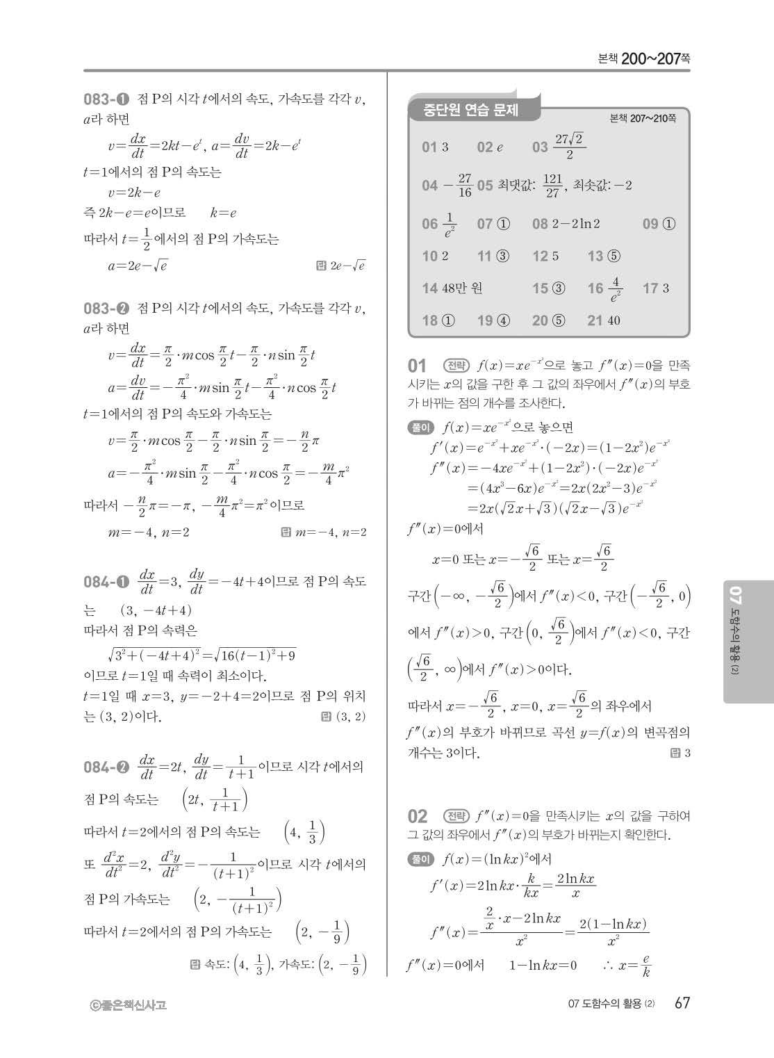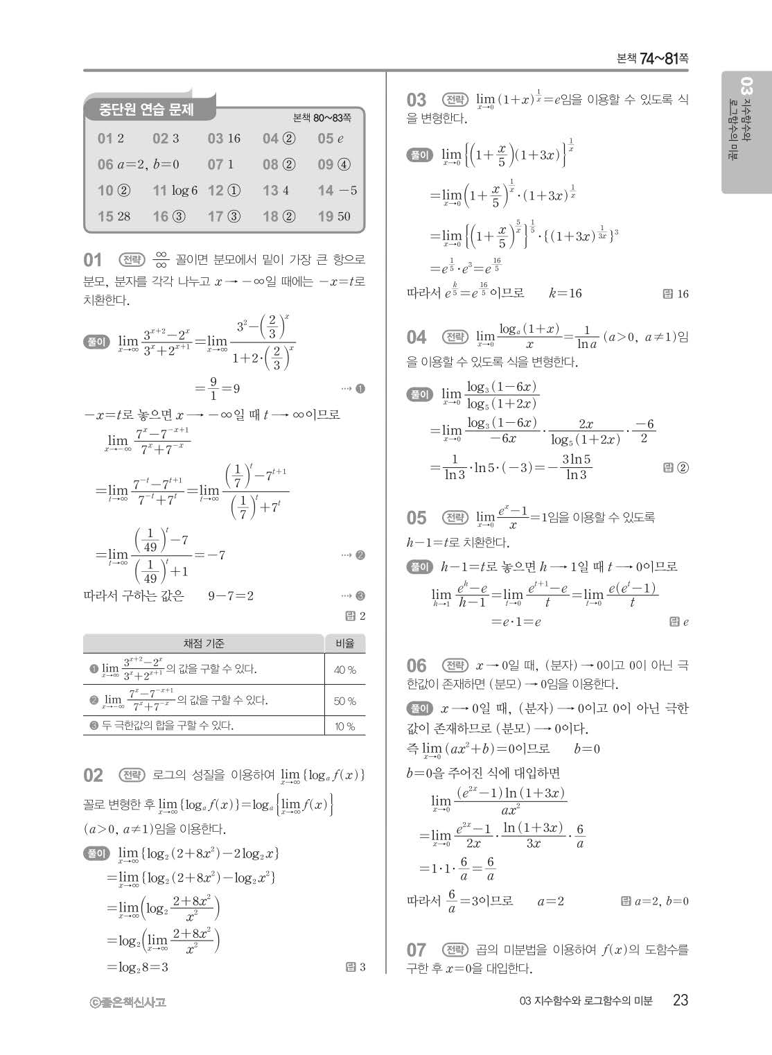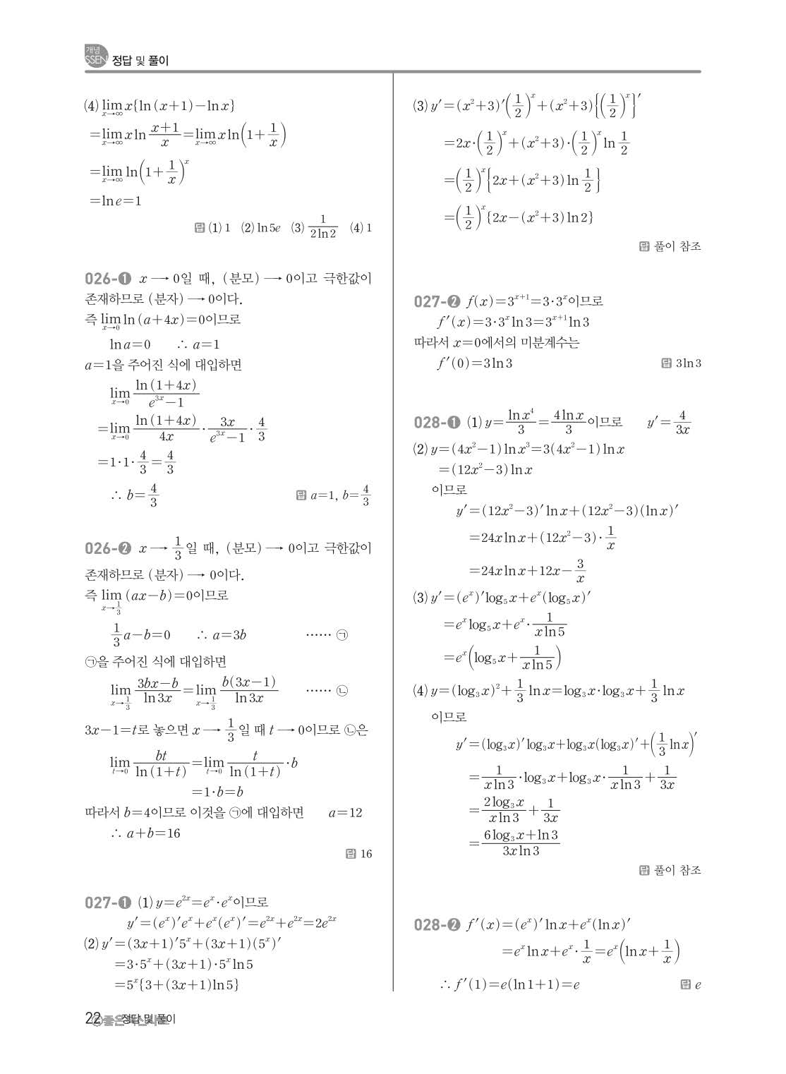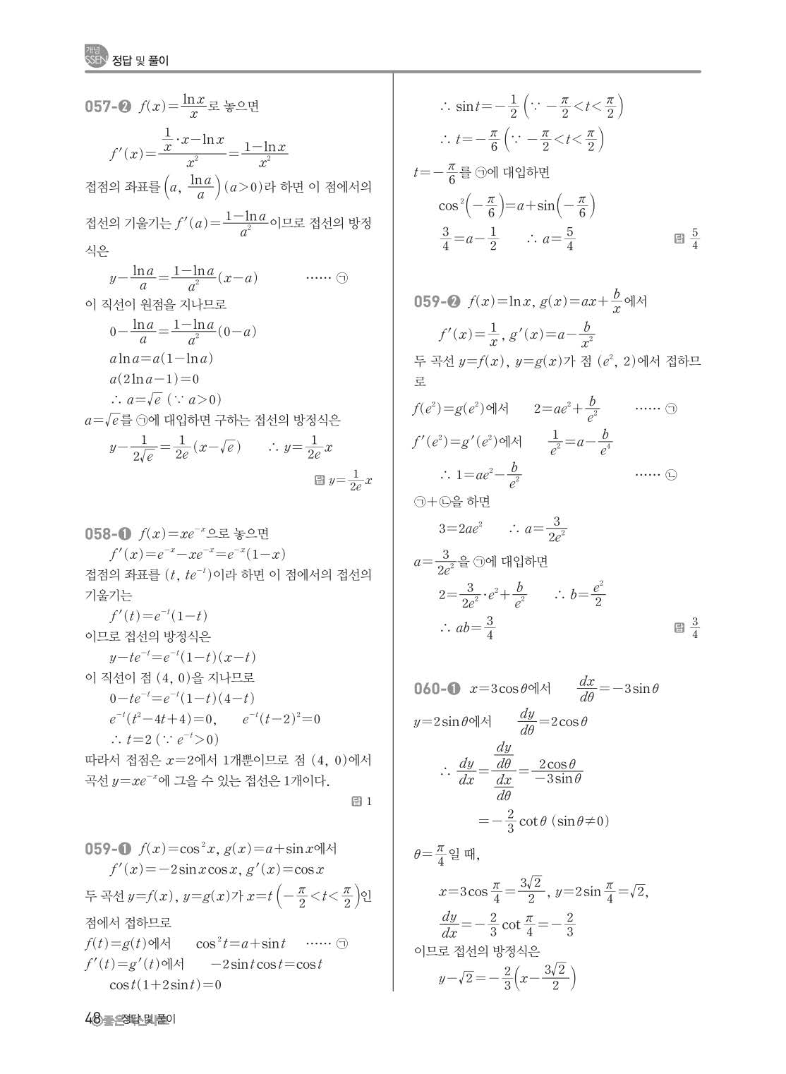 개념쎈 고등미적분 답지 해설지 사진답지 빠른답지 모바일최적화