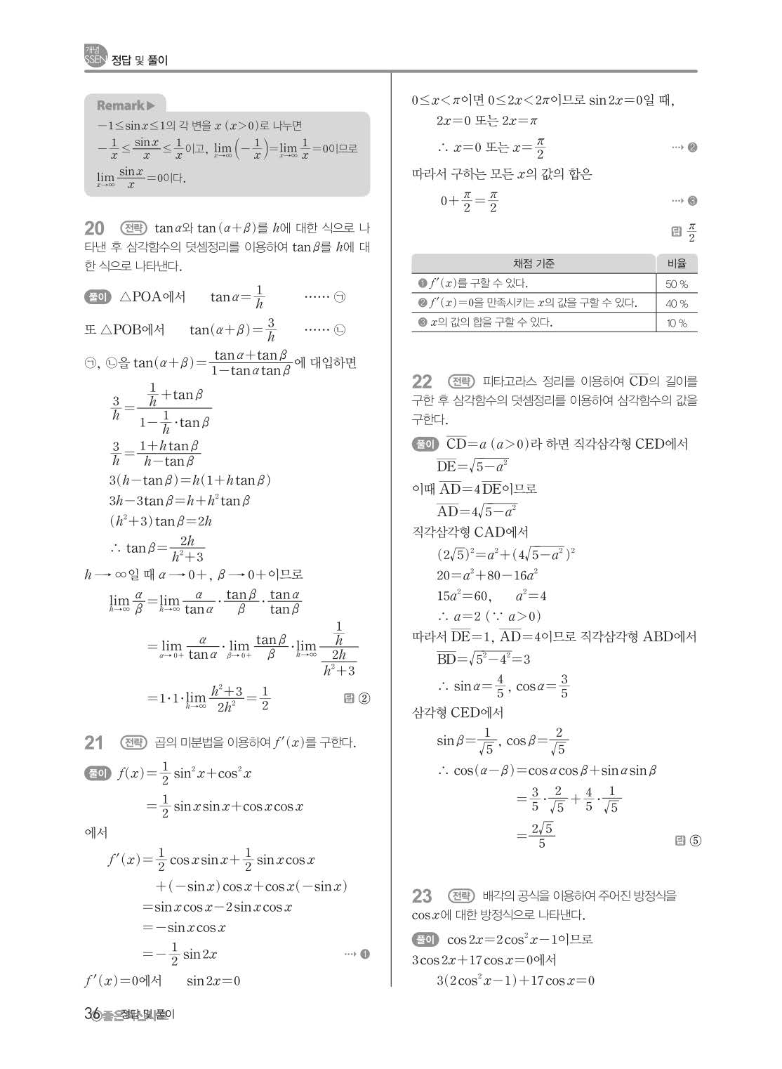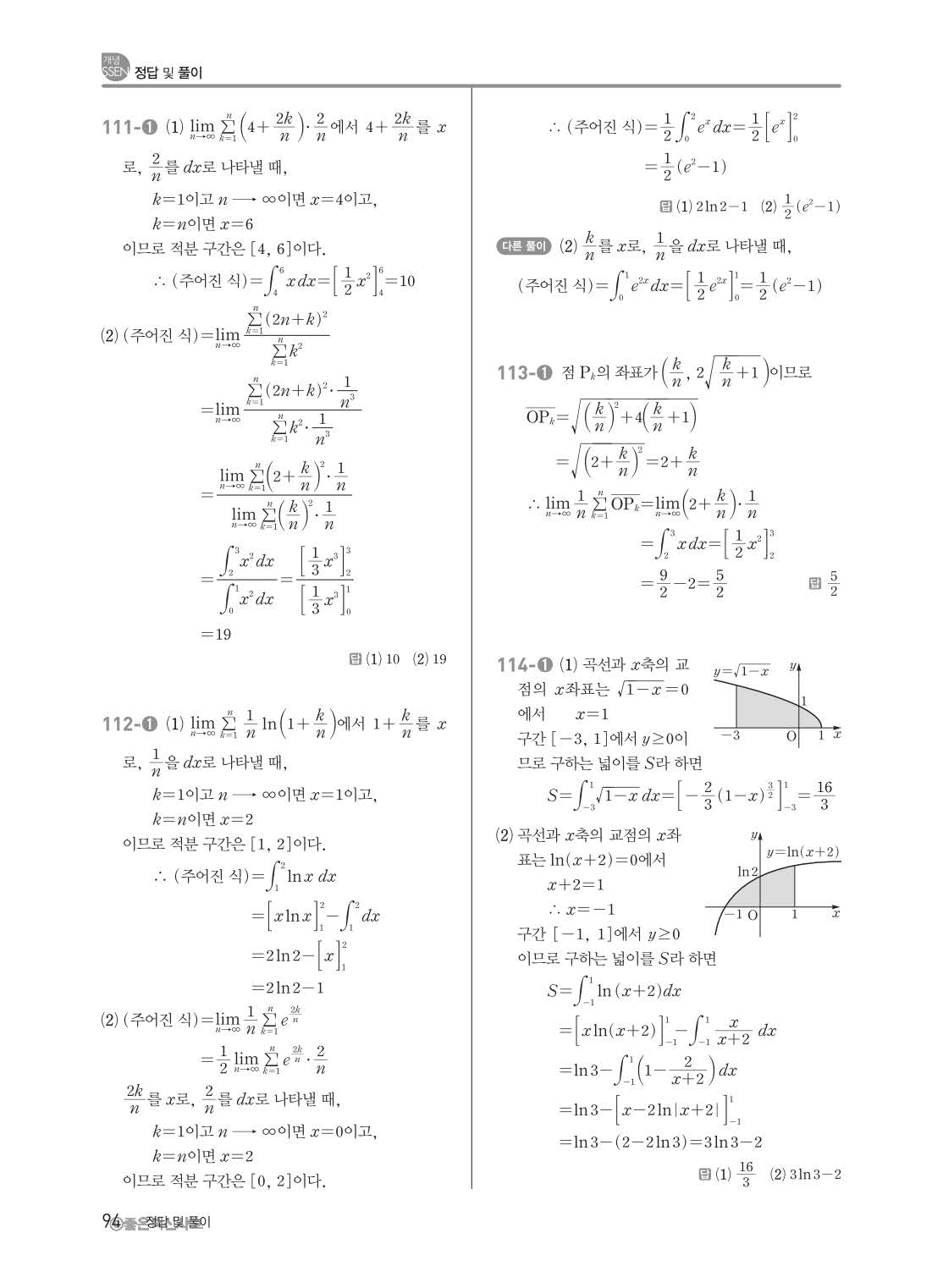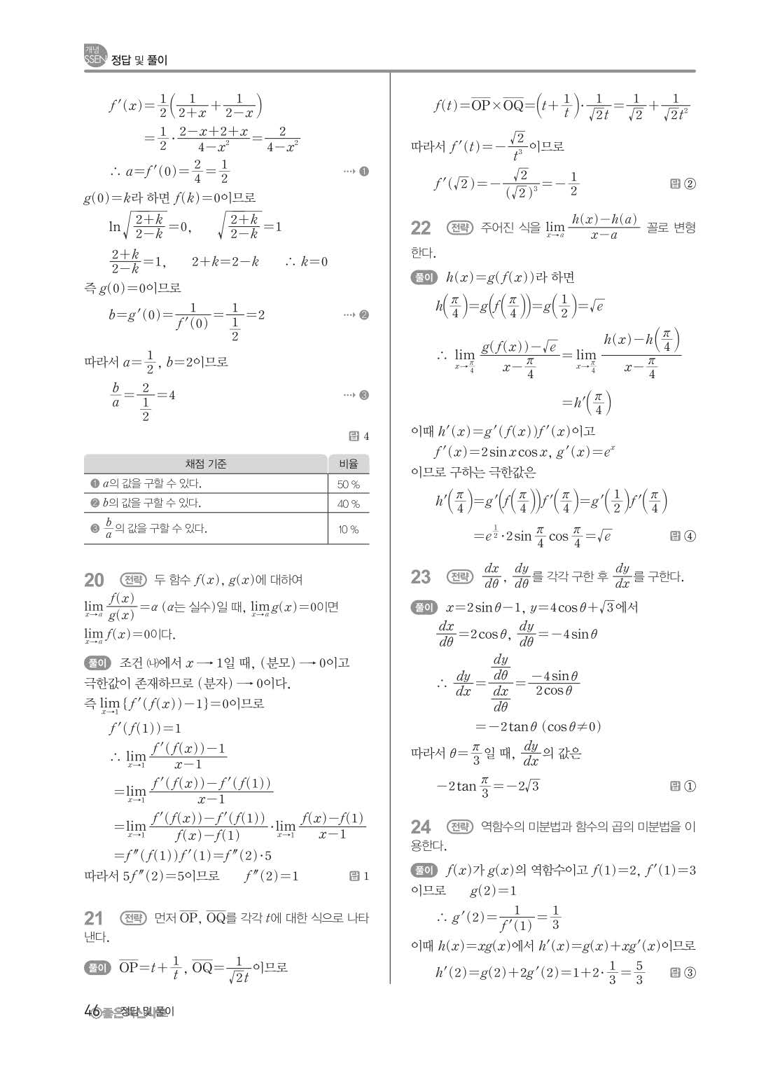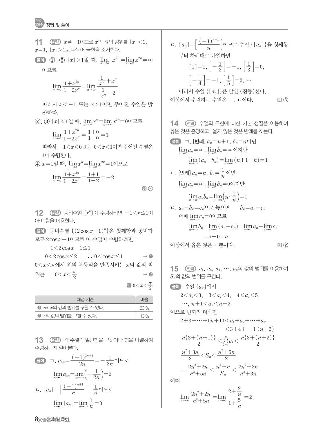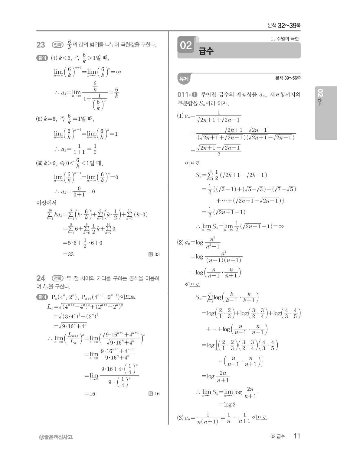 개념쎈 고등미적분 답지 해설지 사진답지 빠른답지 모바일최적화