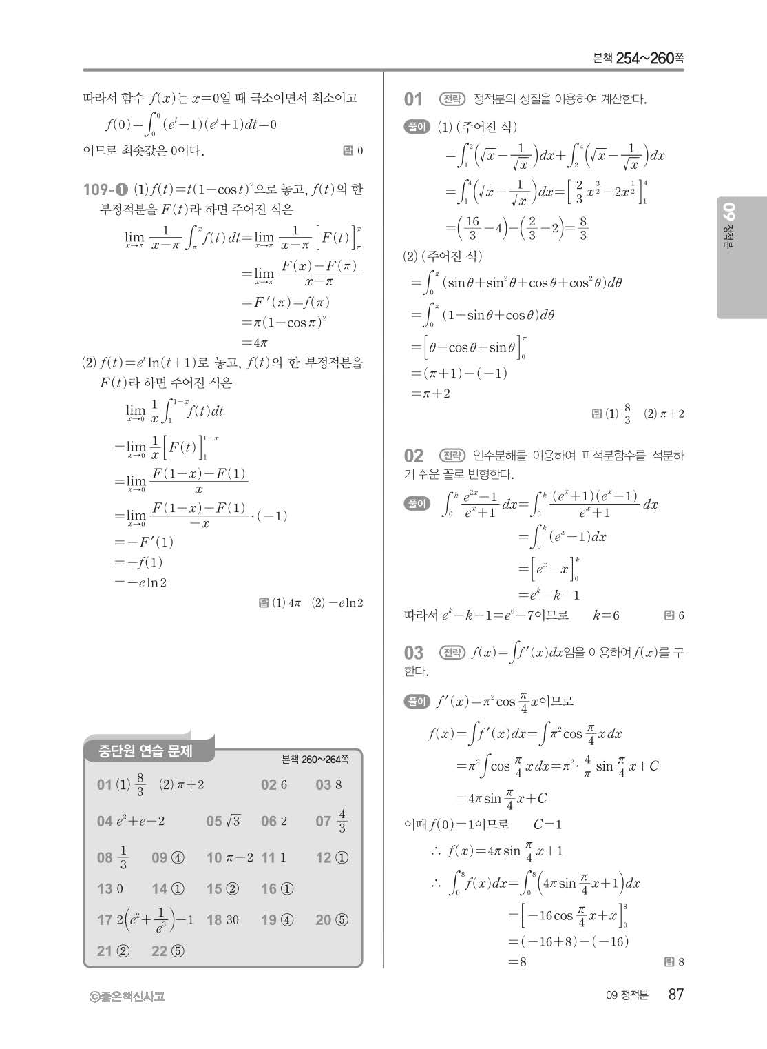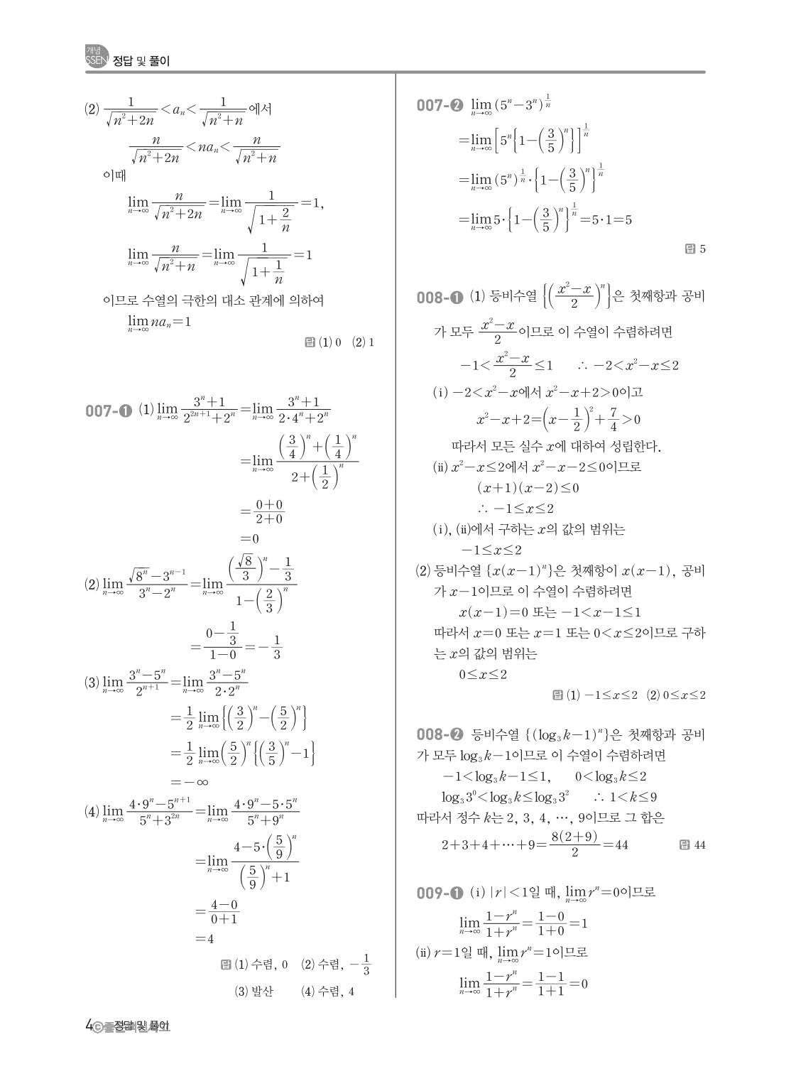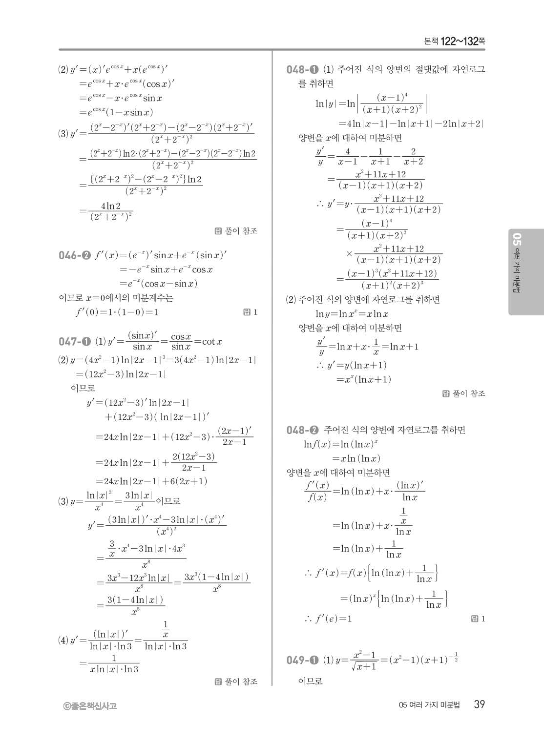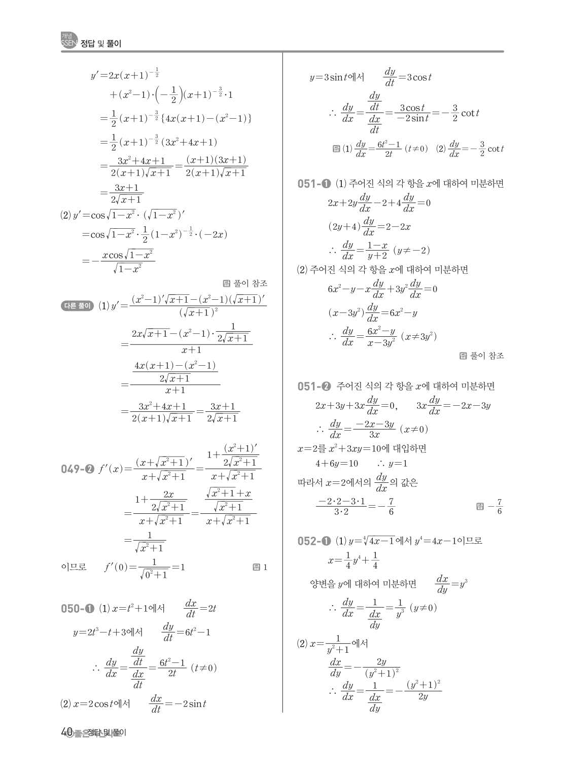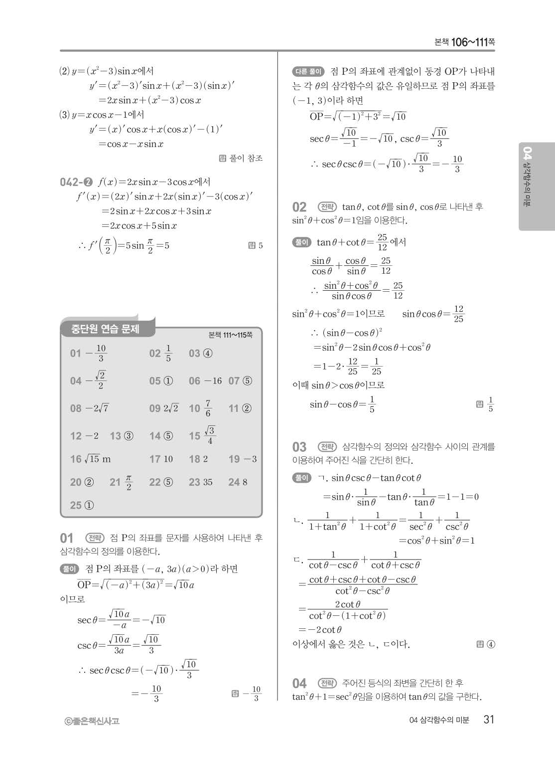 개념쎈 고등미적분 답지 해설지 사진답지 빠른답지 모바일최적화