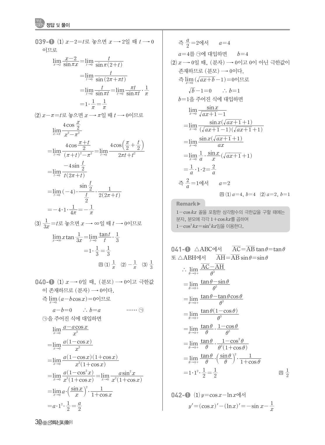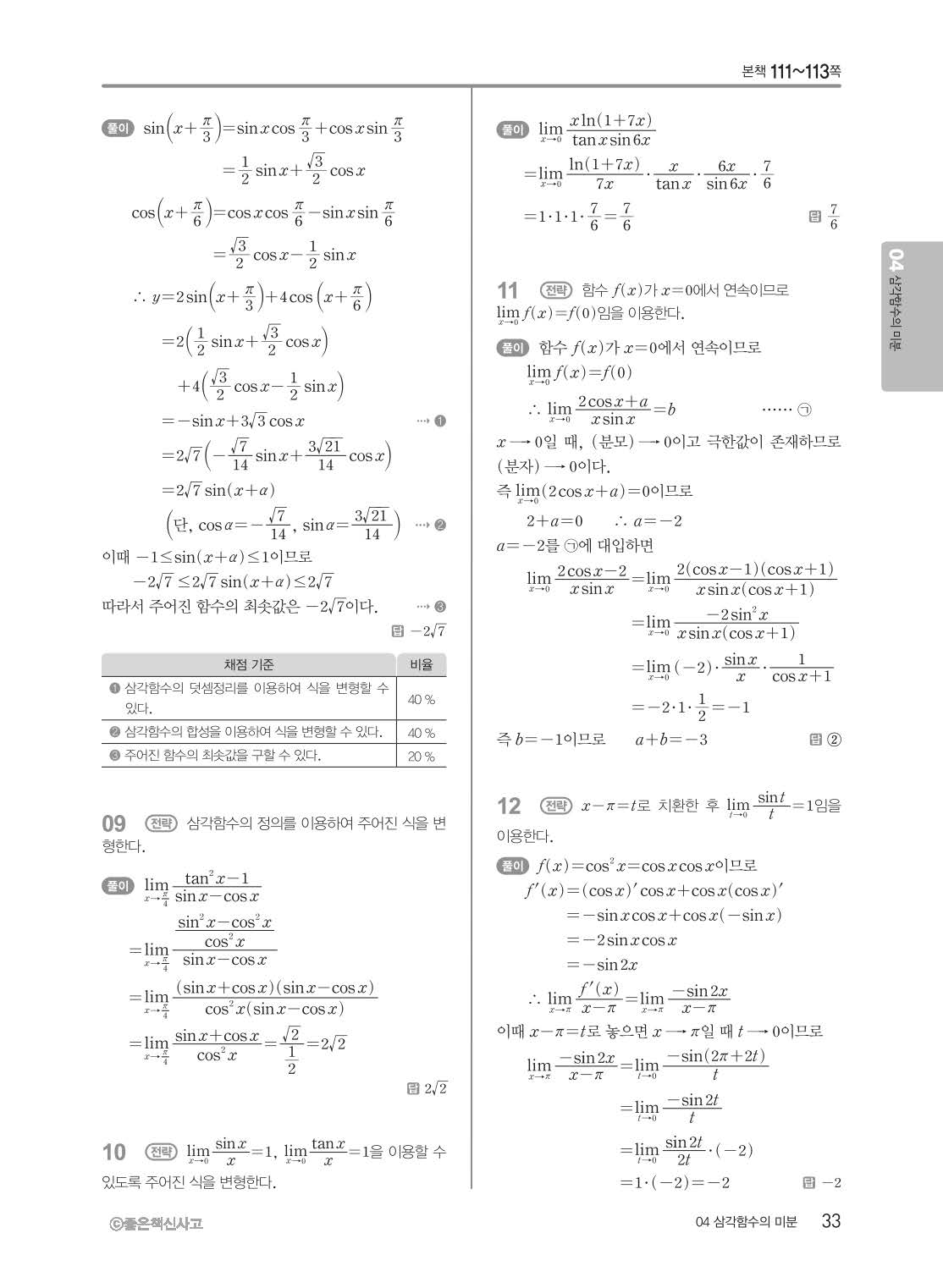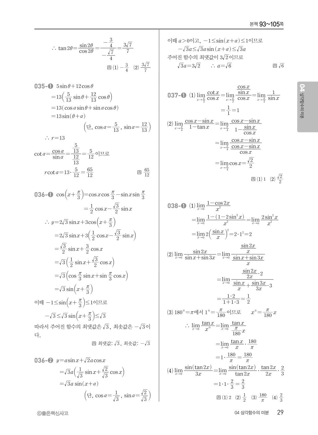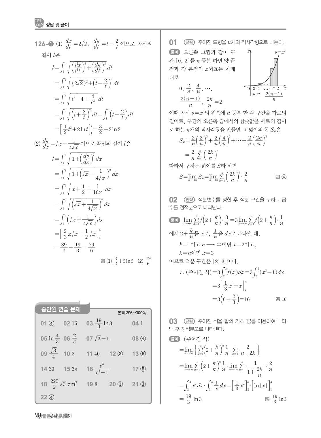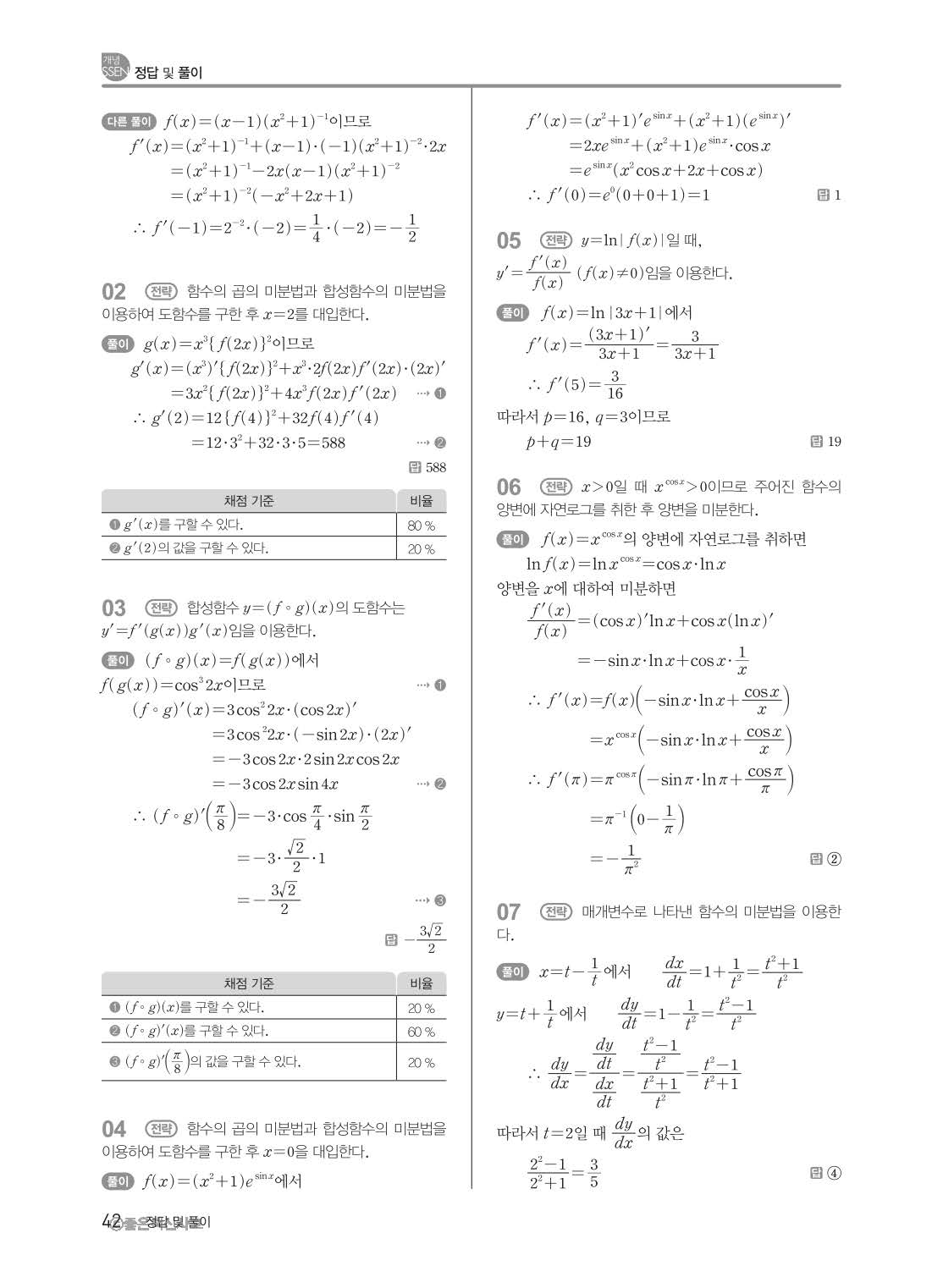 개념쎈 고등미적분 답지 해설지 사진답지 빠른답지 모바일최적화
