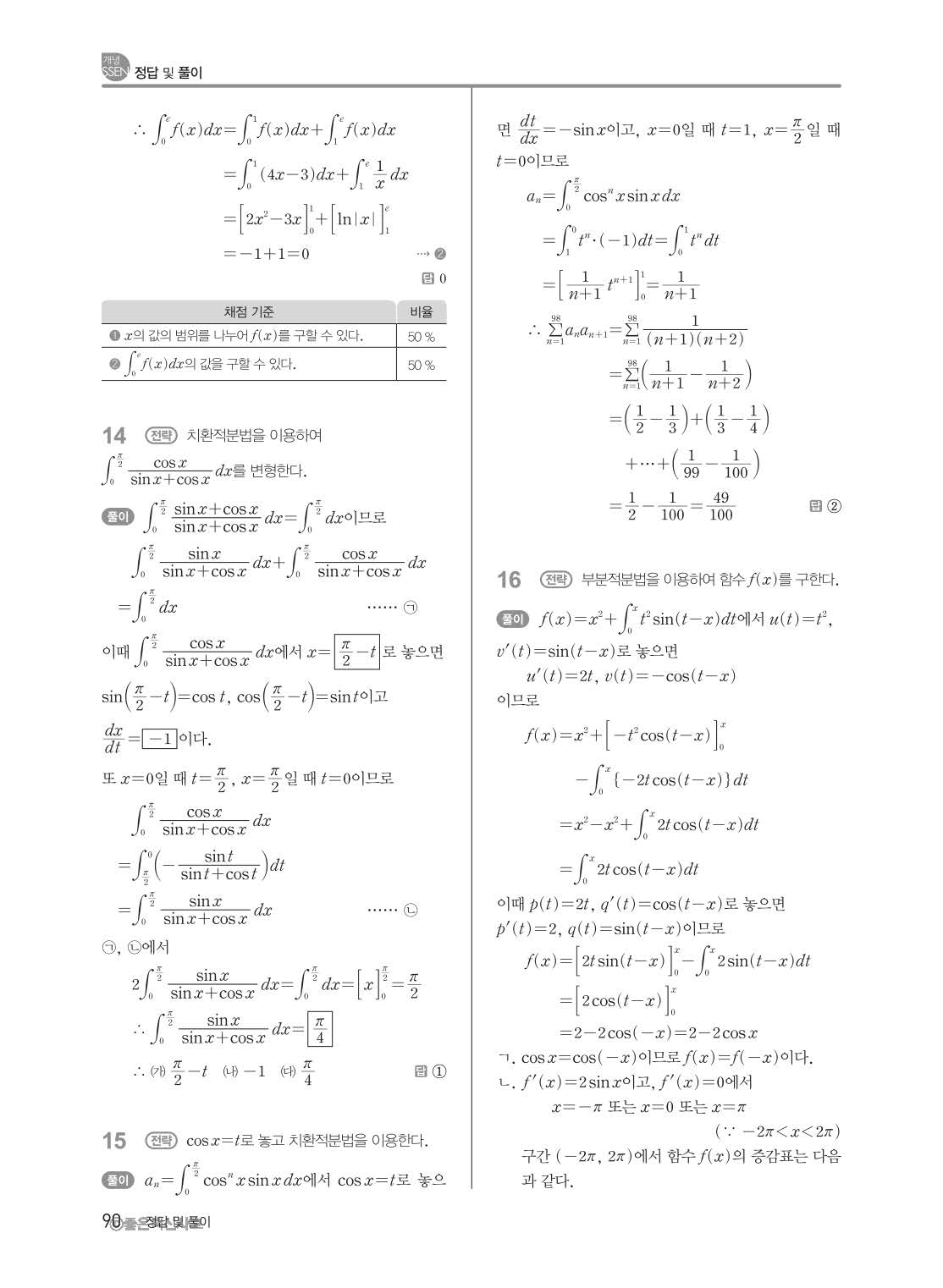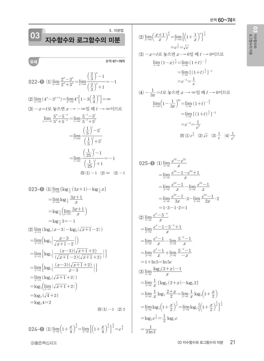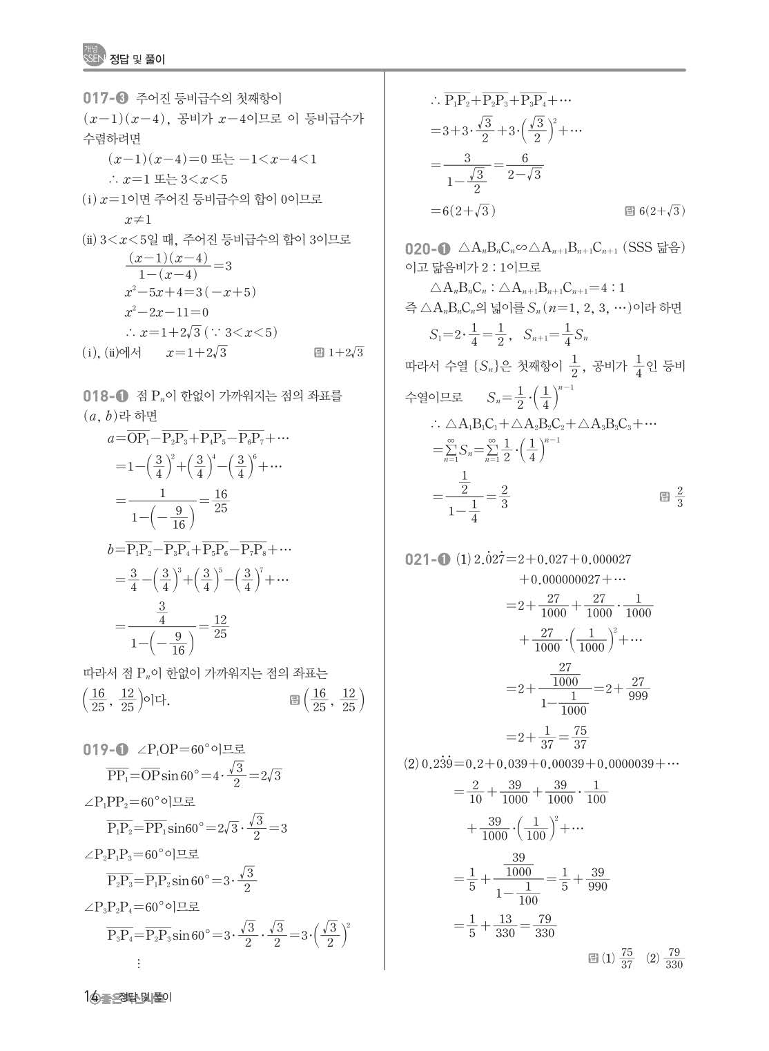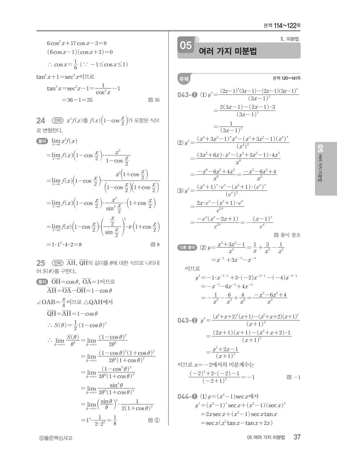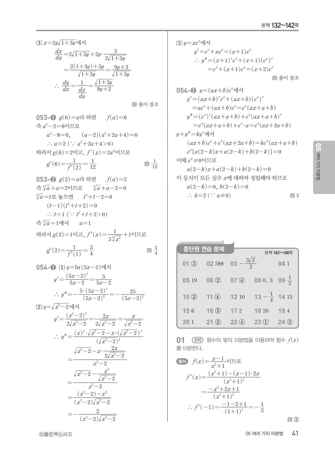 개념쎈 고등미적분 답지 해설지 사진답지 빠른답지 모바일최적화