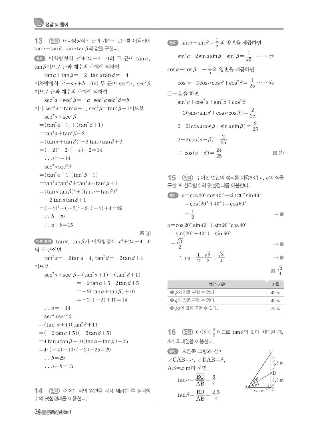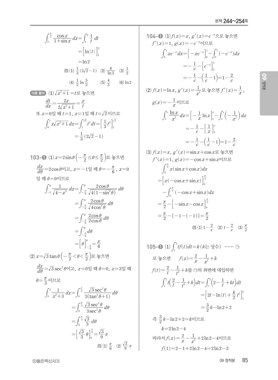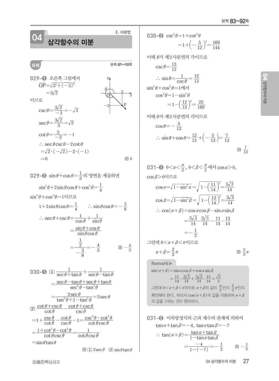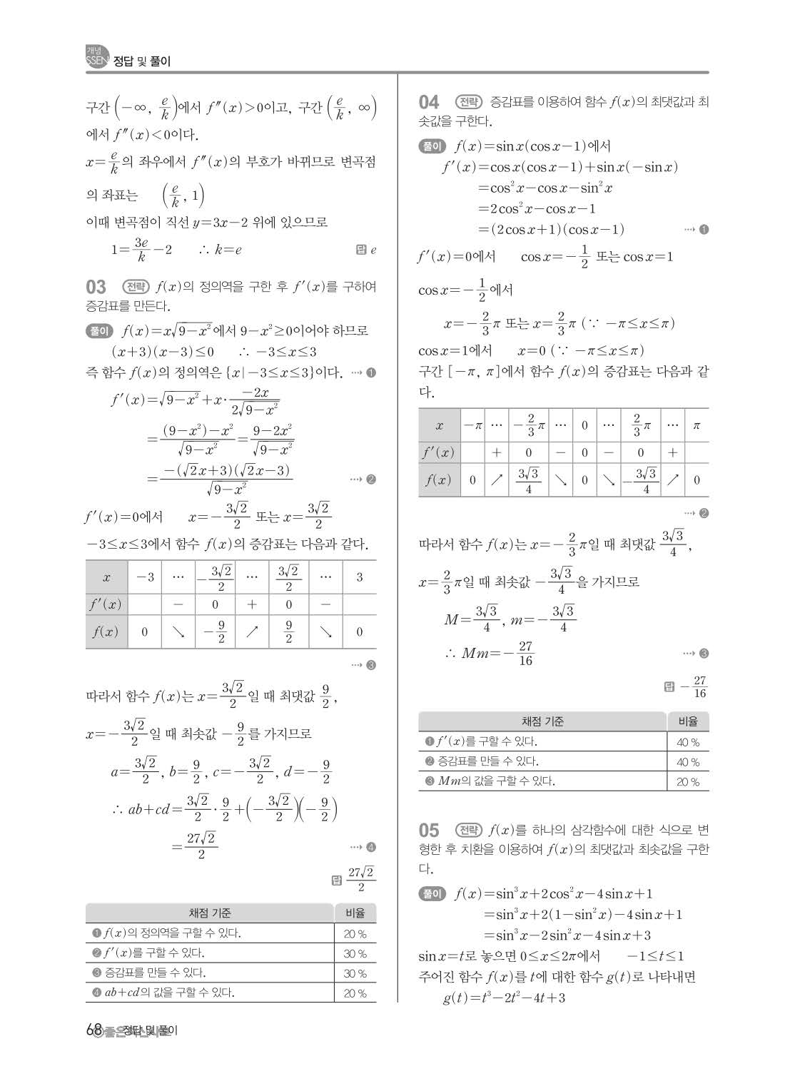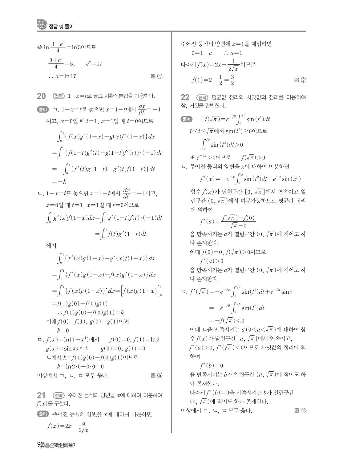 개념쎈 고등미적분 답지 해설지 사진답지 빠른답지 모바일최적화