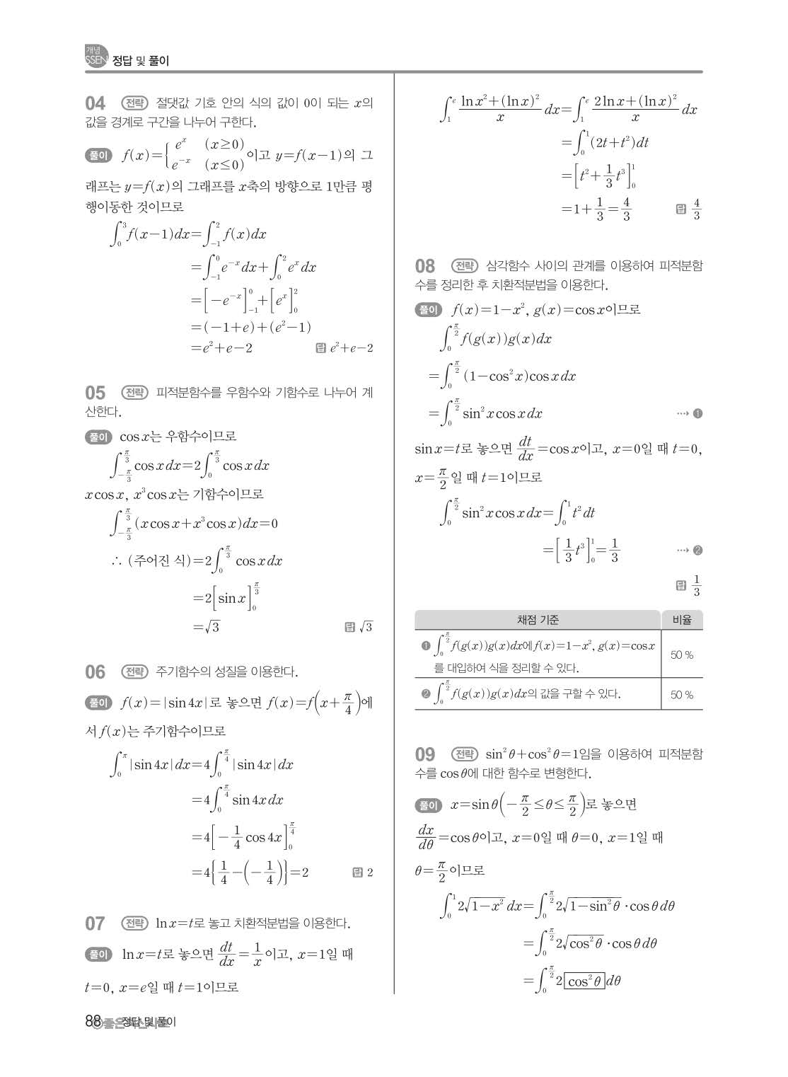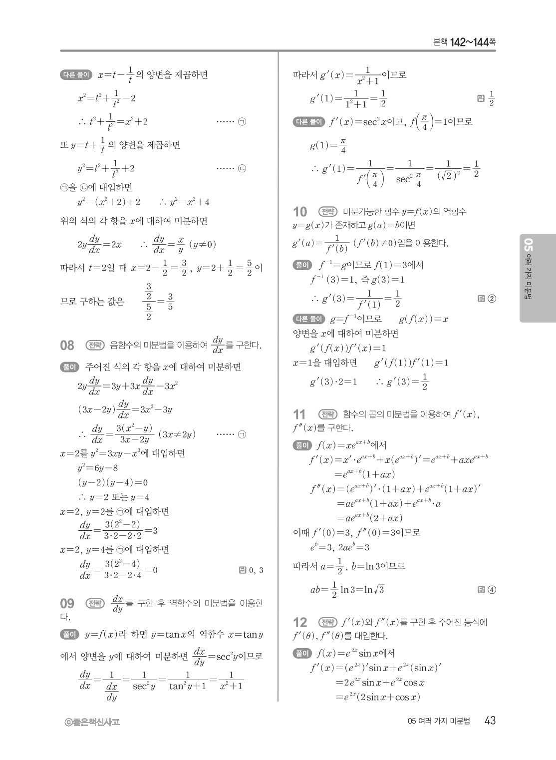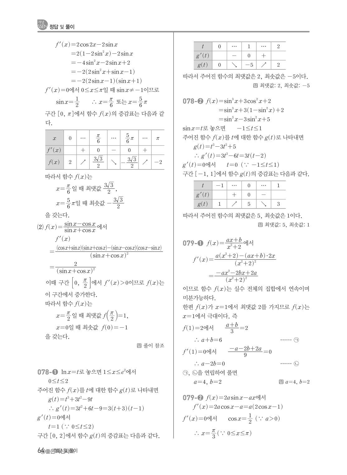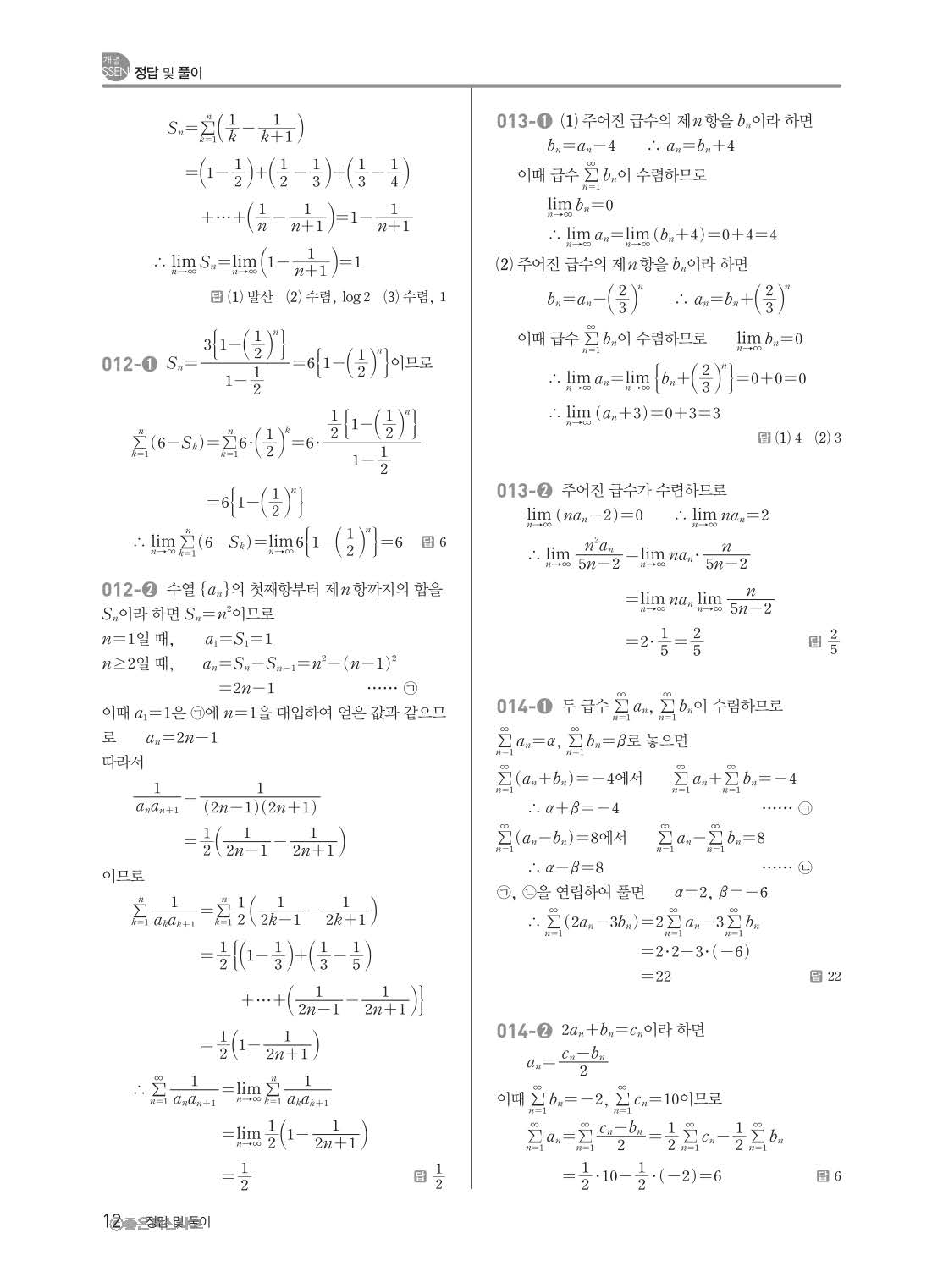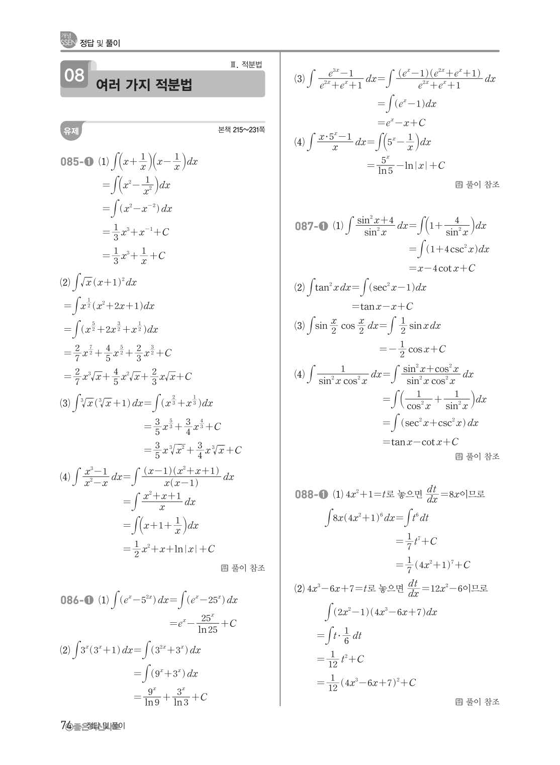 개념쎈 고등미적분 답지 해설지 사진답지 빠른답지 모바일최적화