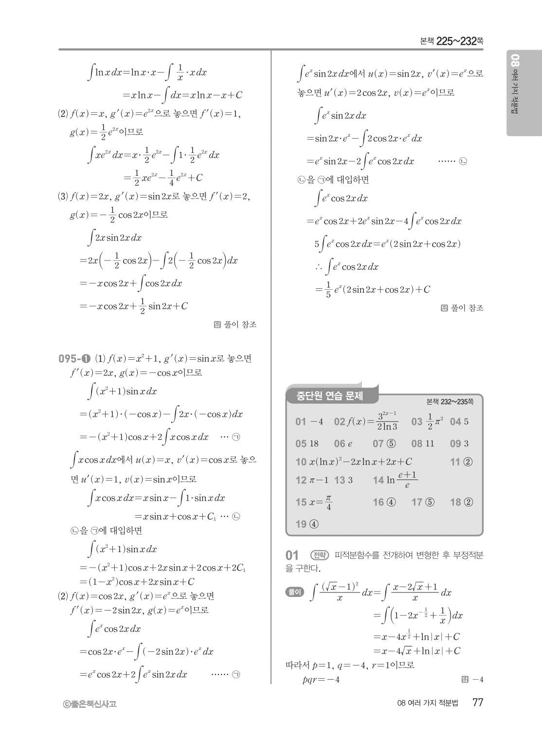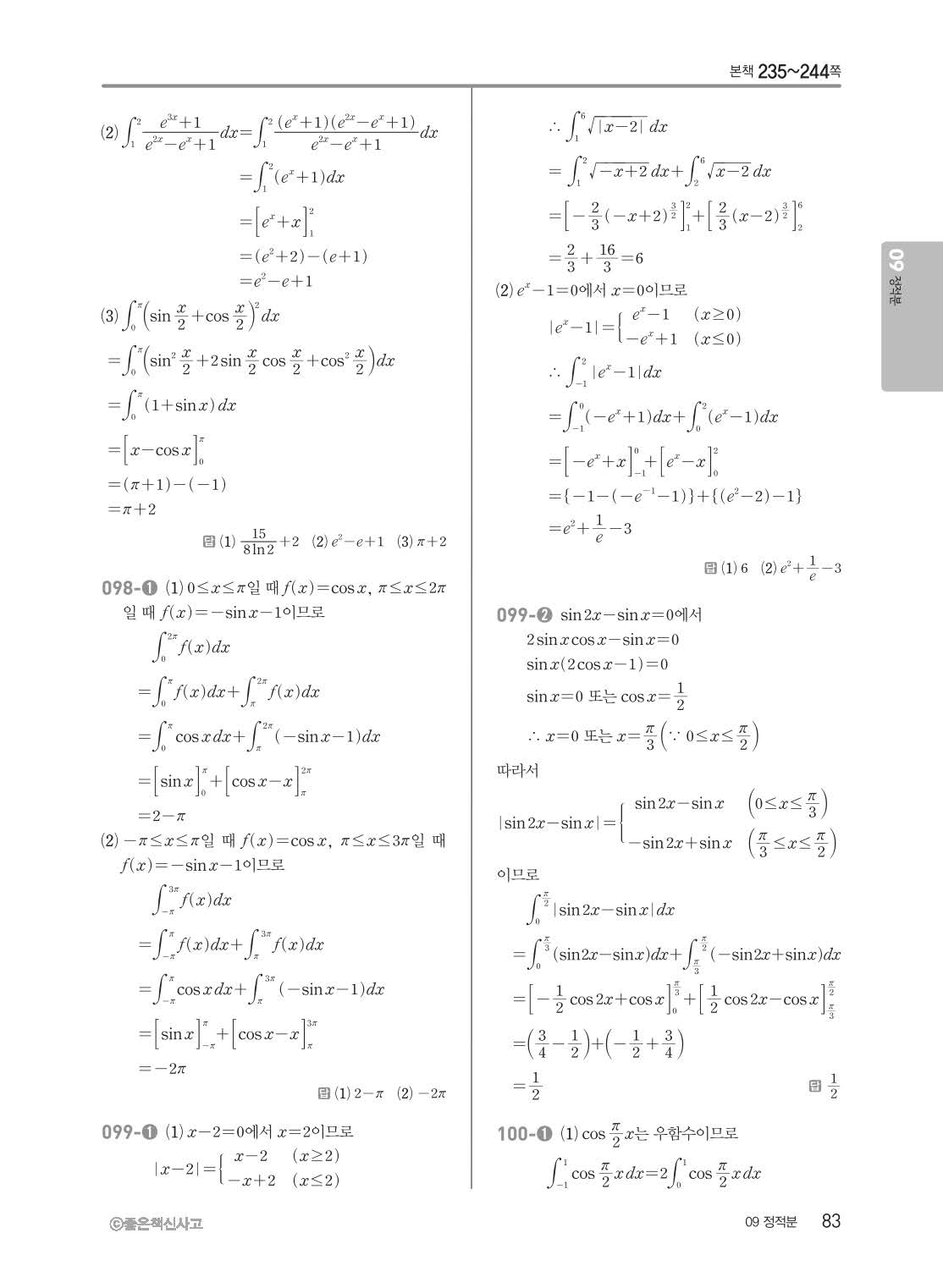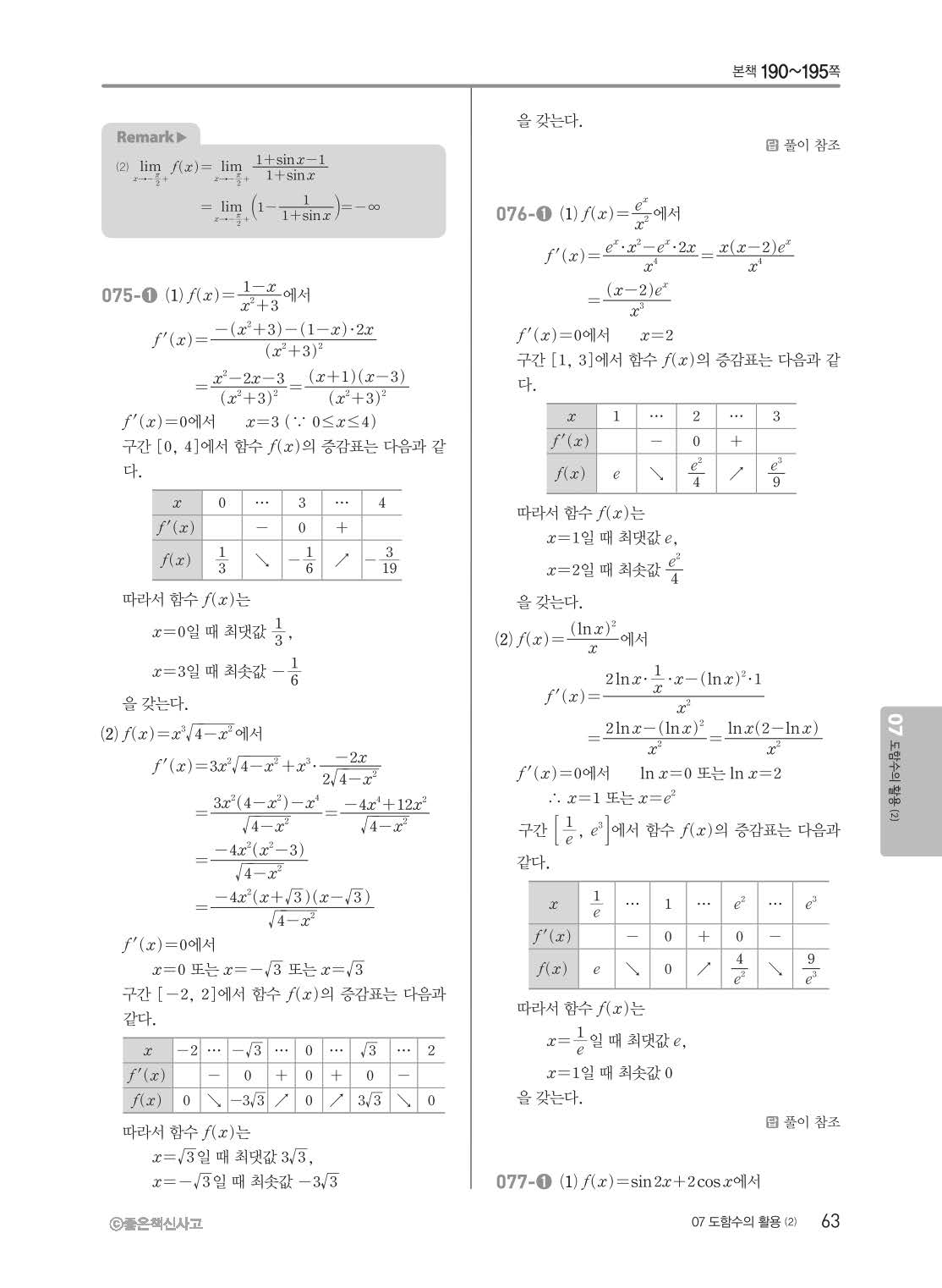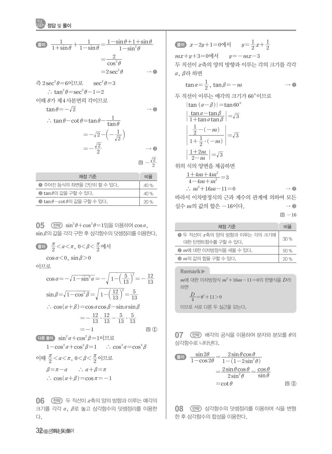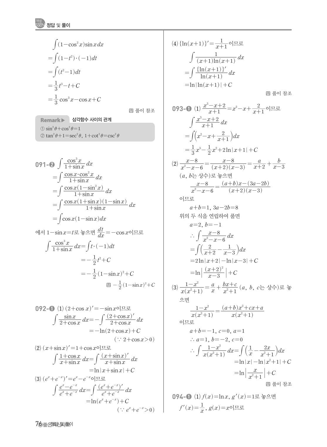 개념쎈 고등미적분 답지 해설지 사진답지 빠른답지 모바일최적화
