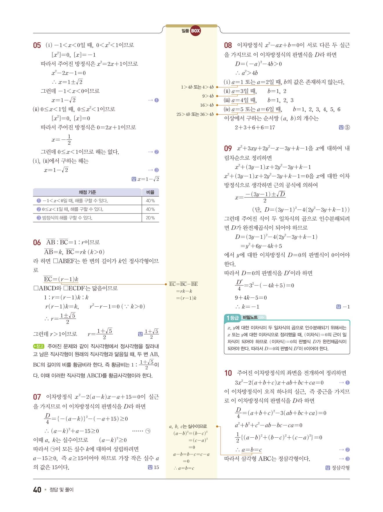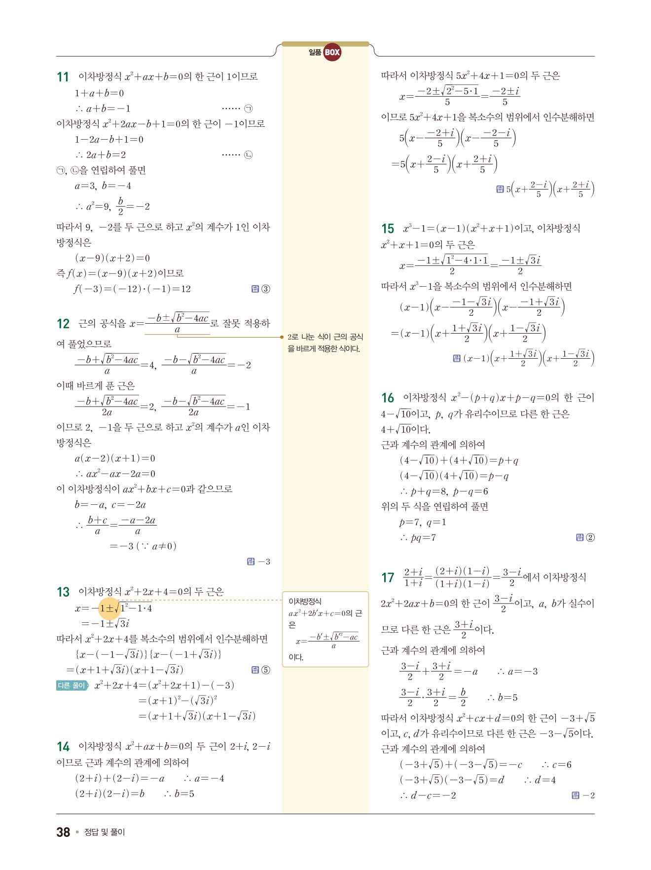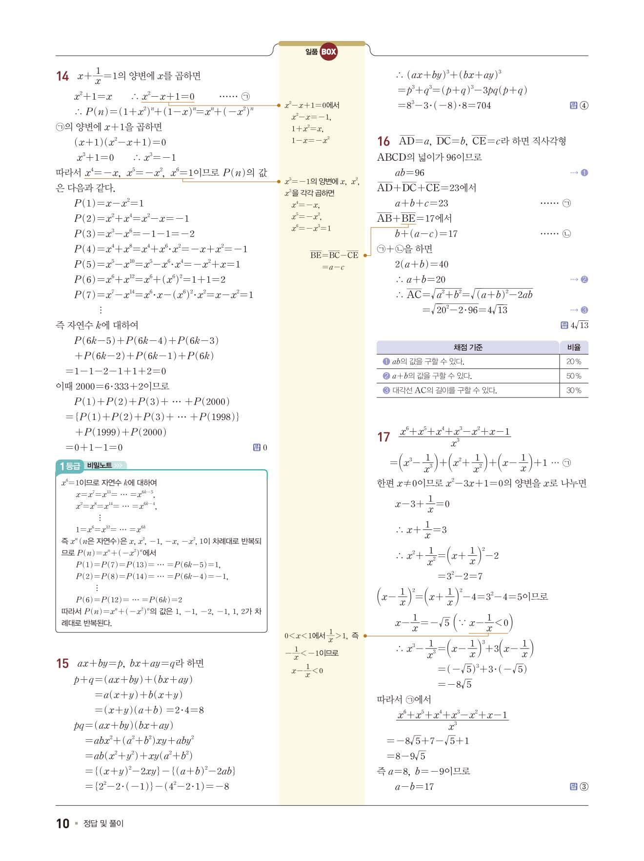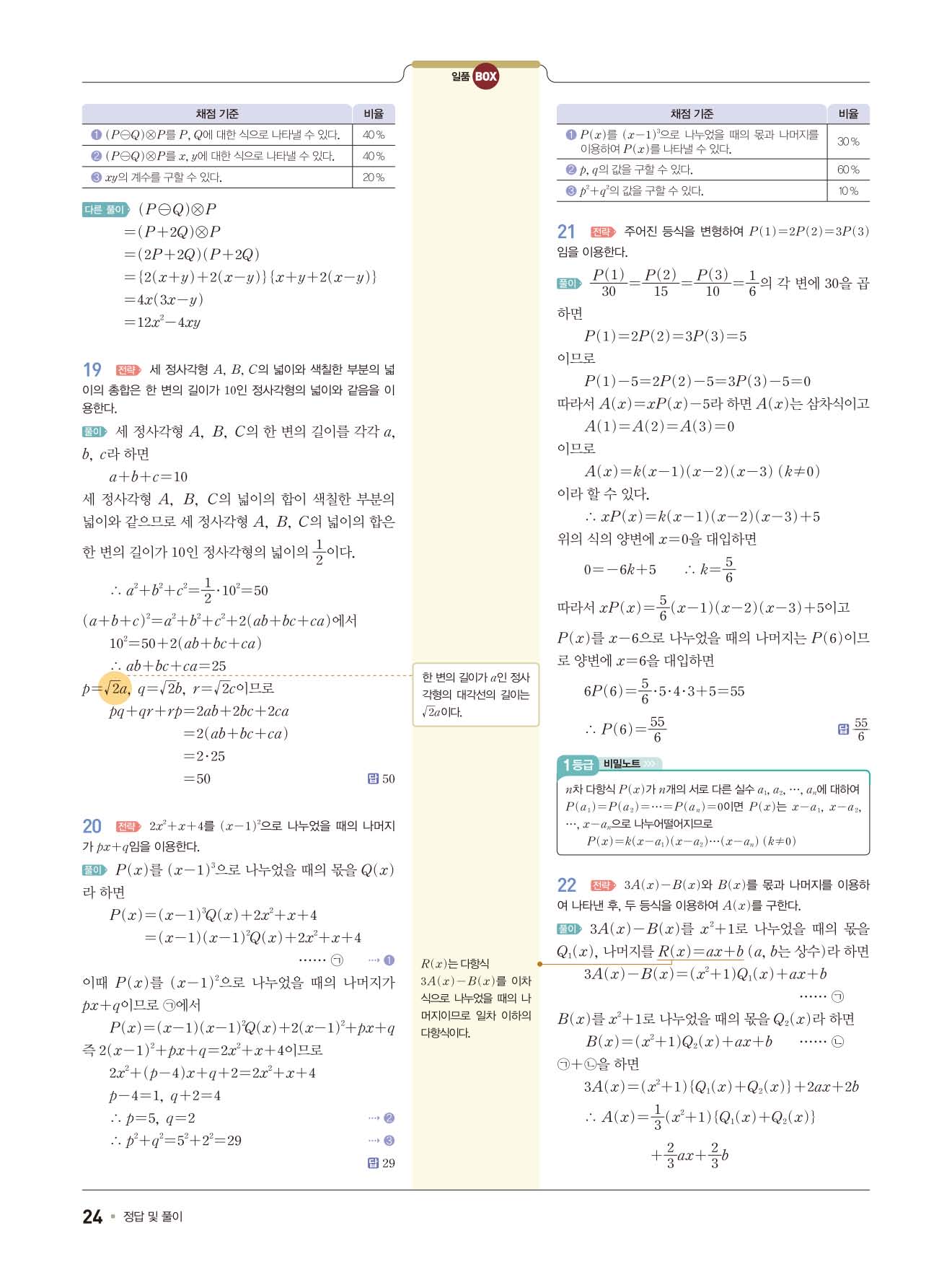 일품 고등수학상 답지 해설지 사진답지 빠른답지 모바일최적화