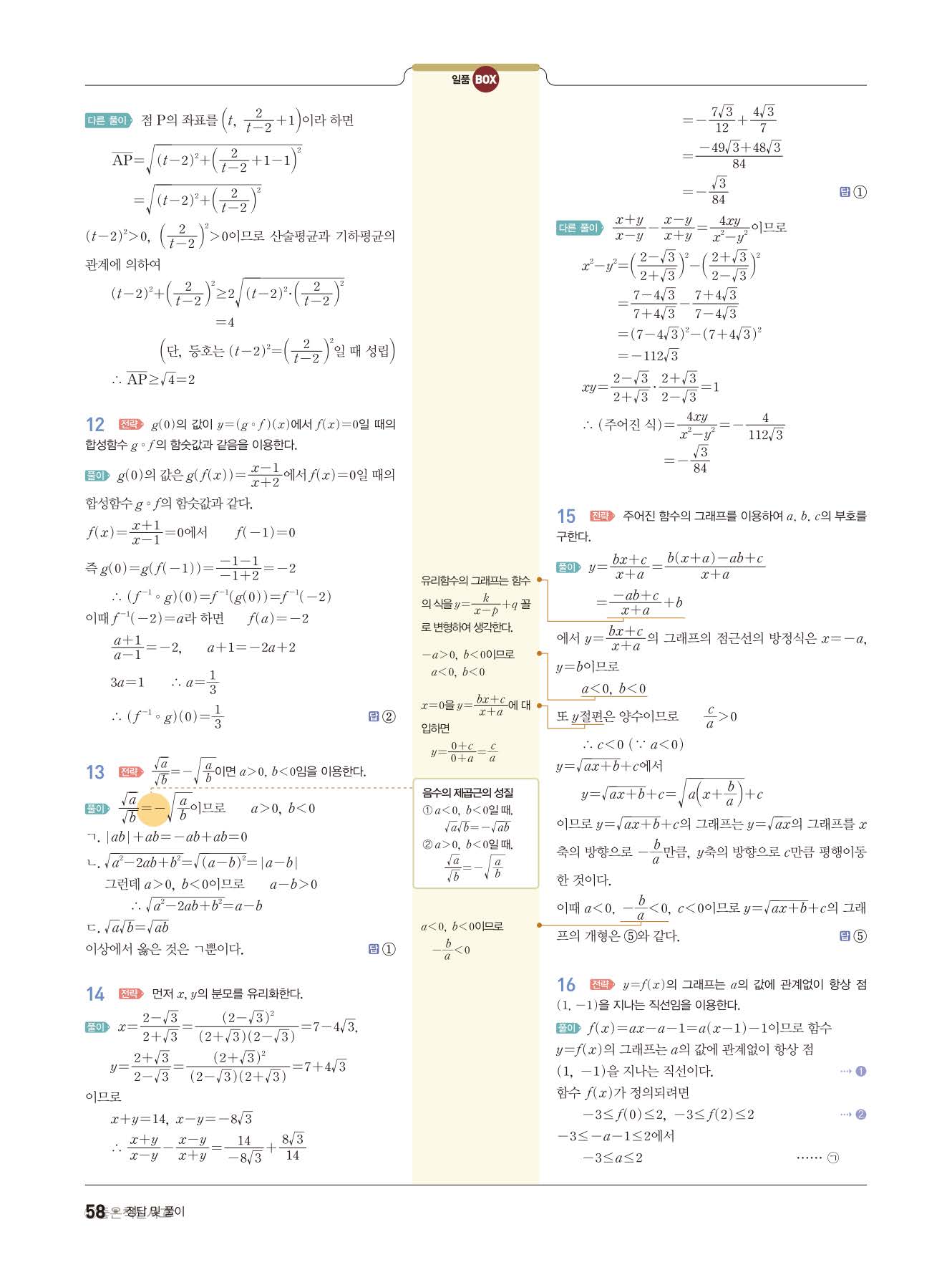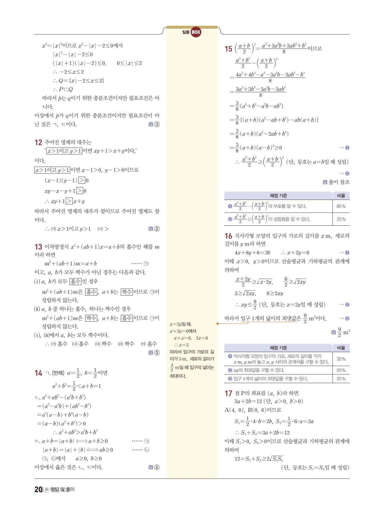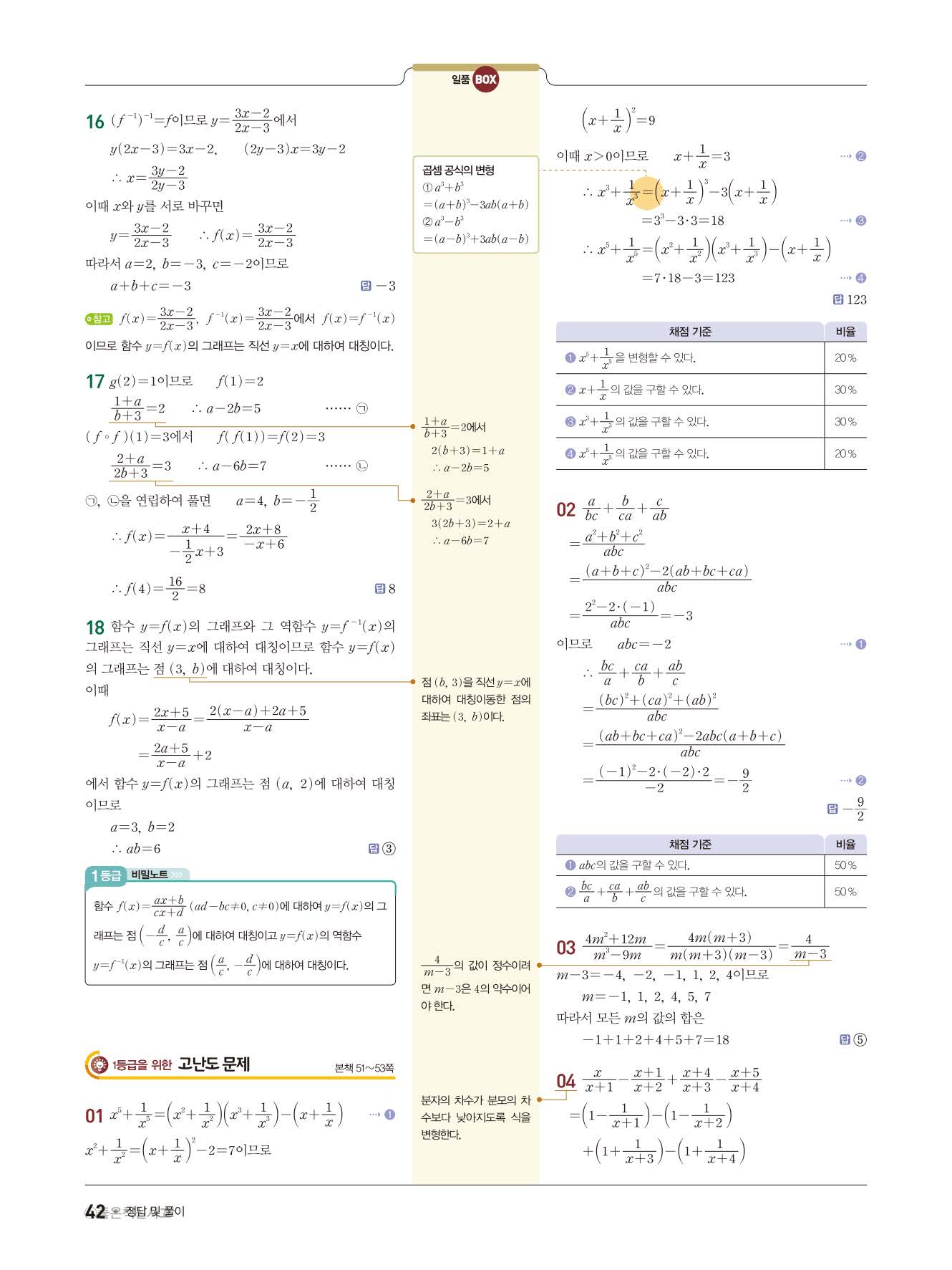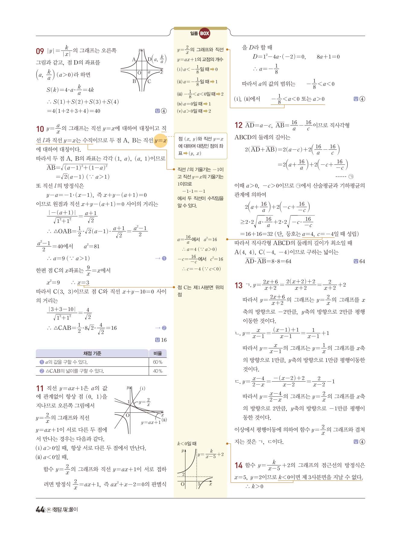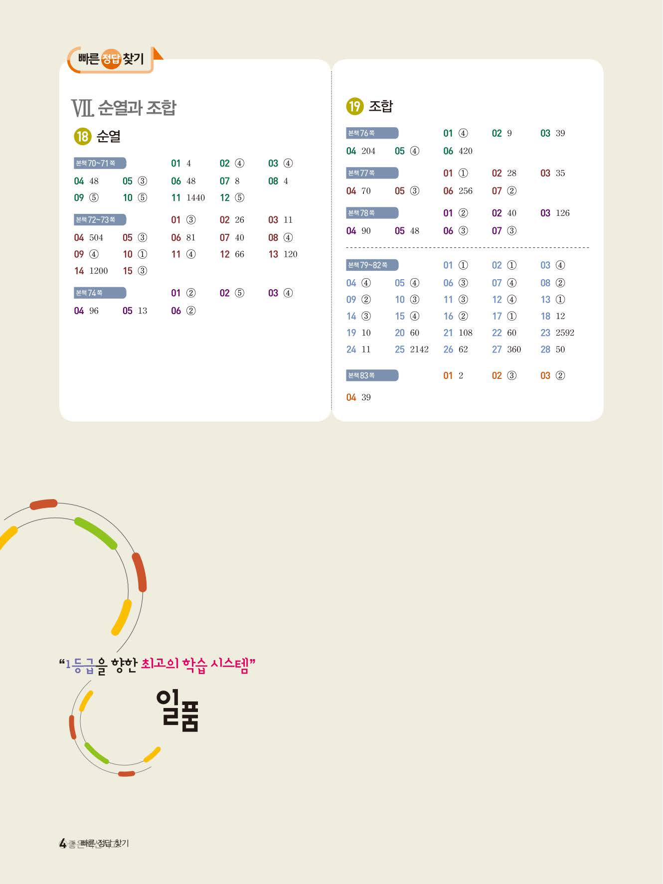 일품 고등수학 하 답지 해설지 사진답지 빠른답지 모바일최적화
