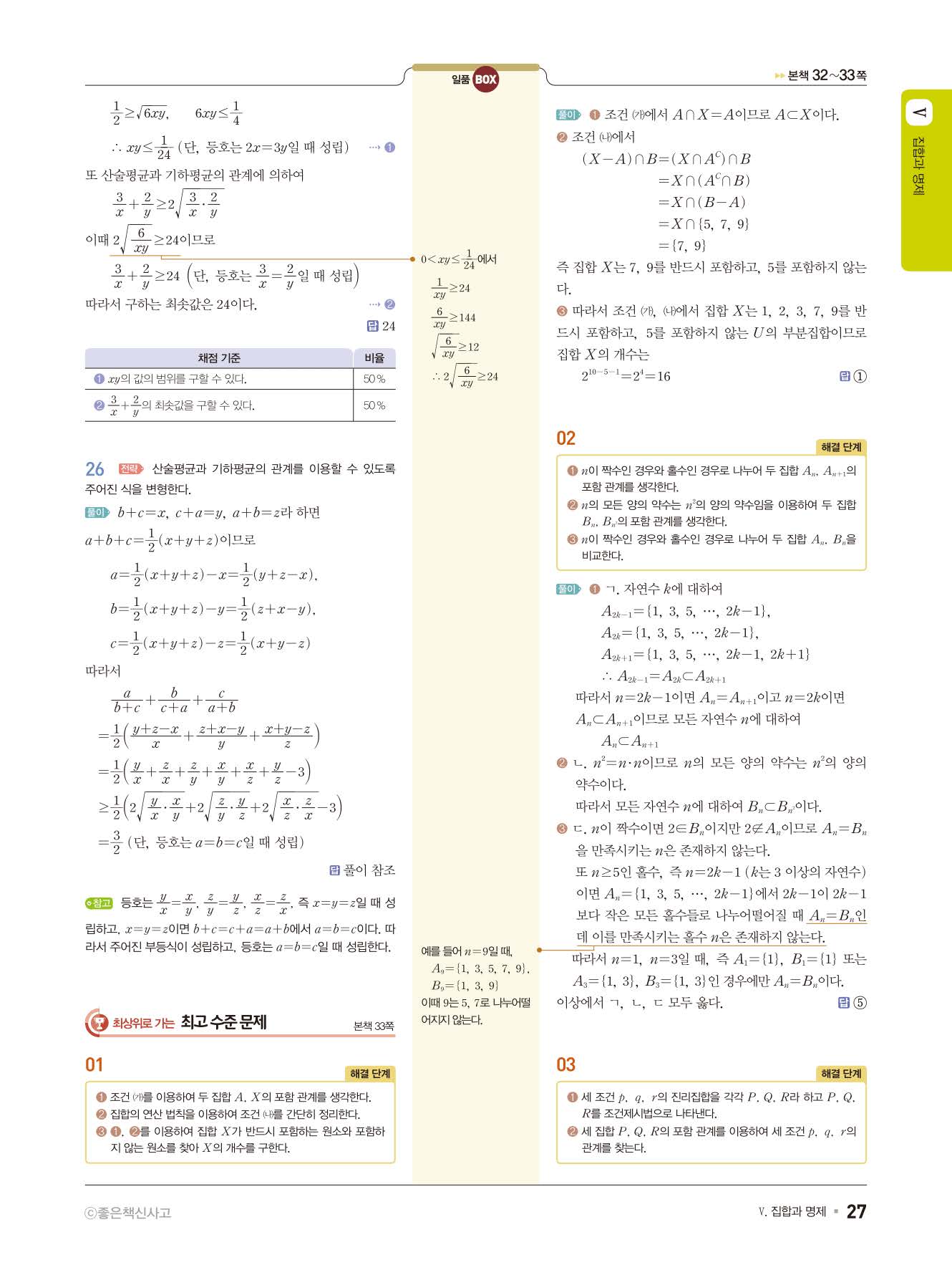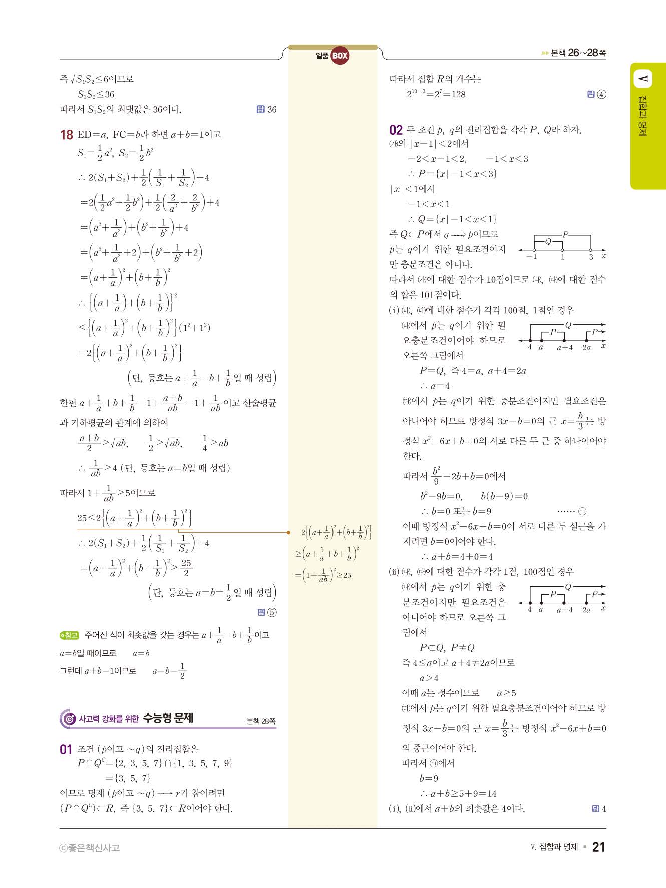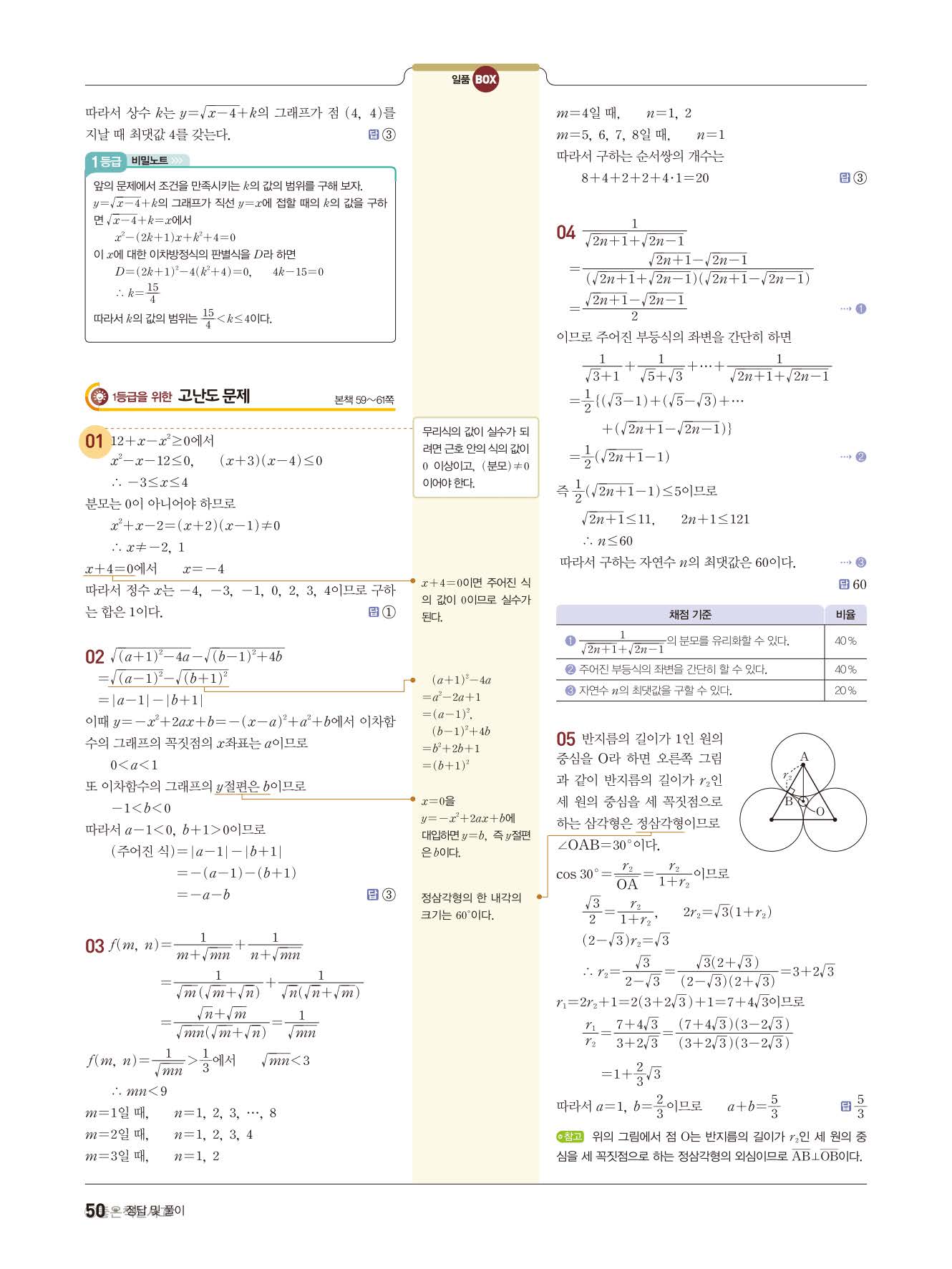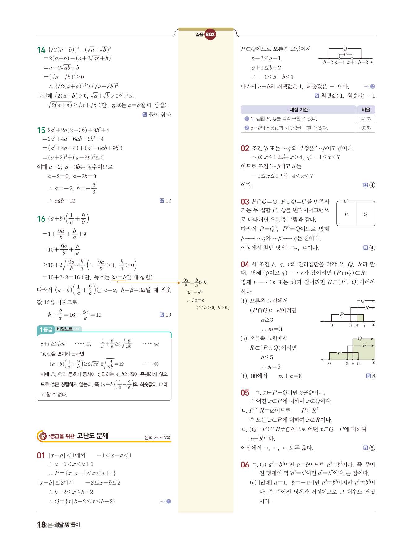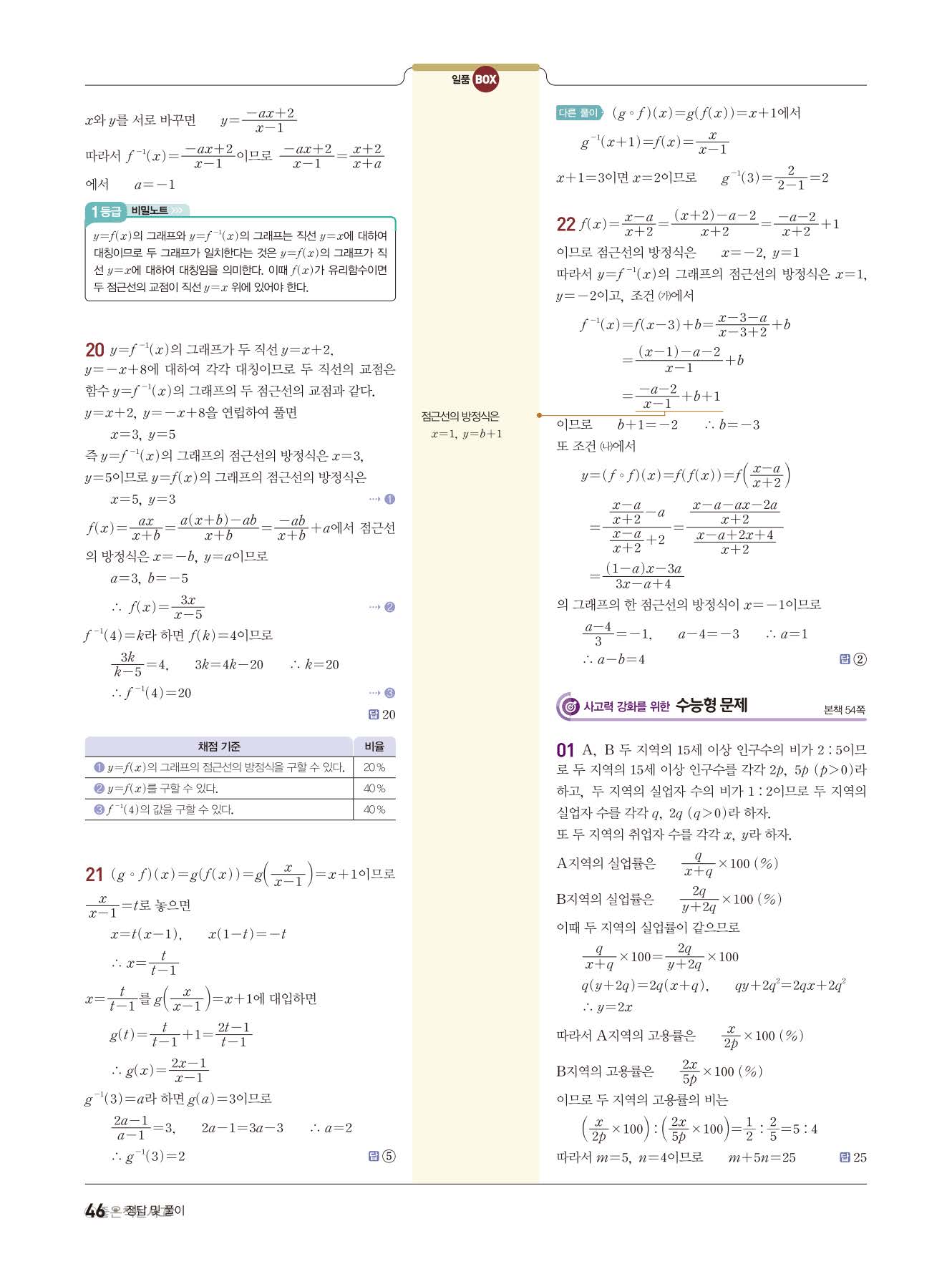 일품 고등수학 하 답지 해설지 사진답지 빠른답지 모바일최적화