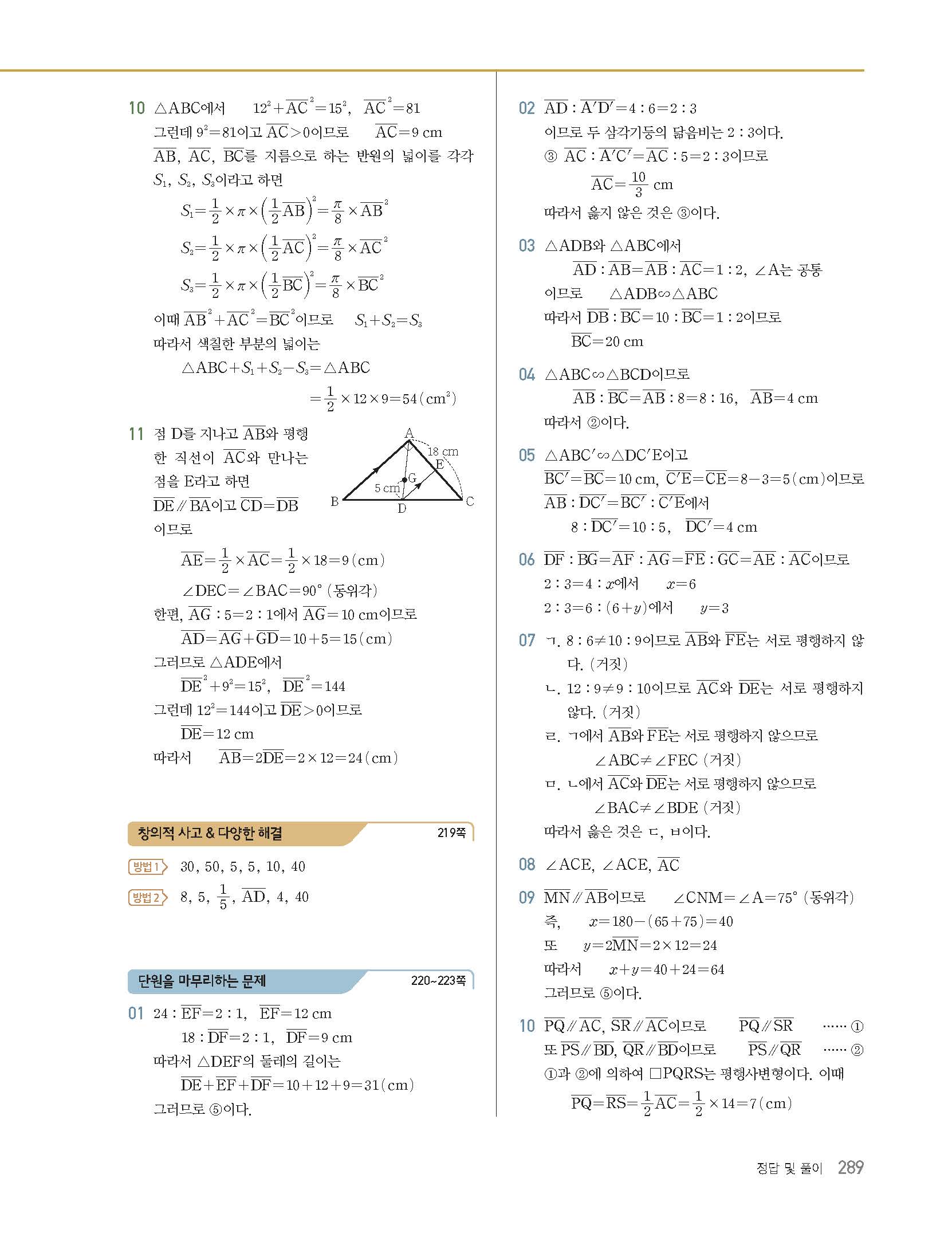 미래엔 중2 수학교과서 답지 사진답지 빠른답지 모바일최적화