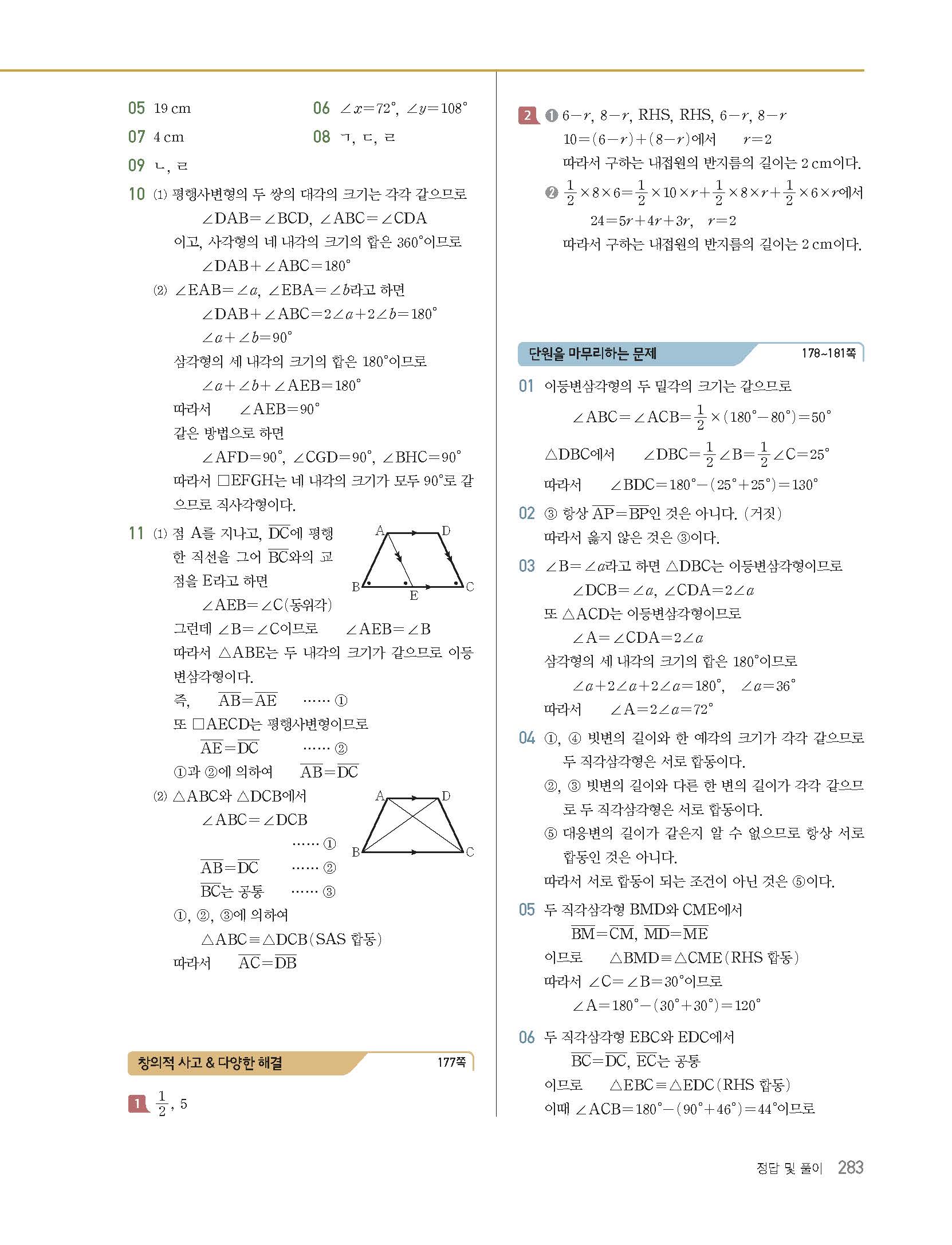 | 천재교육 이준열 중2 수학교과서 답지 | |