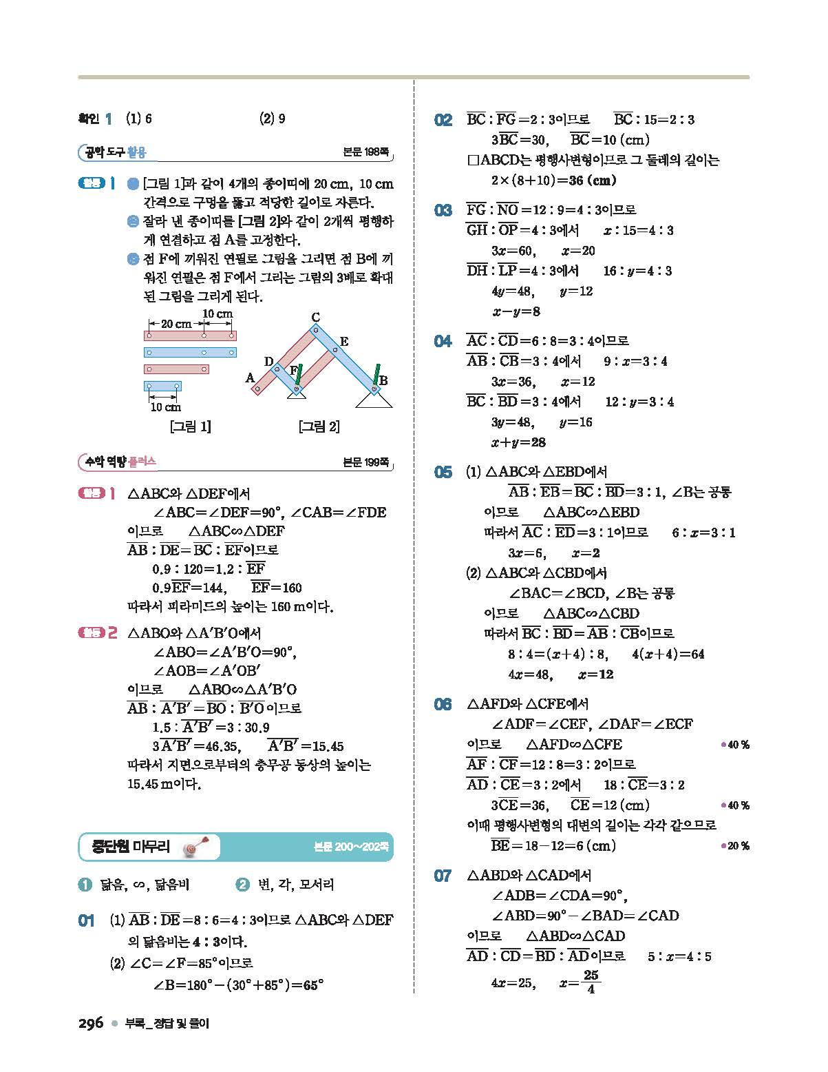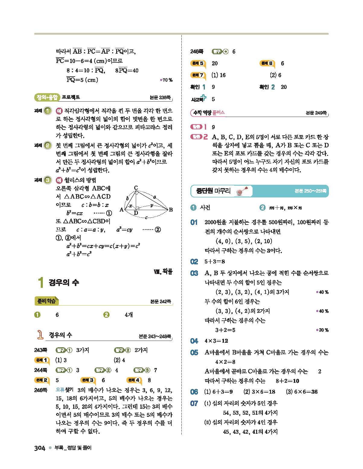 신사고 중2 수학교과서 답지 사진답지 빠른답지 모바일최적화