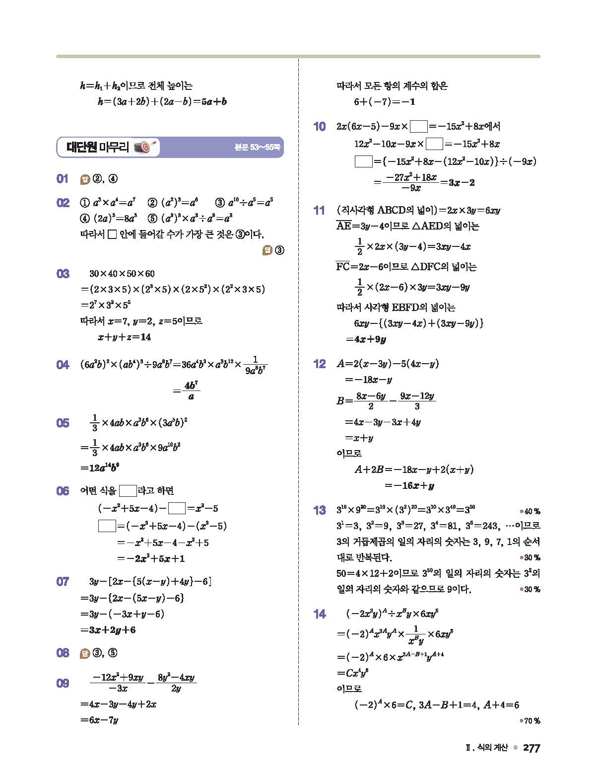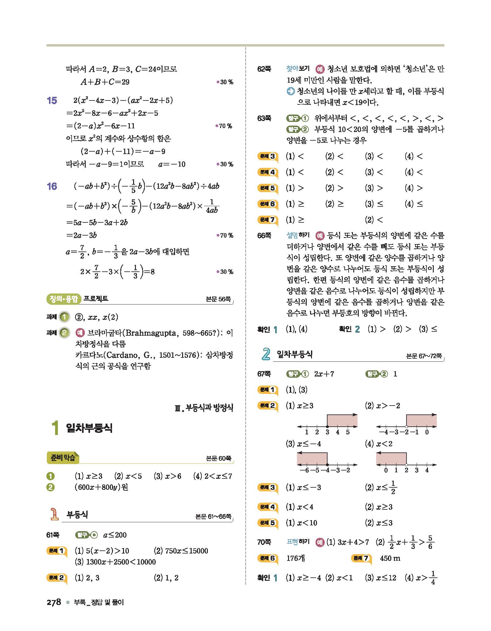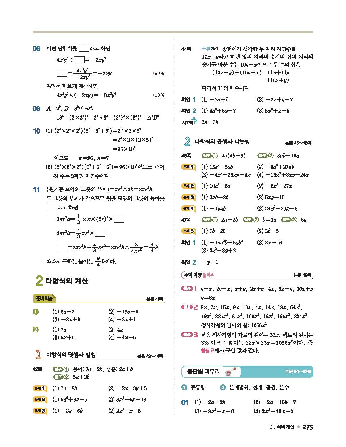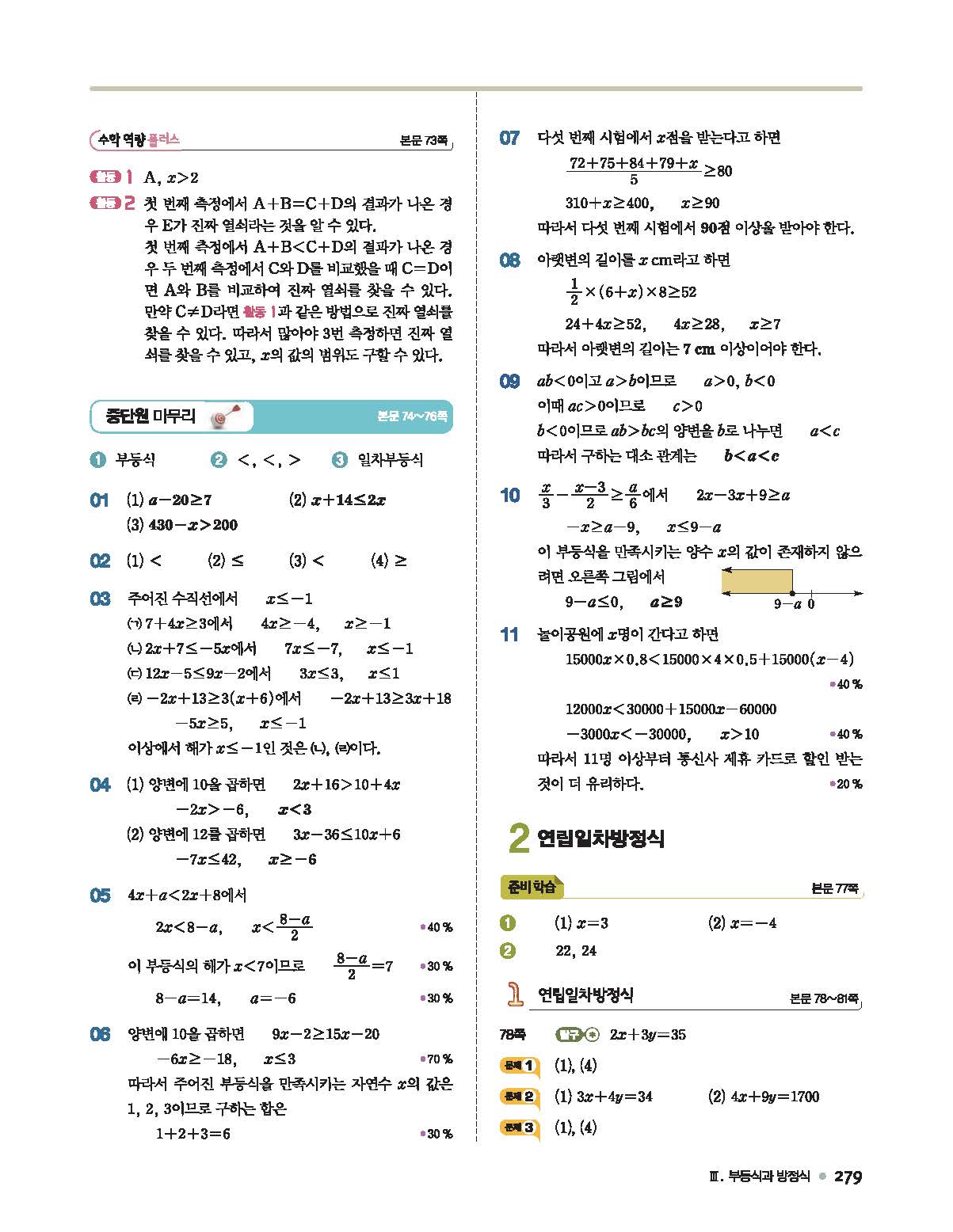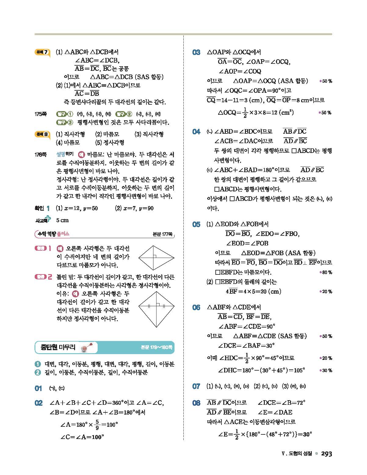 | 천재교육 이준열 중2 수학교과서 답지 | |