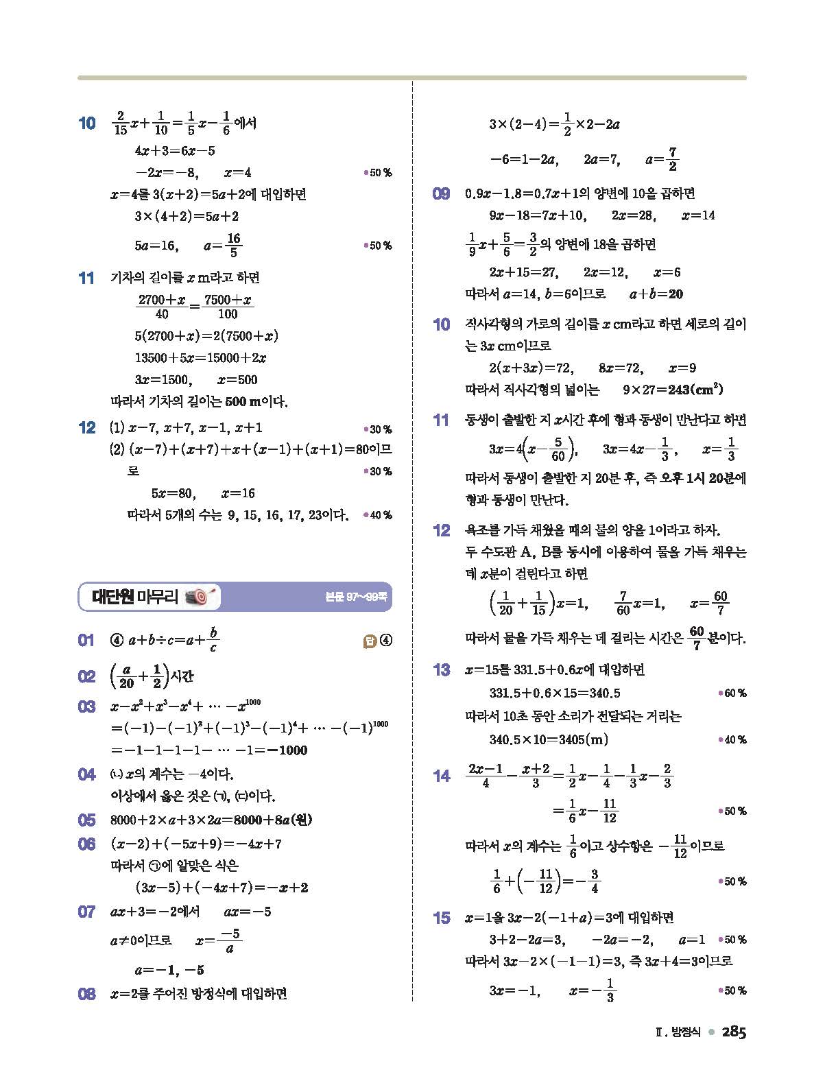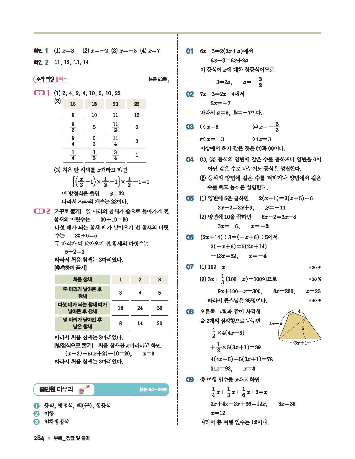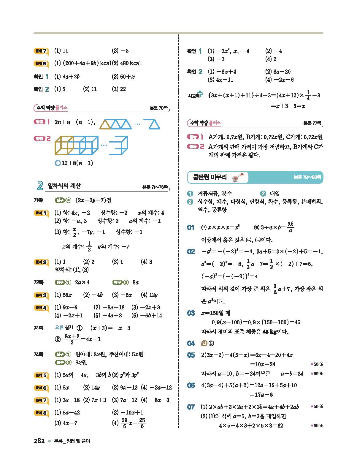 신사고 중1 수학교과서 답지 사진답지 빠른답지 모바일최적화