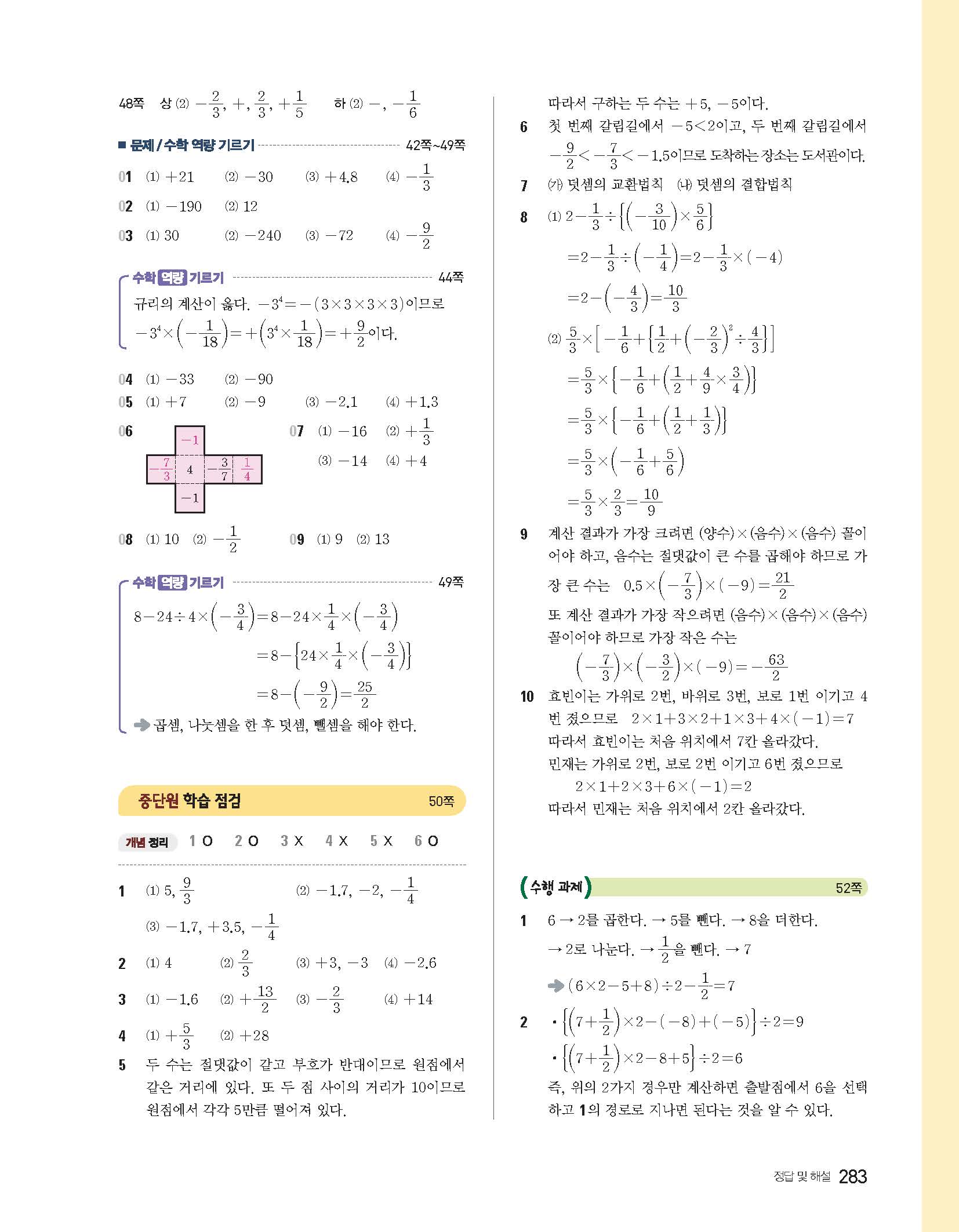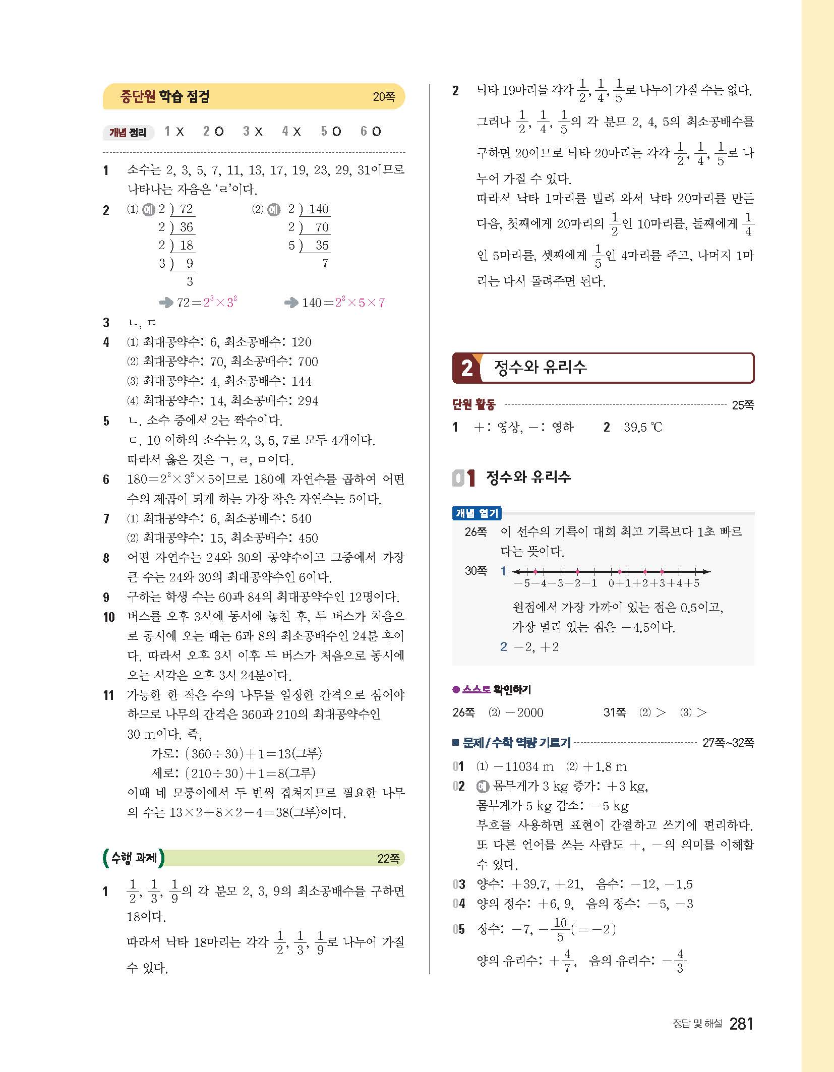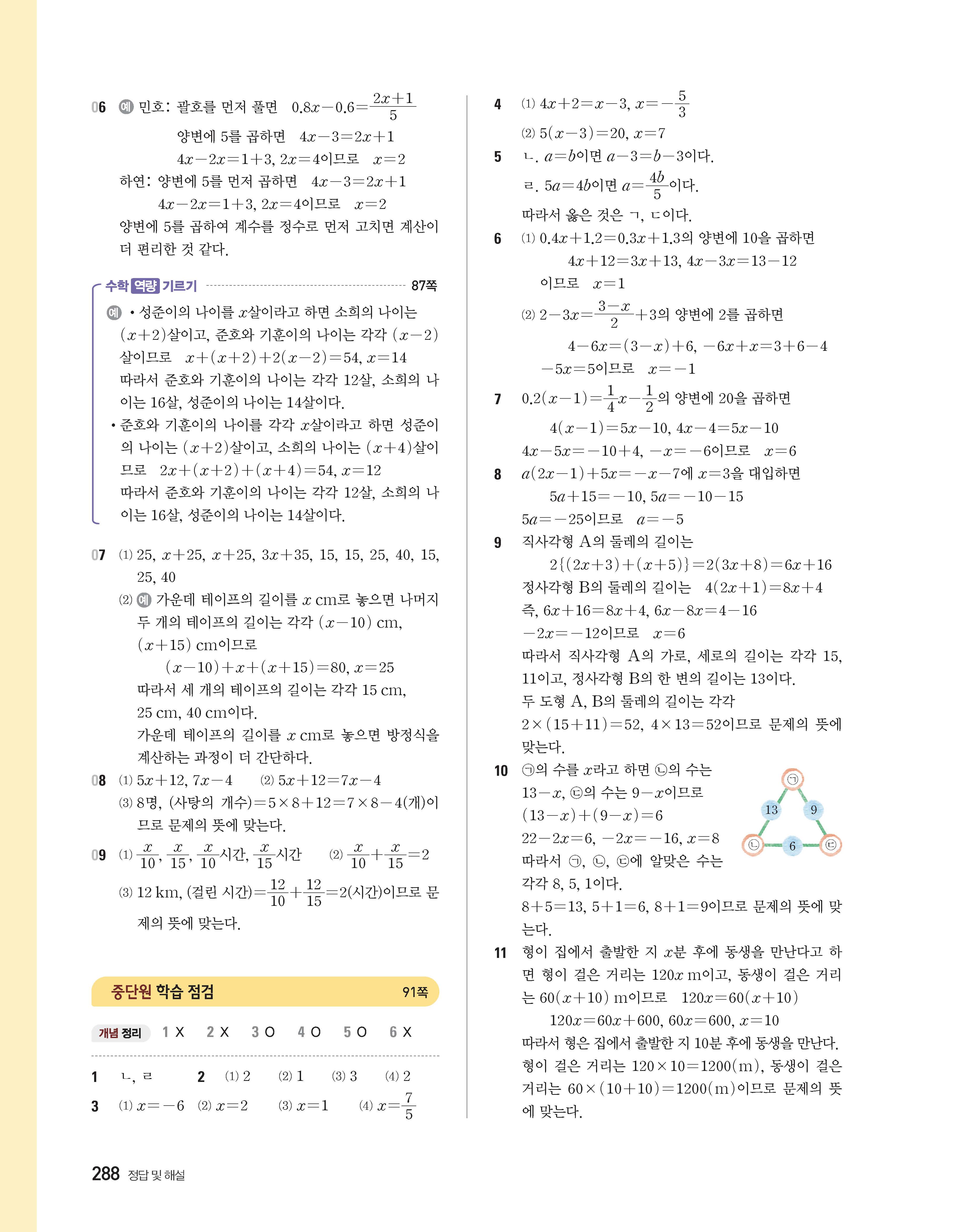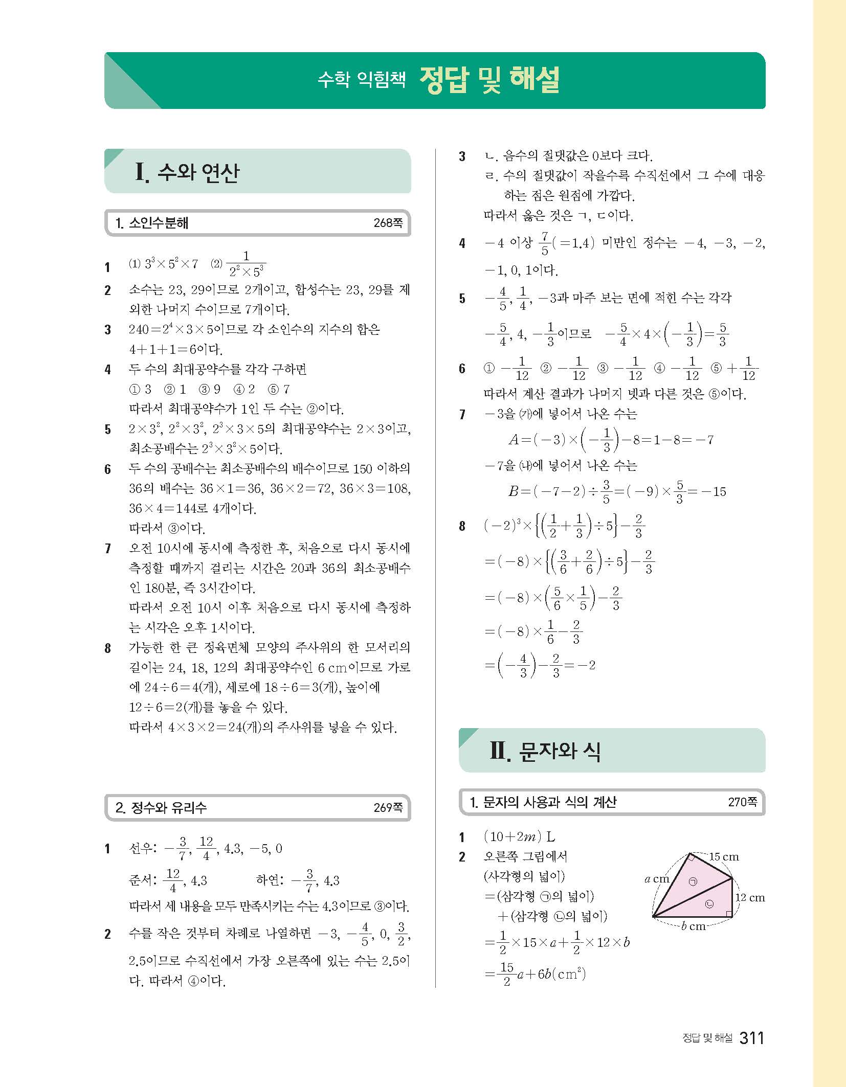 비상 중1 수학교과서 답지 사진답지 빠른답지 모바일최적화