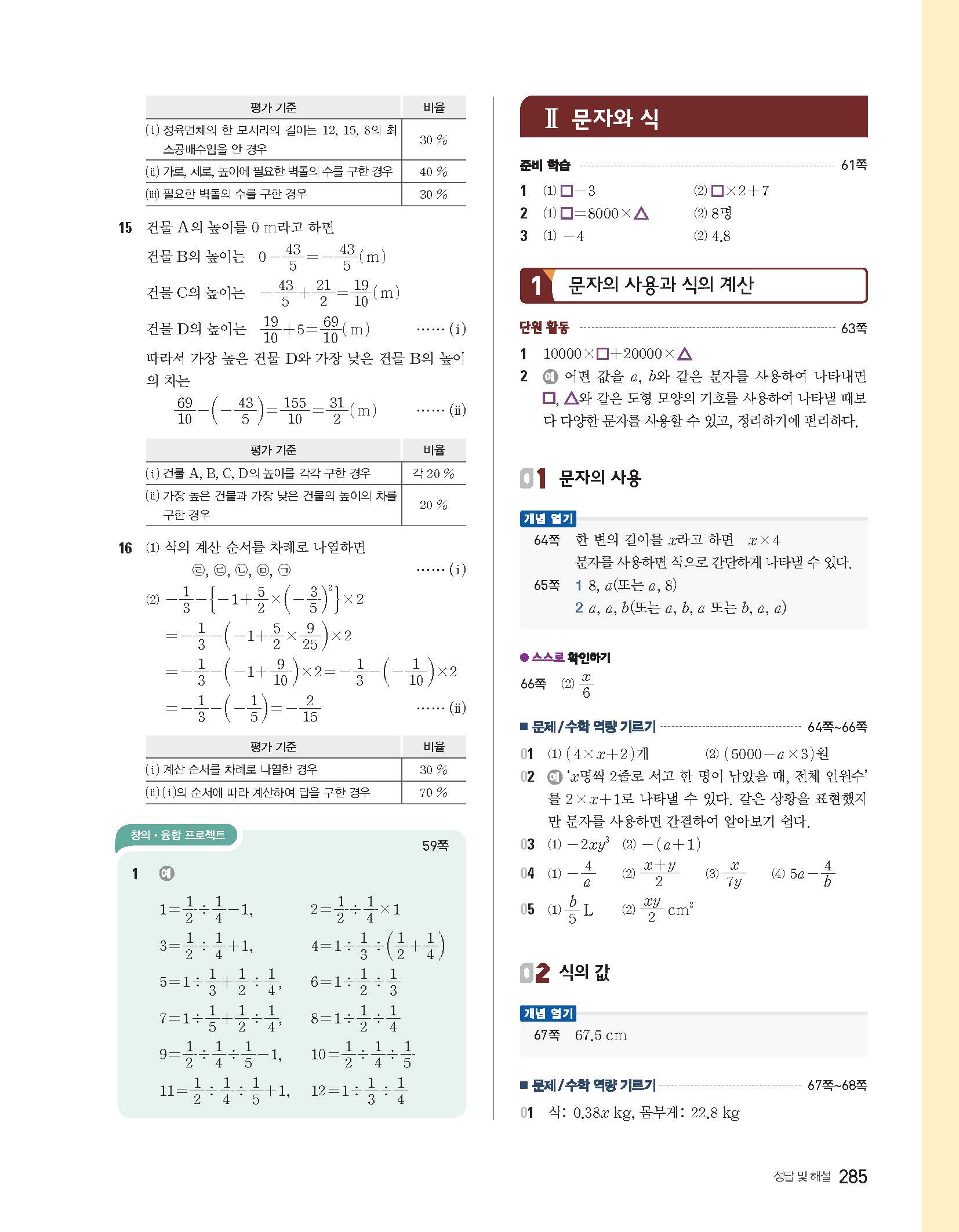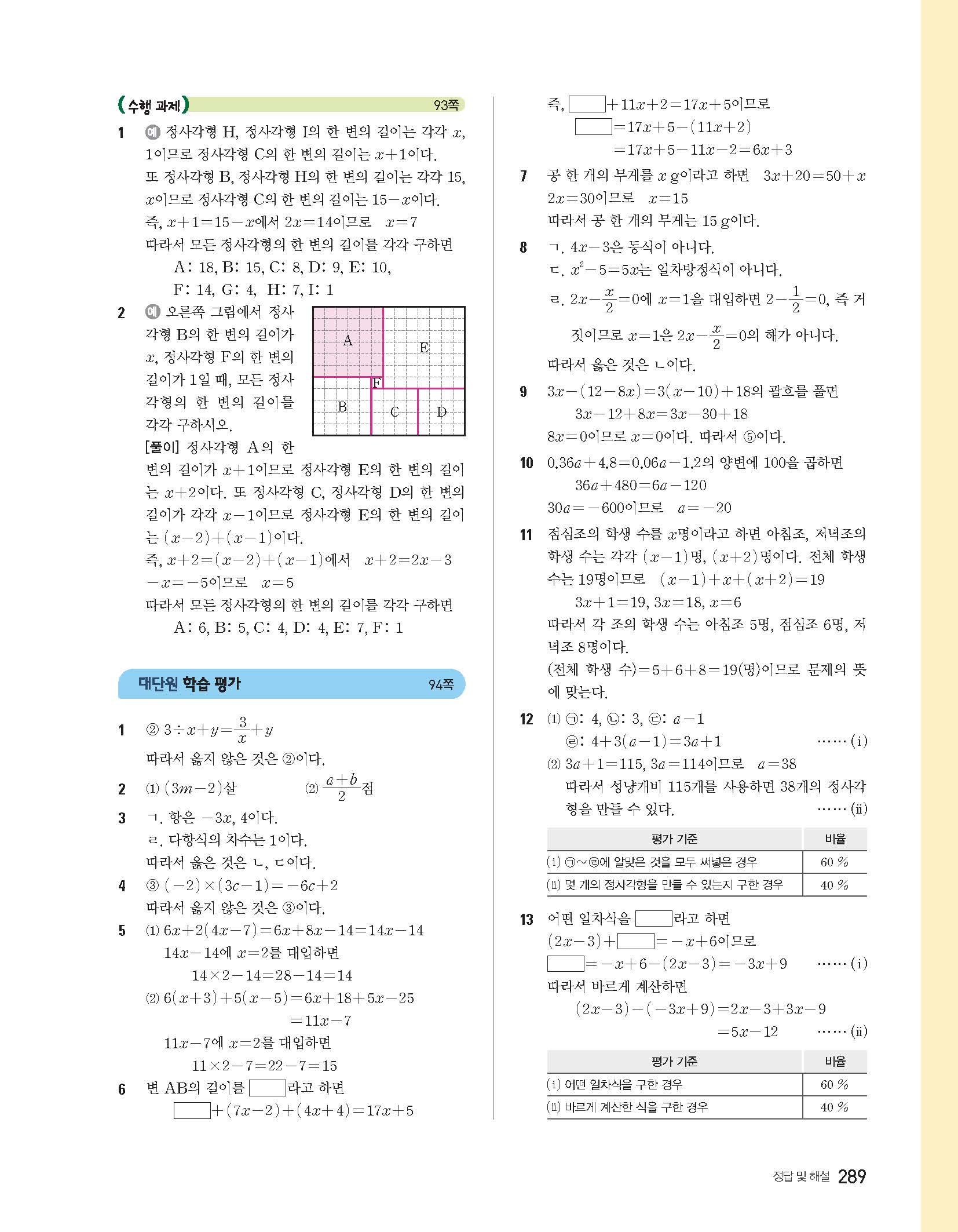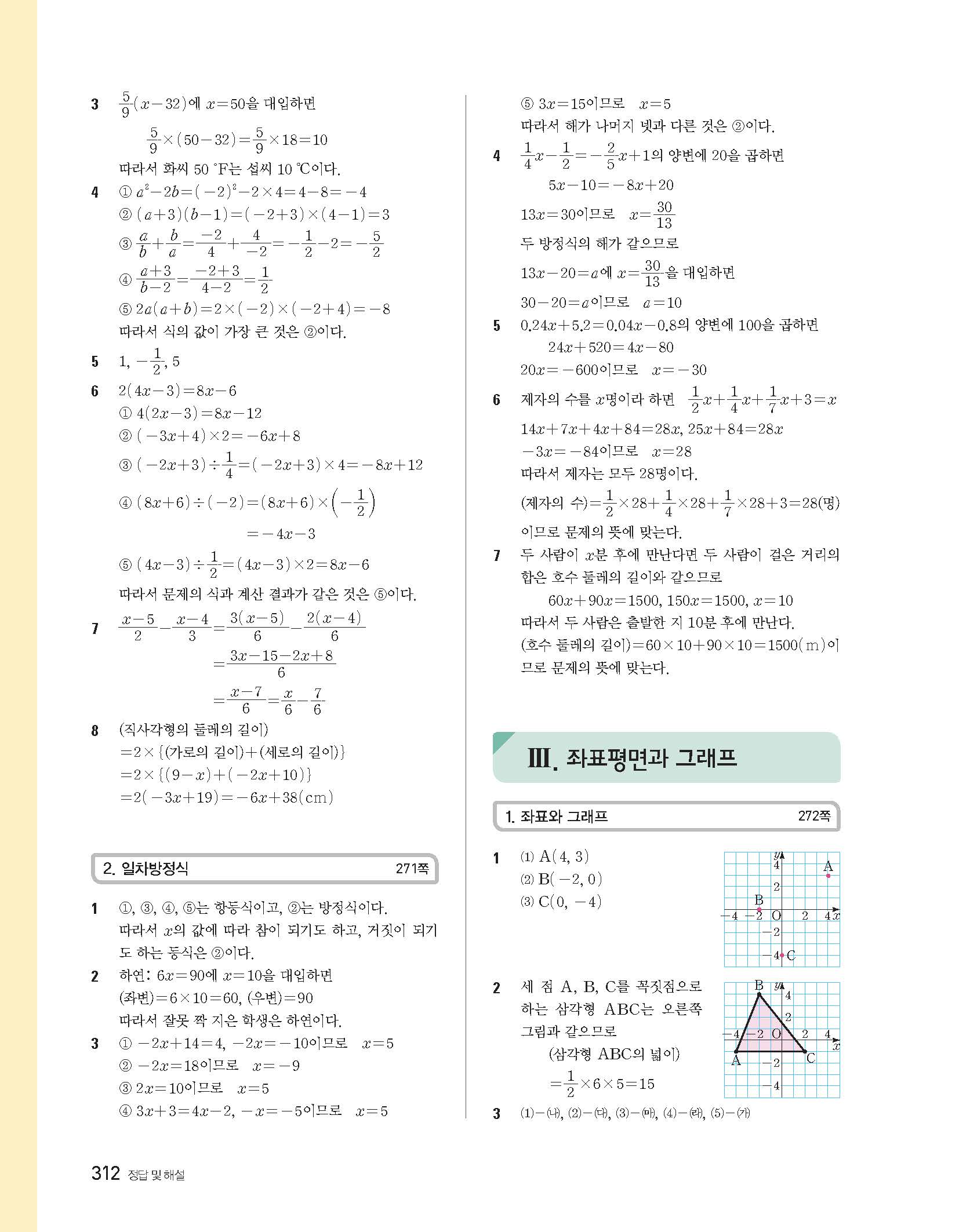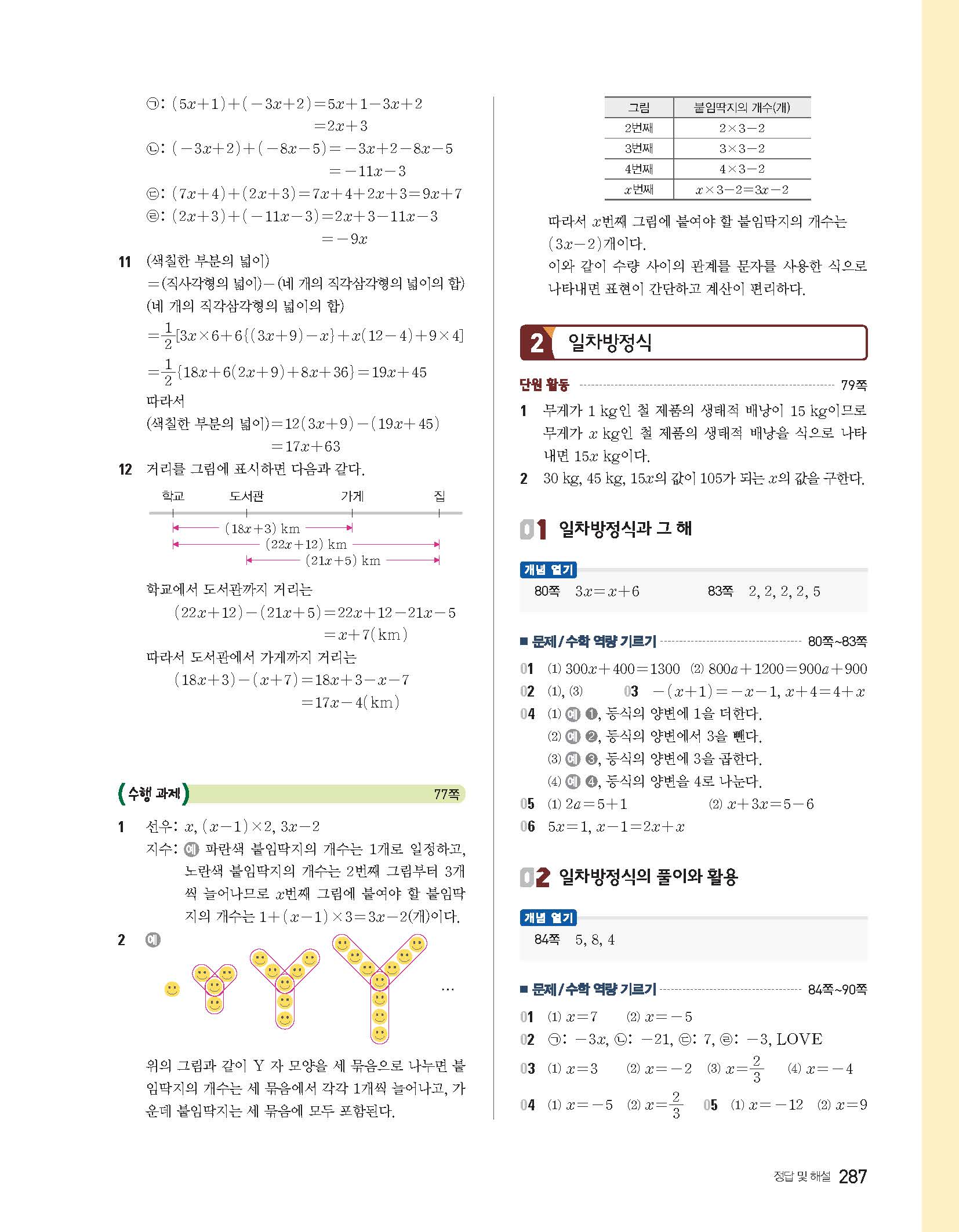 비상 중1 수학교과서 답지 사진답지 빠른답지 모바일최적화