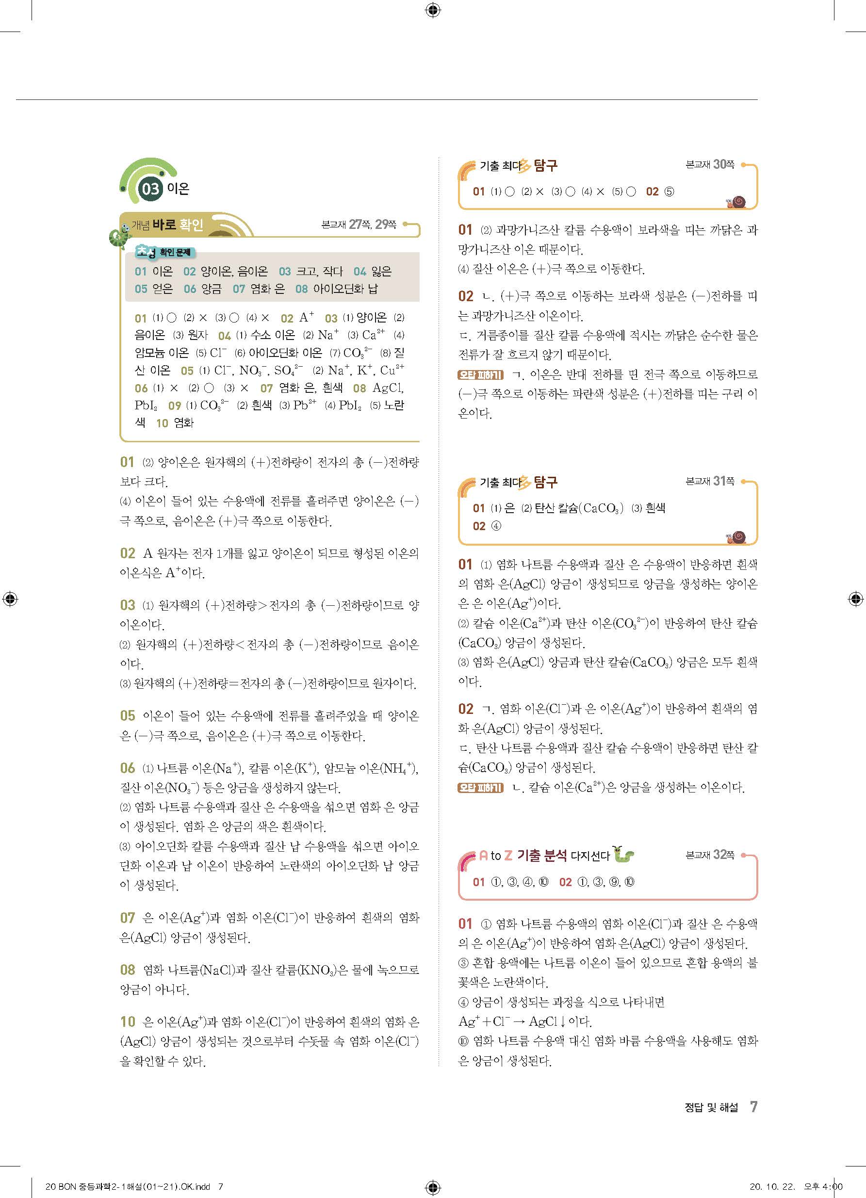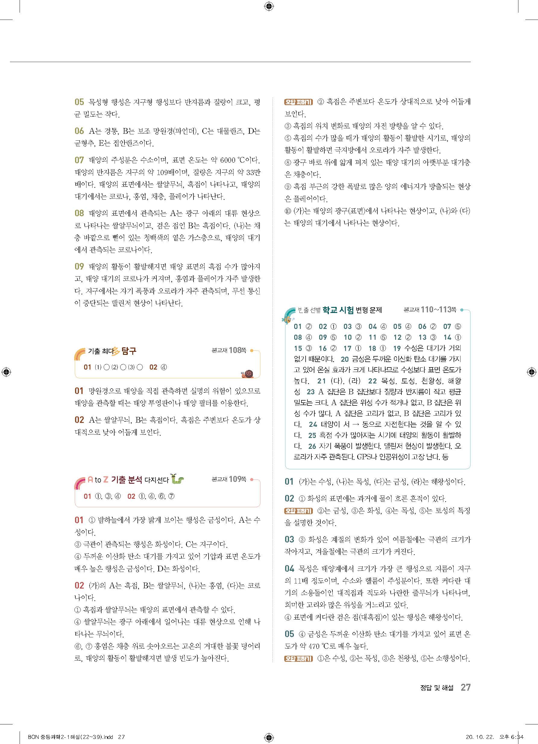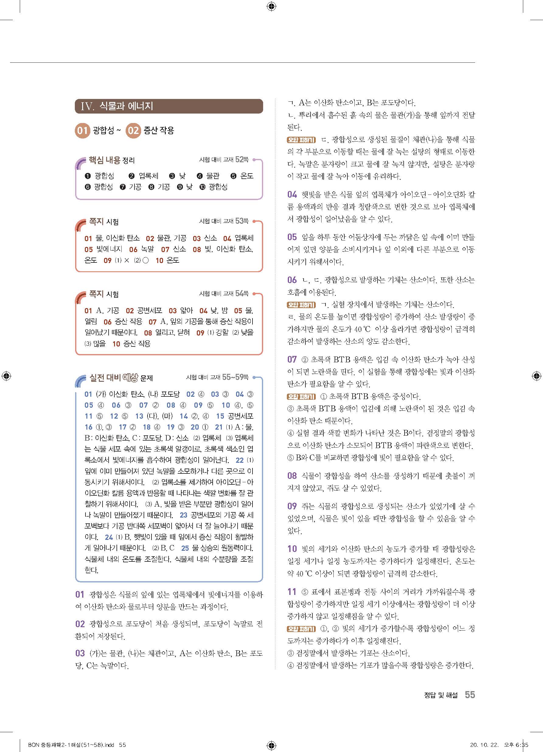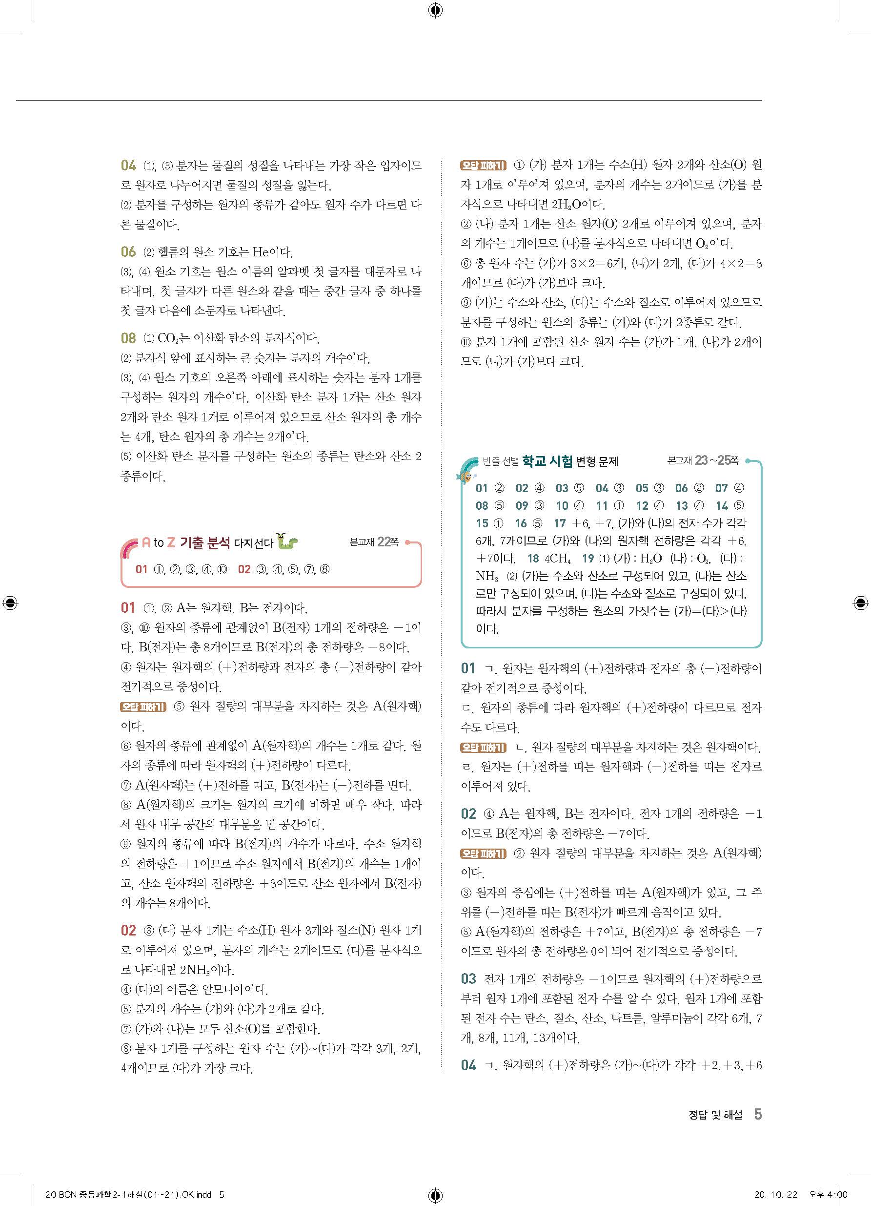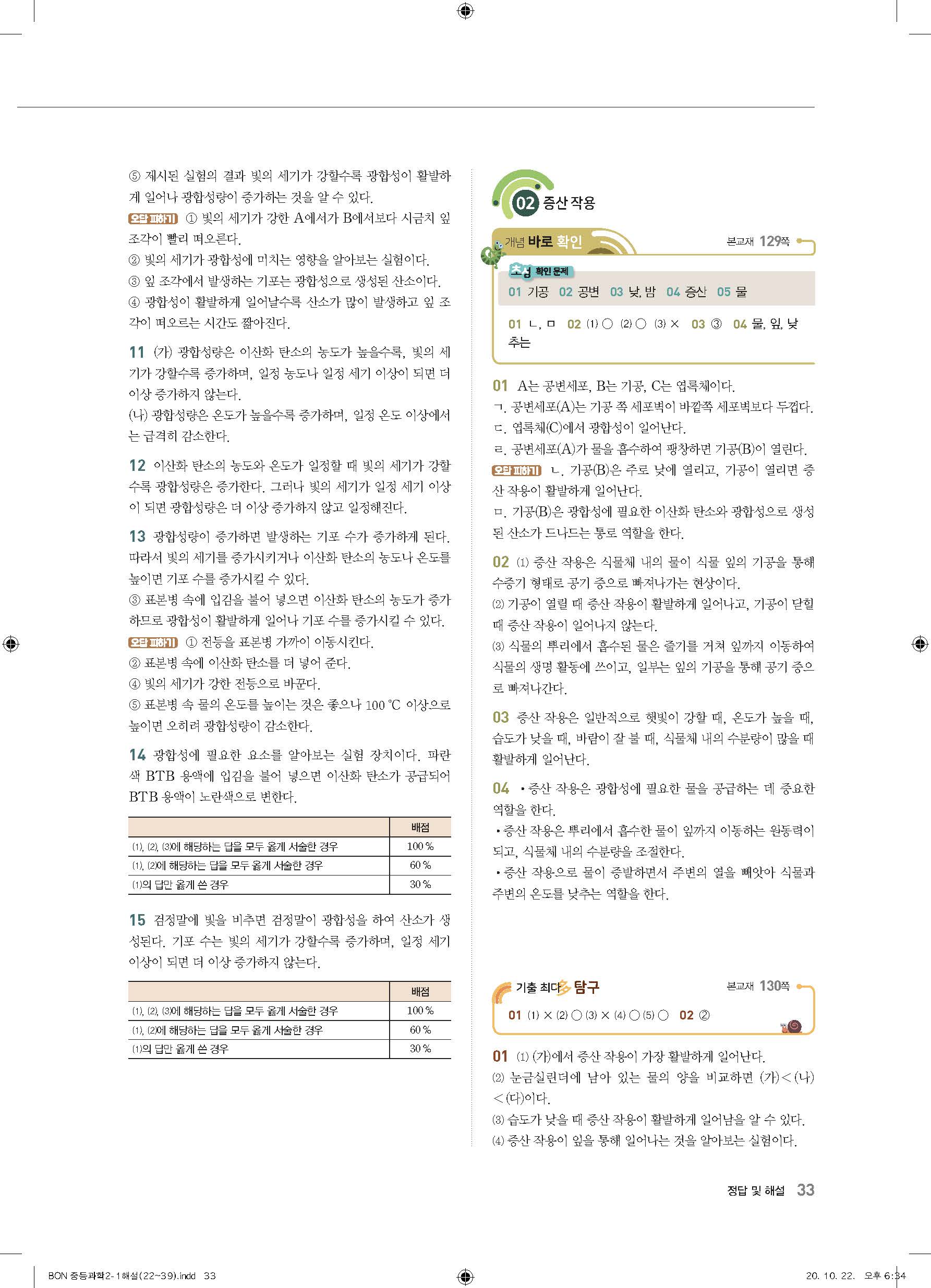 이투스 bon중등과학 2-1 답지 사진답지 빠른답지 모바일최적화