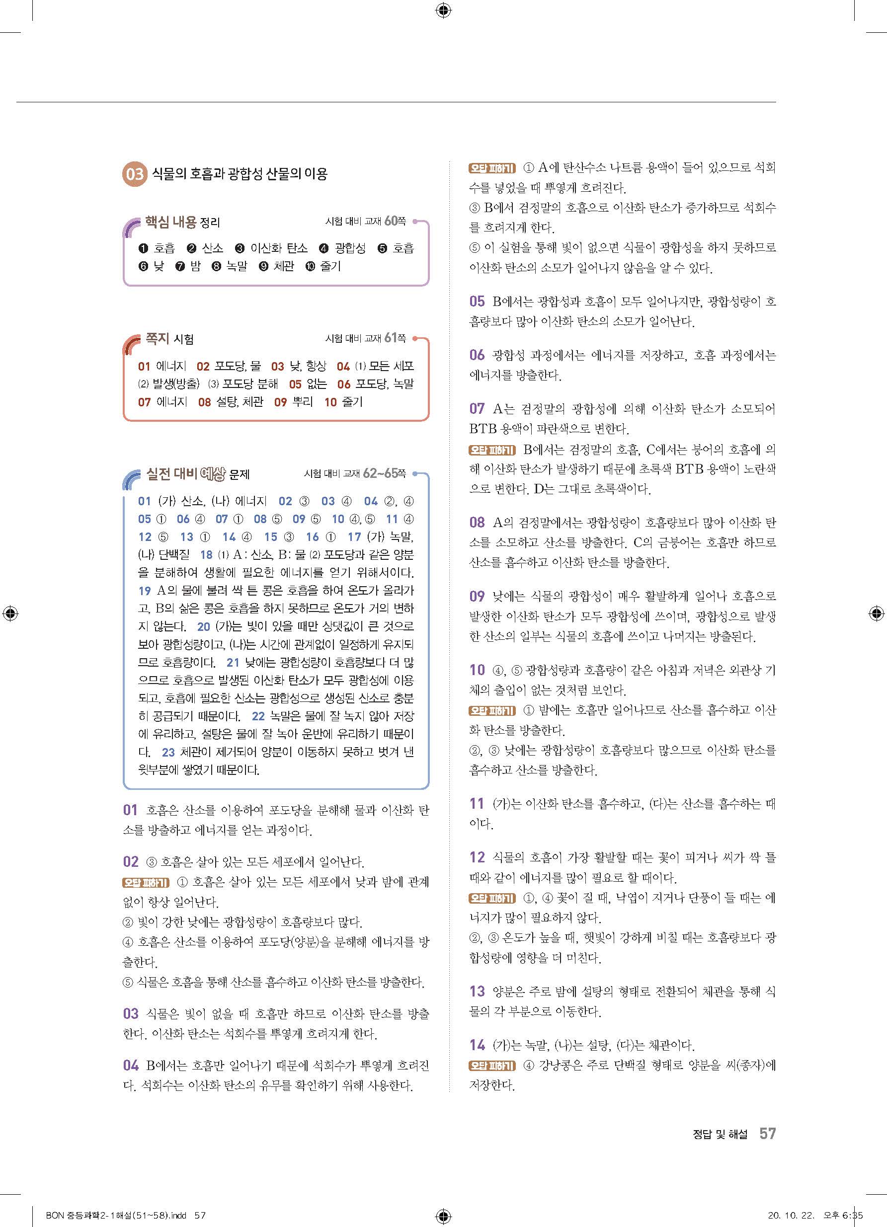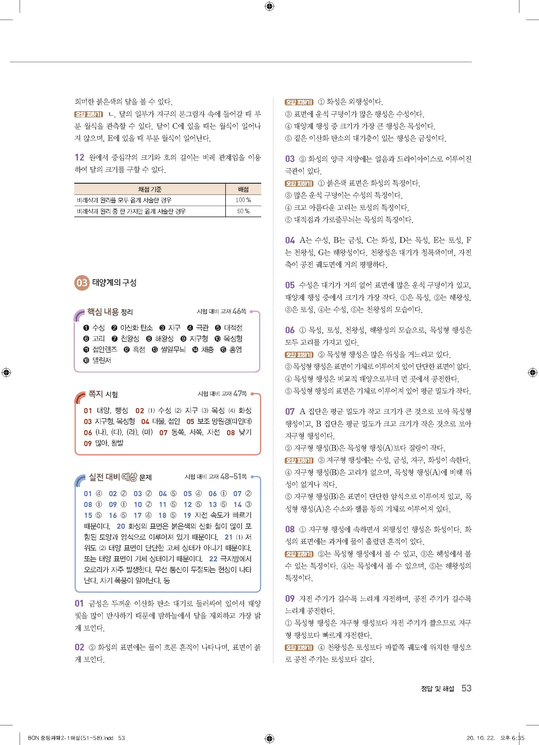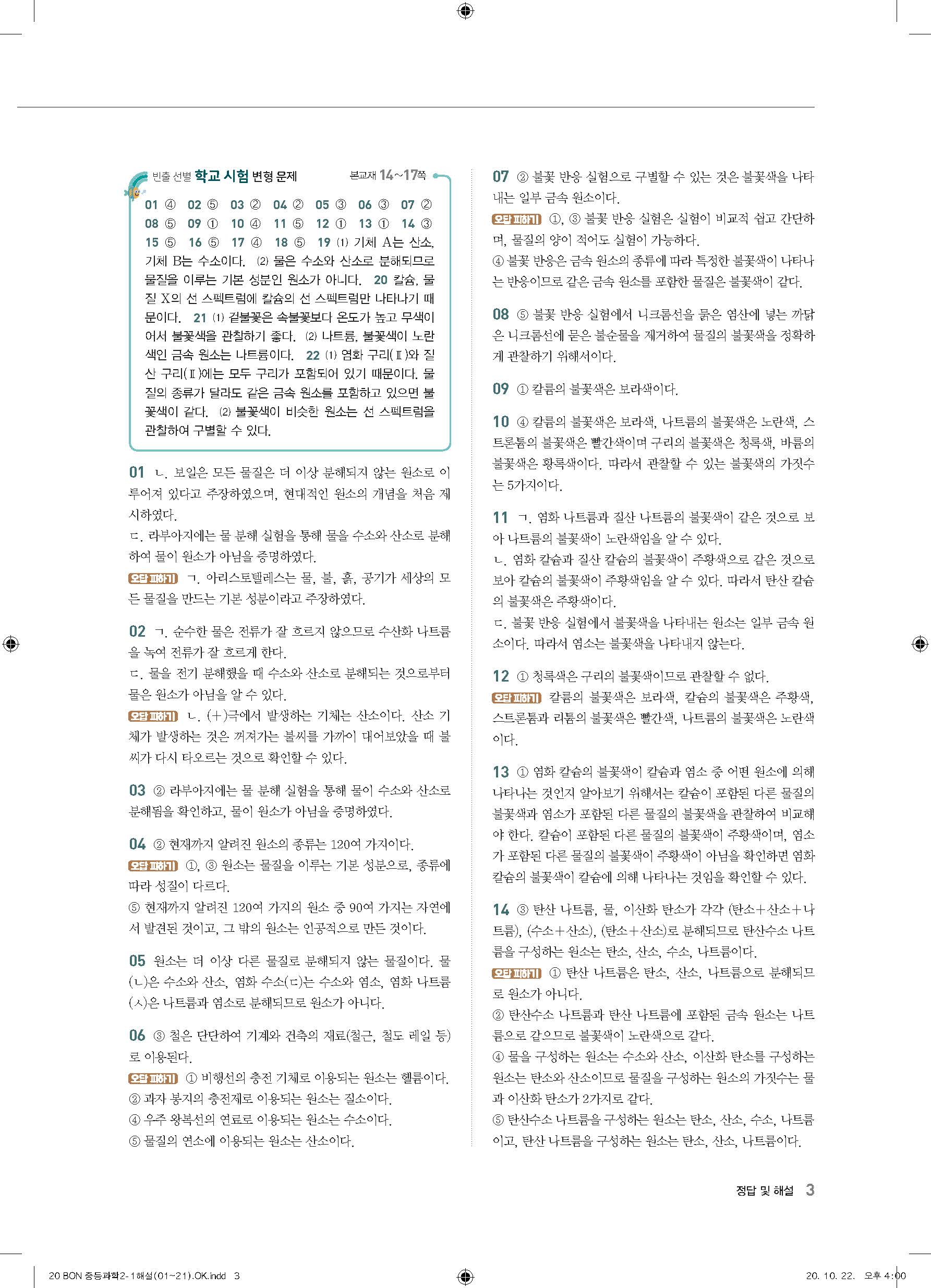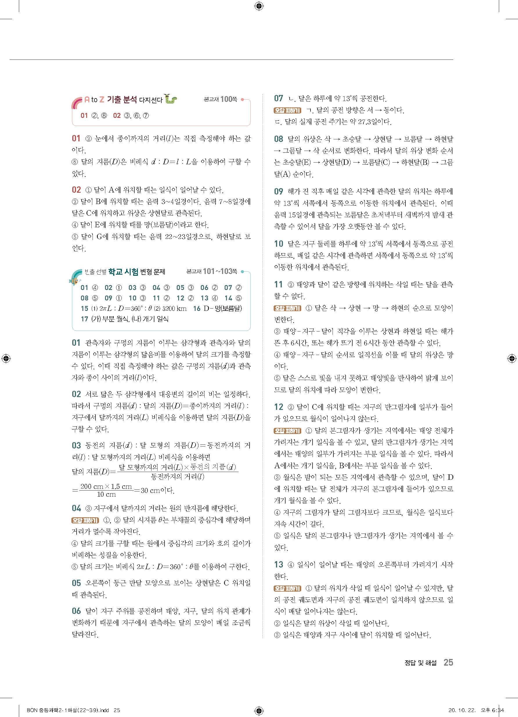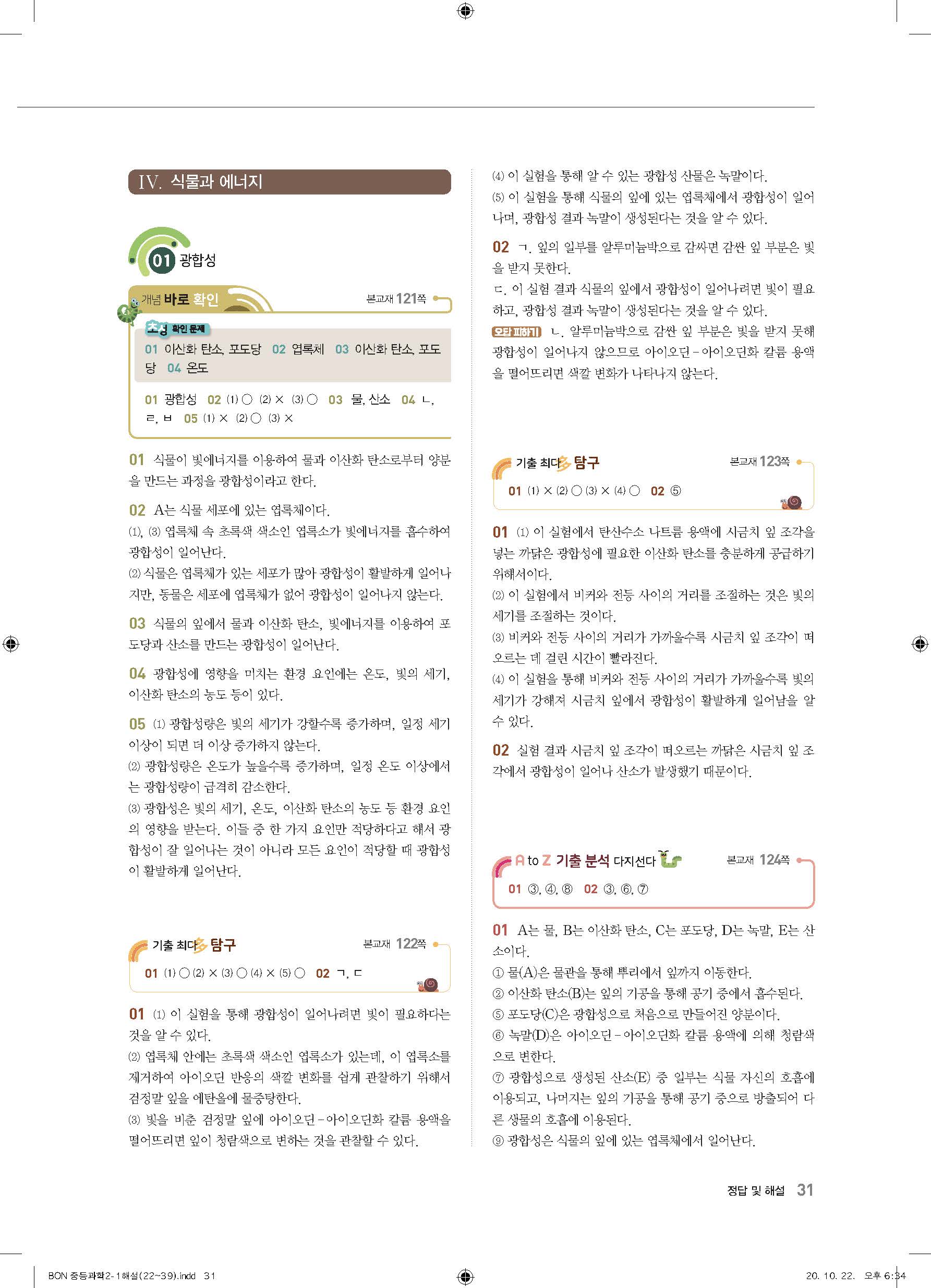이투스 bon중등과학 2-1 답지 사진답지 빠른답지 모바일최적화
