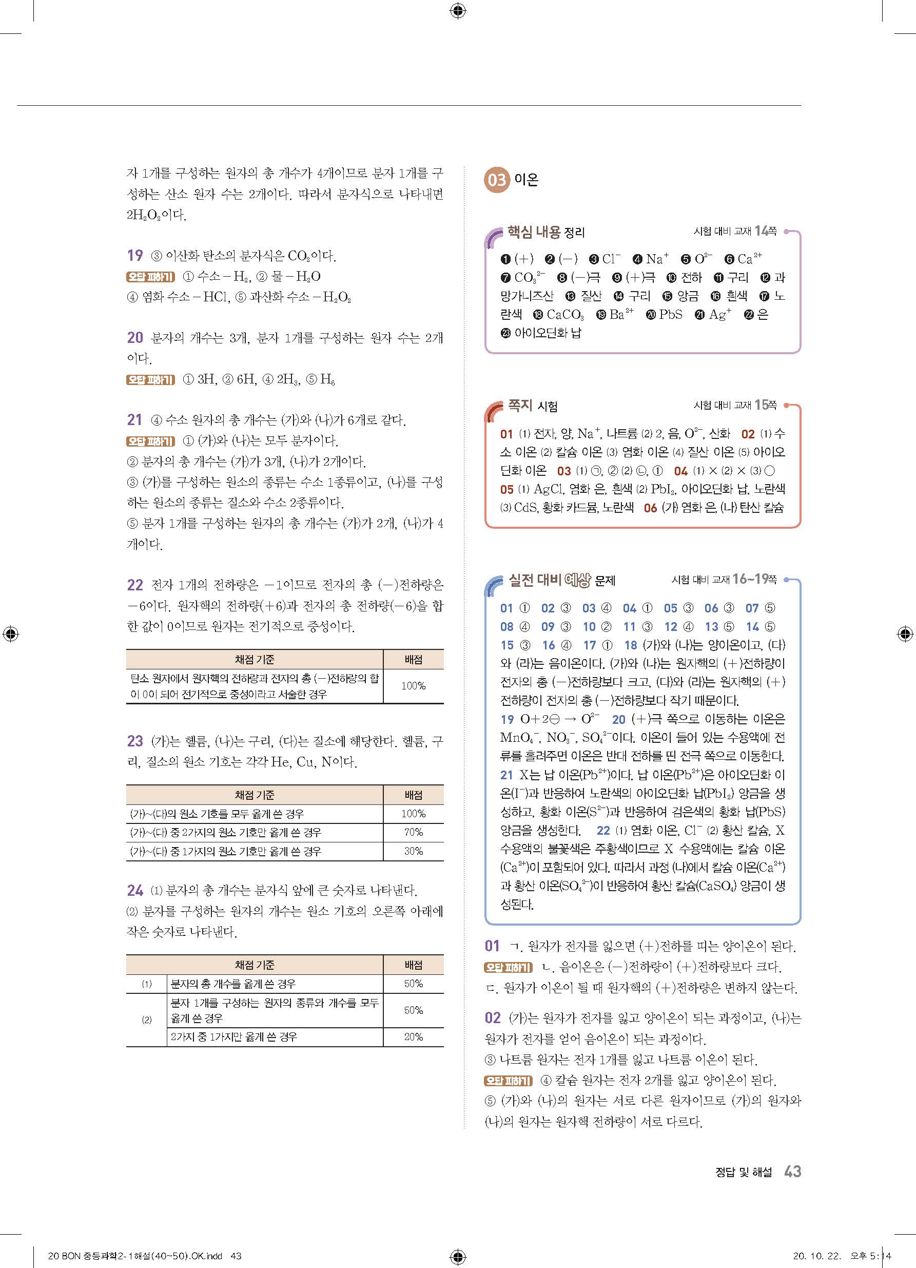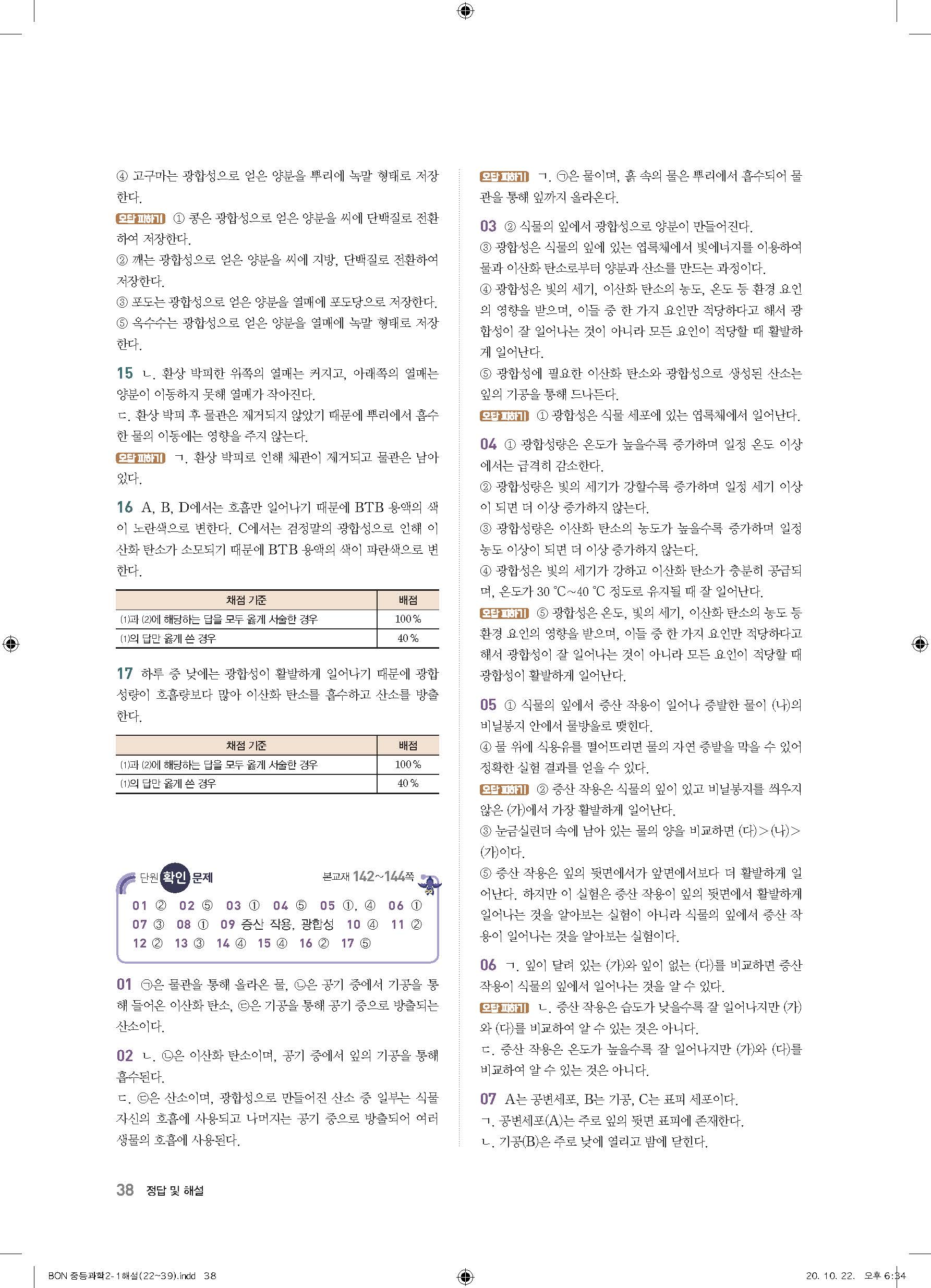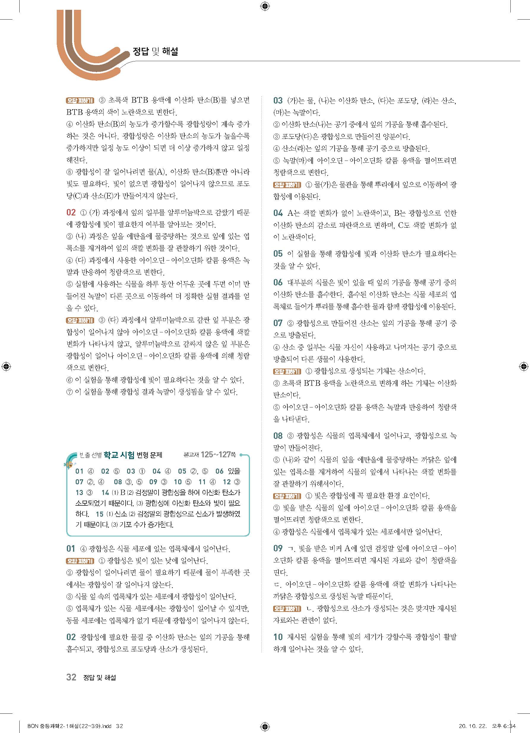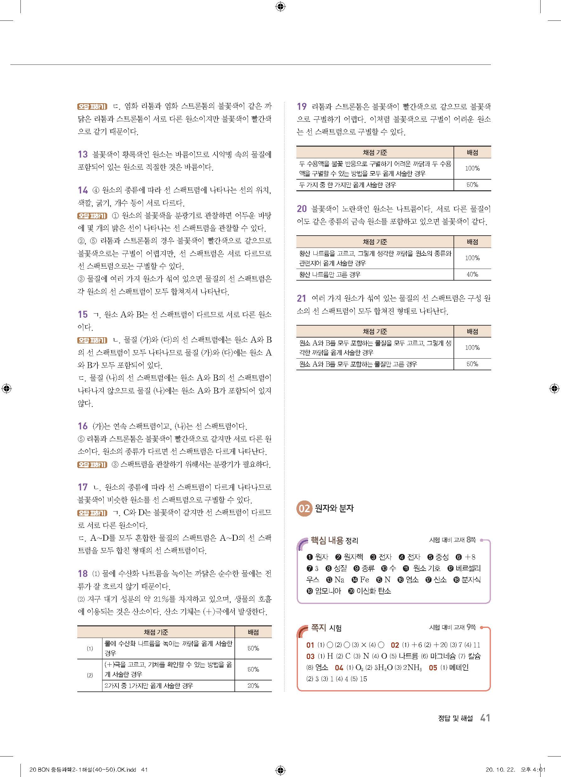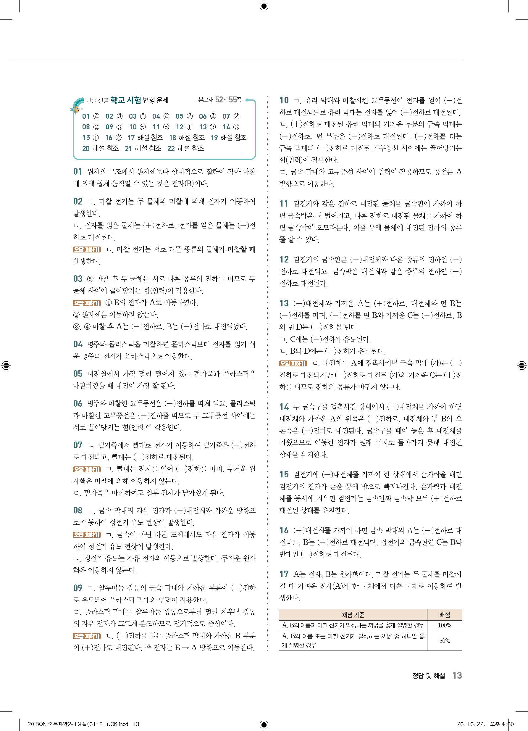 이투스 bon중등과학 2-1 답지 사진답지 빠른답지 모바일최적화