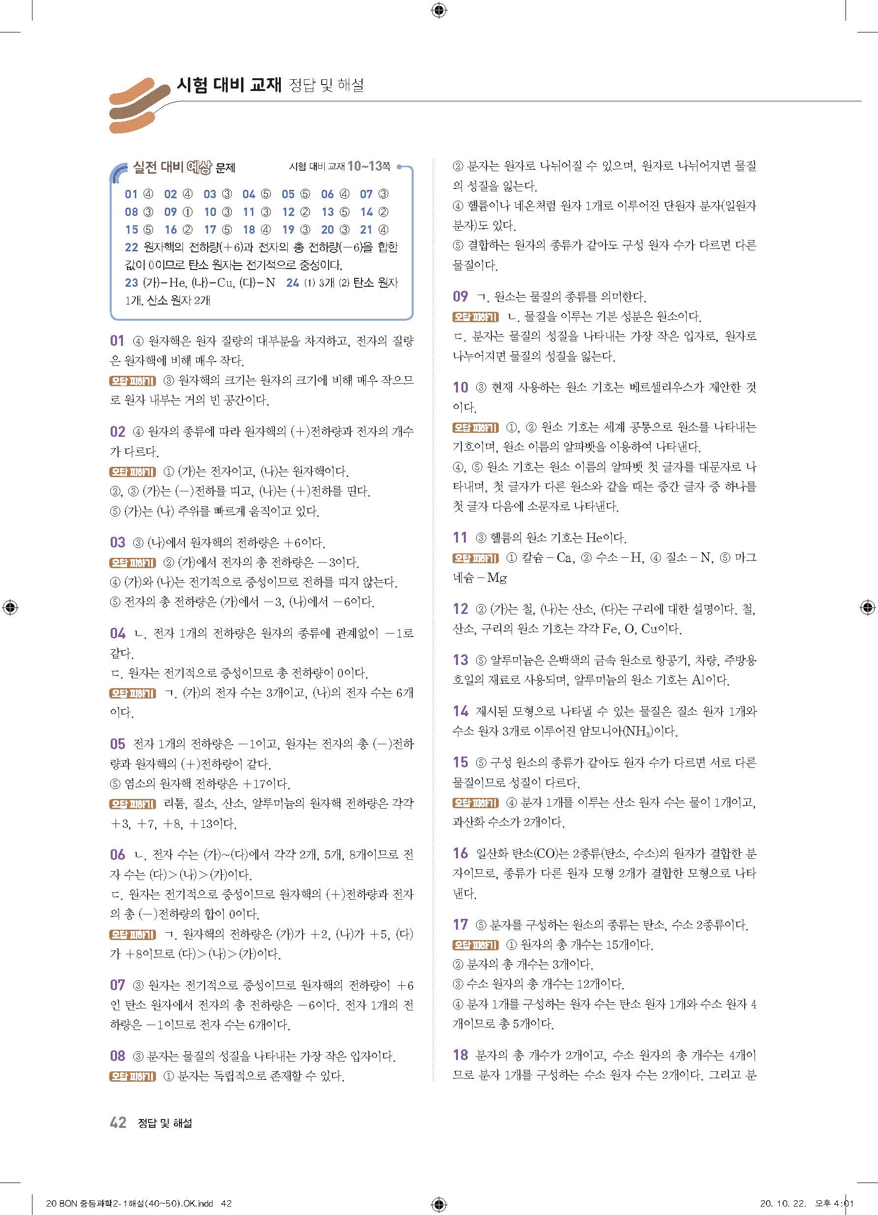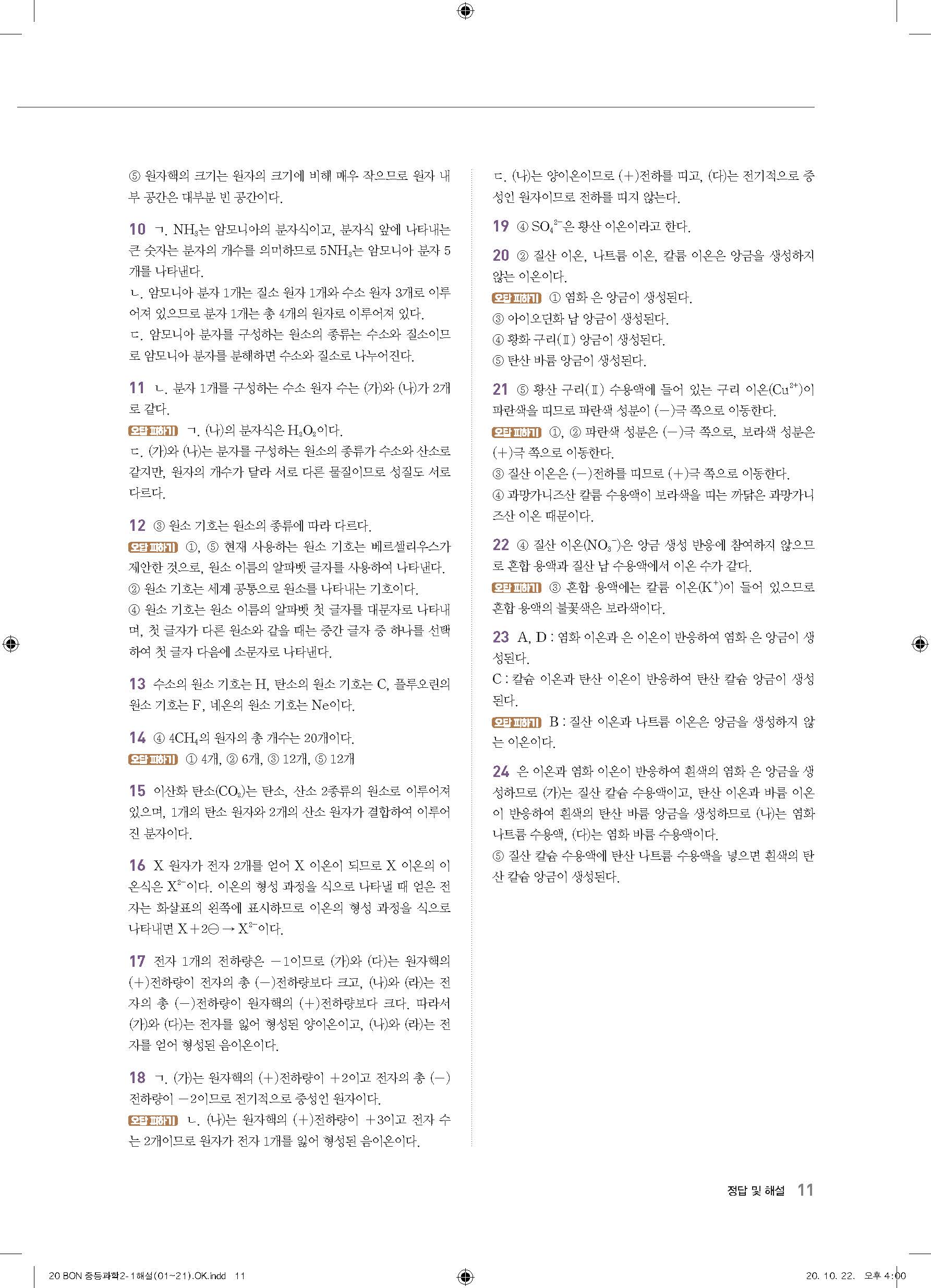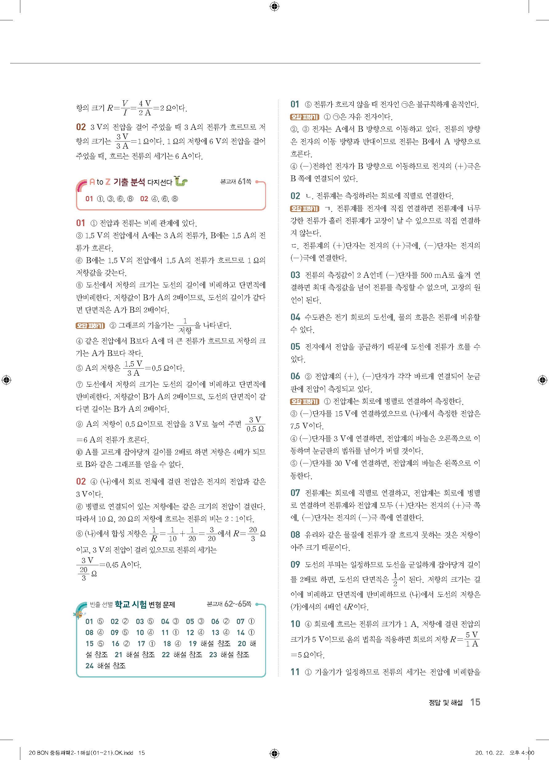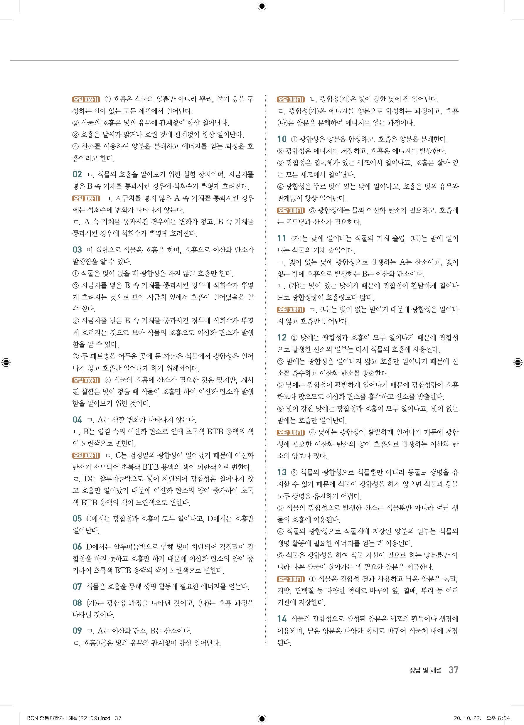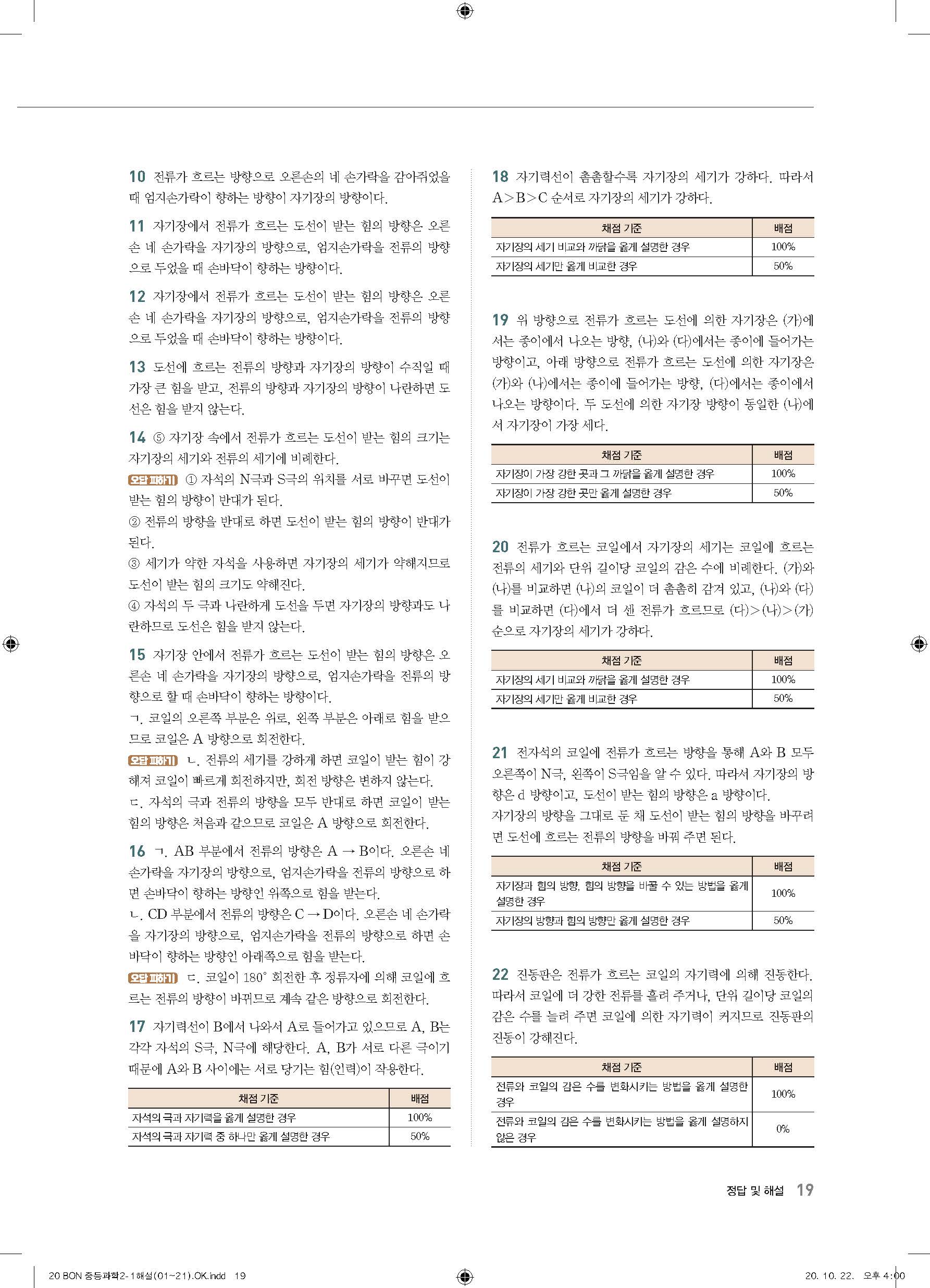 이투스 bon중등과학 2-1 답지 사진답지 빠른답지 모바일최적화