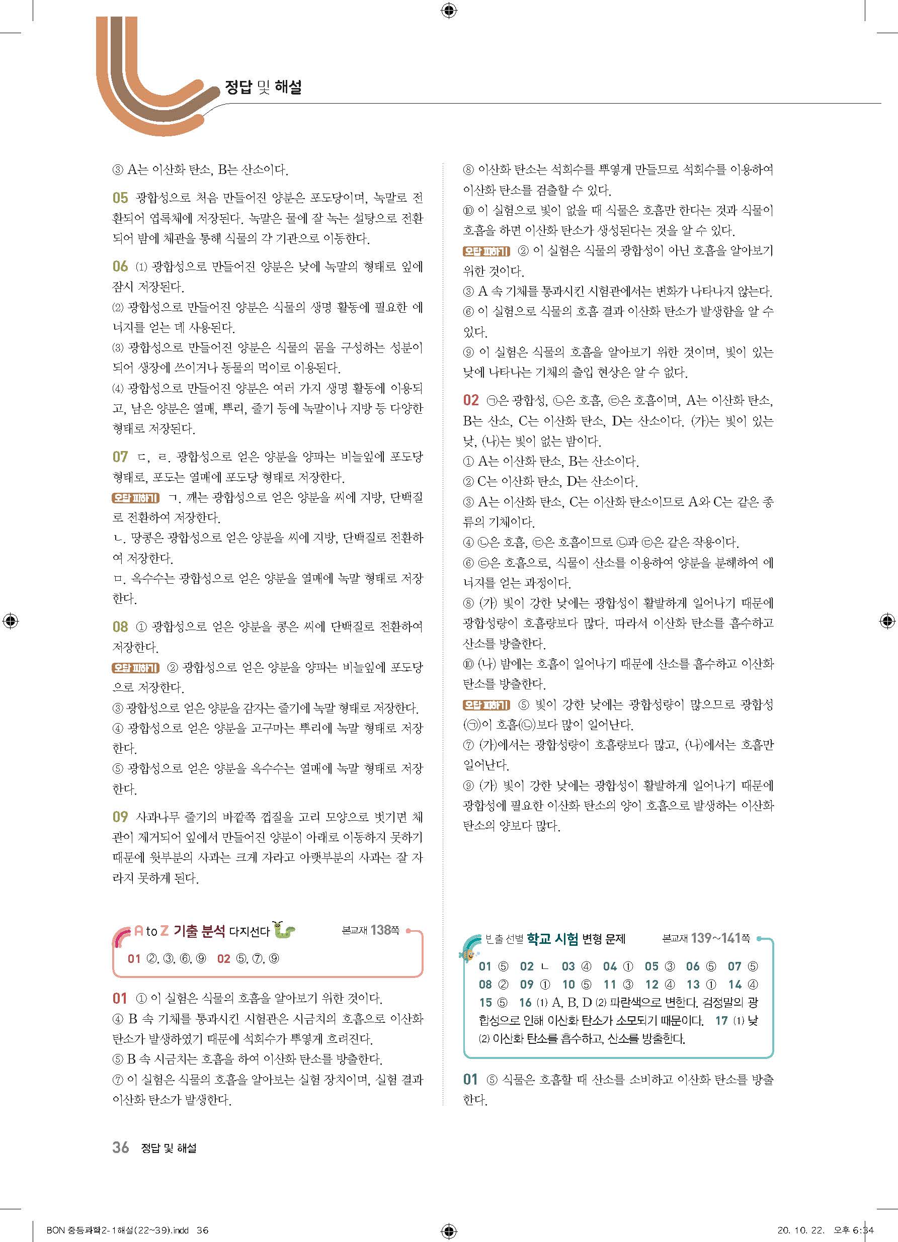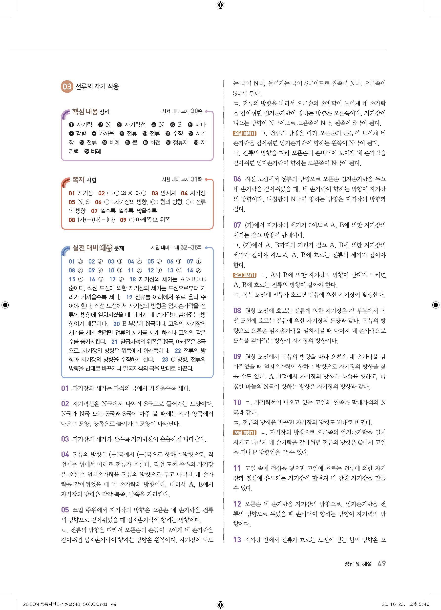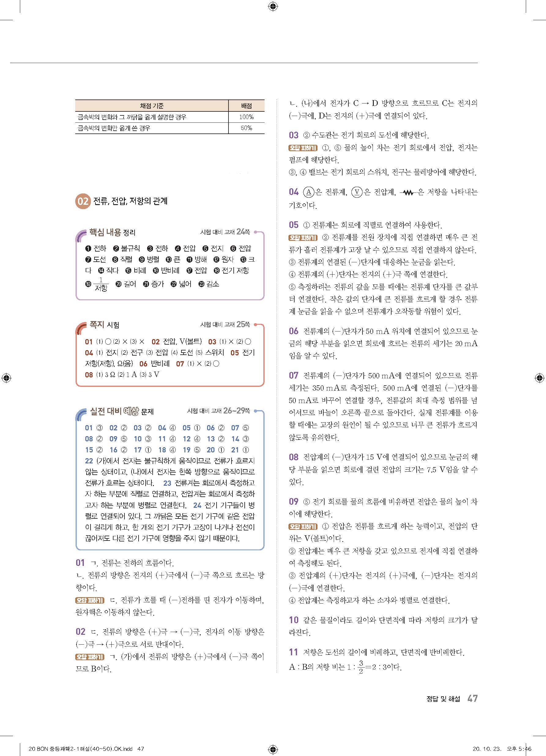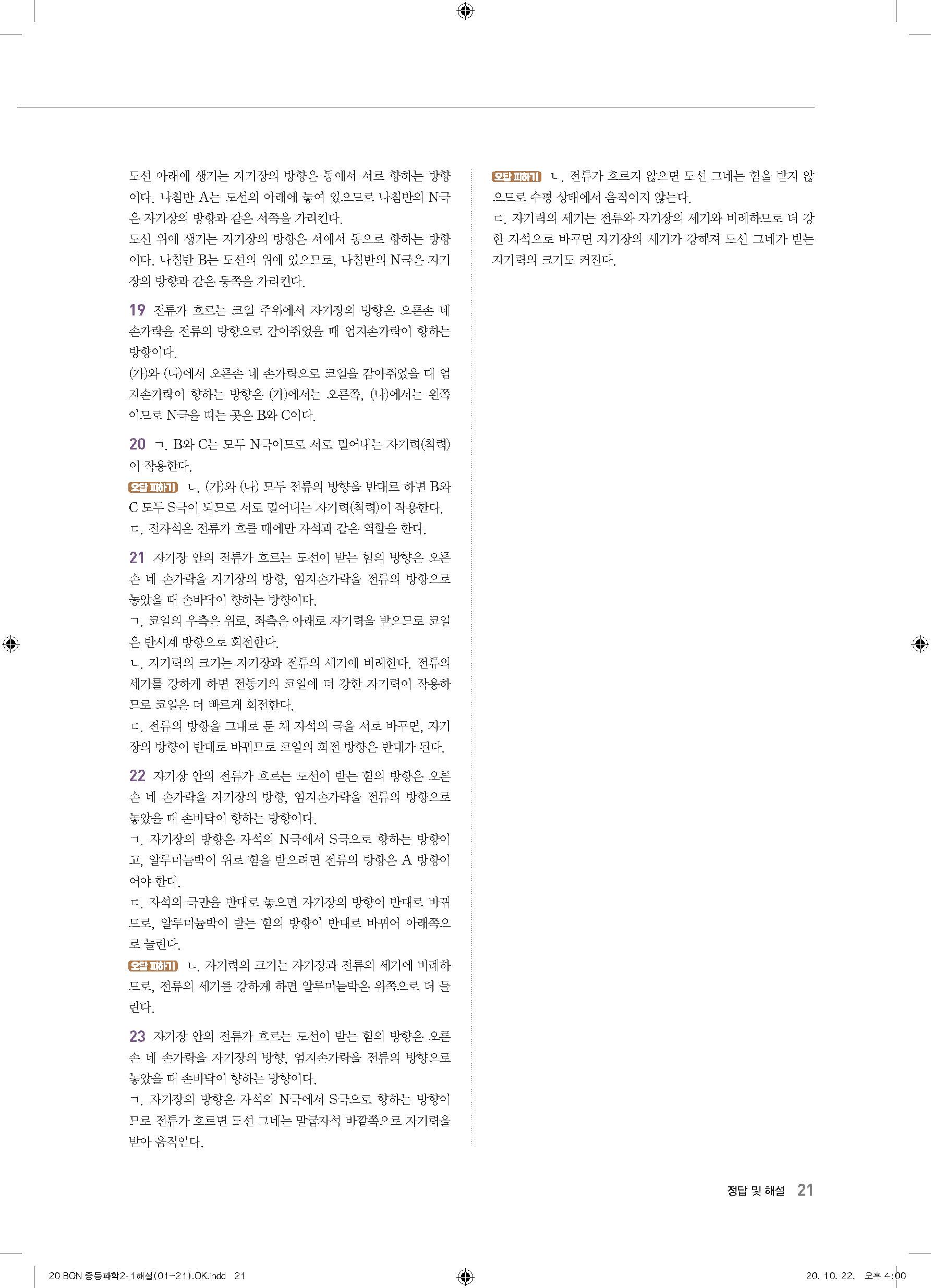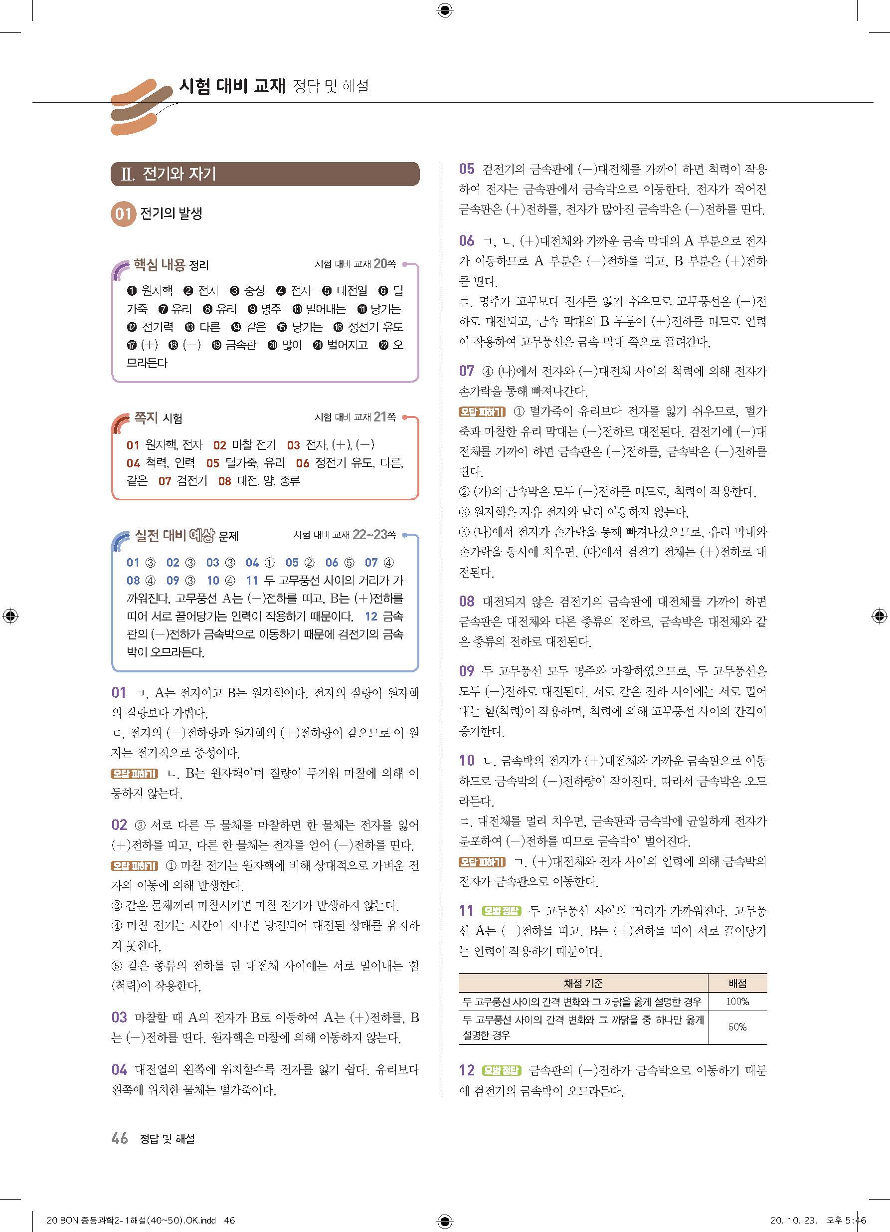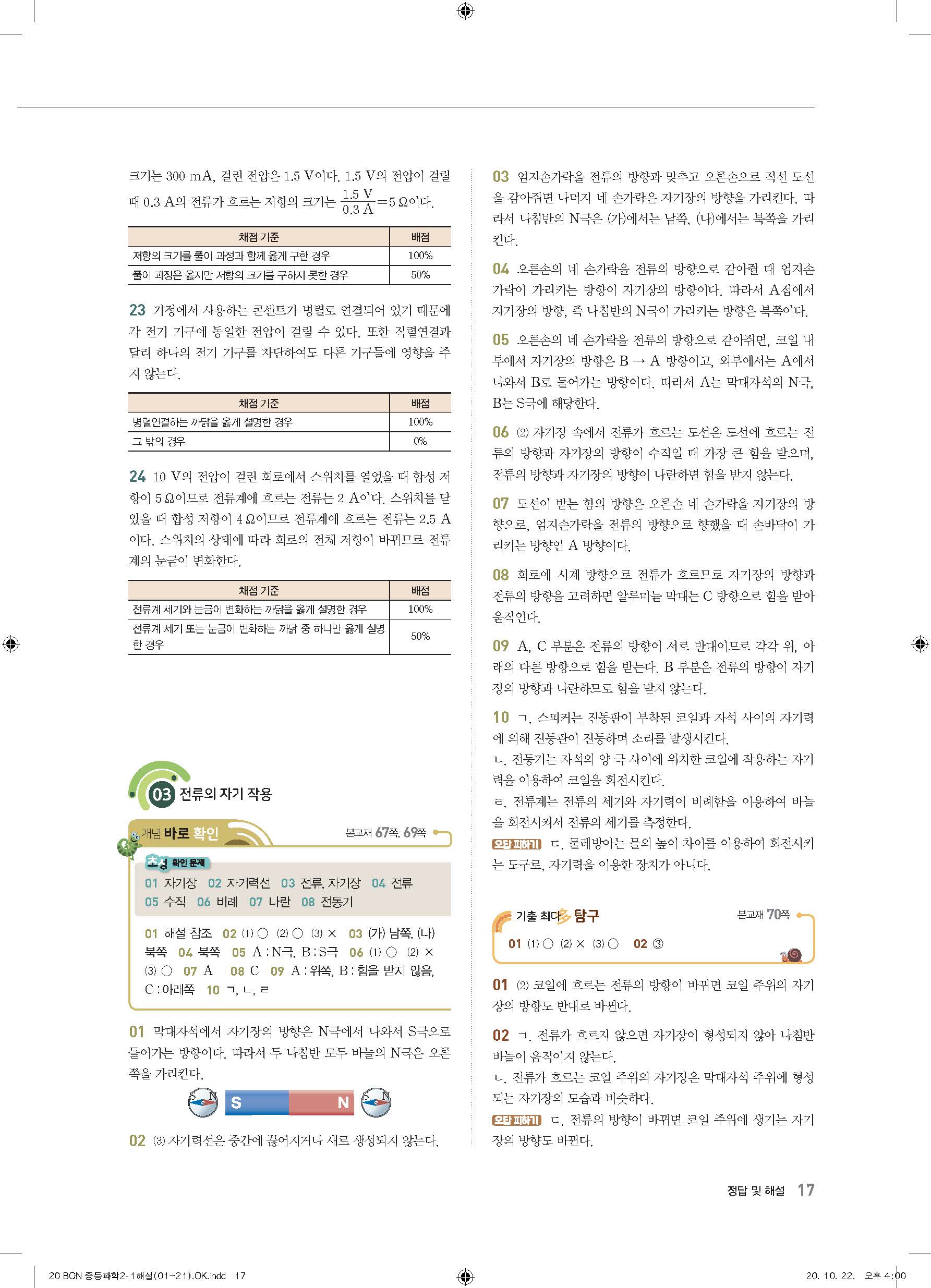 이투스 bon중등과학 2-1 답지 사진답지 빠른답지 모바일최적화