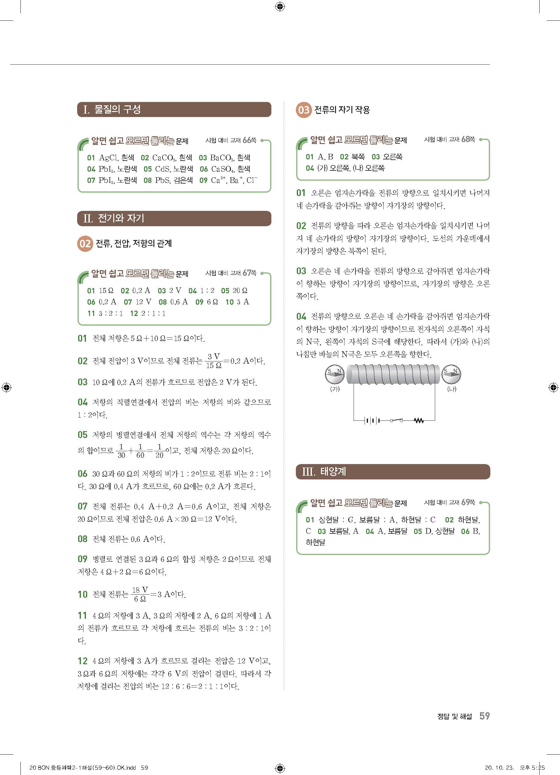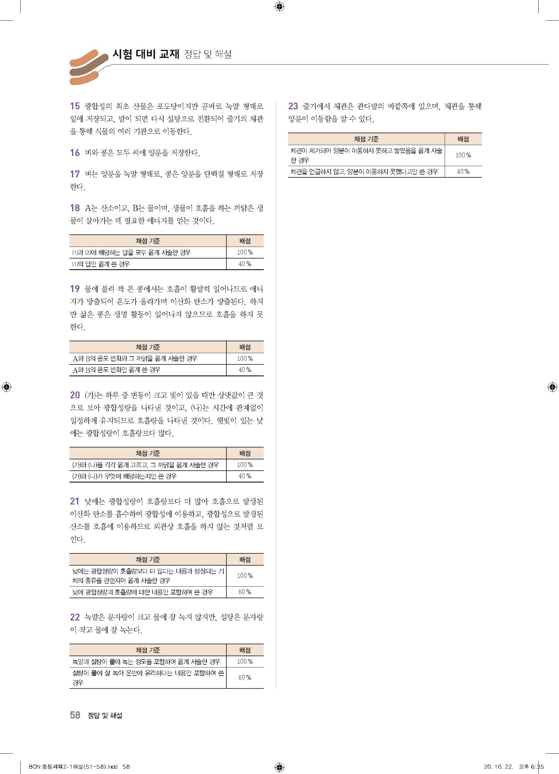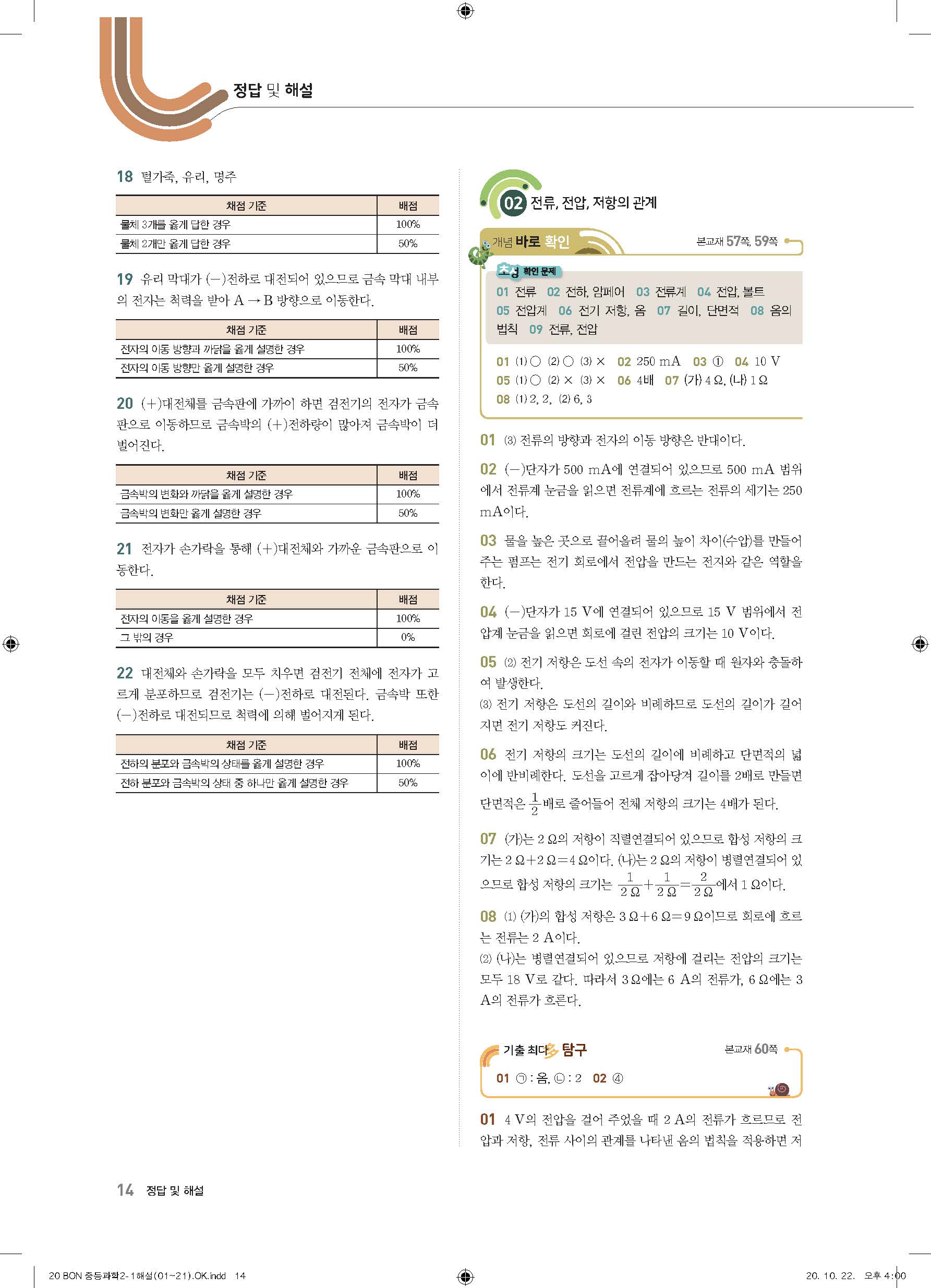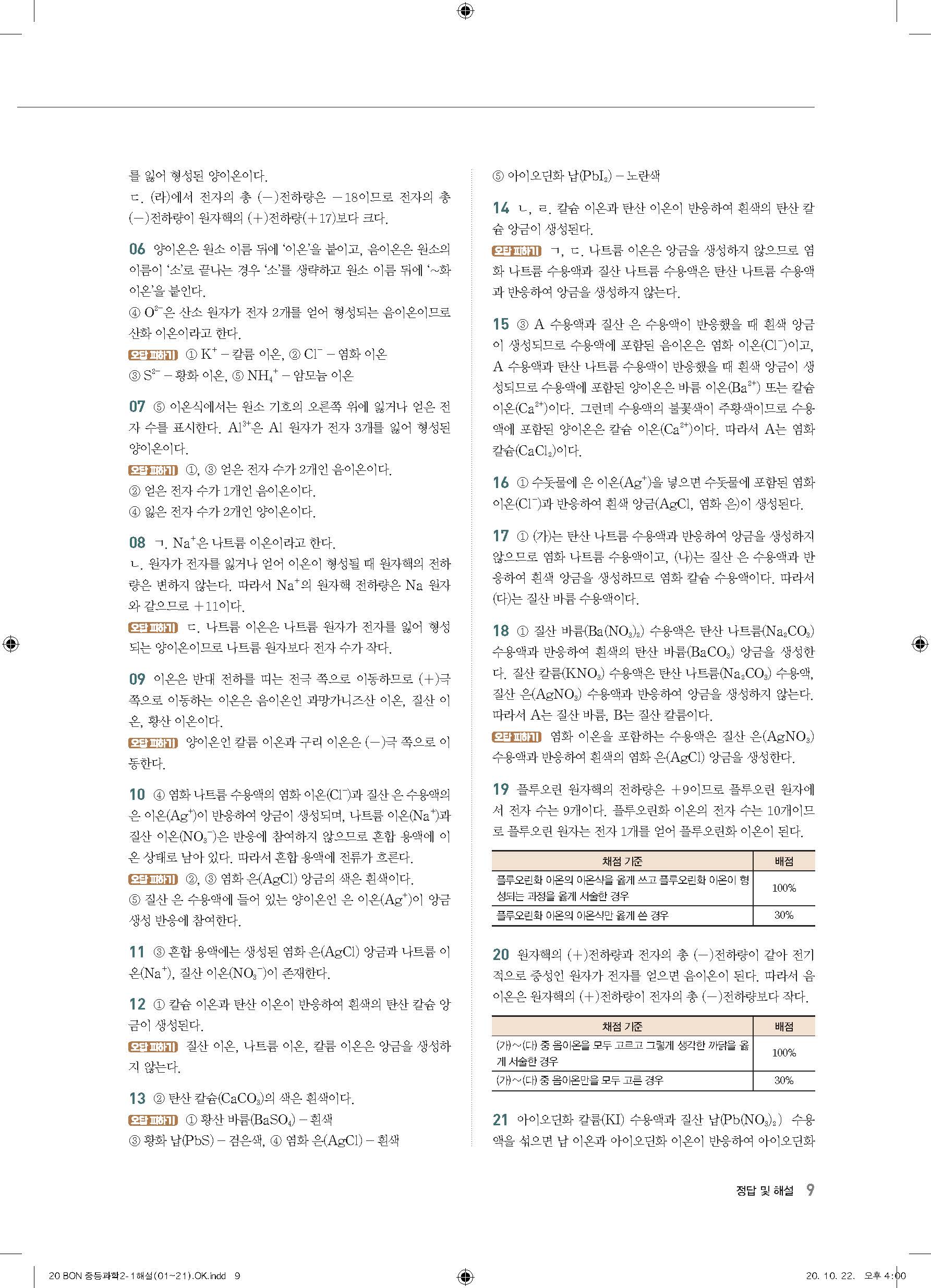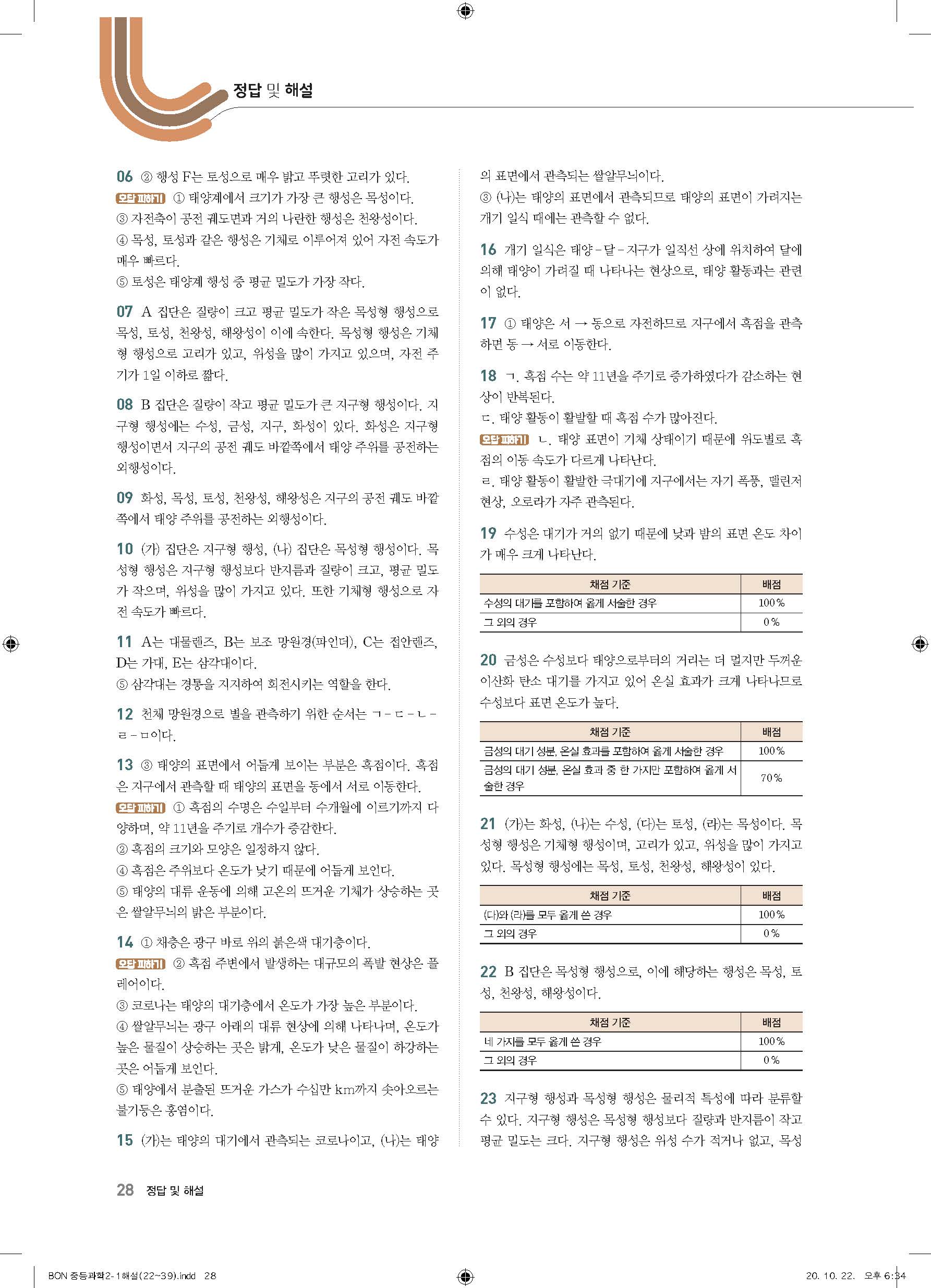 이투스 bon중등과학 2-1 답지 사진답지 빠른답지 모바일최적화
