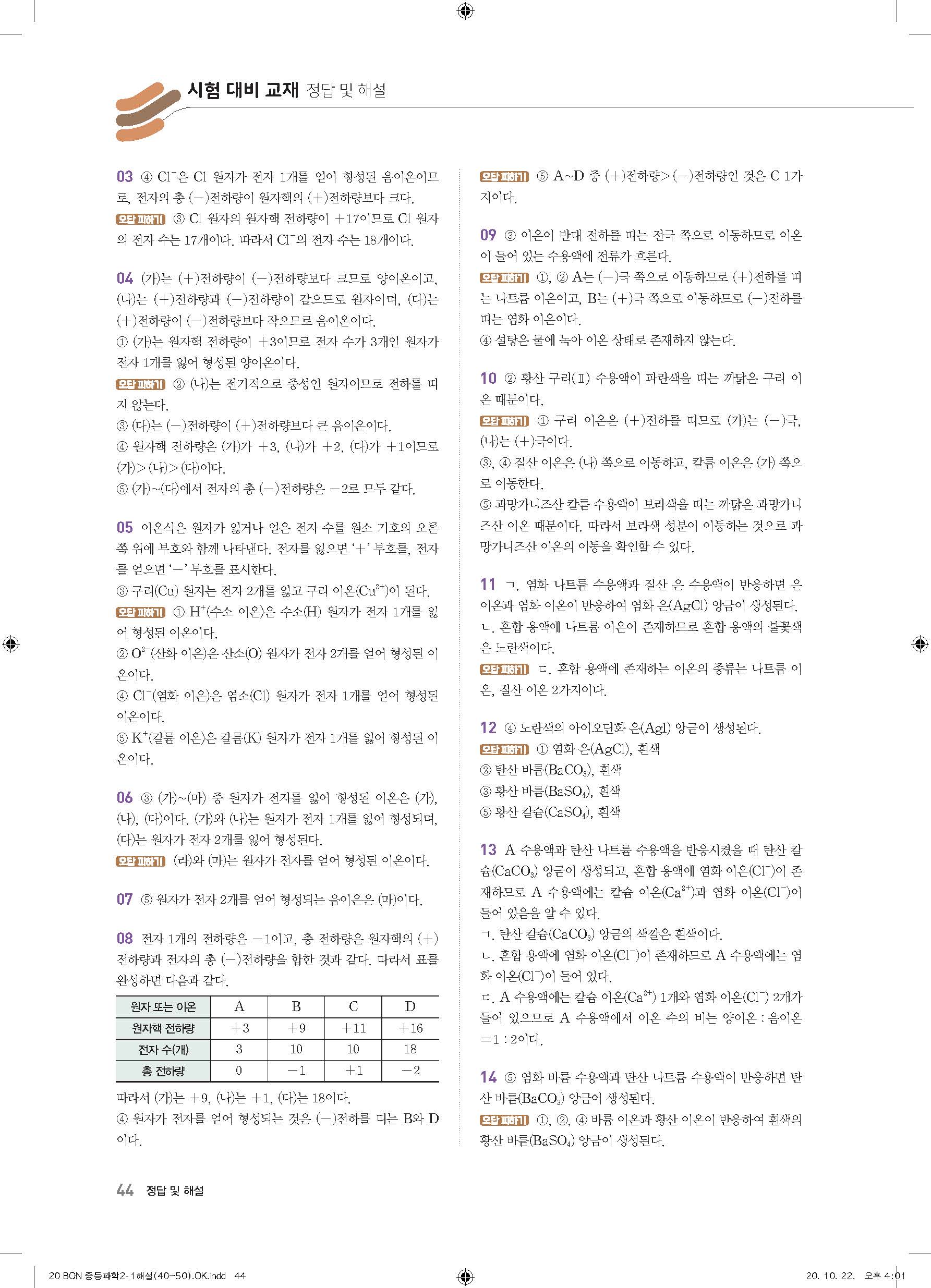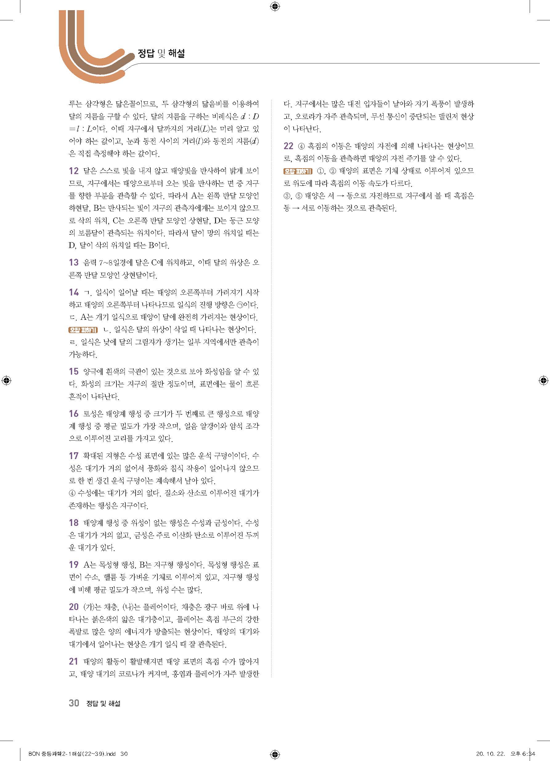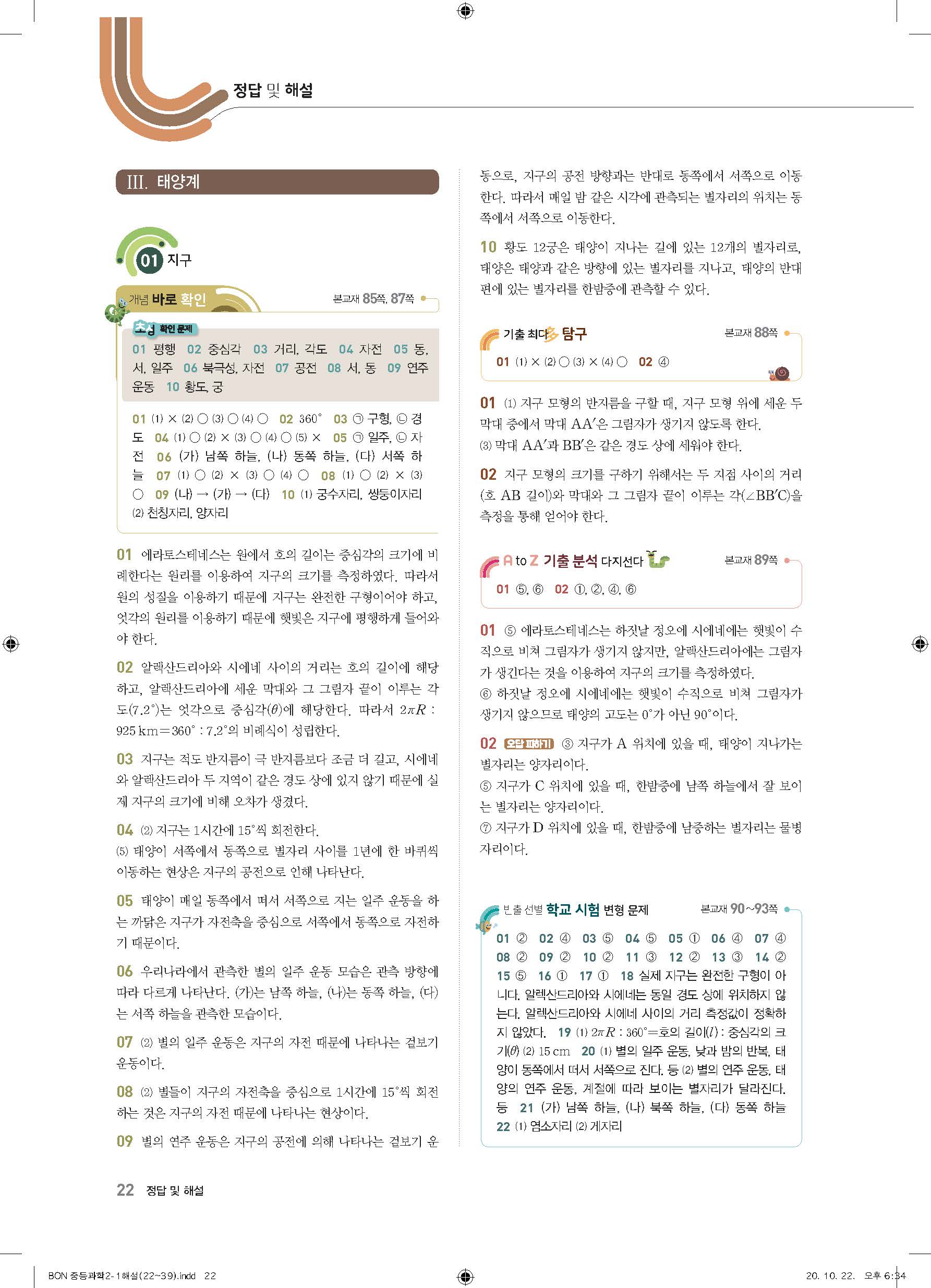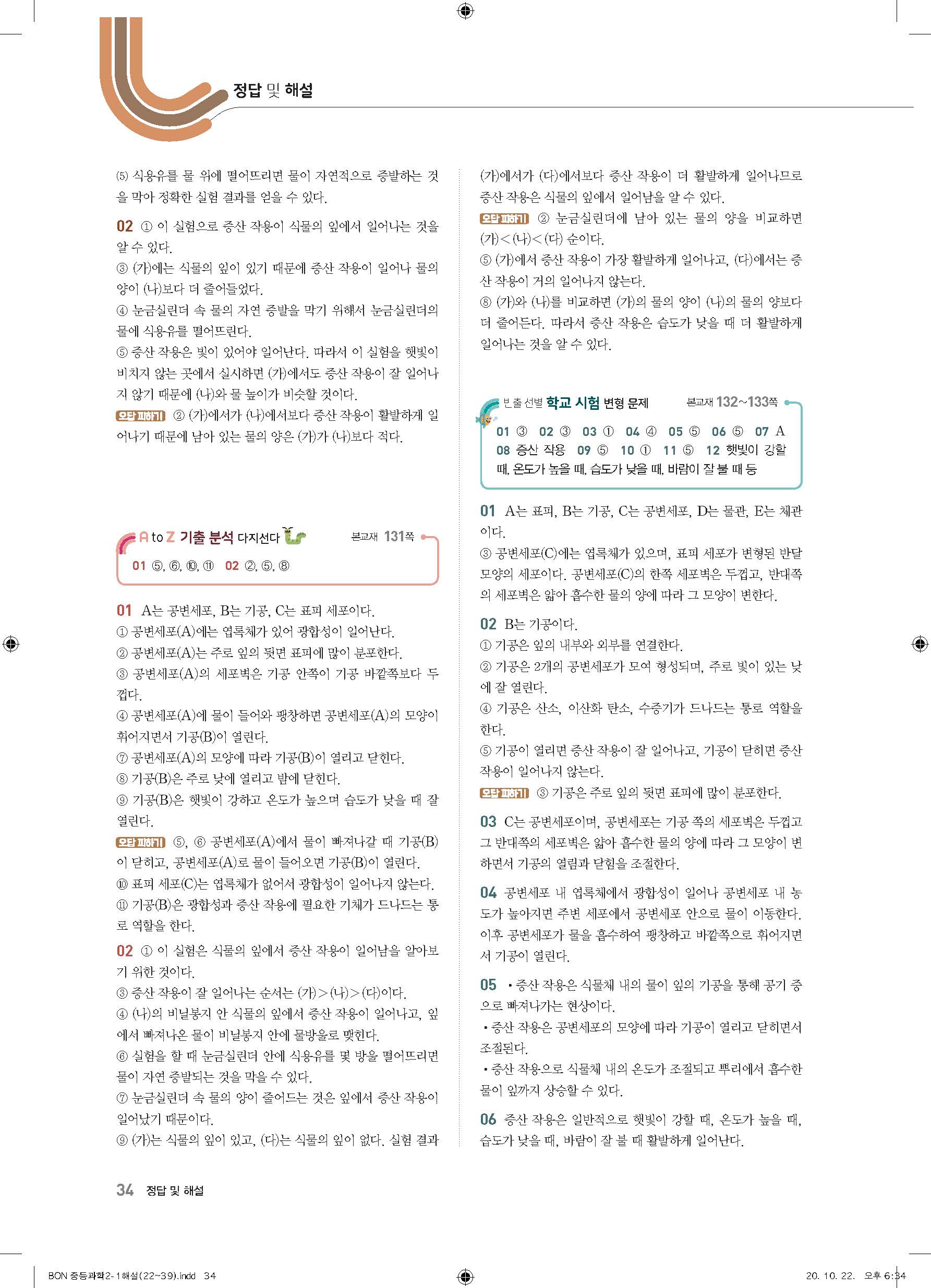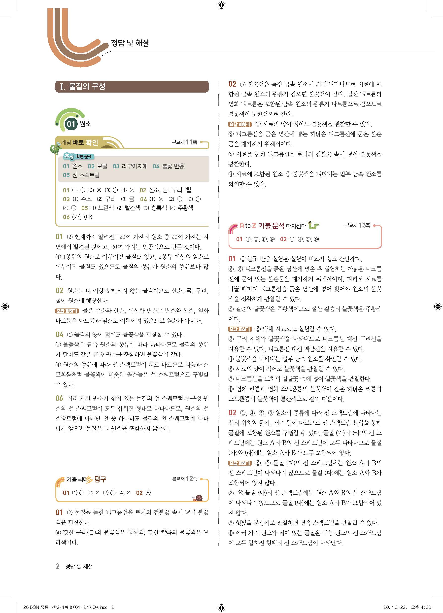 이투스 bon중등과학 2-1 답지 사진답지 빠른답지 모바일최적화