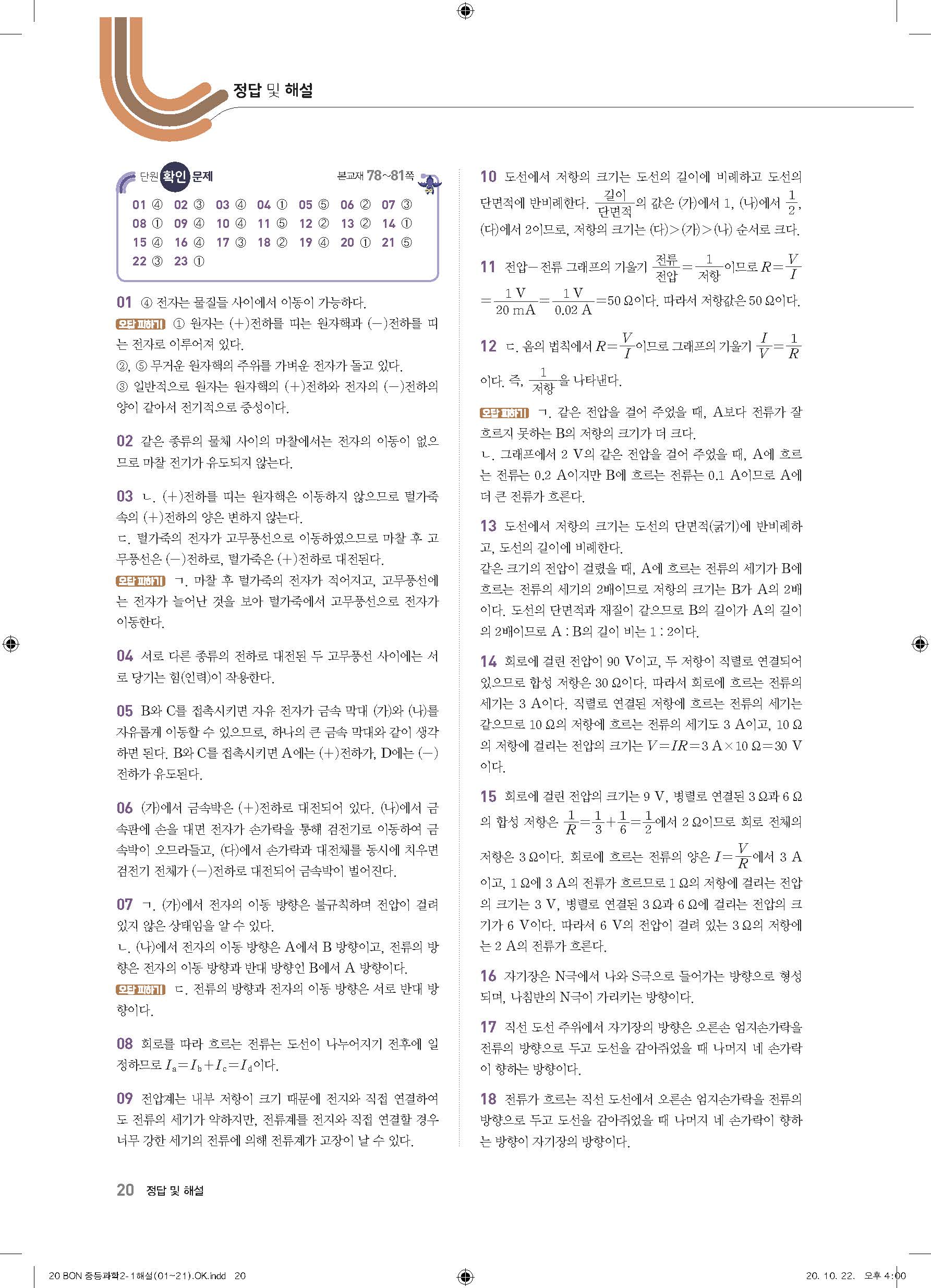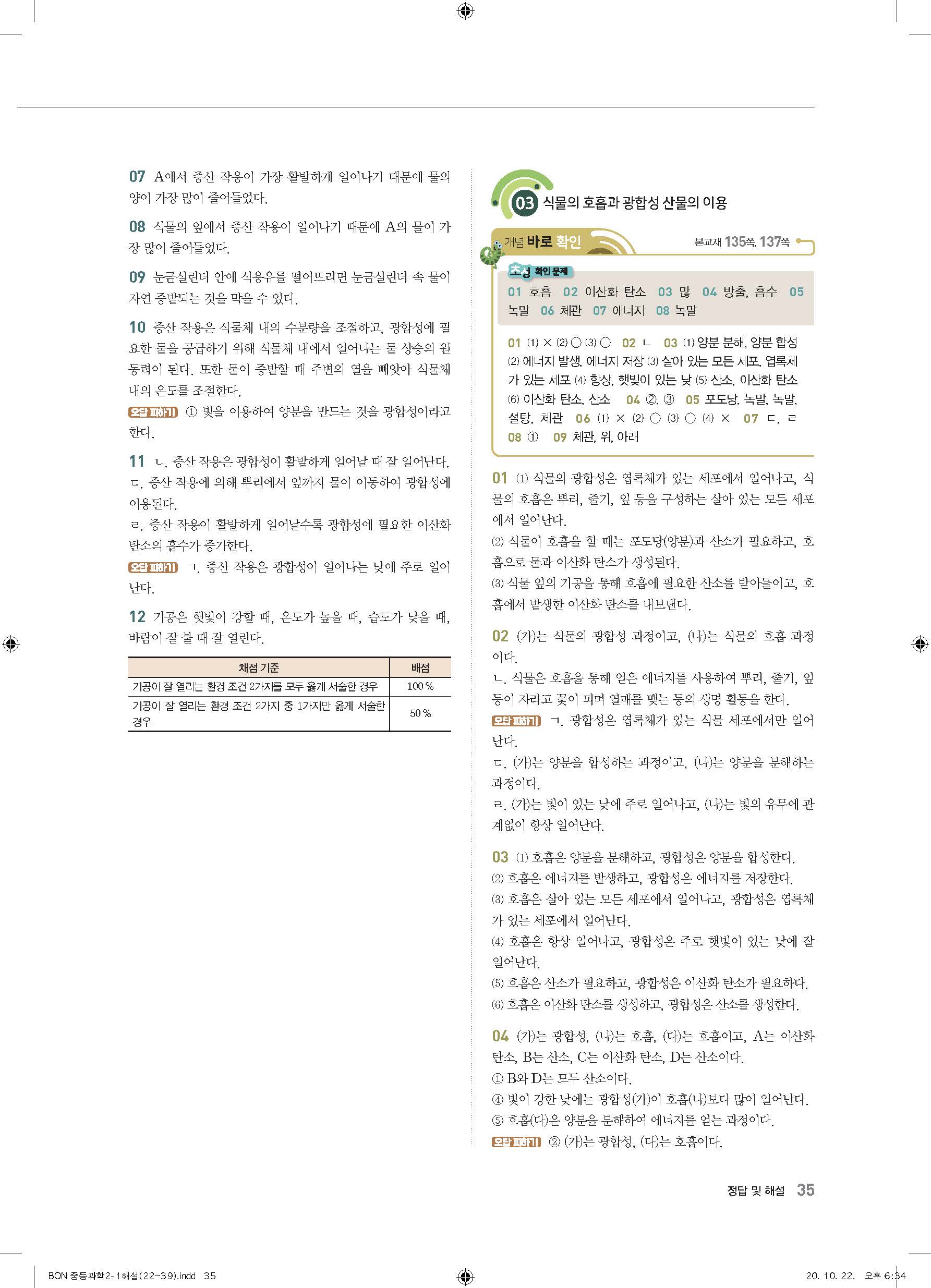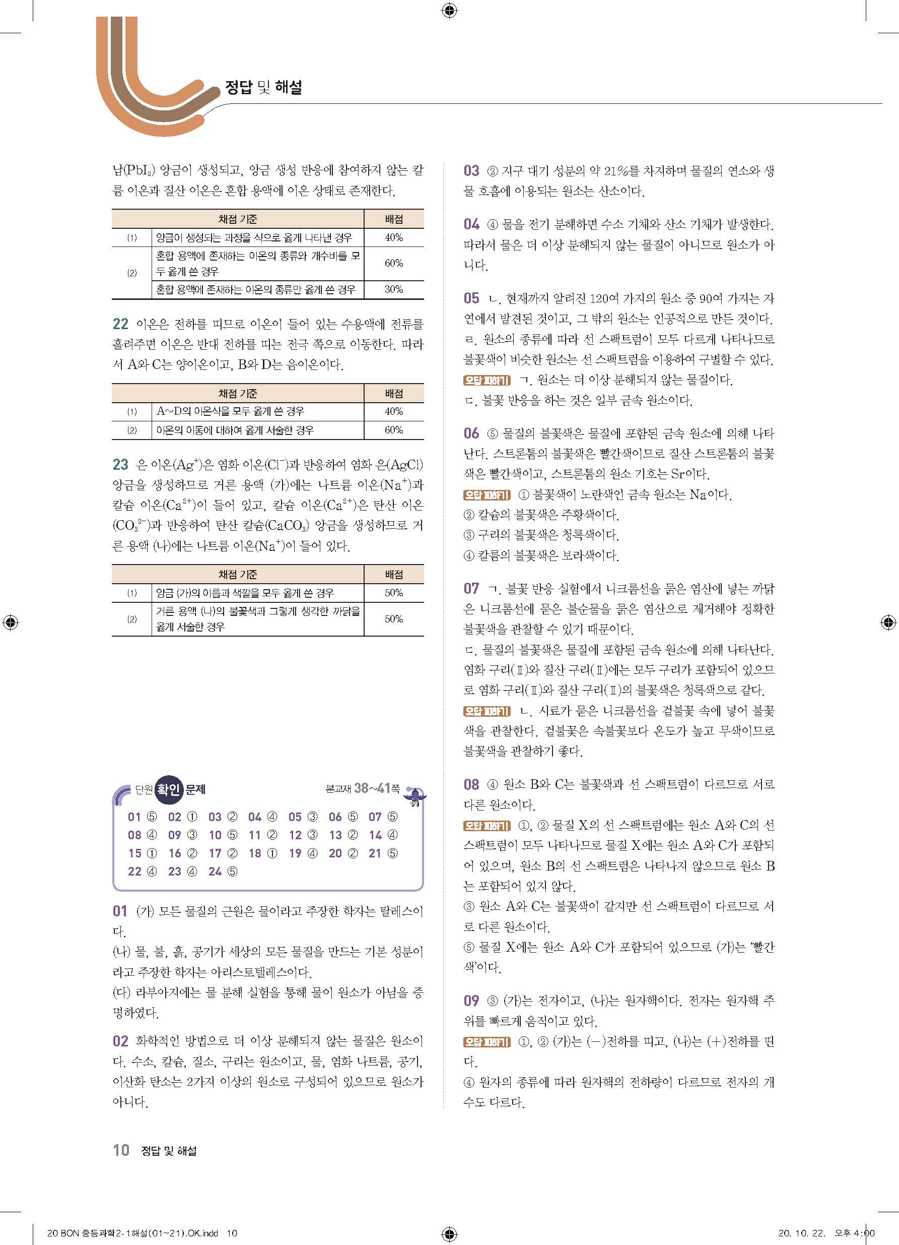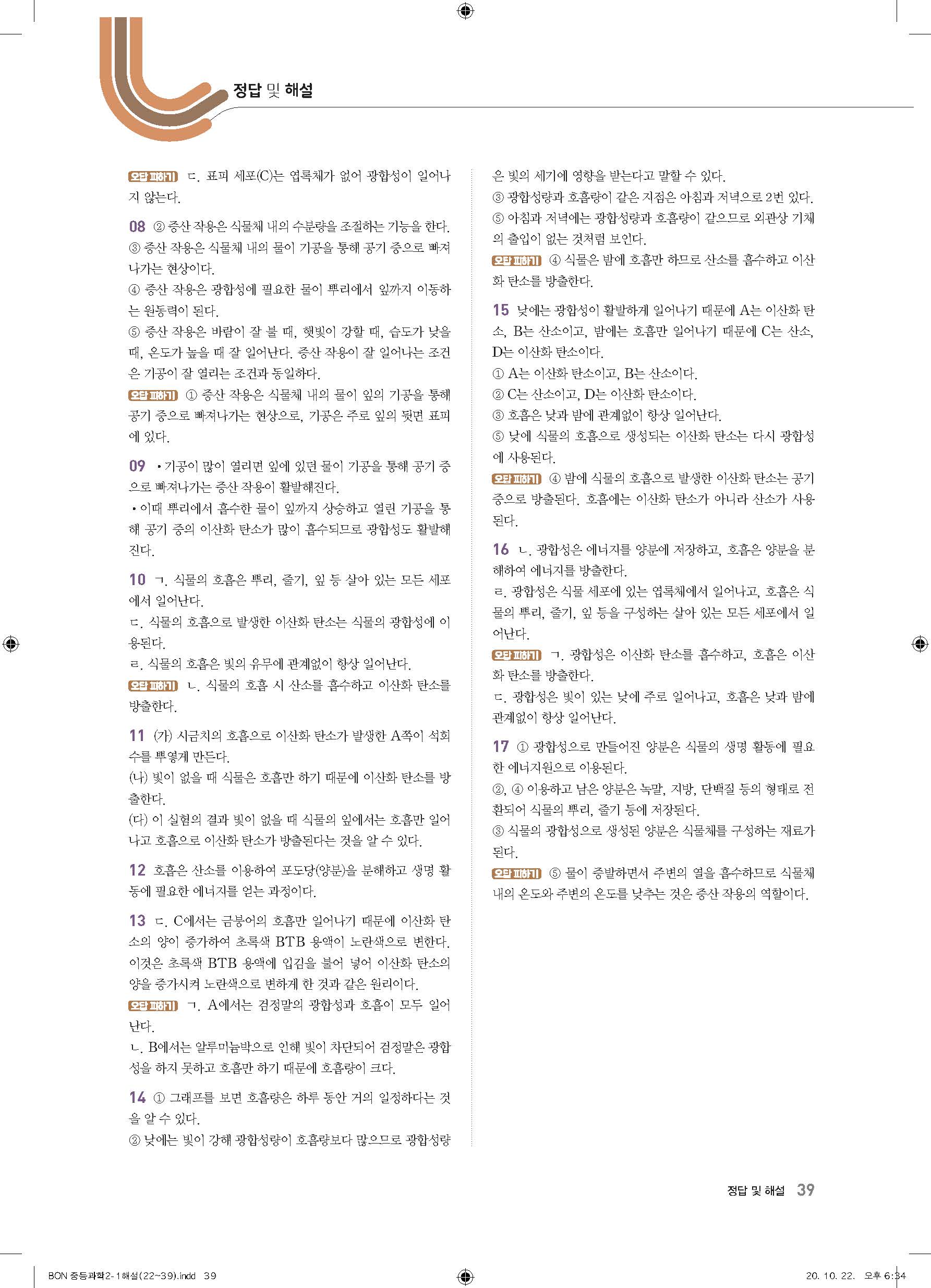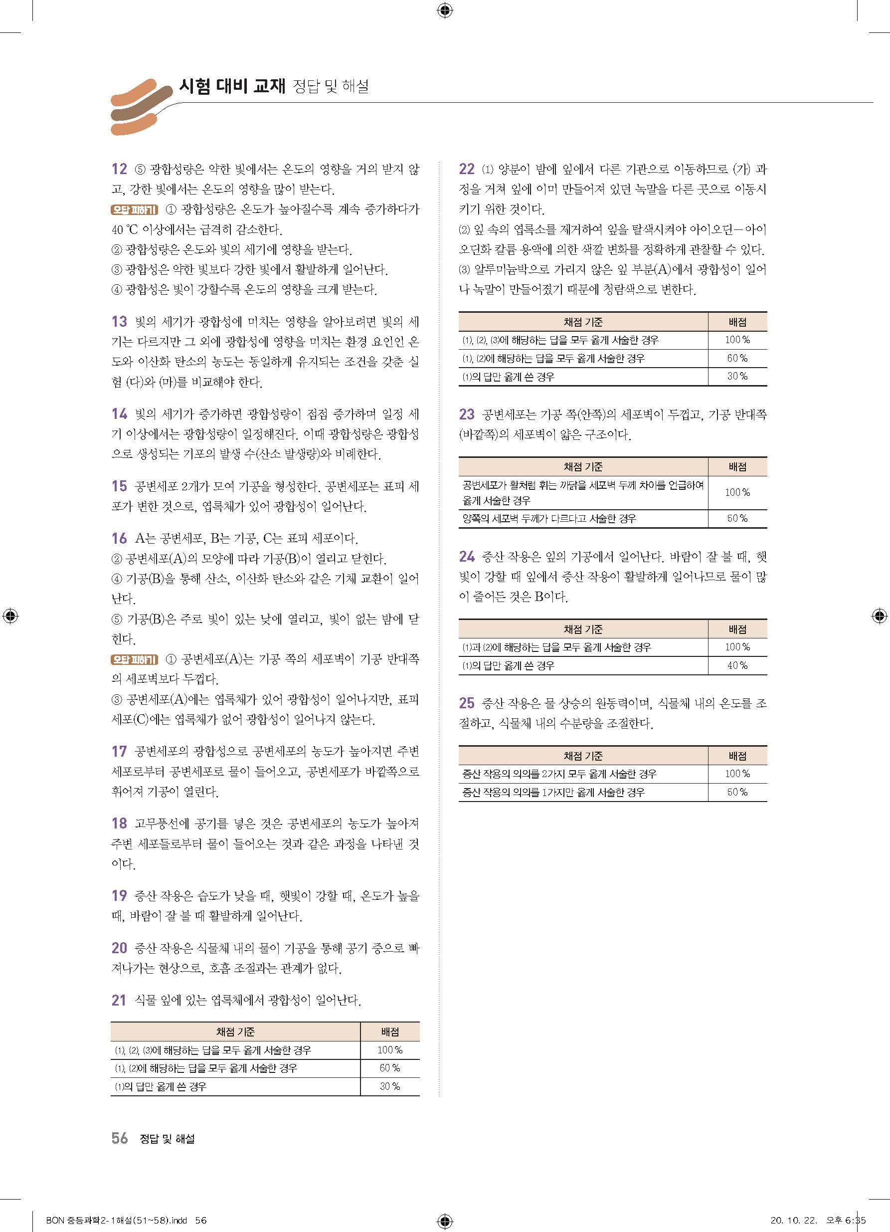 이투스 bon중등과학 2-1 답지 사진답지 빠른답지 모바일최적화