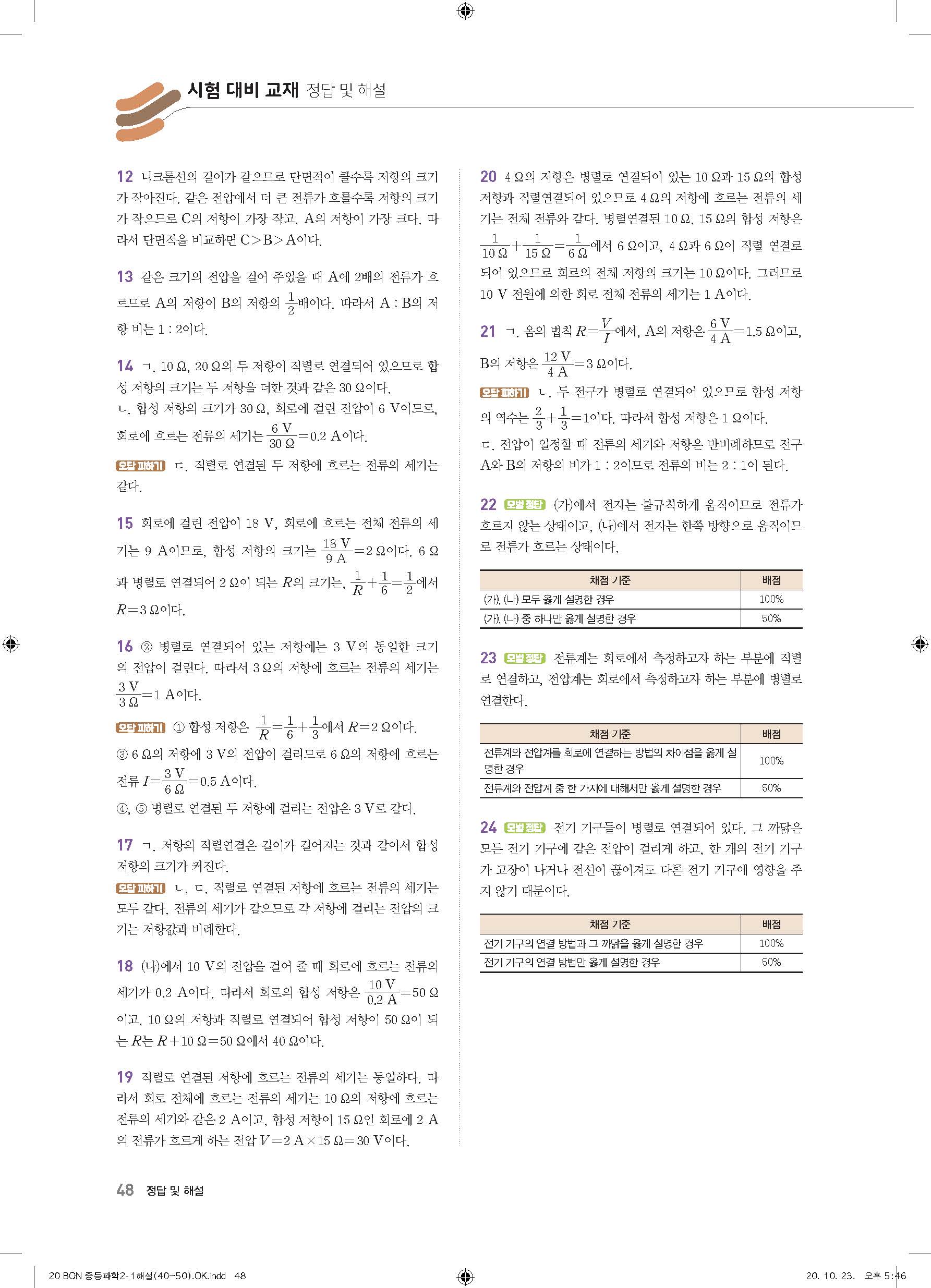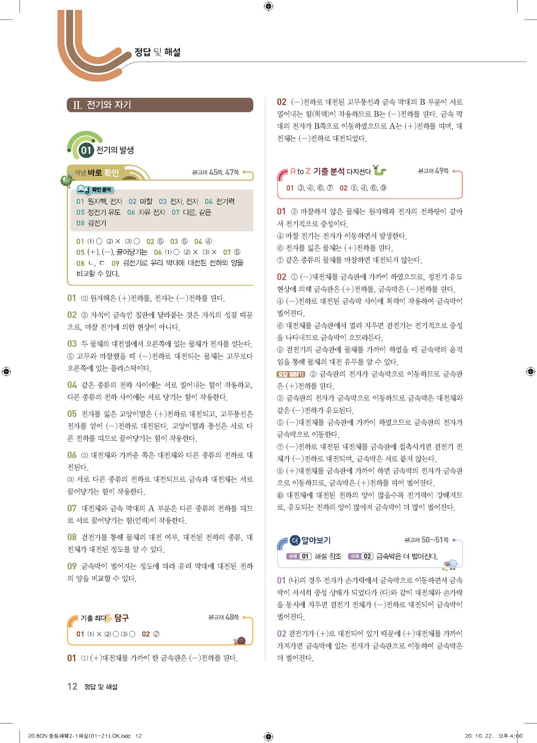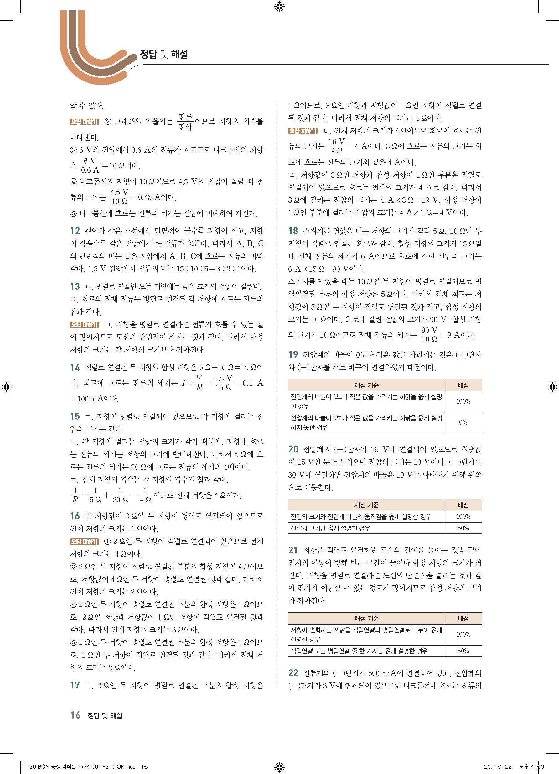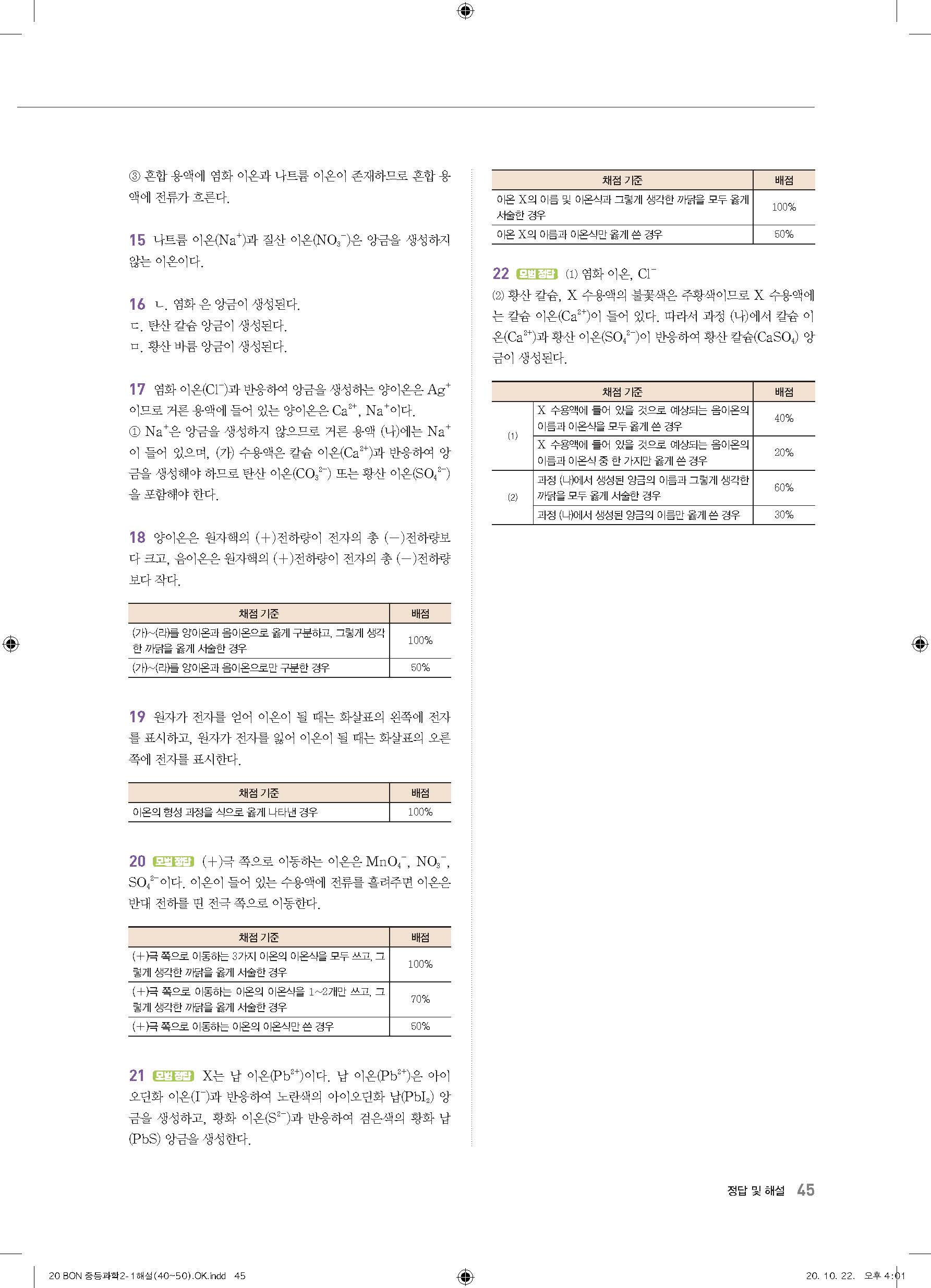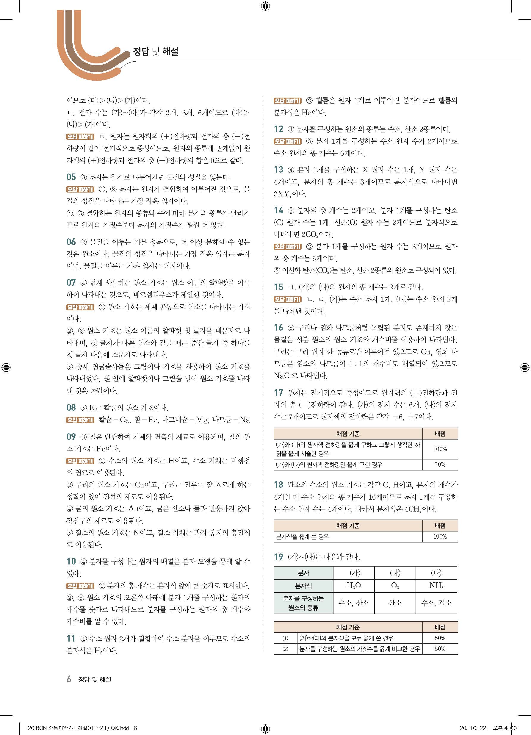 이투스 bon중등과학 2-1 답지 사진답지 빠른답지 모바일최적화