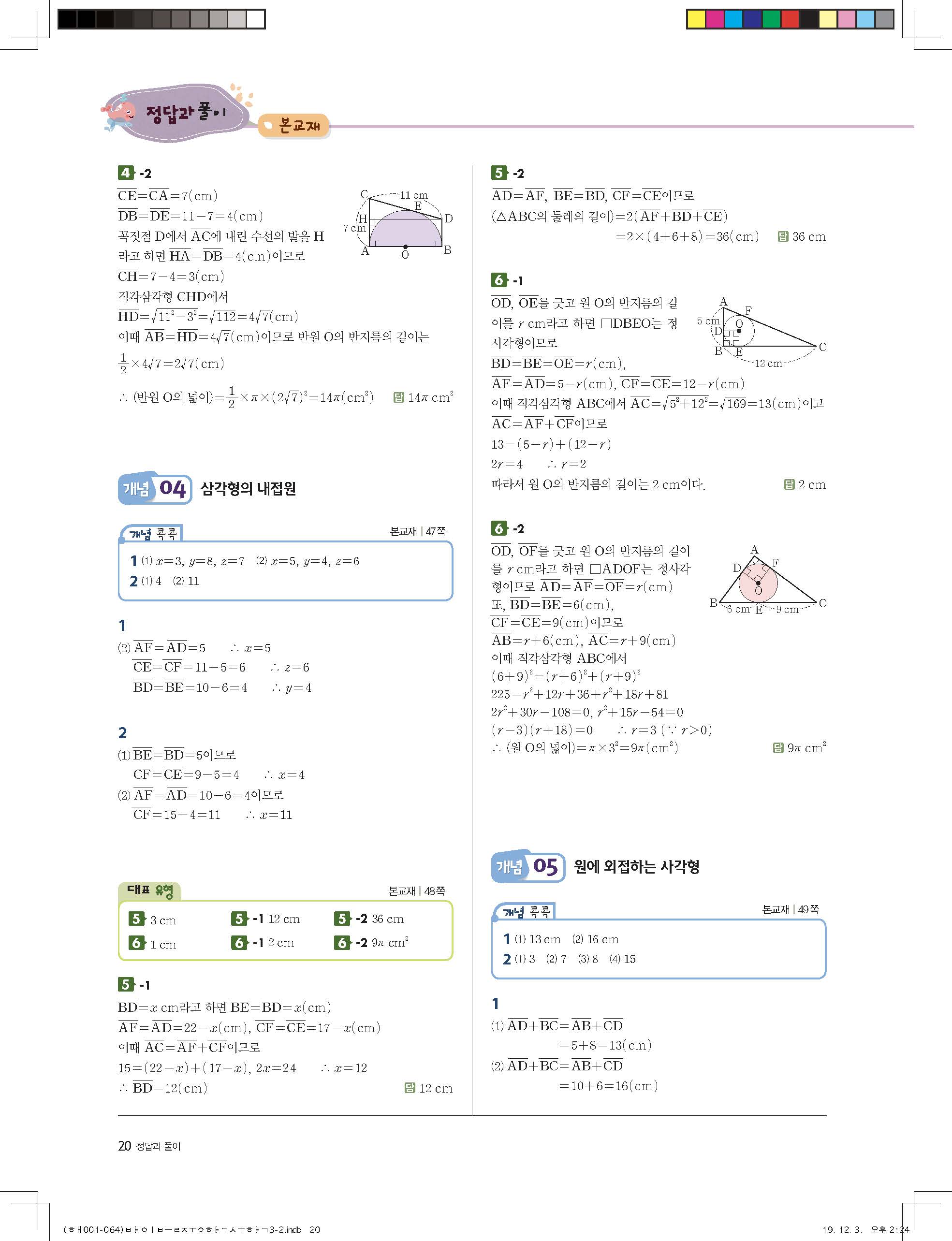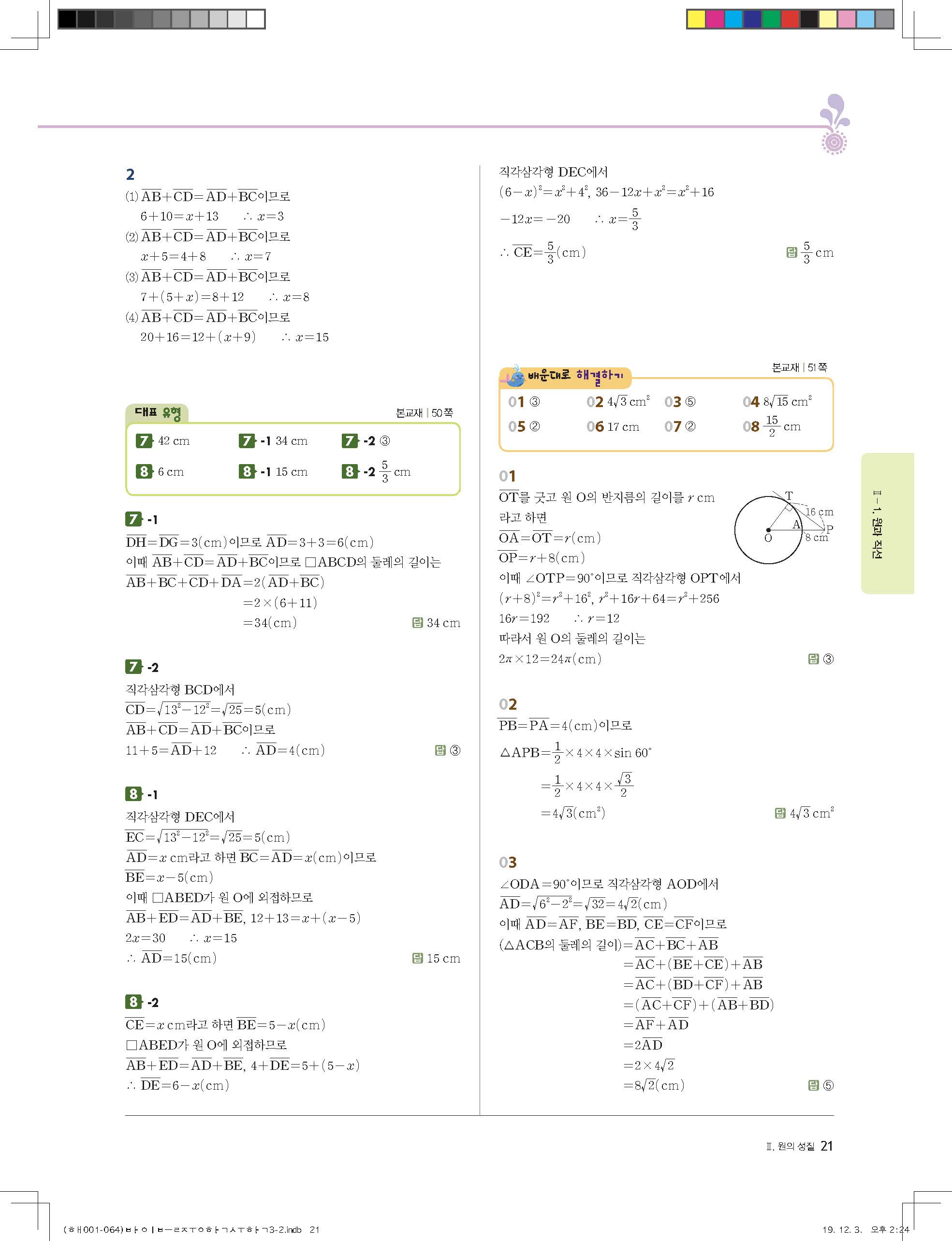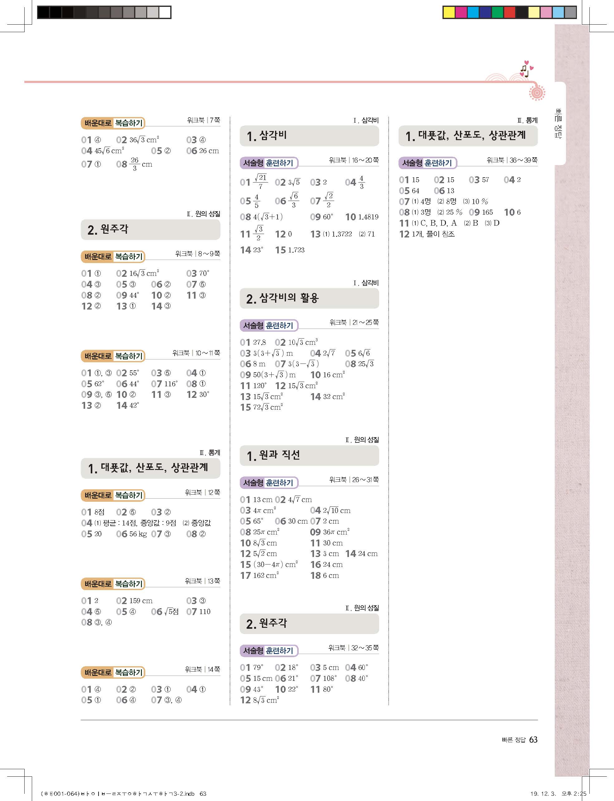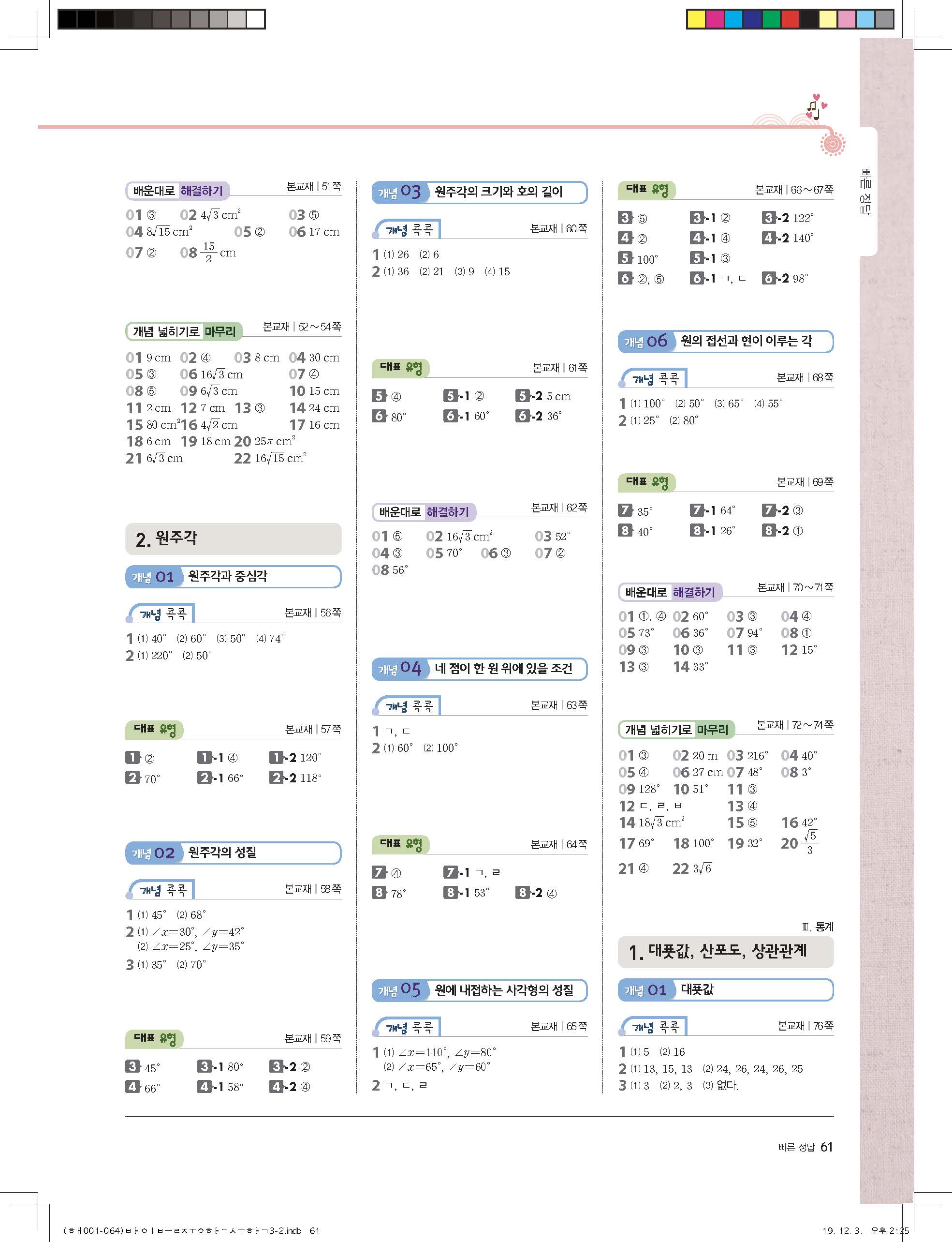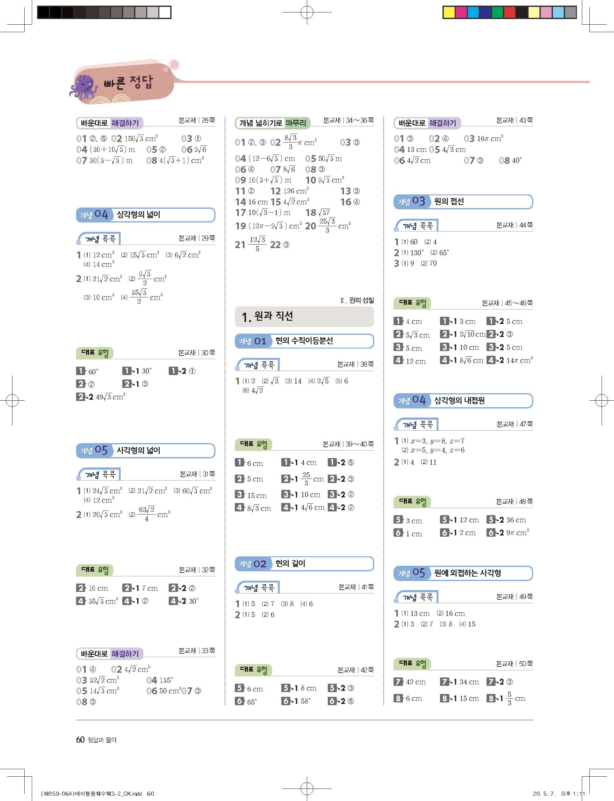 이투스 신수학의바이블 개념 중학수학3-2 답지 사진답지 빠른답지 모바일최적화