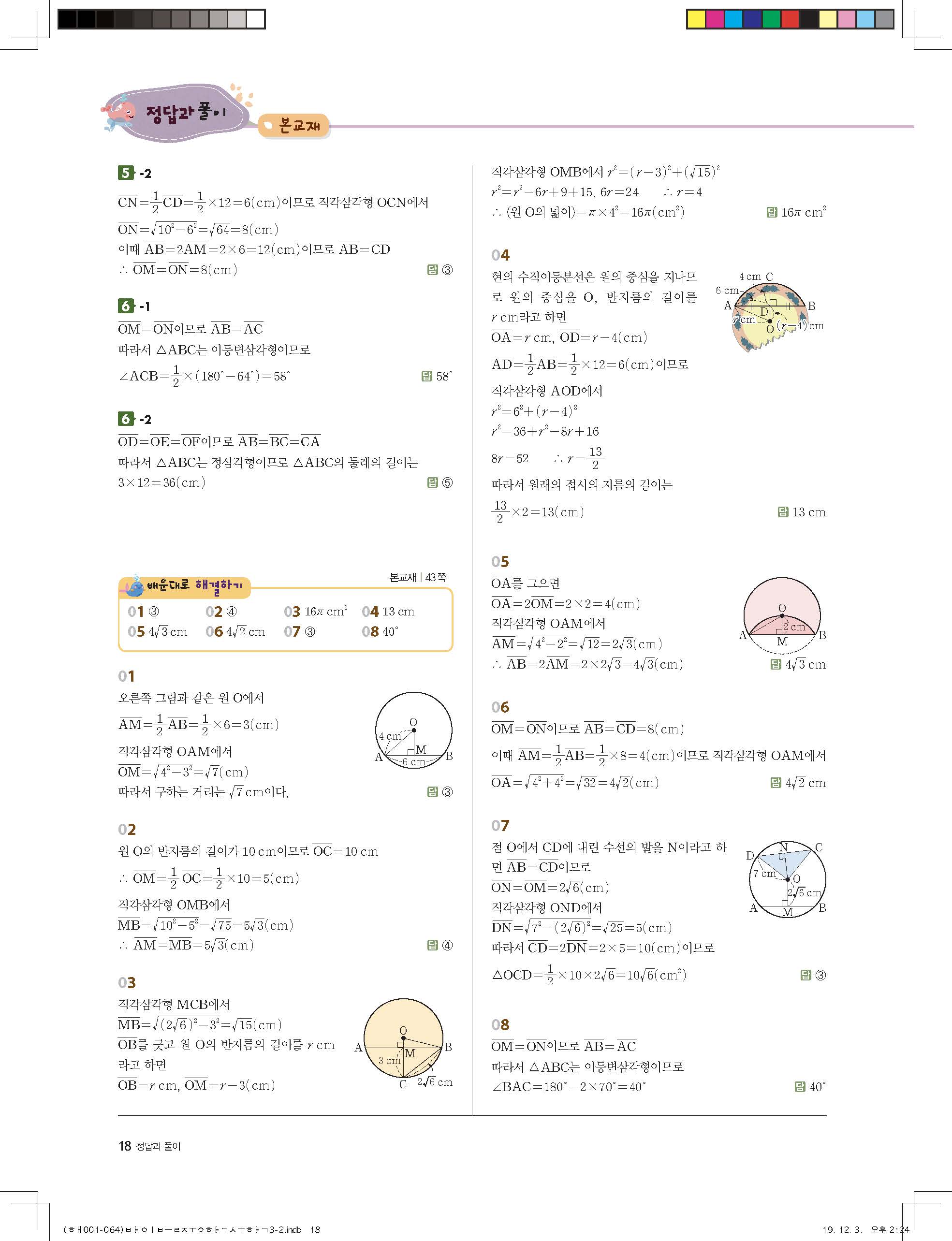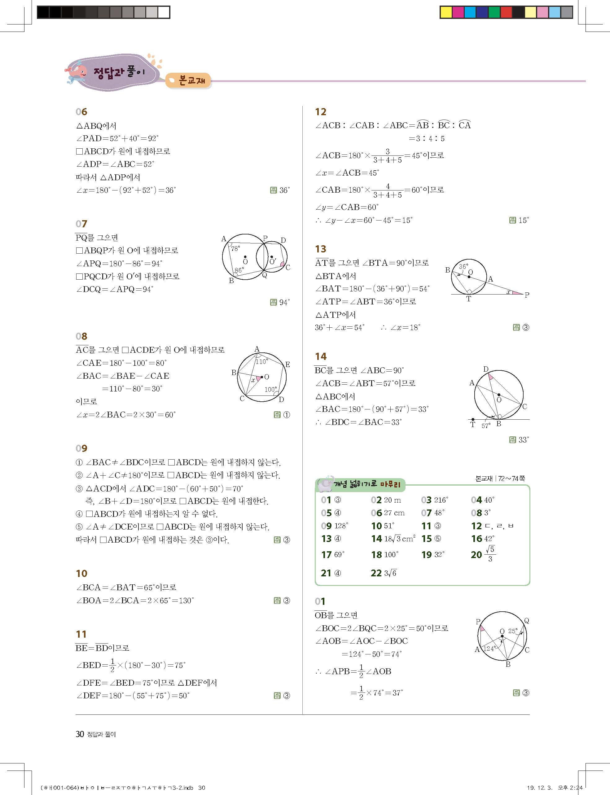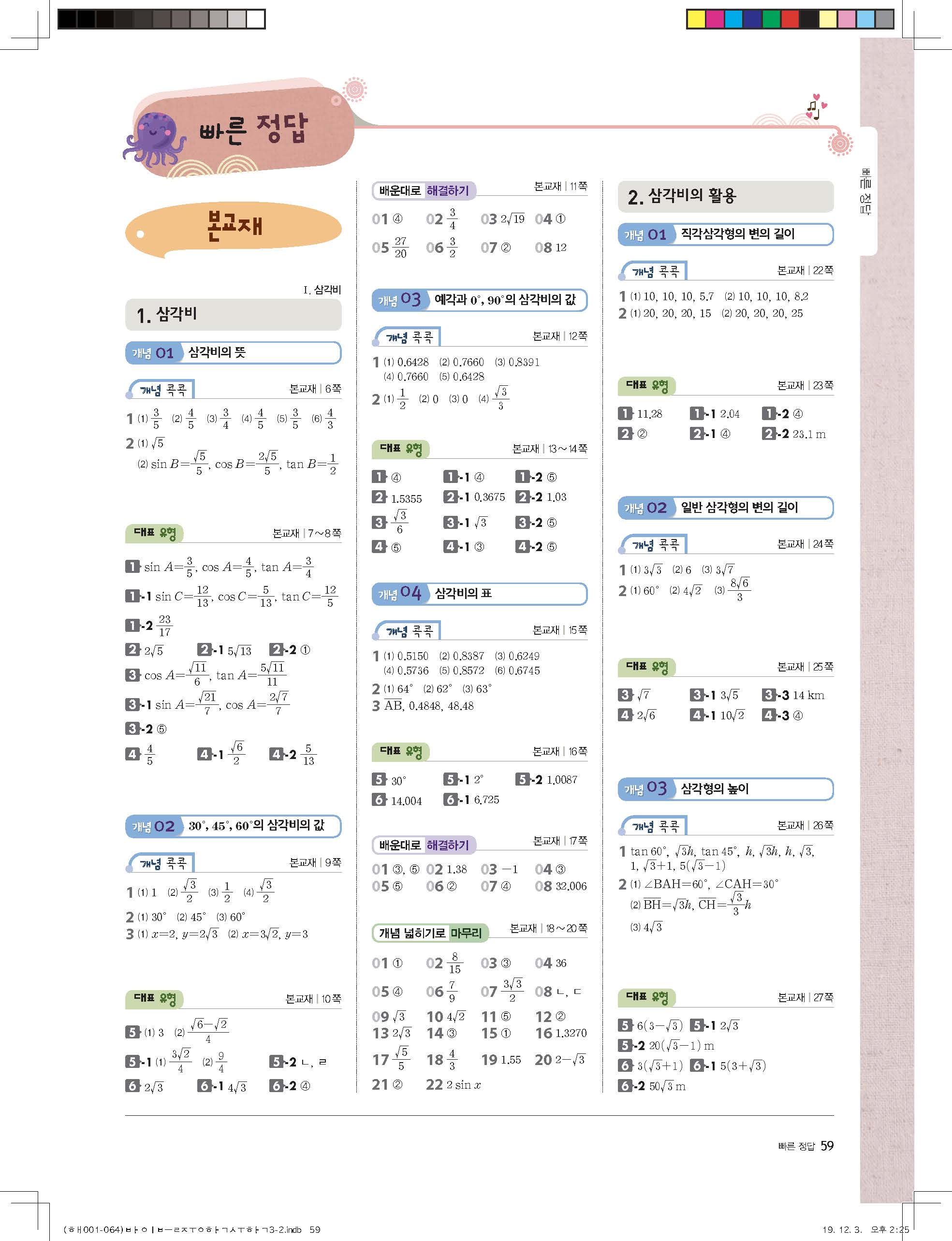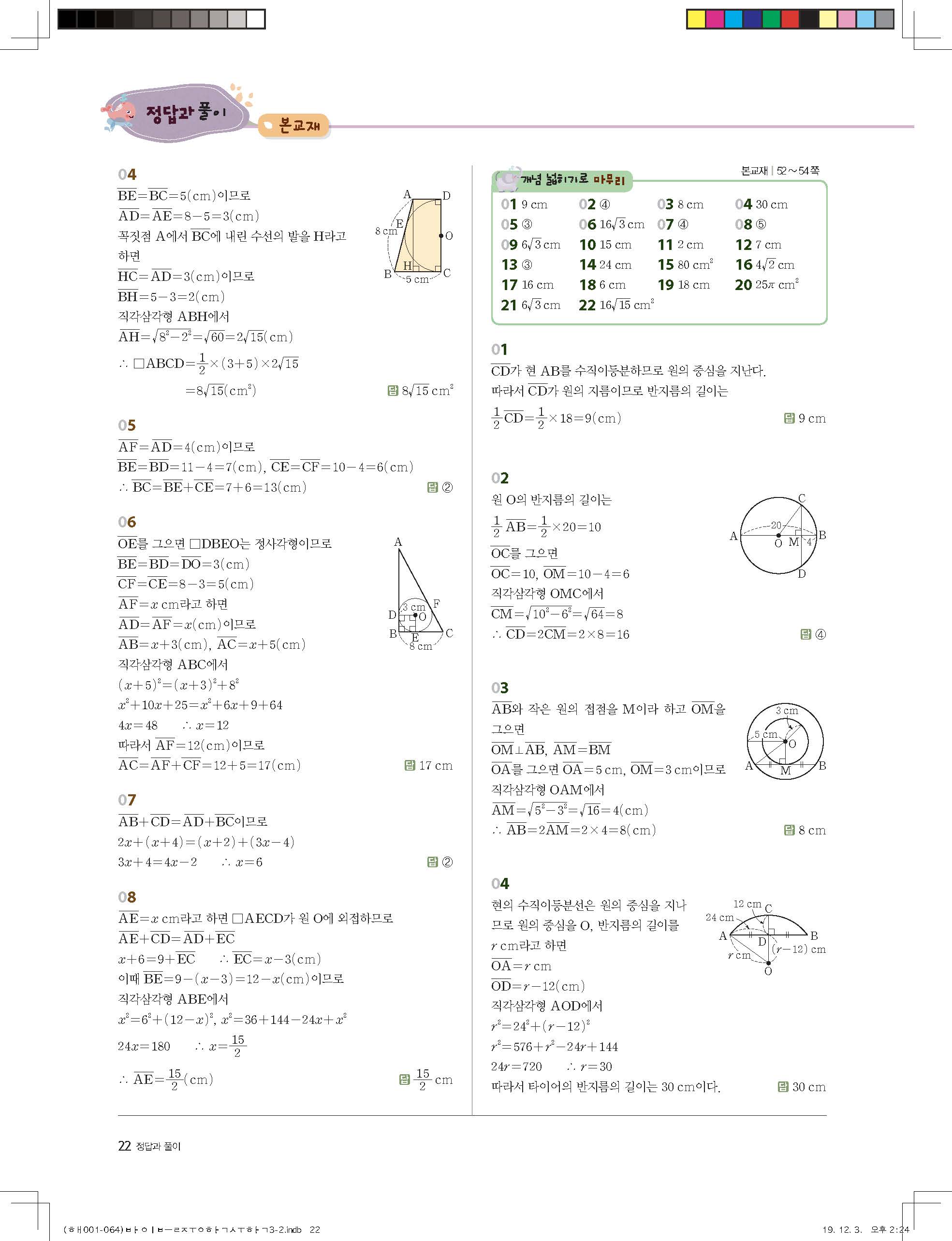 이투스 신수학의바이블 개념 중학수학3-2 답지 사진답지 빠른답지 모바일최적화