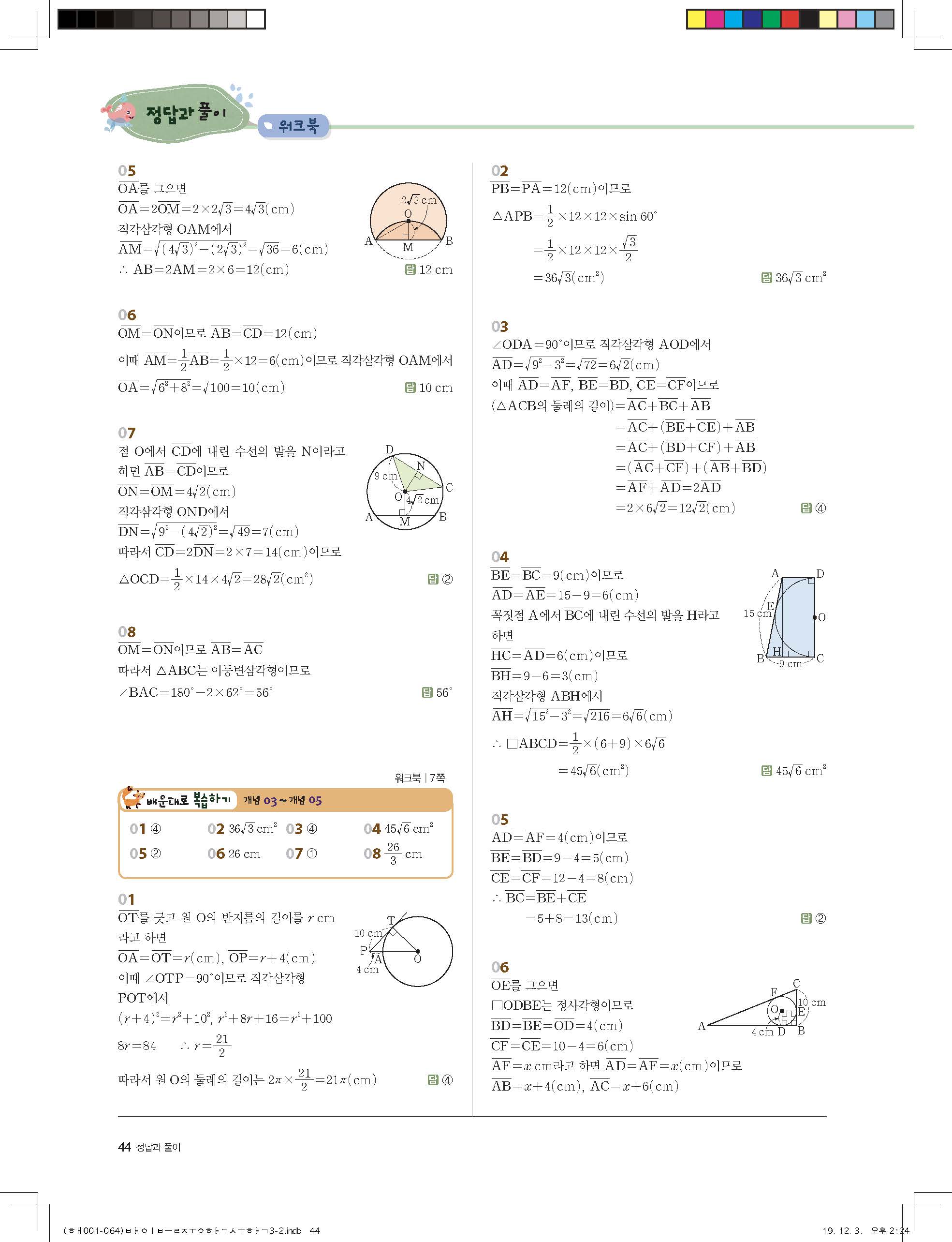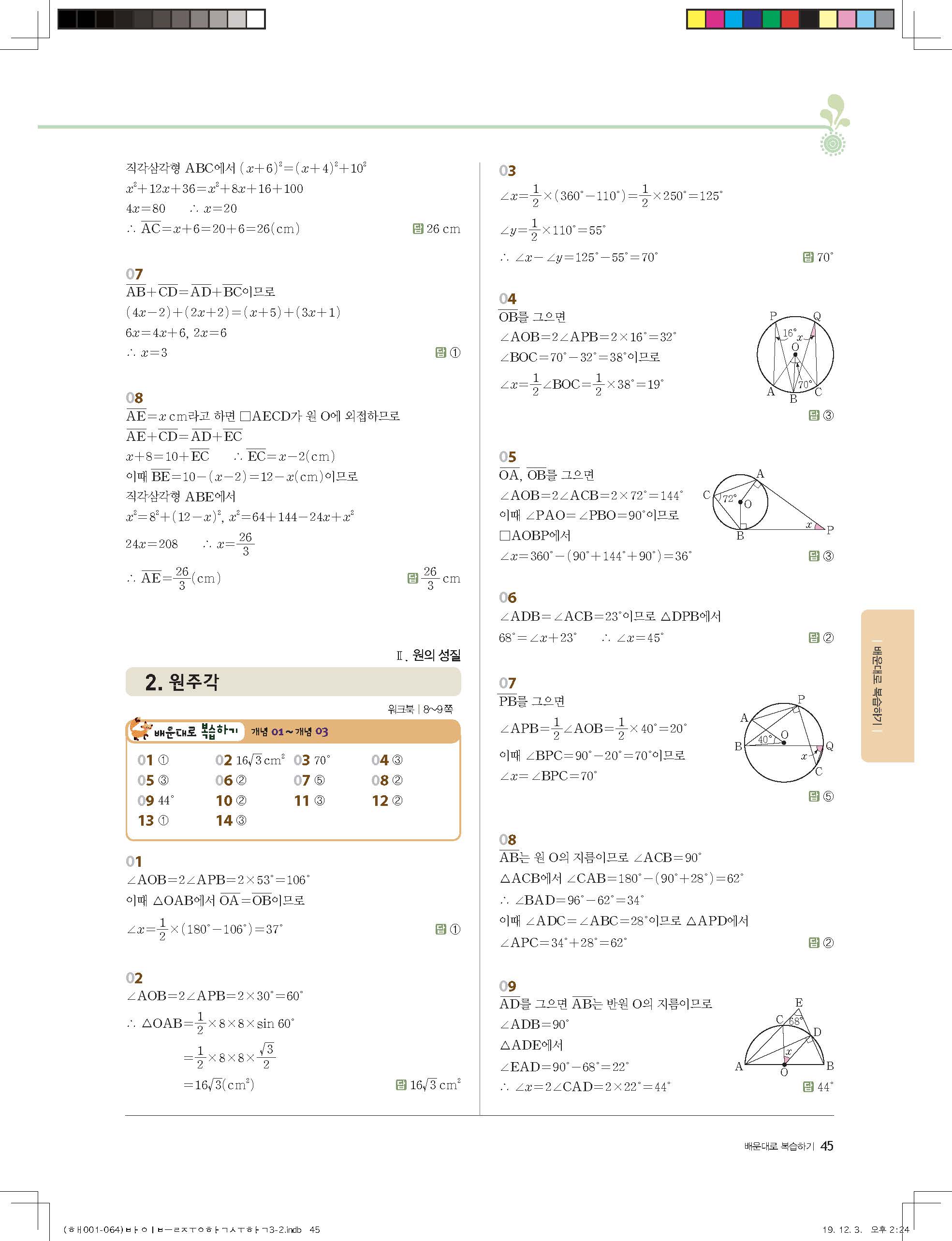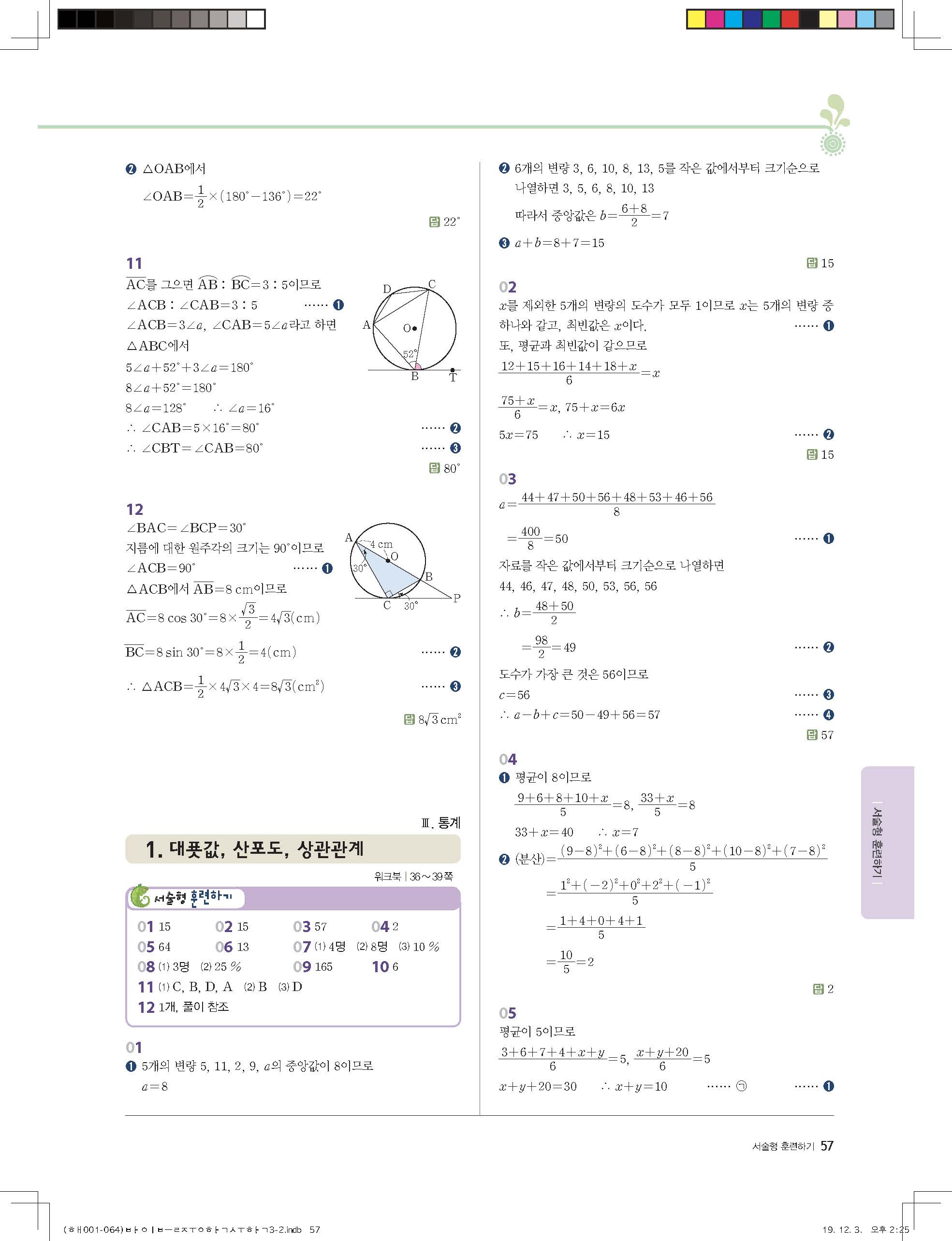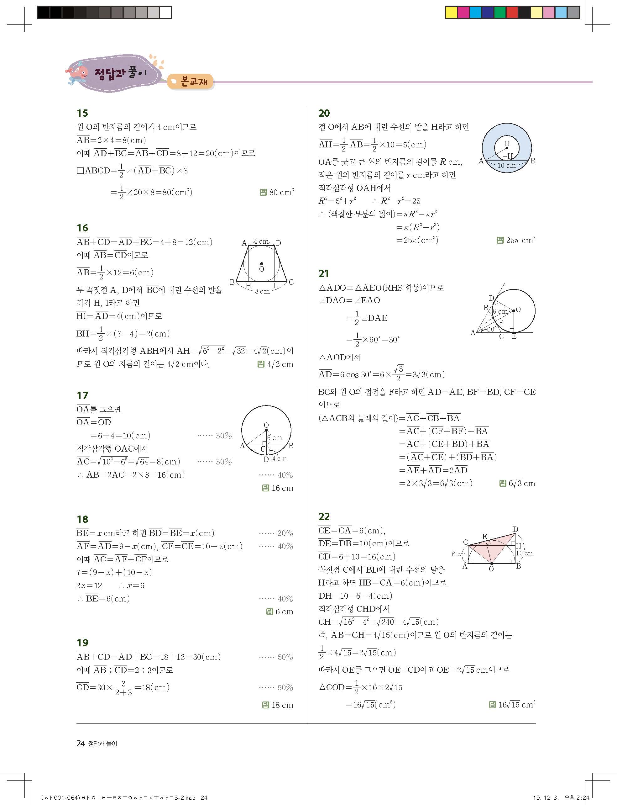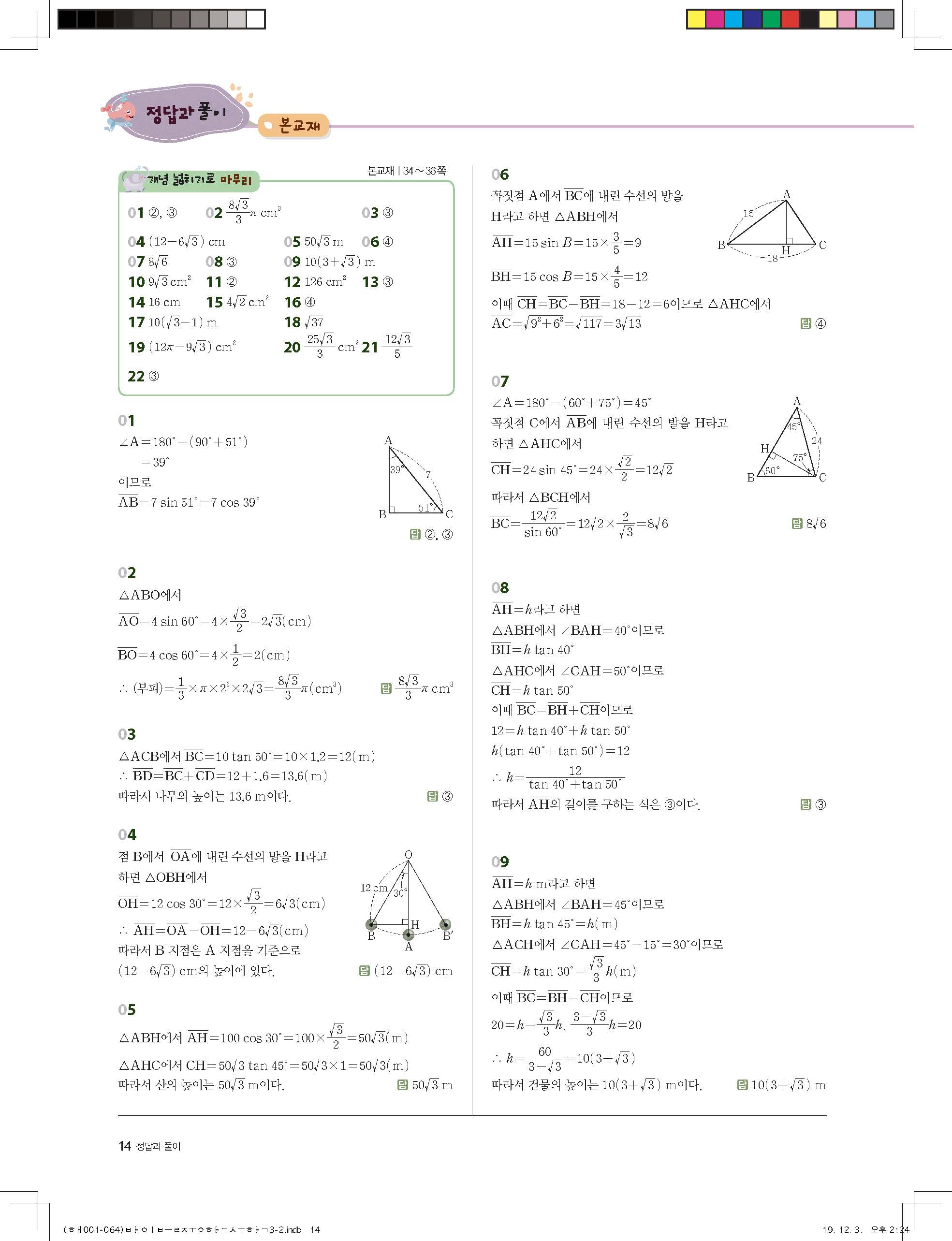 이투스 신수학의바이블 개념 중학수학3-2 답지 사진답지 빠른답지 모바일최적화