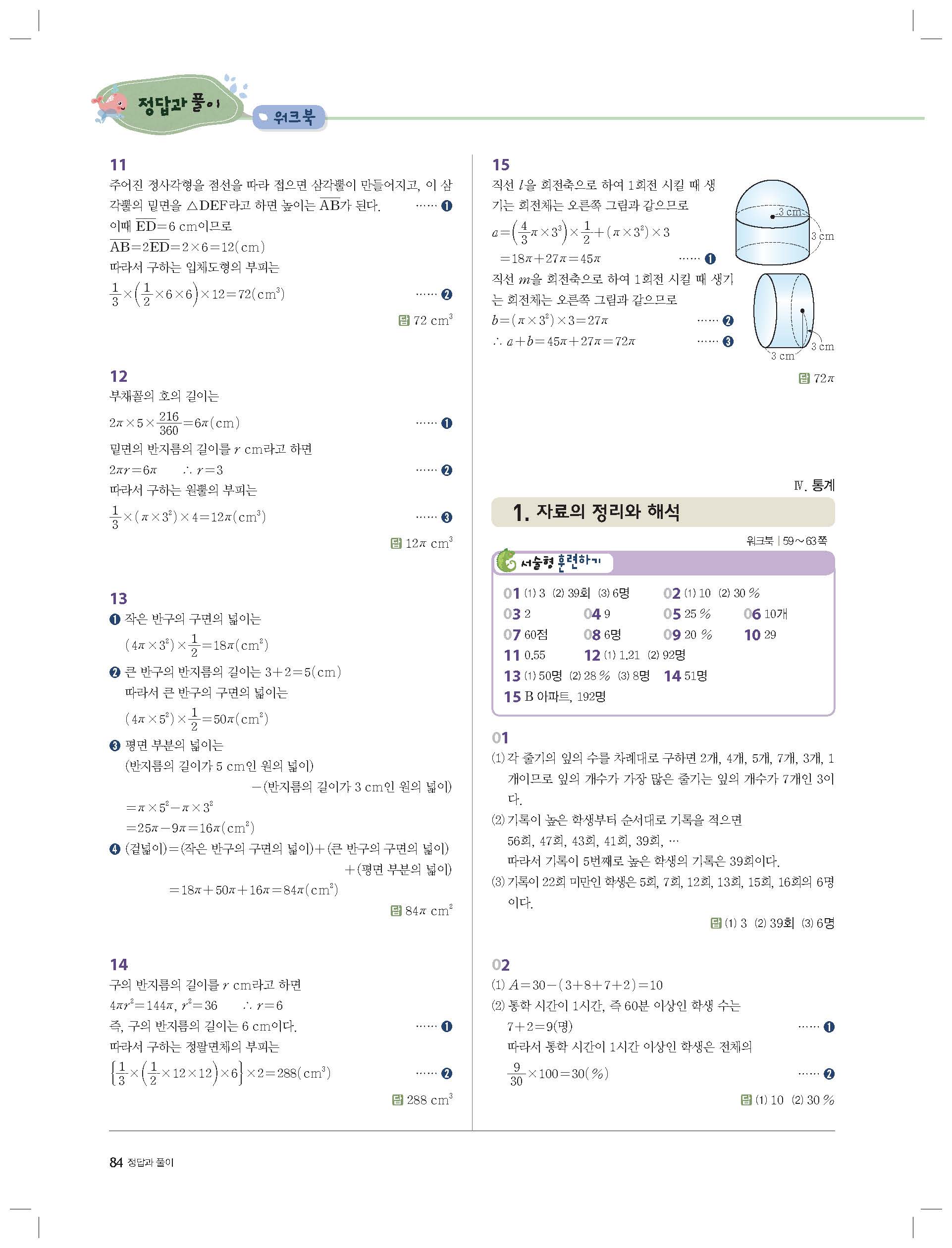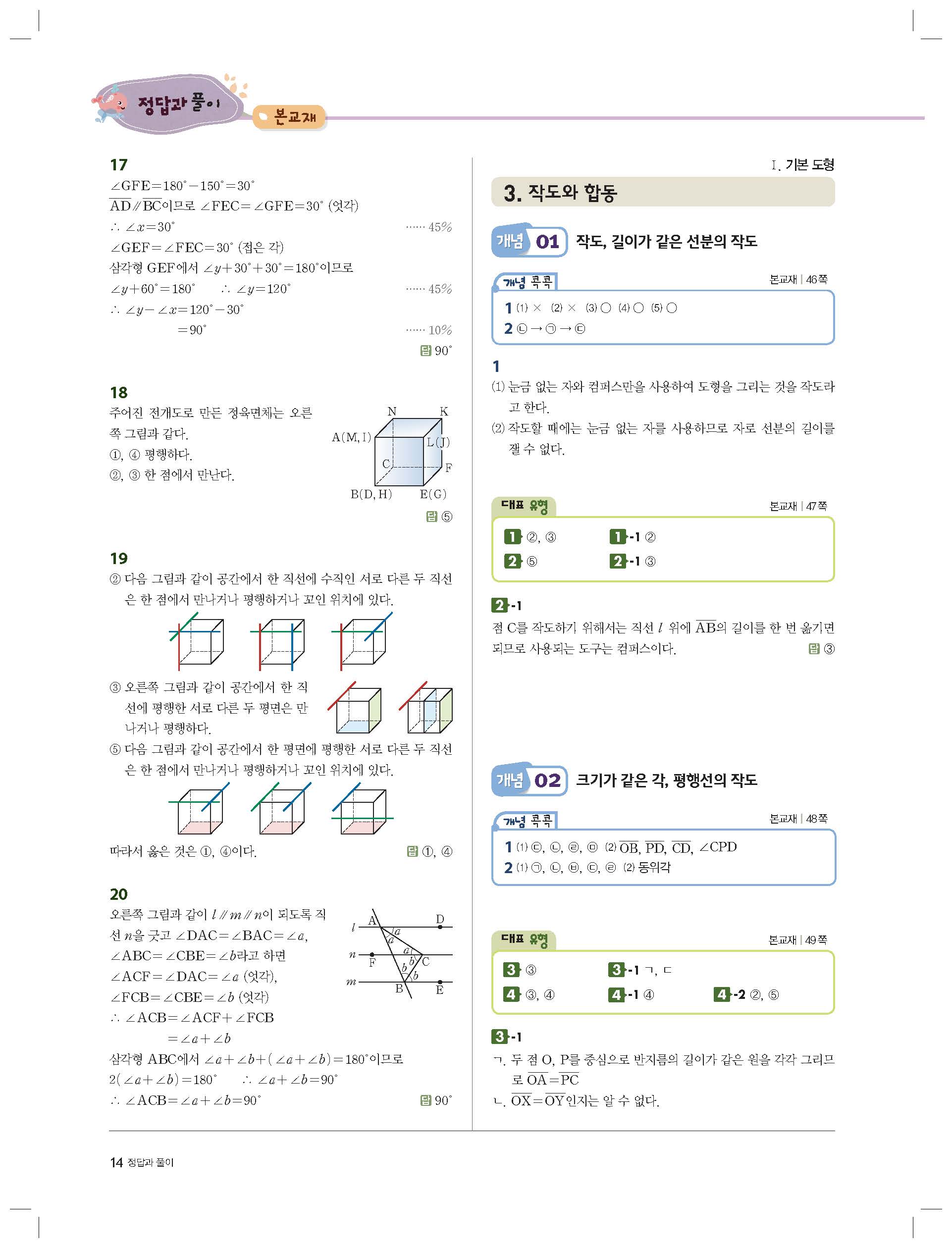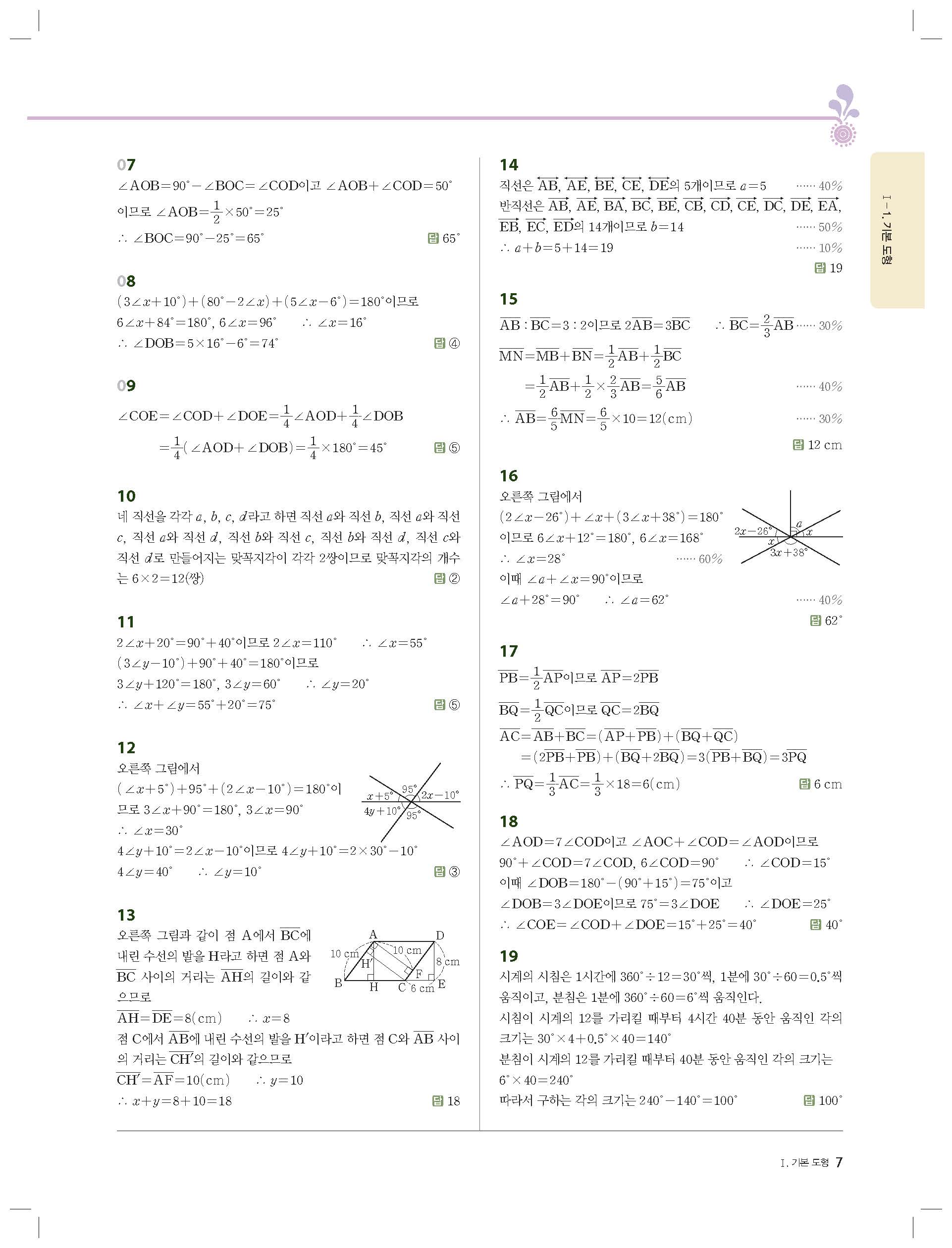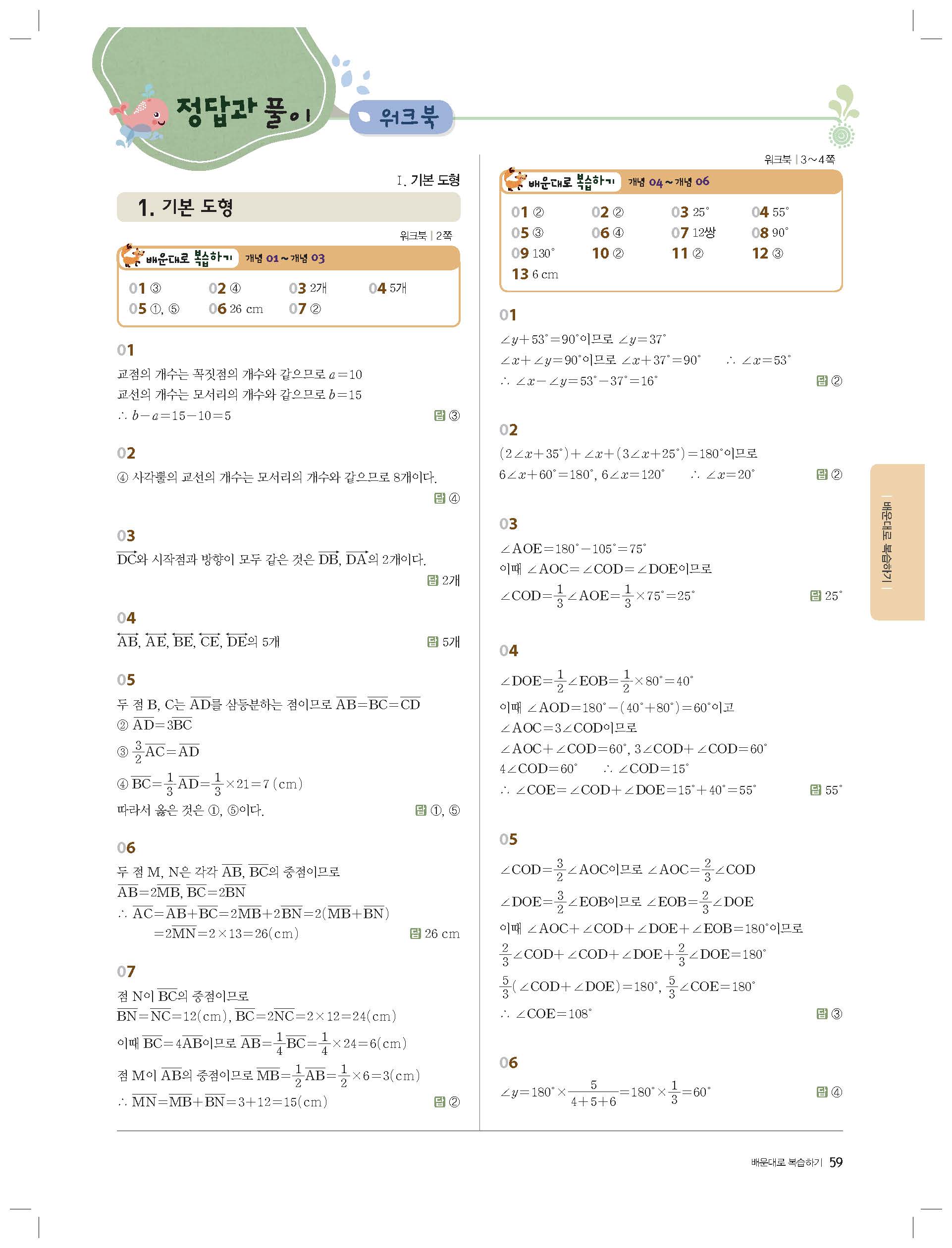 이투스 신수학의바이블 개념 중학수학1-2 답지 사진답지 빠른답지 모바일최적화