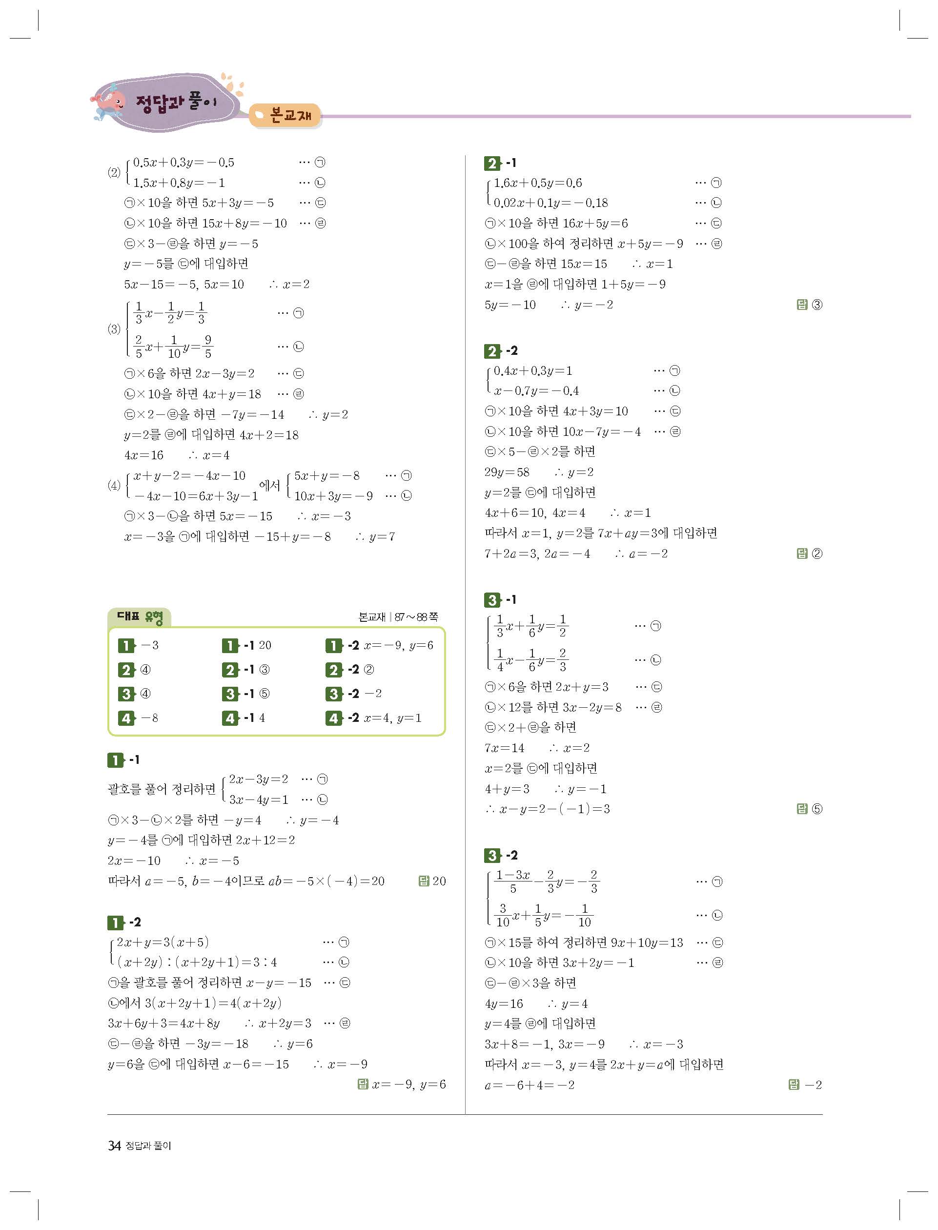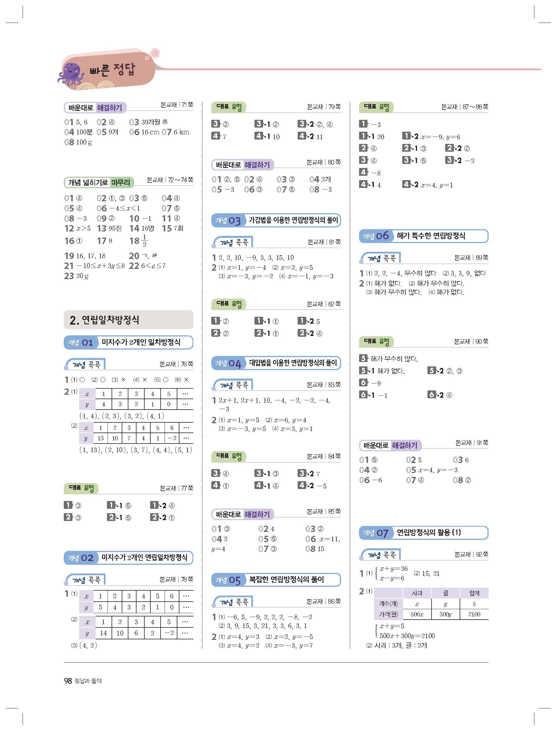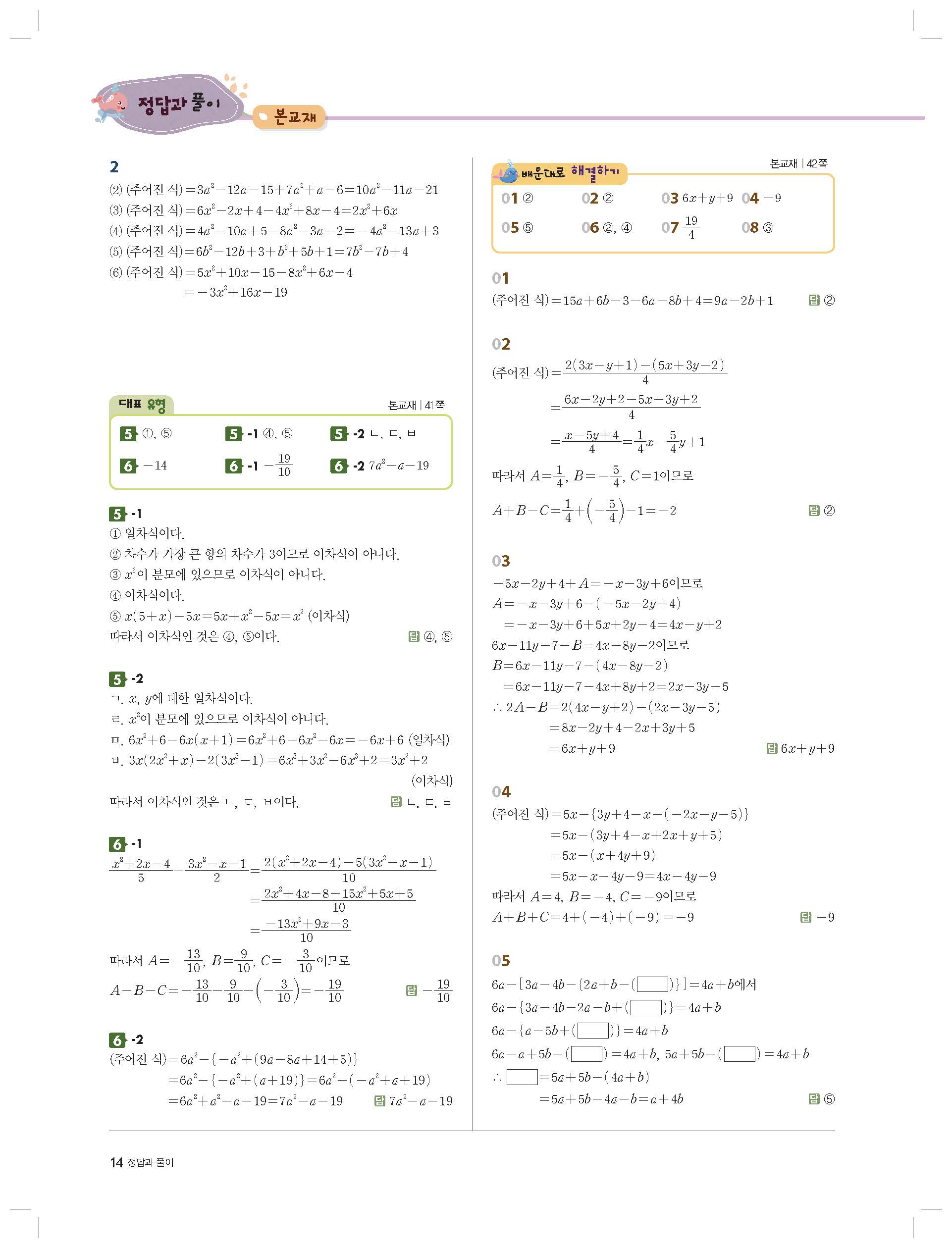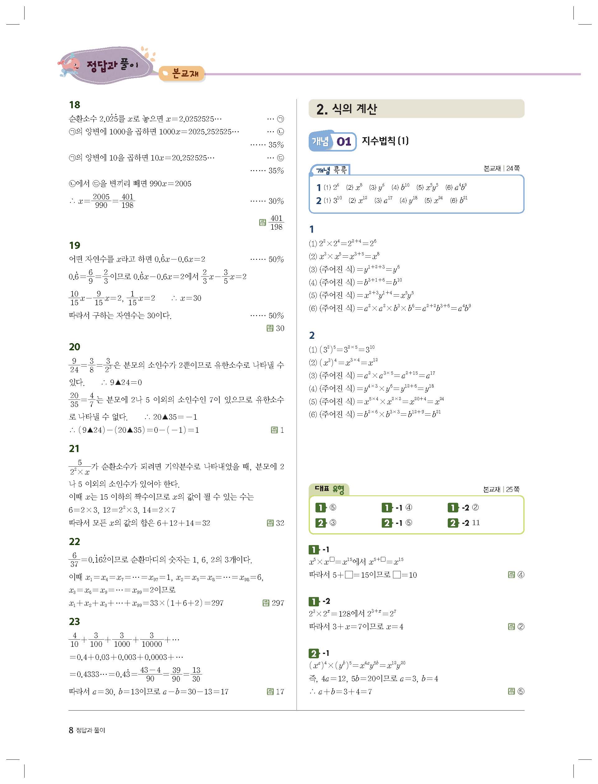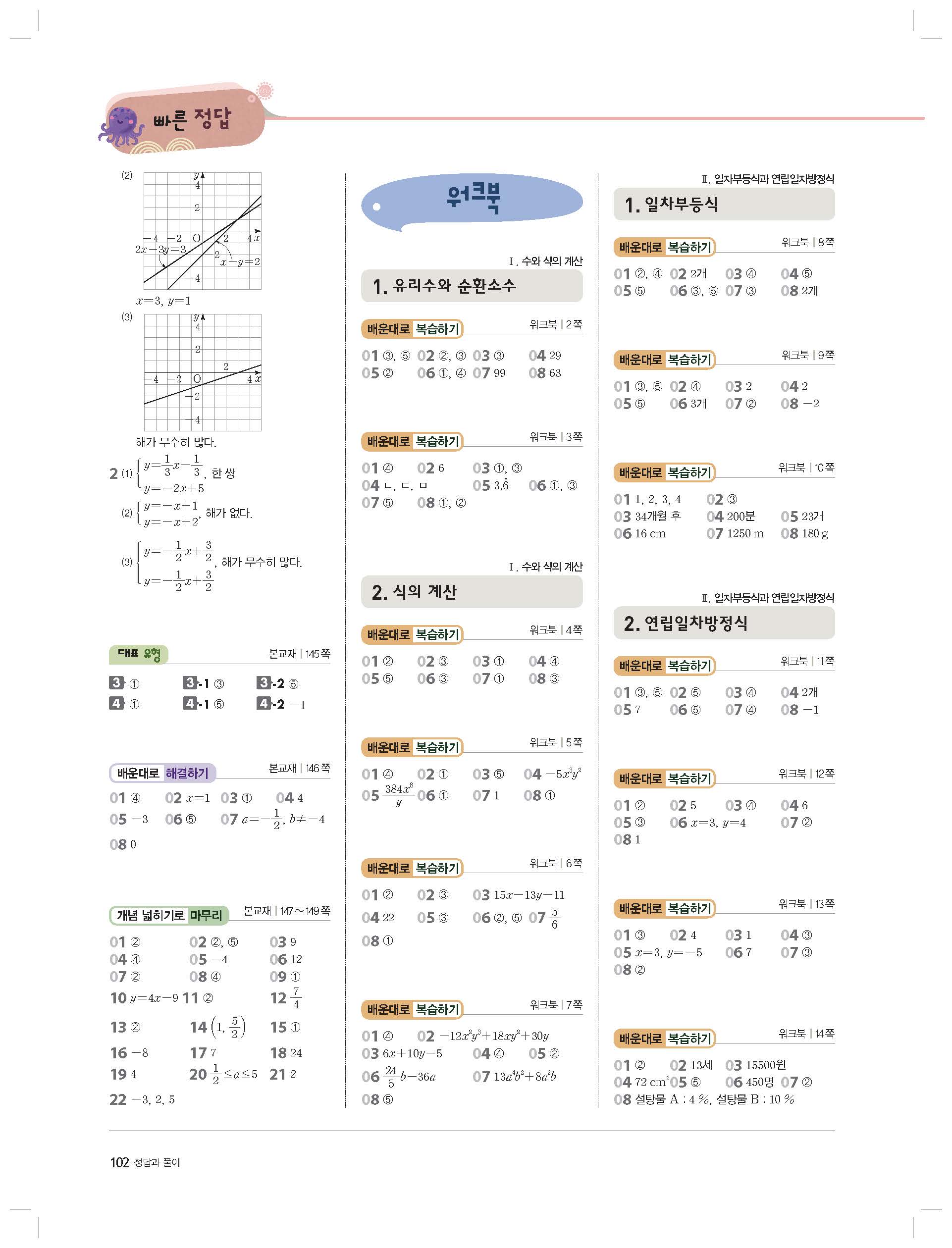 이투스 신수학의바이블 개념 중학수학2-1 답지 사진답지 빠른답지 모바일최적화