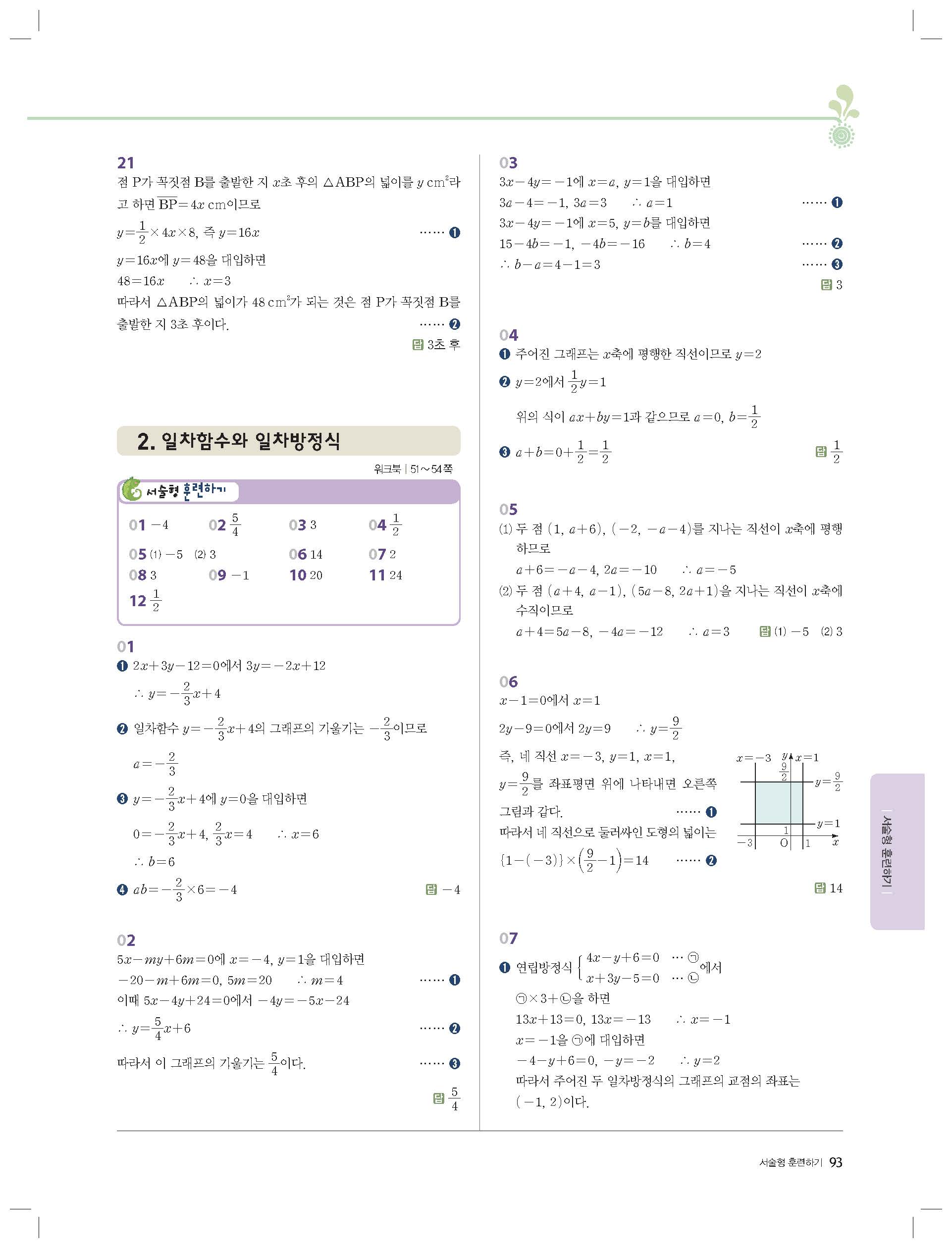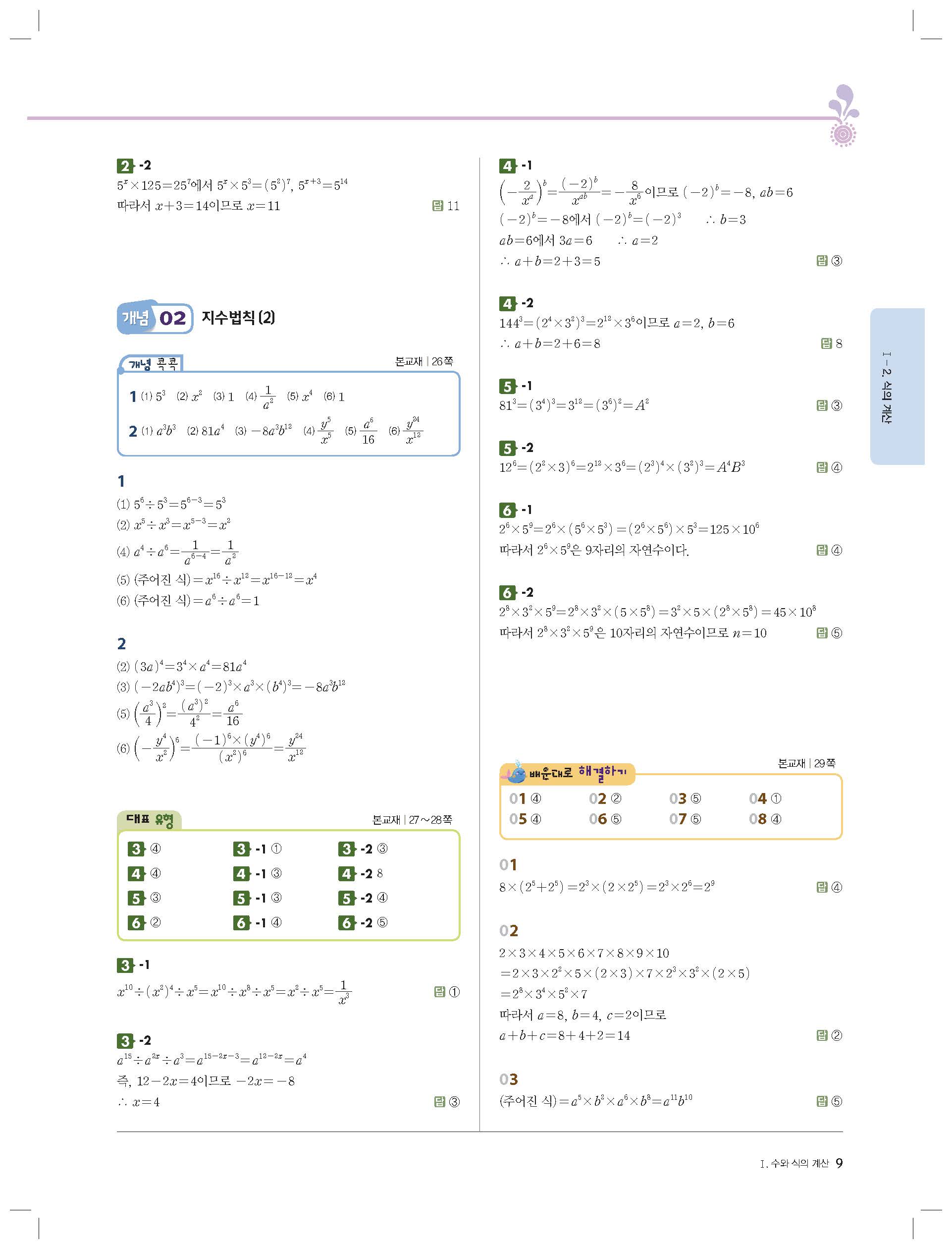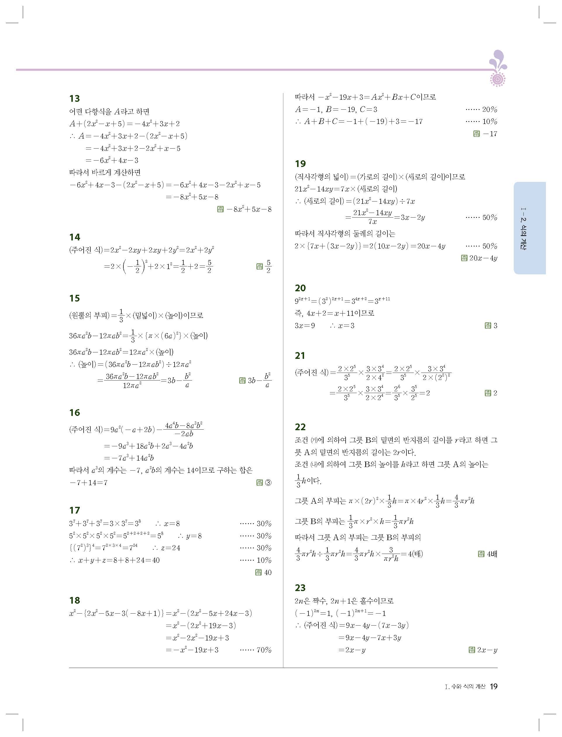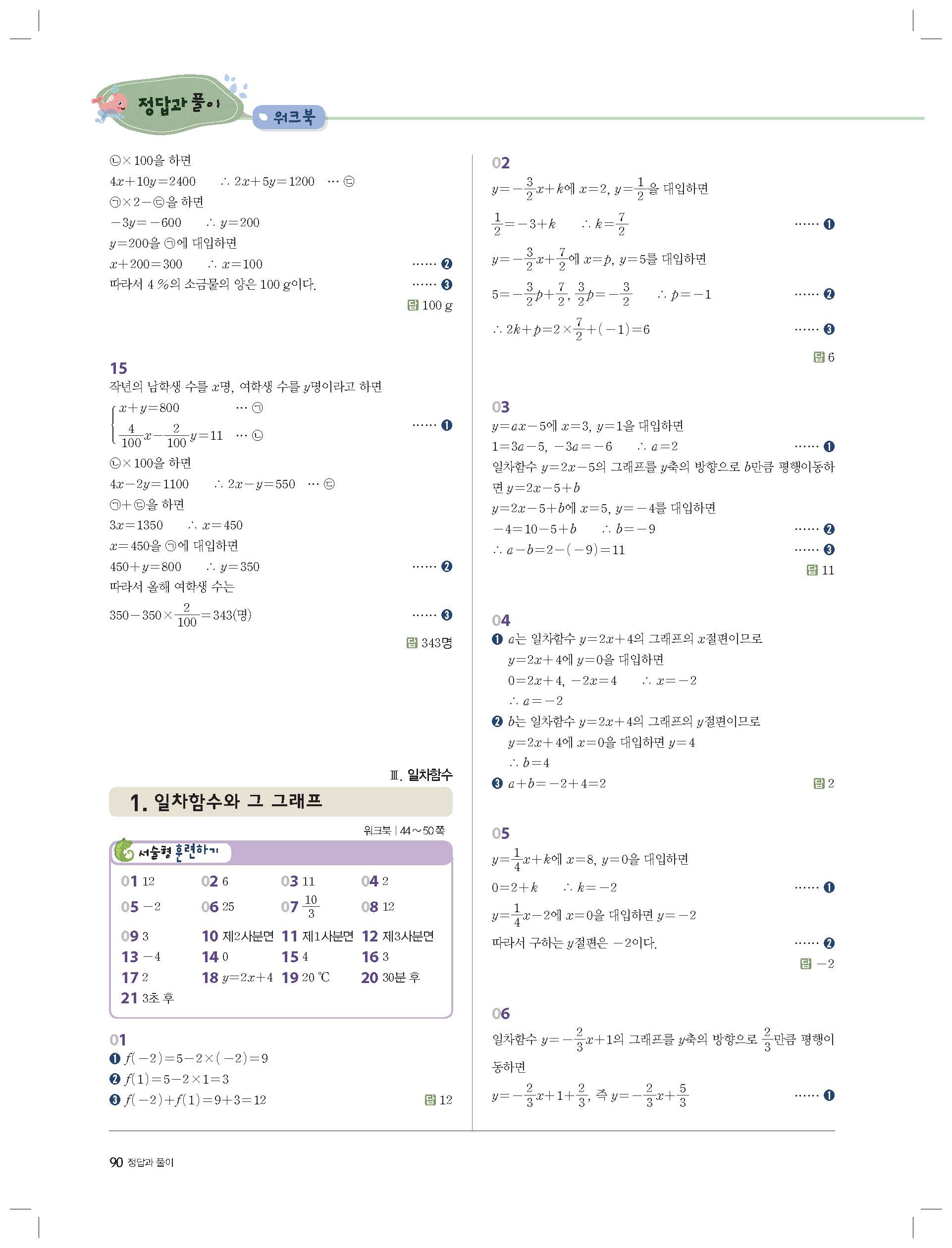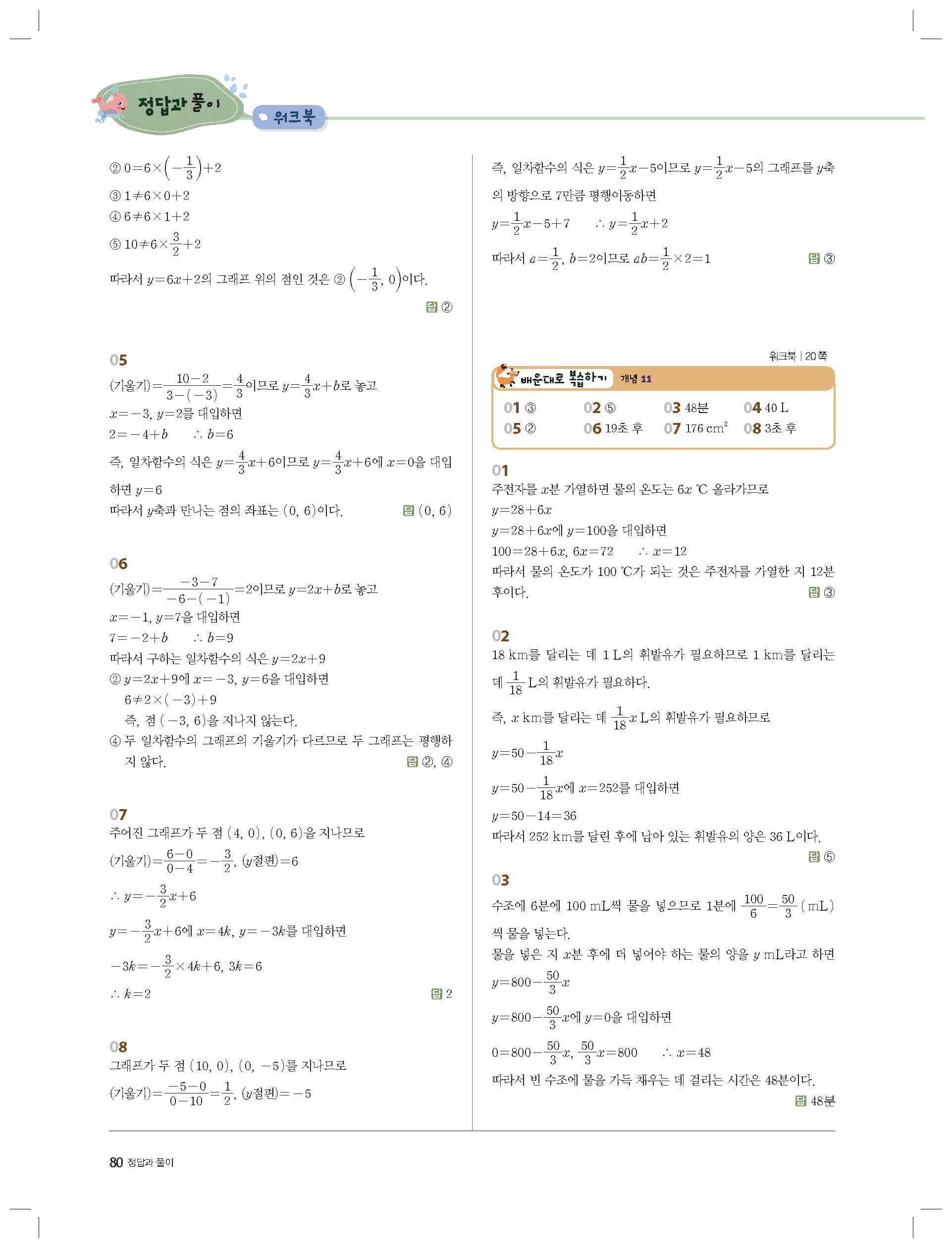 이투스 신수학의바이블 개념 중학수학2-1 답지 사진답지 빠른답지 모바일최적화
