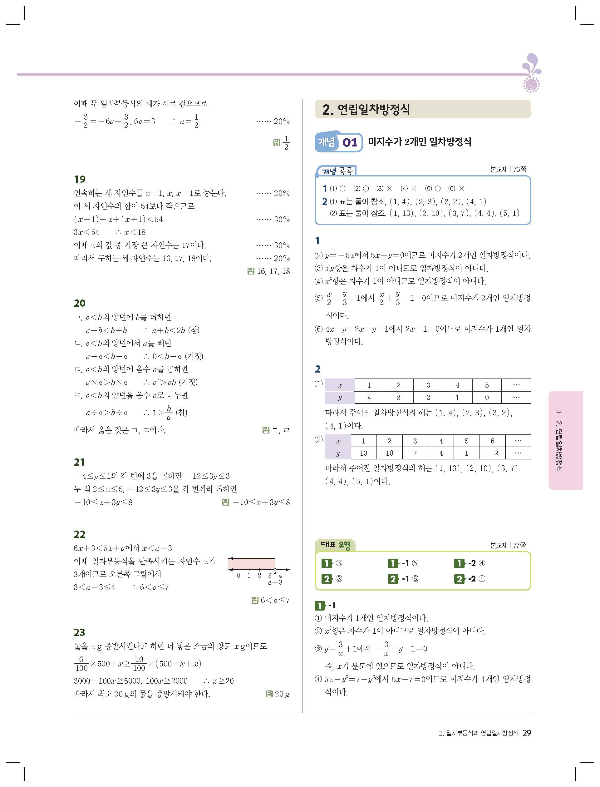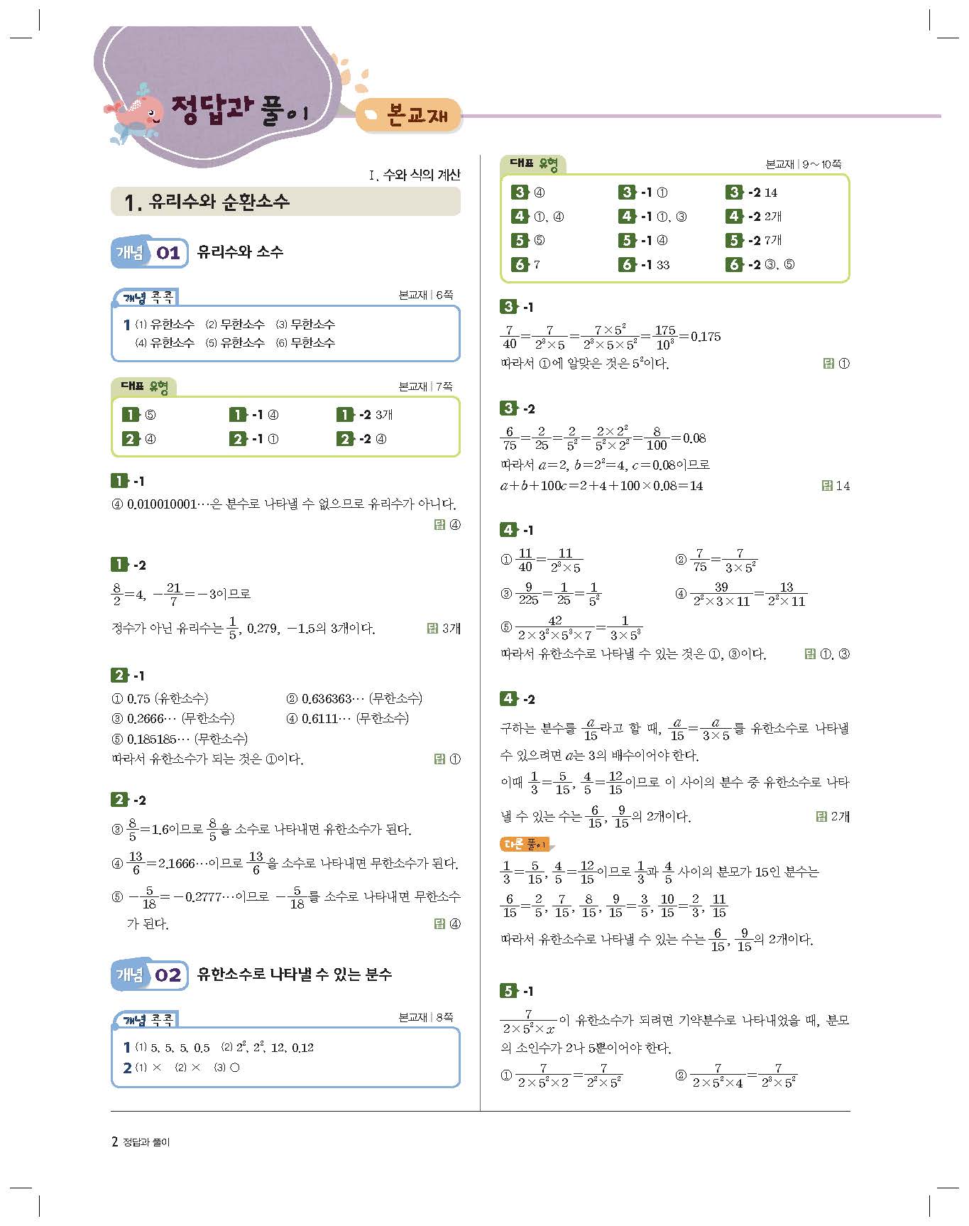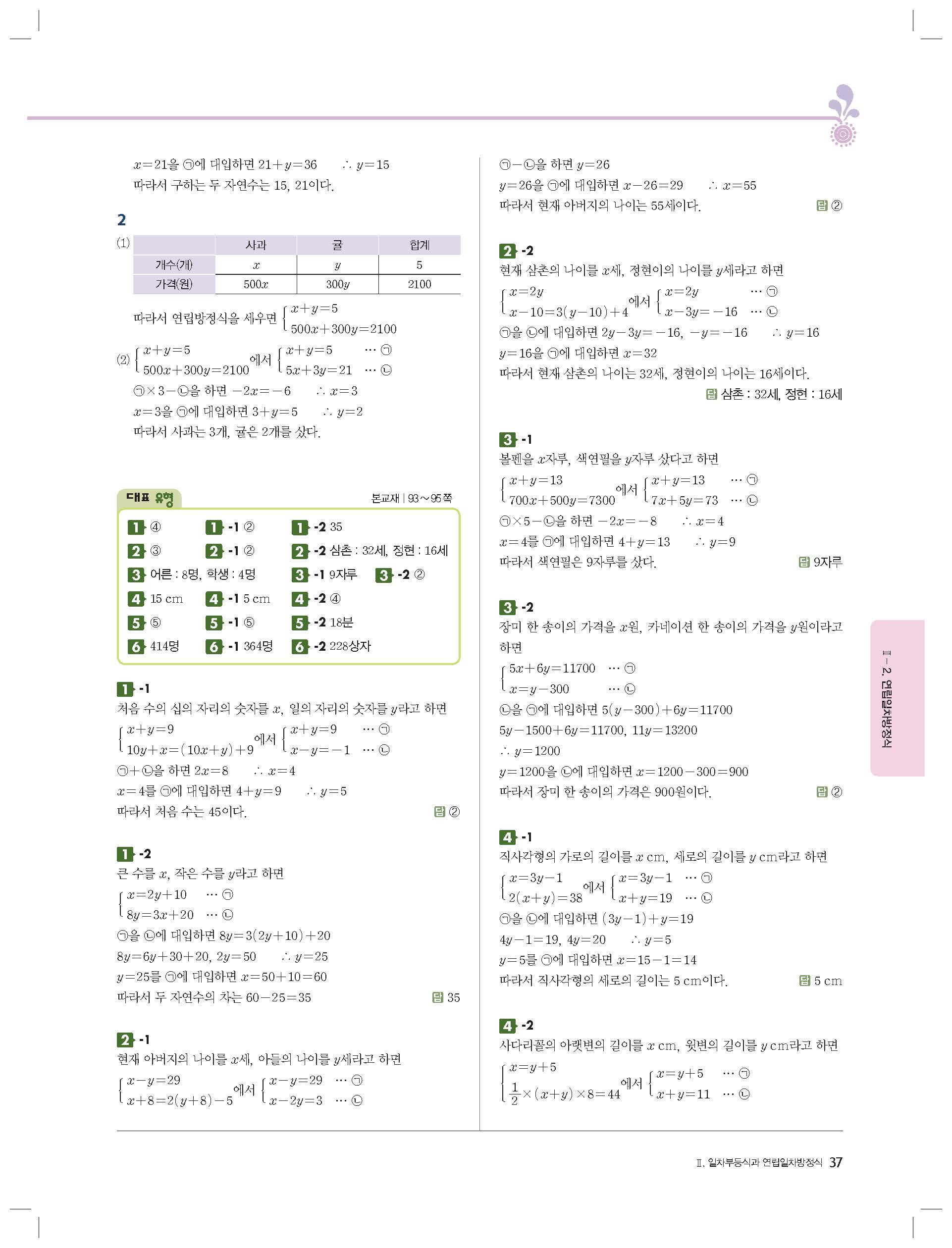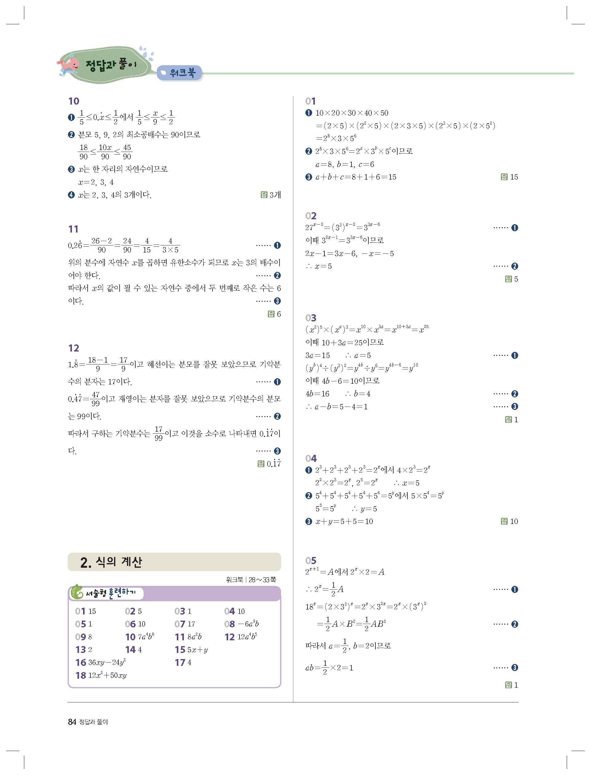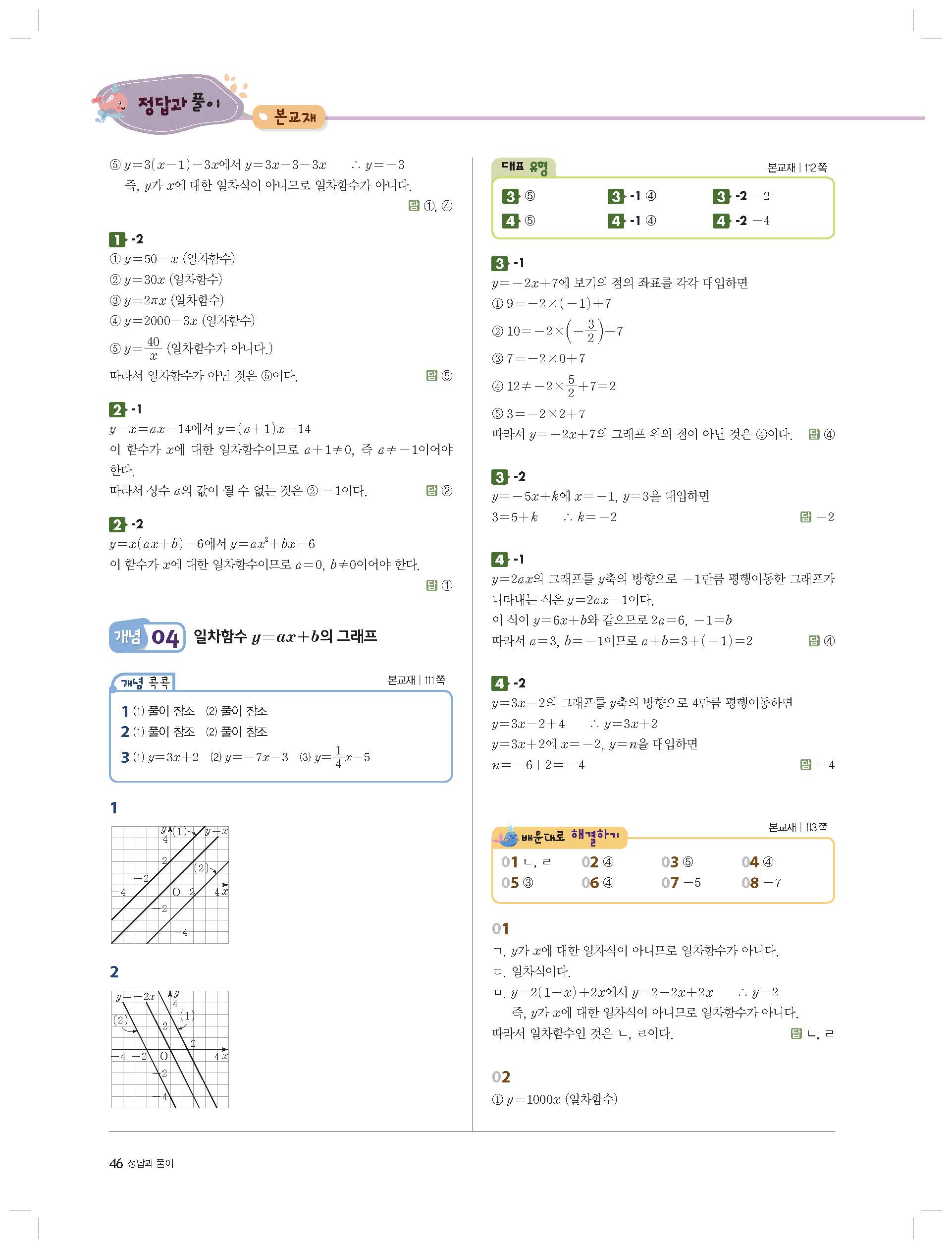 이투스 신수학의바이블 개념 중학수학2-1 답지 사진답지 빠른답지 모바일최적화