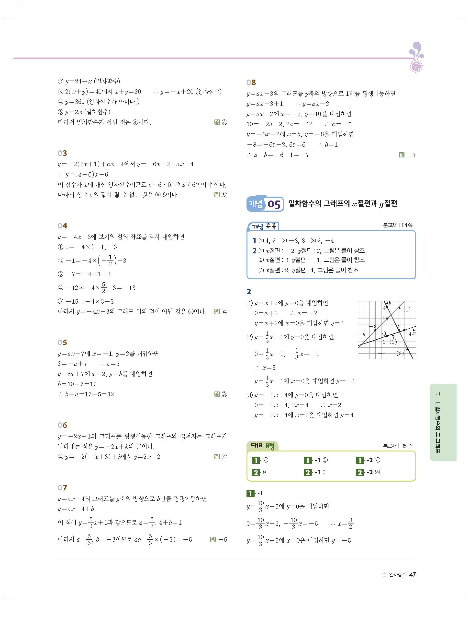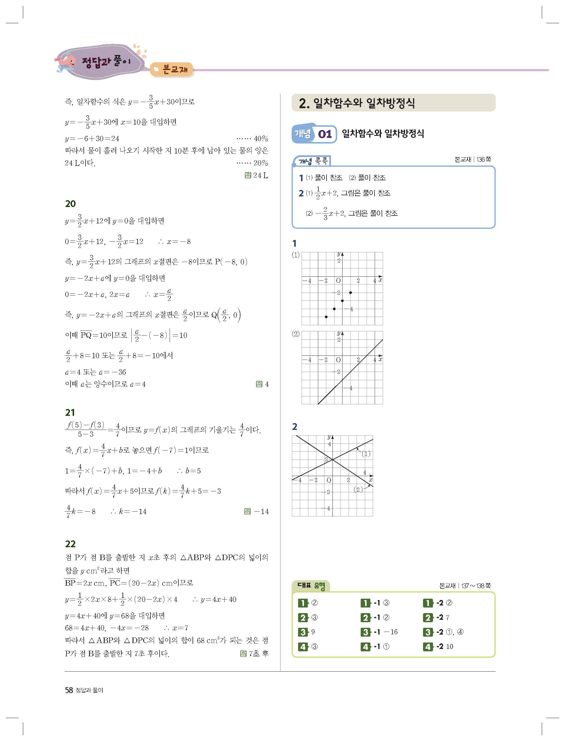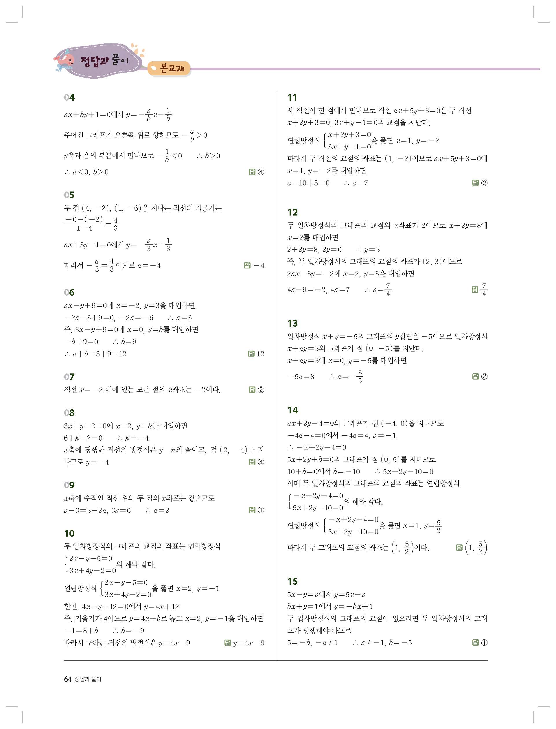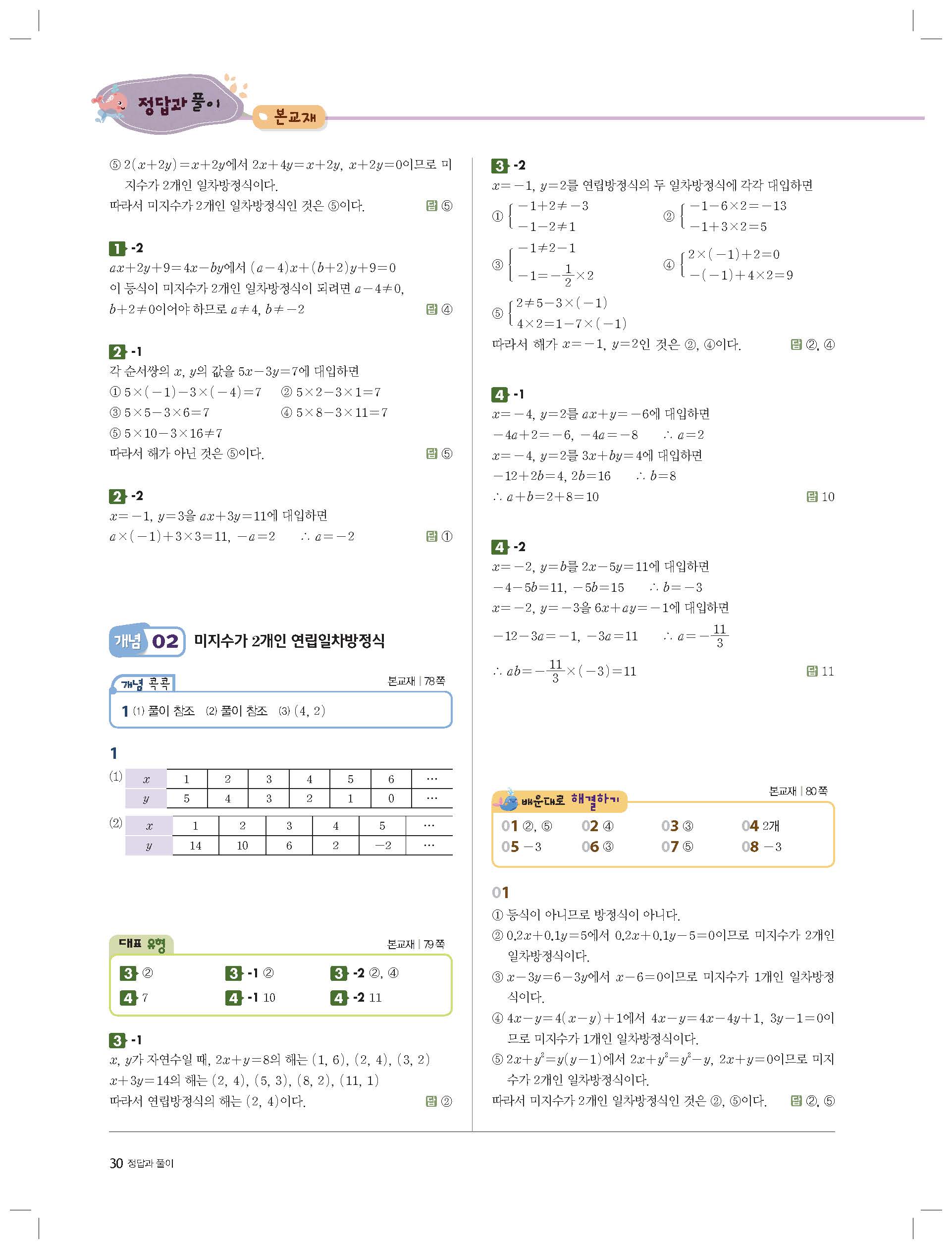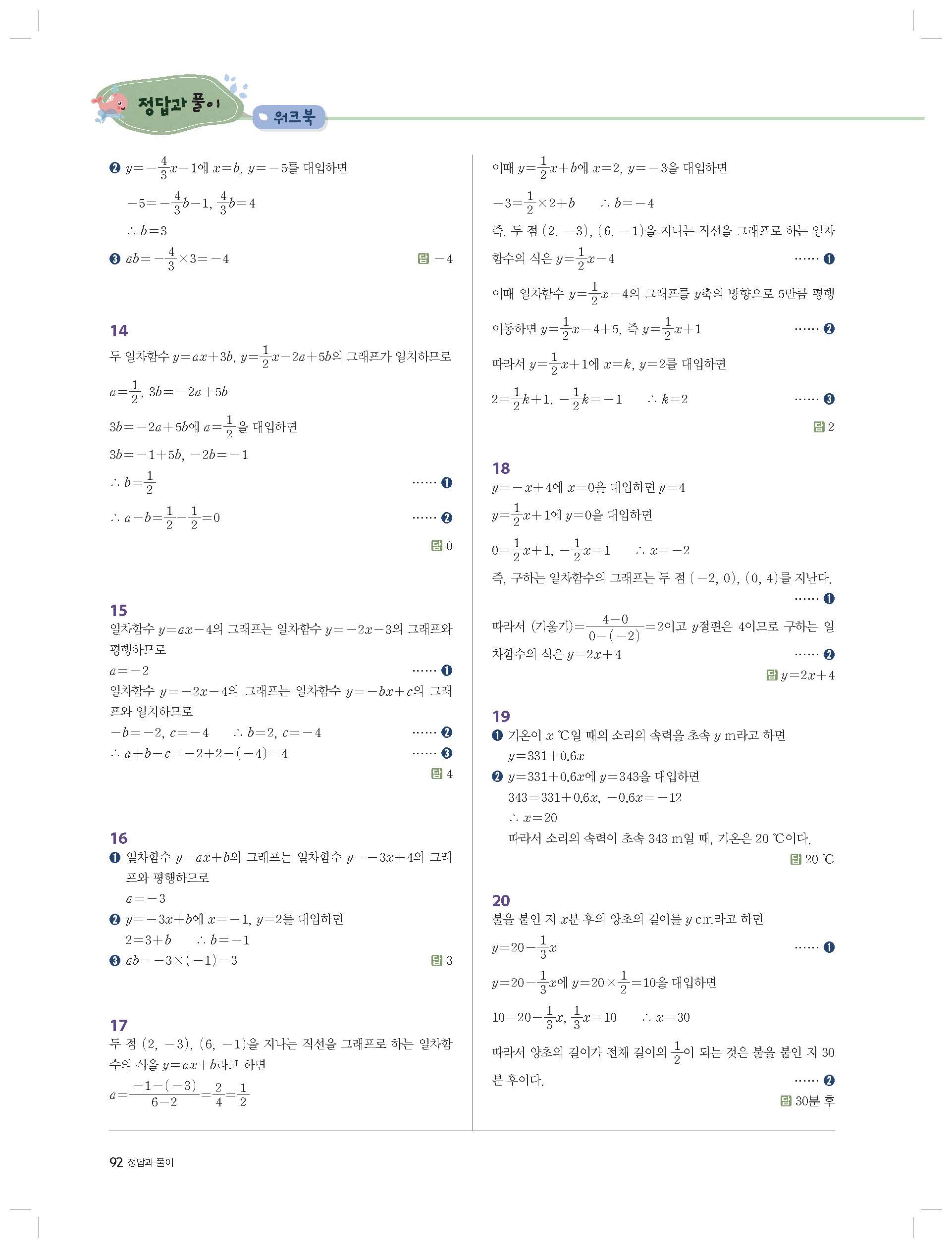 이투스 신수학의바이블 개념 중학수학2-1 답지 사진답지 빠른답지 모바일최적화