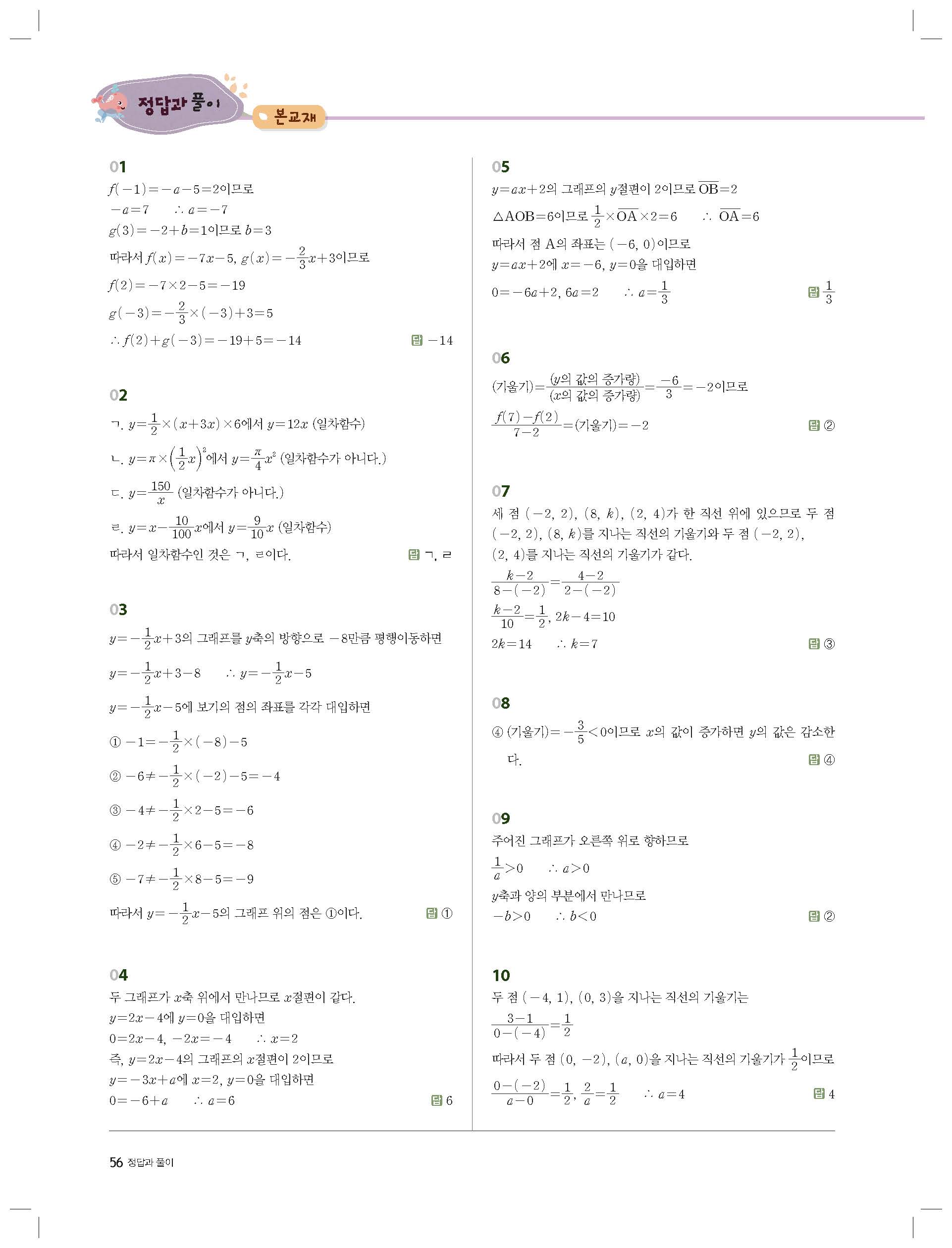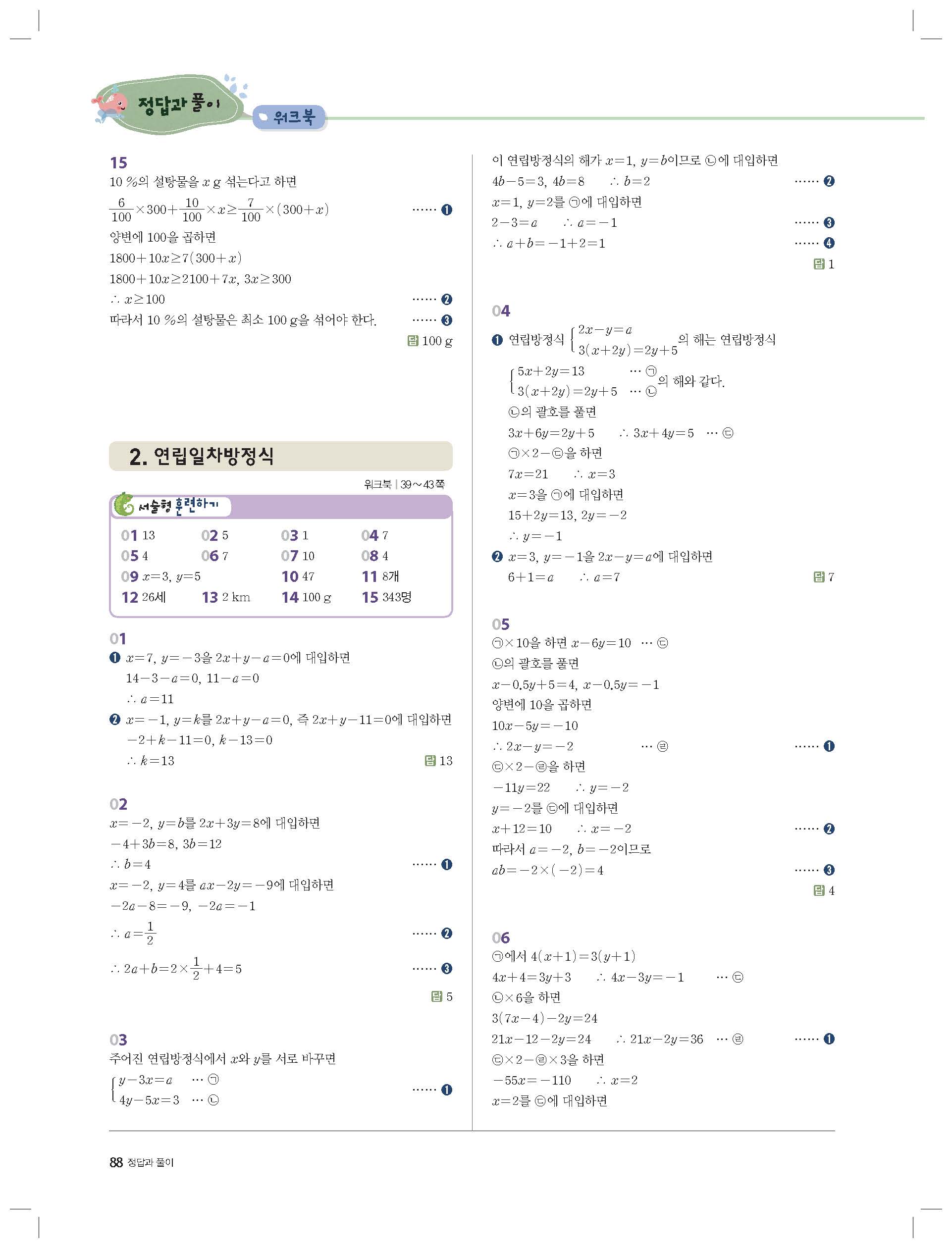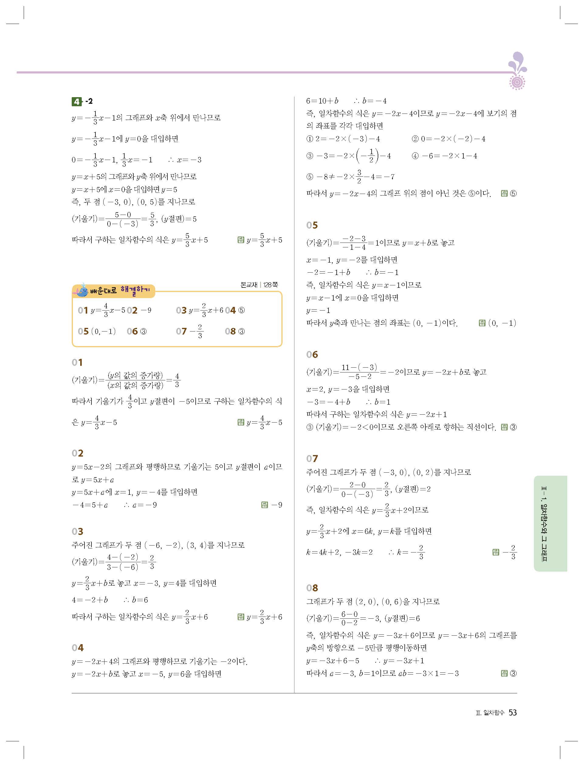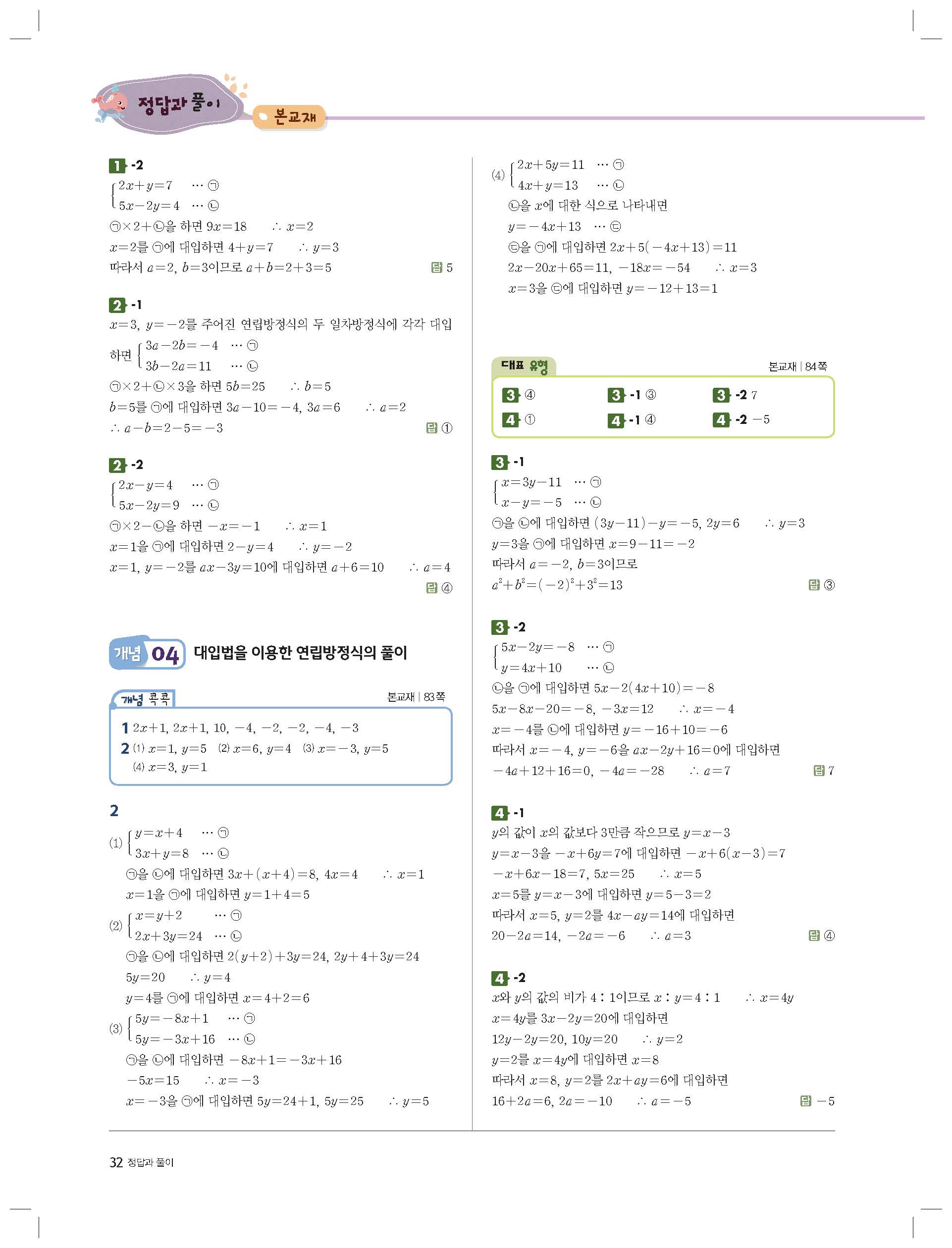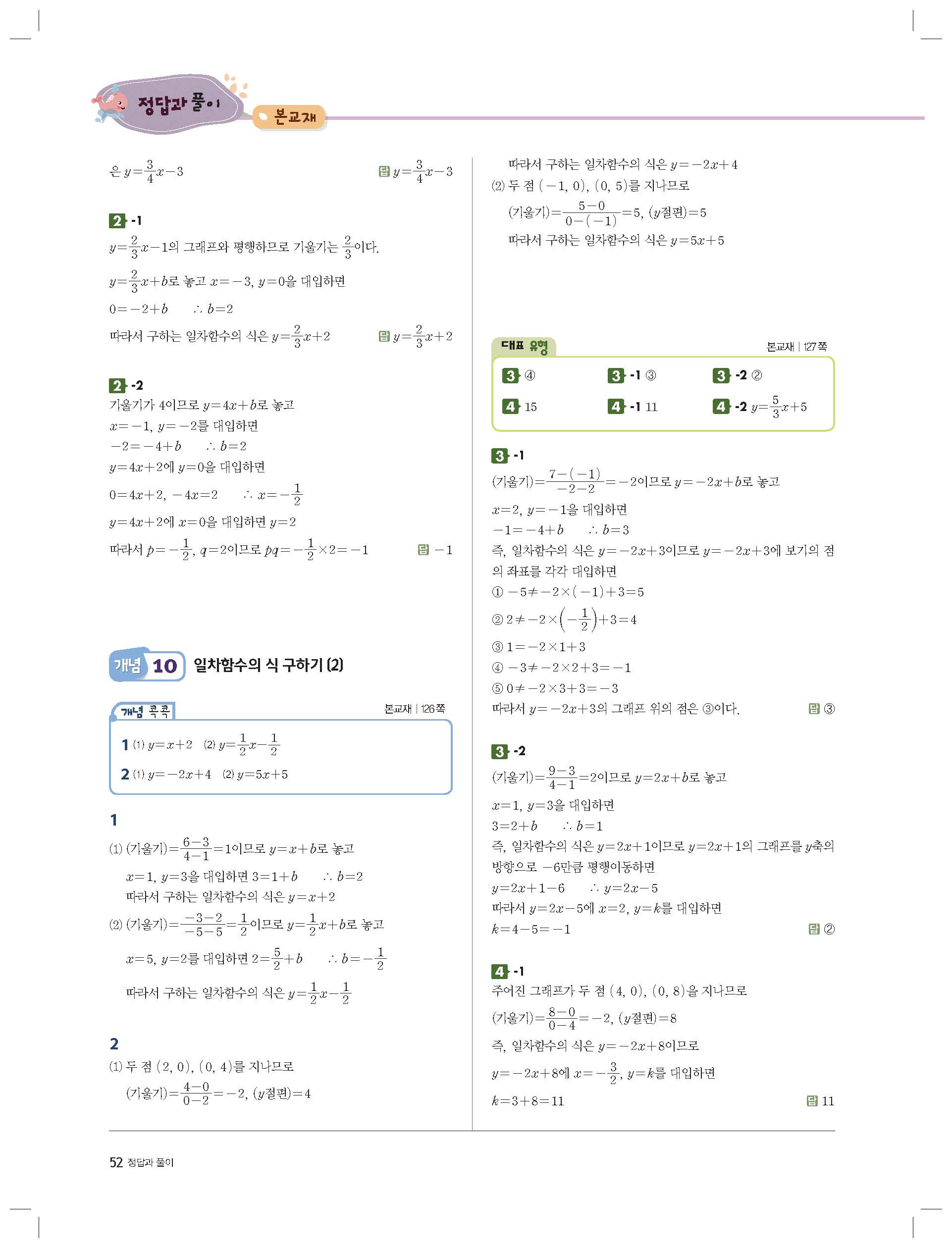 이투스 신수학의바이블 개념 중학수학2-1 답지 사진답지 빠른답지 모바일최적화