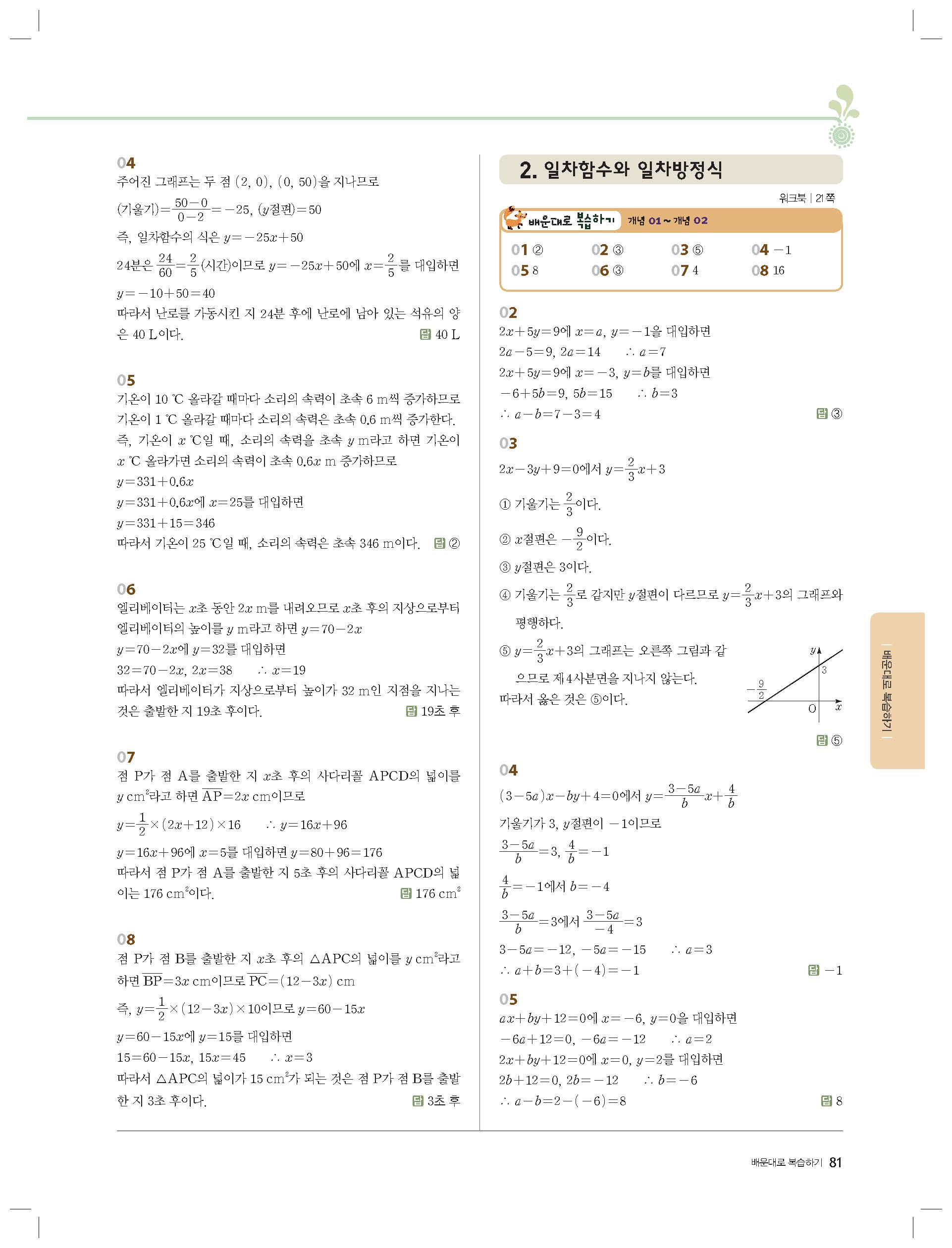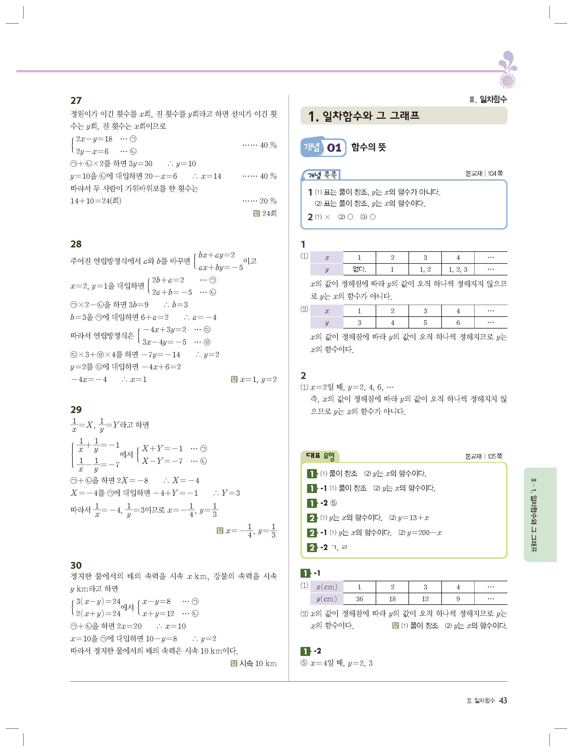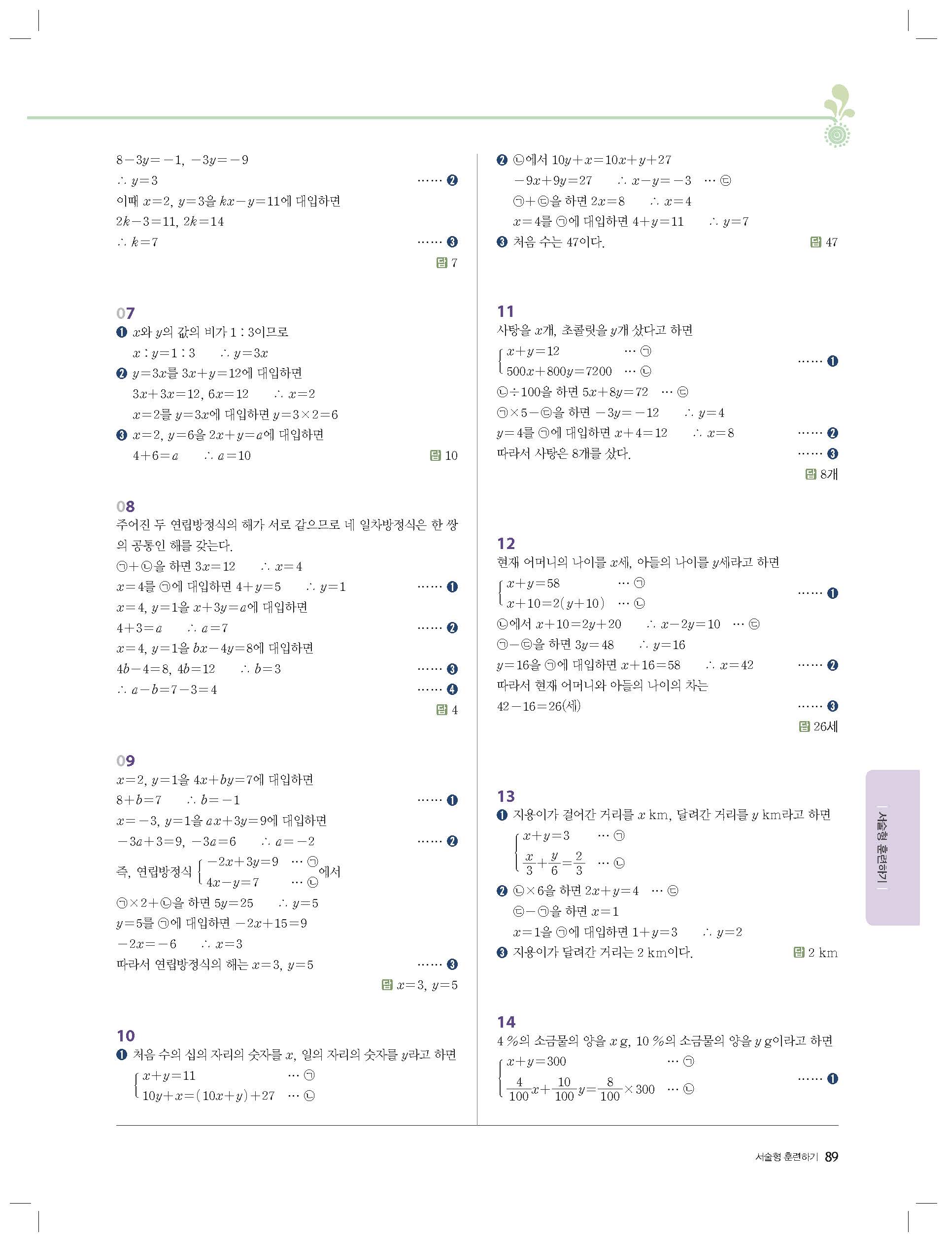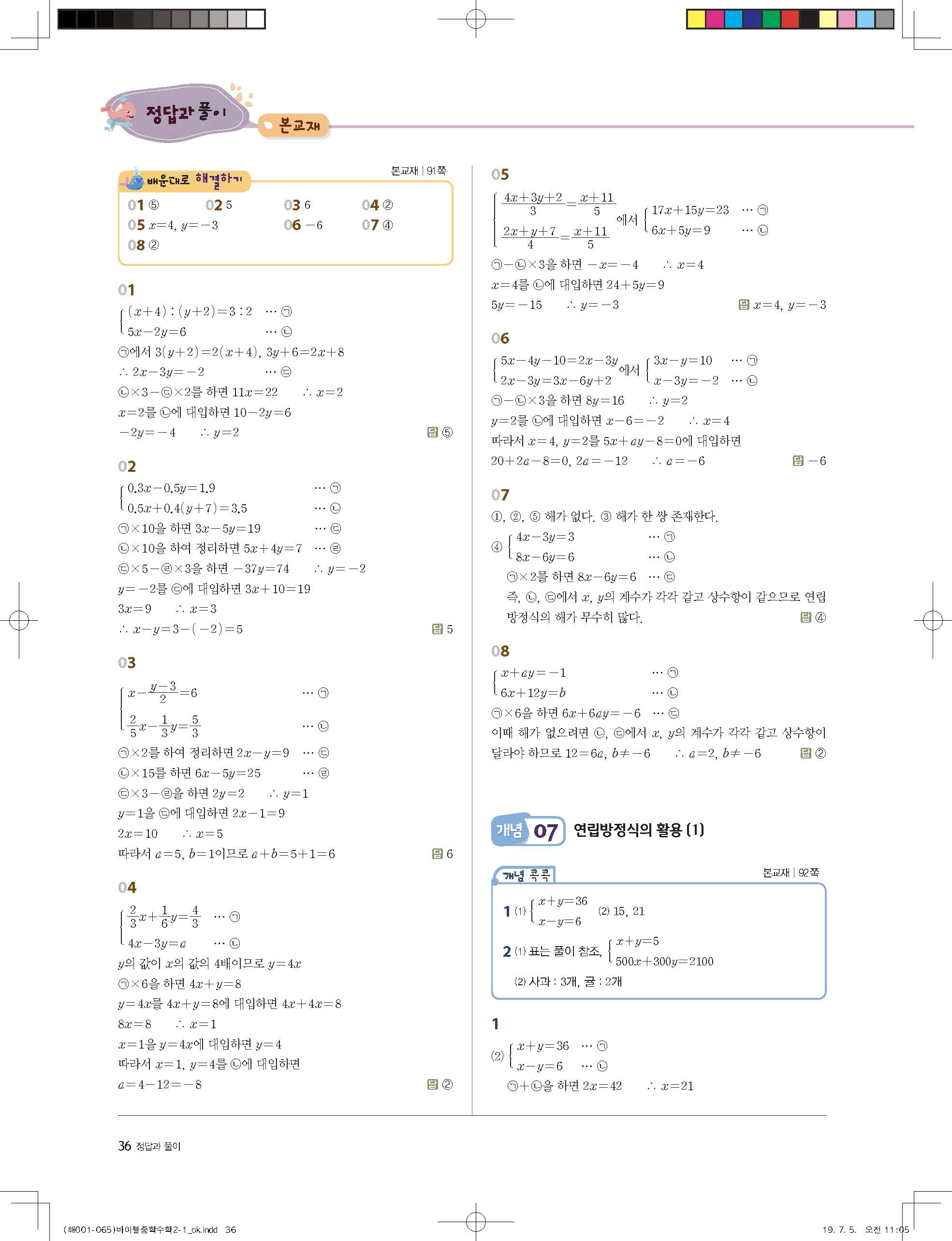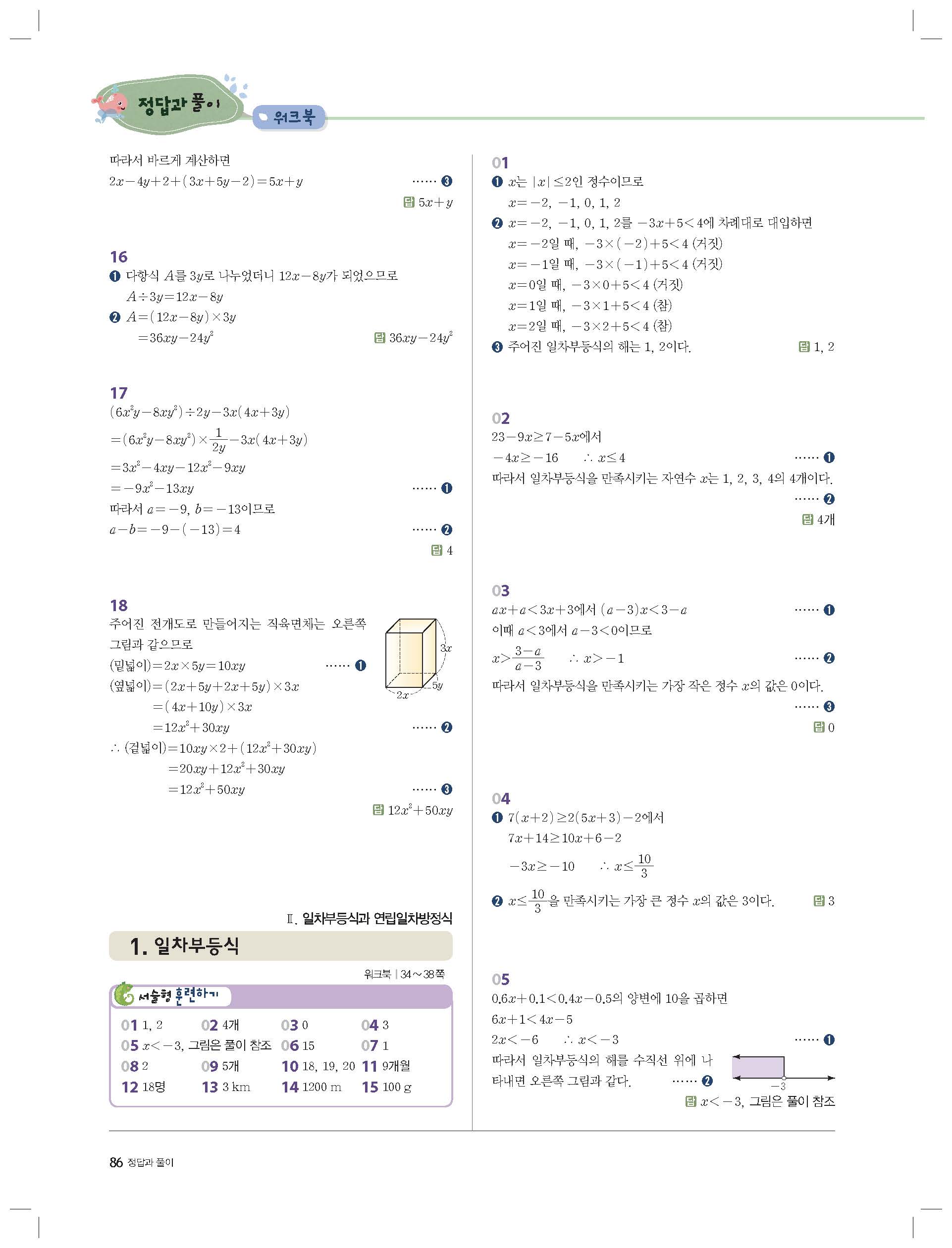 이투스 신수학의바이블 개념 중학수학2-1 답지 사진답지 빠른답지 모바일최적화