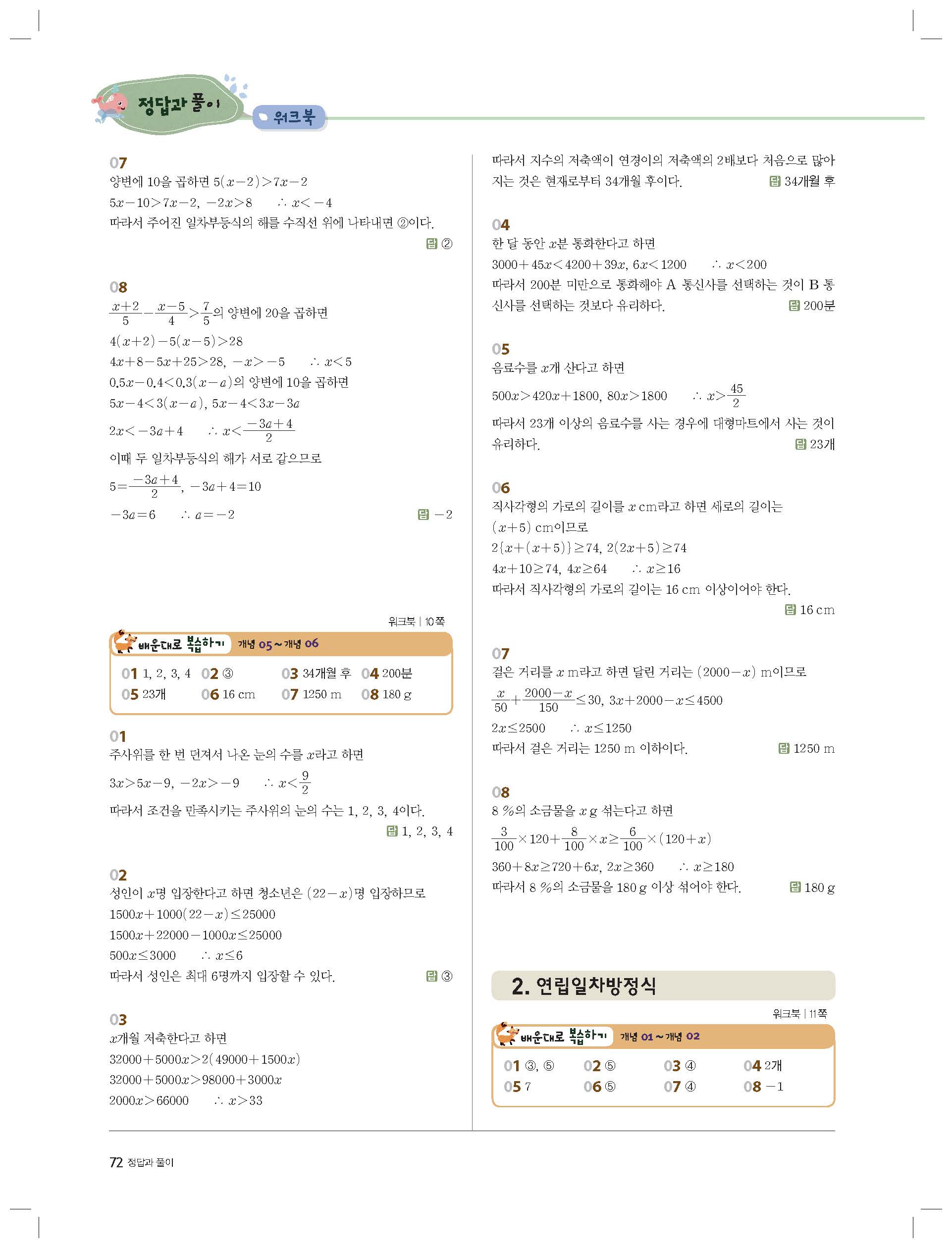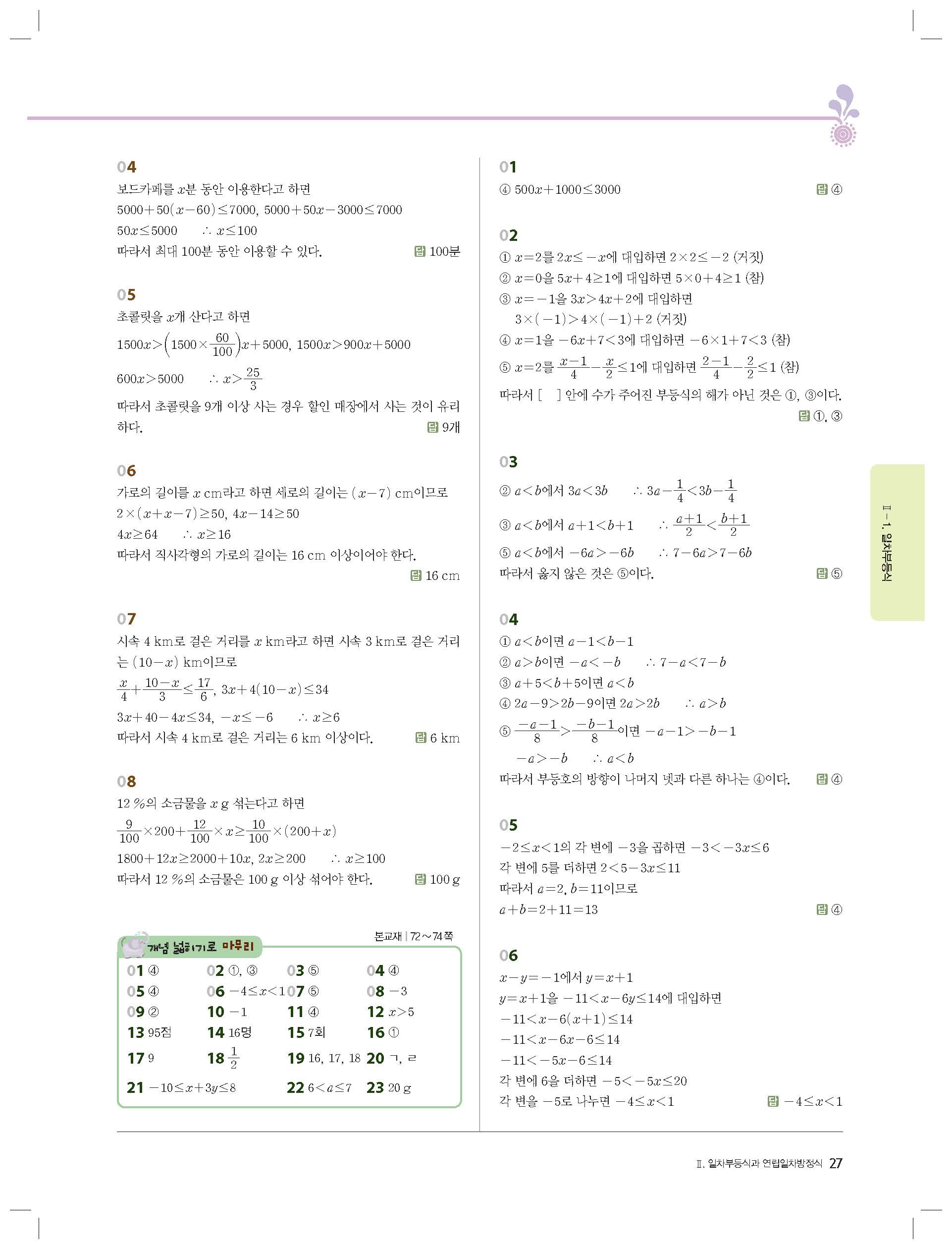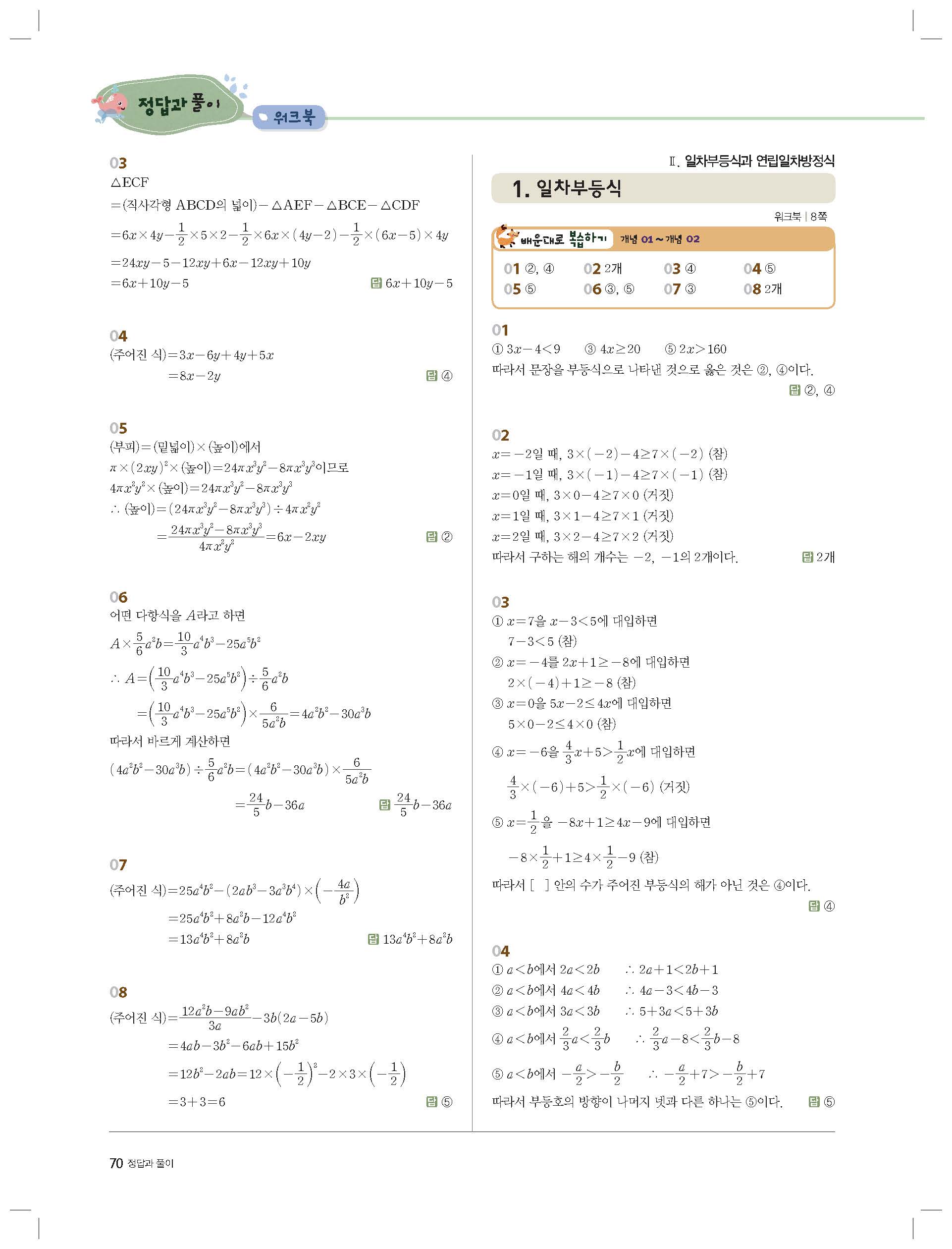 다운로드 받을필요 없이 바로 볼수 있는 모바일에 최적화된 답지 입니다