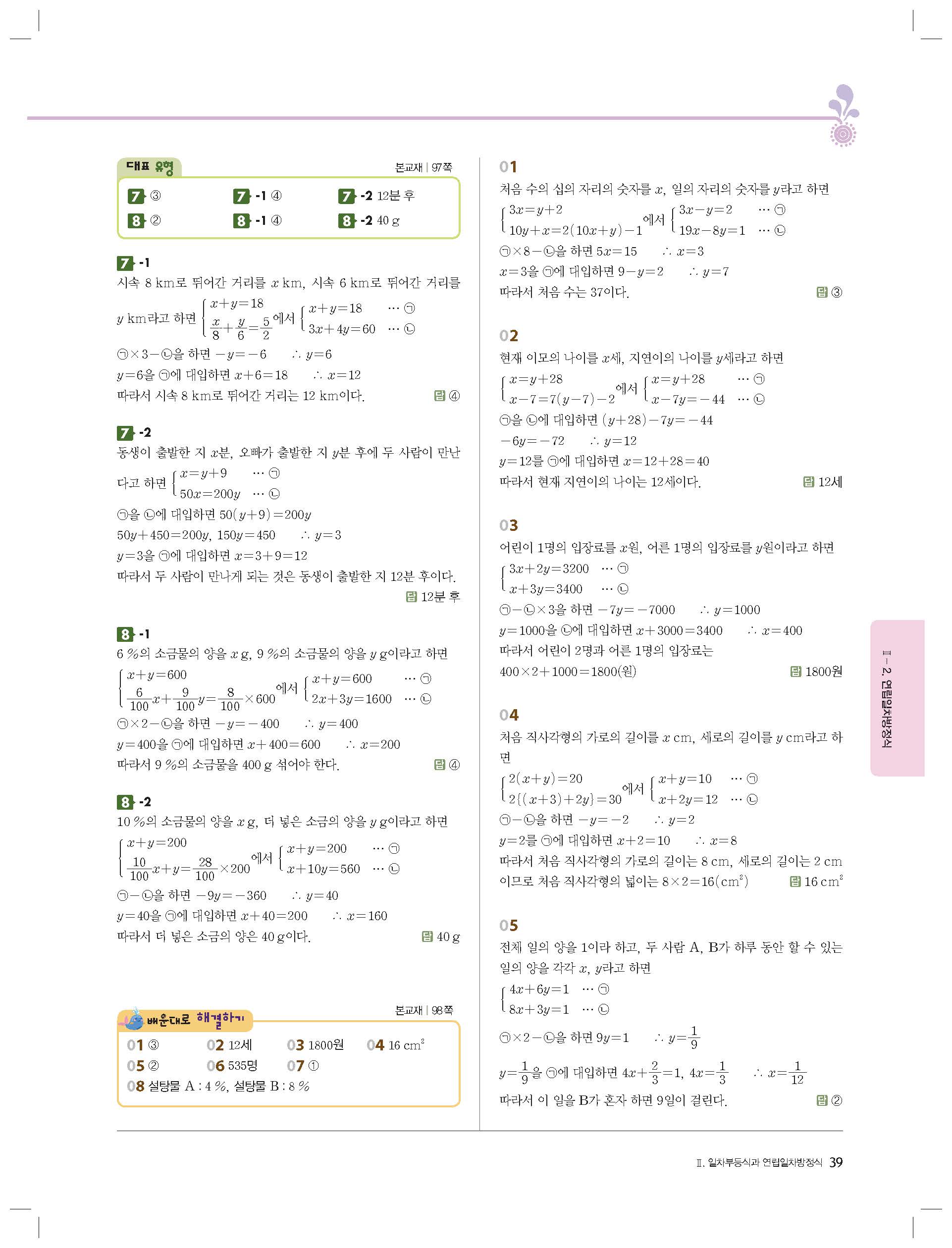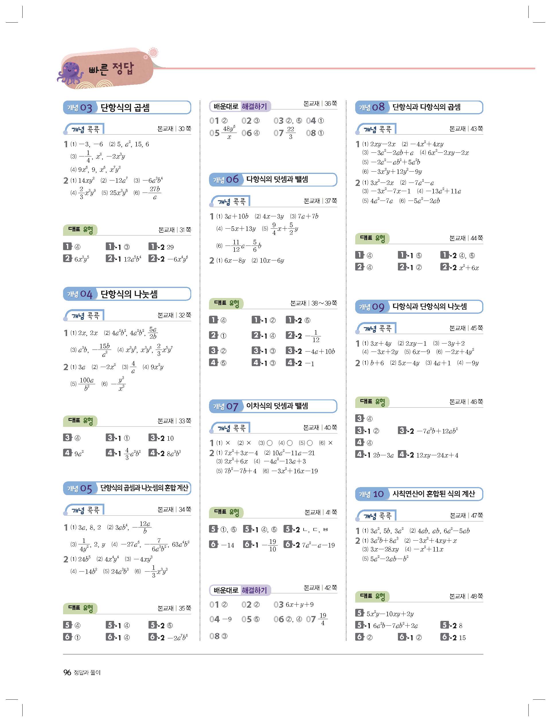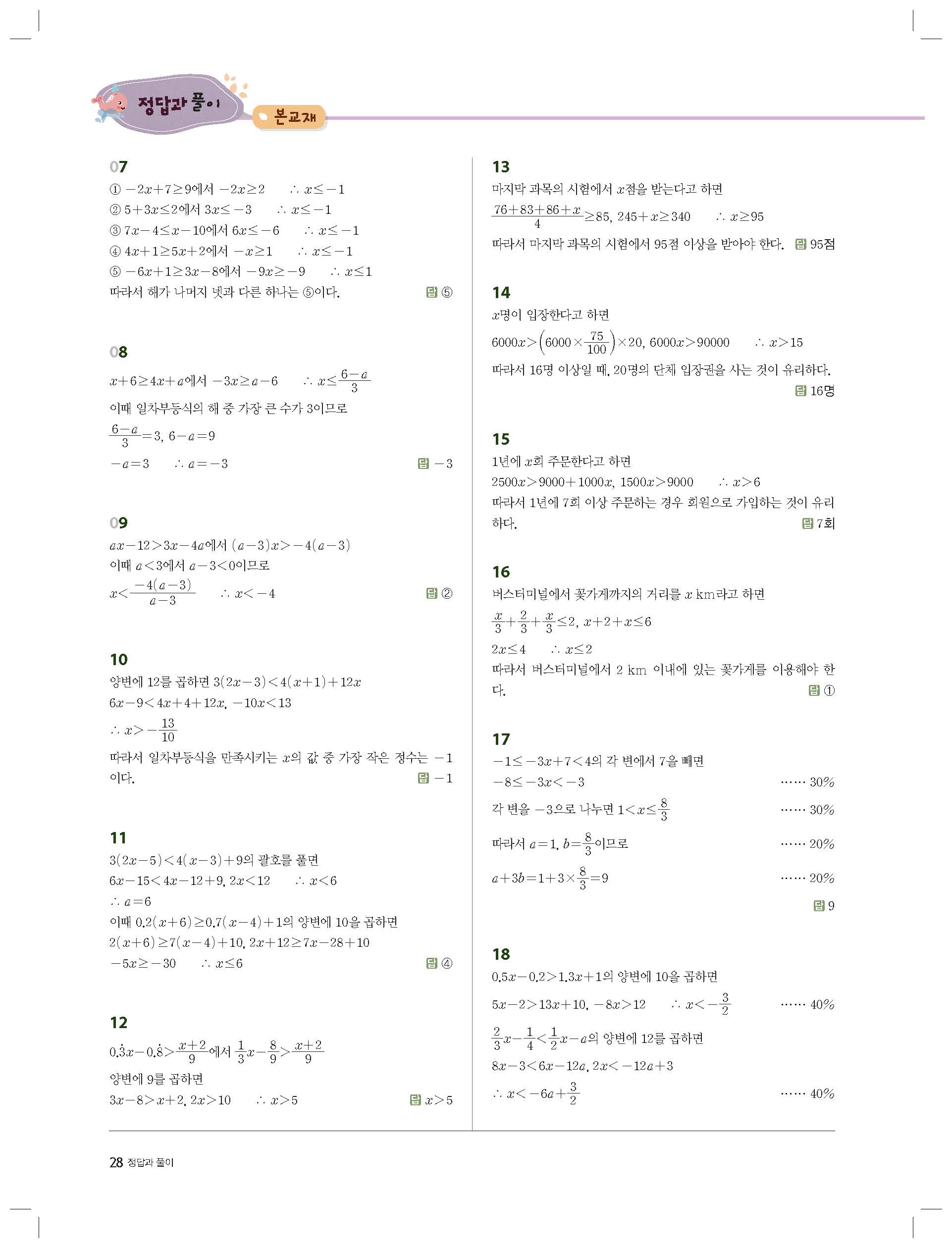 다운로드 받을필요 없이 바로 볼수 있는 모바일에 최적화된 답지 입니다