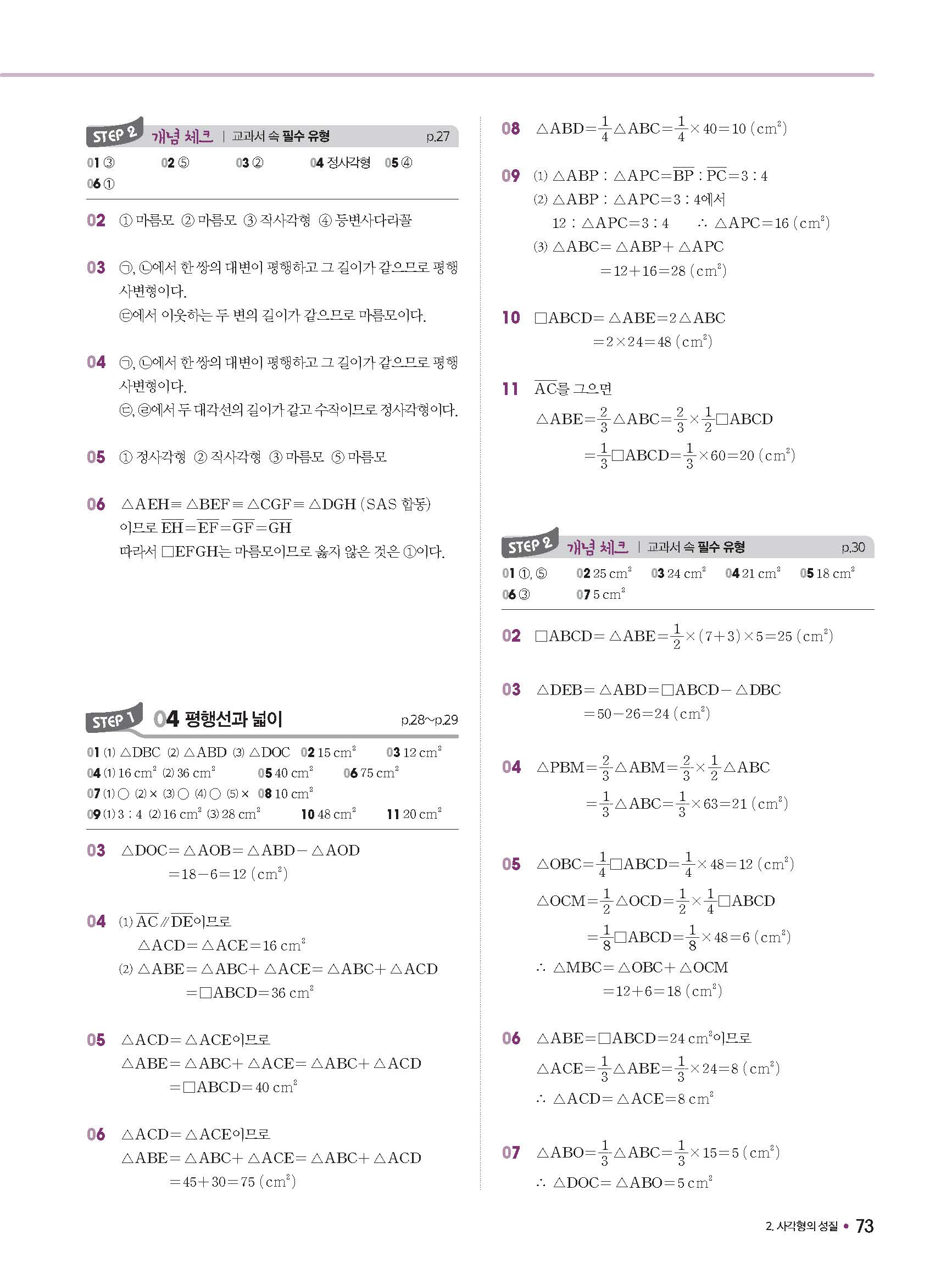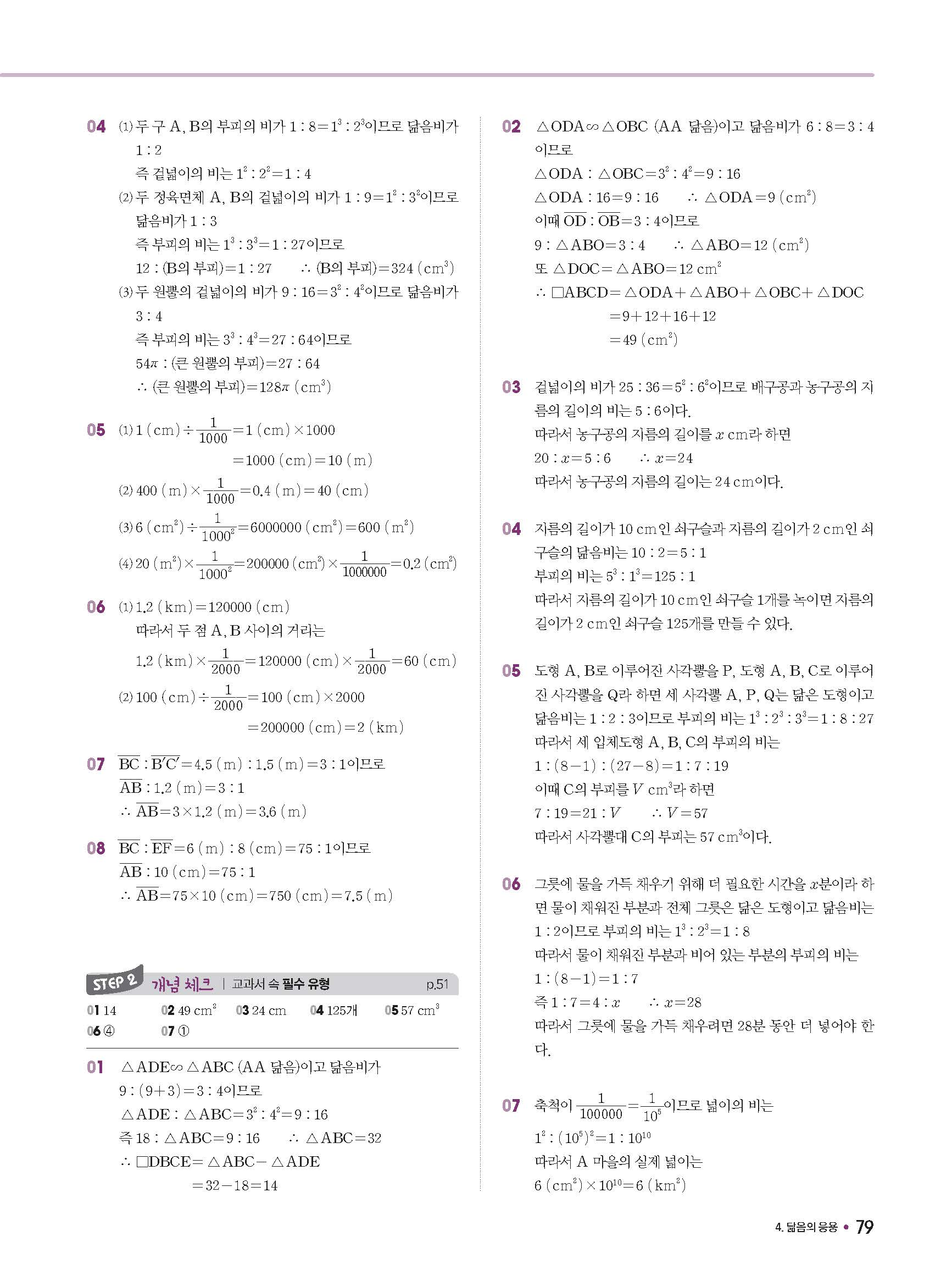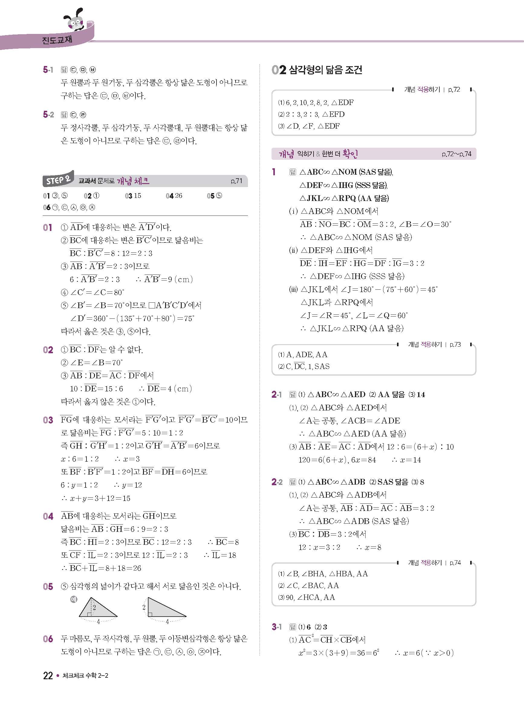 체크체크 중등수학 중2하 2-2 답지 해설 사진답지 빠른답지 모바일최적화