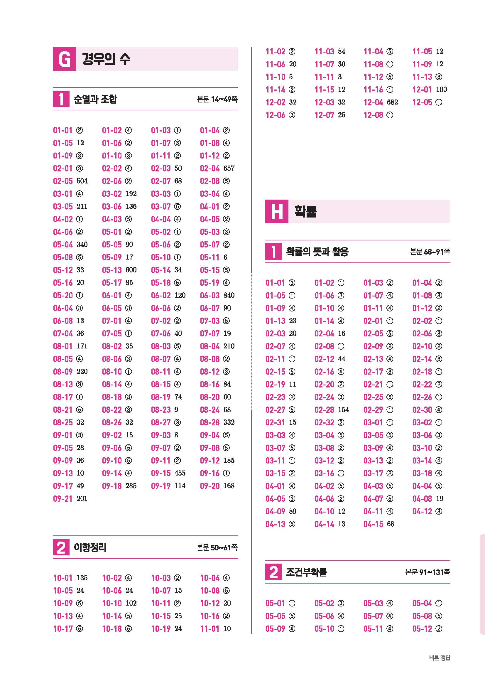 For 2022 너기출 확률과통계 답지 사진답지 빠른답지 모바일최적화