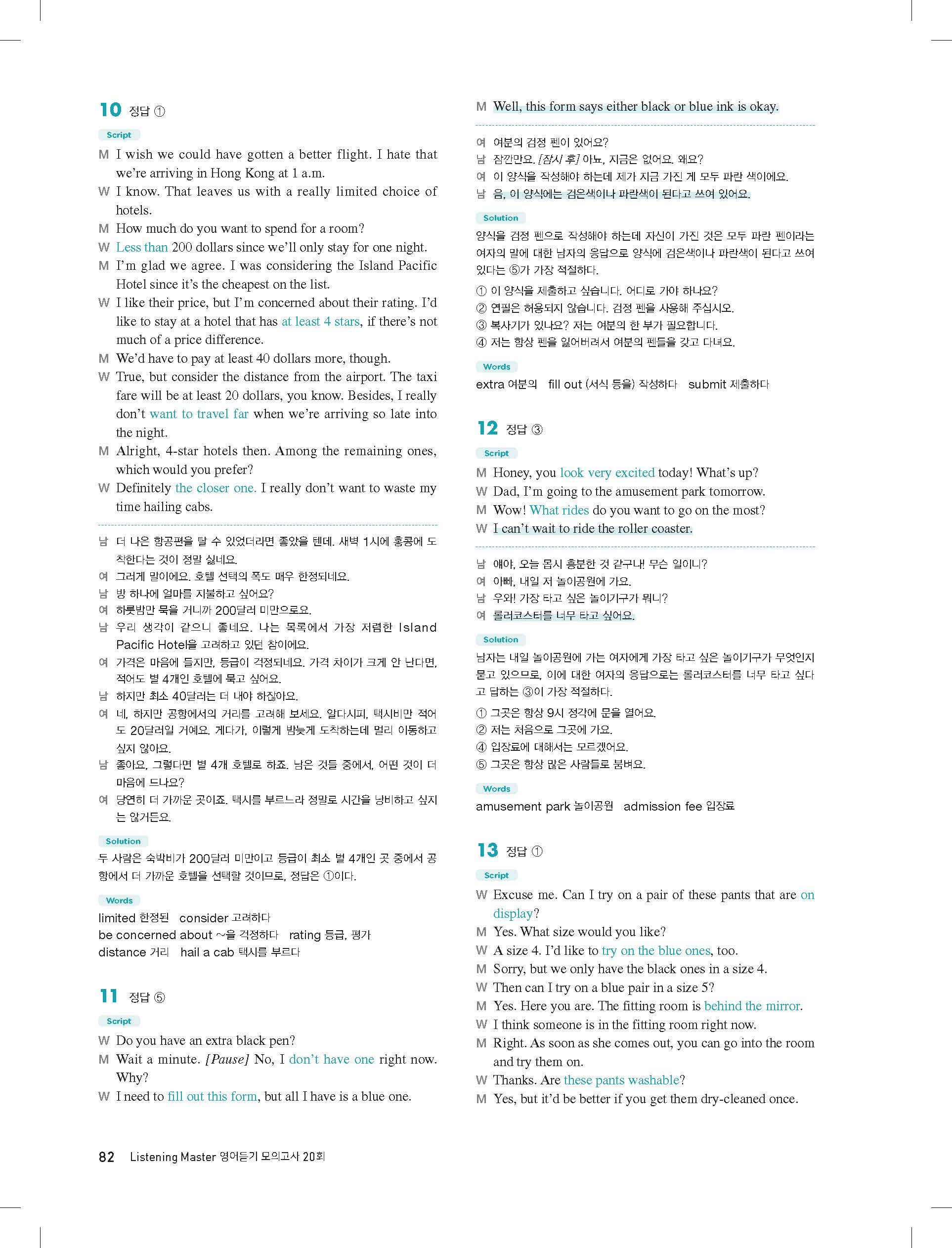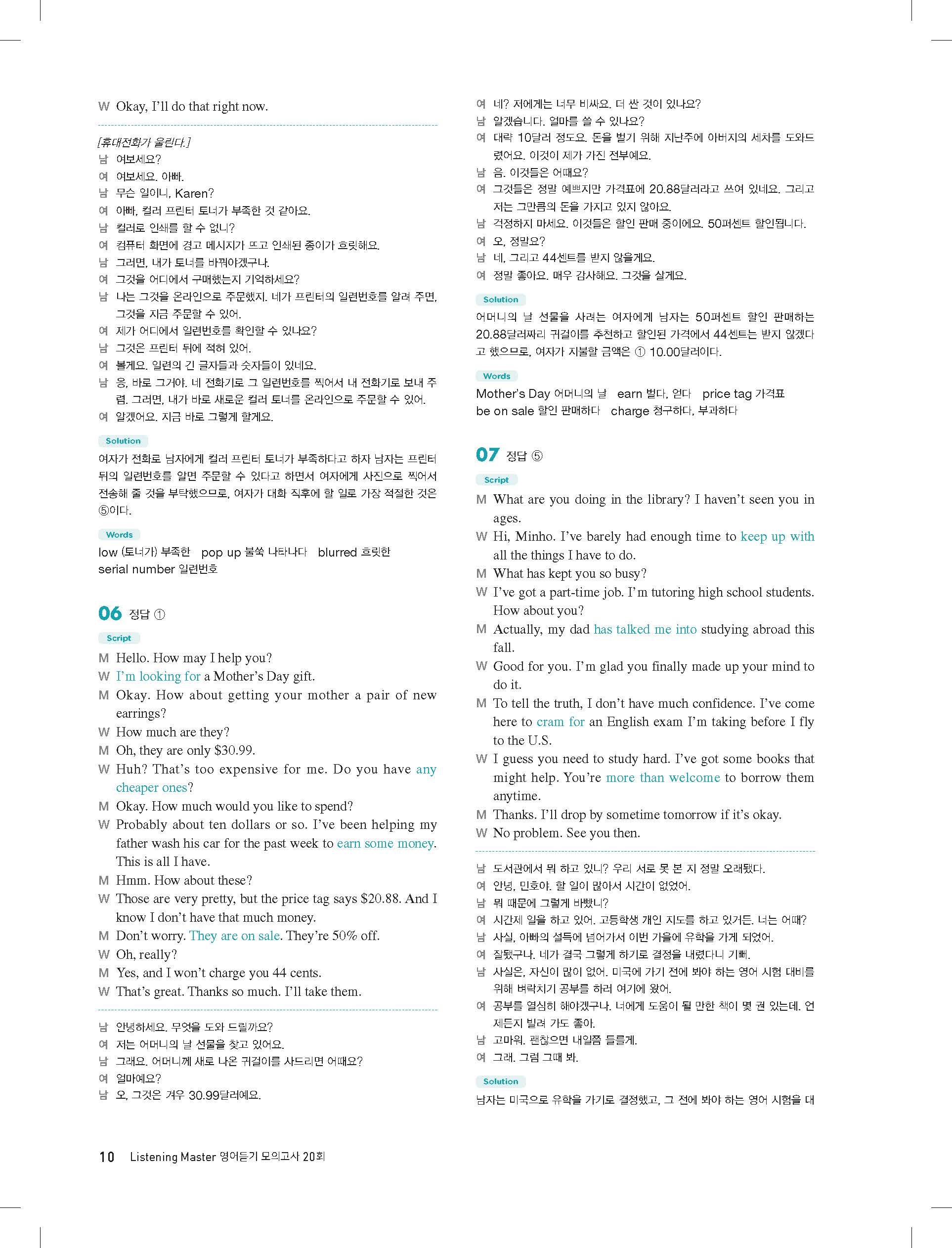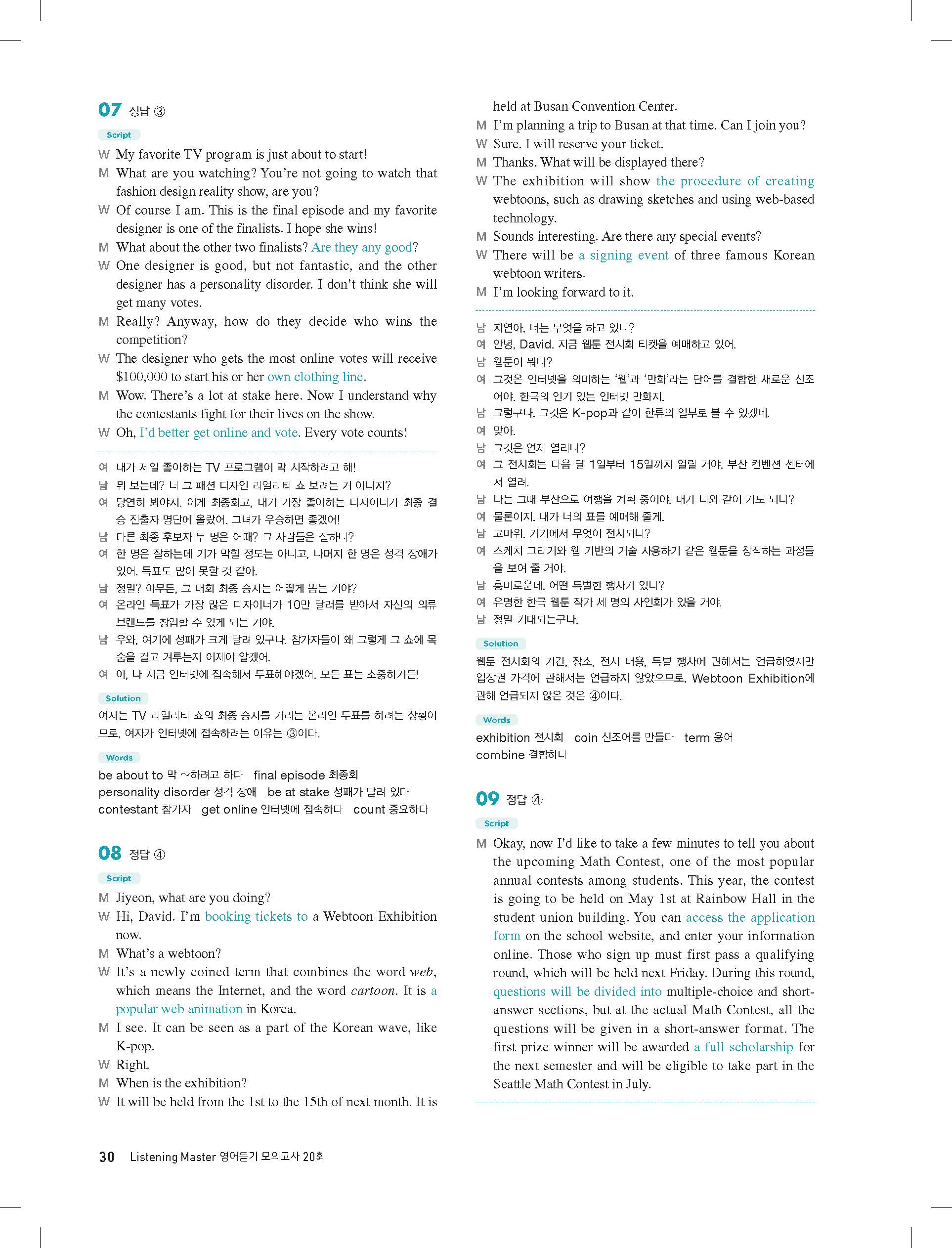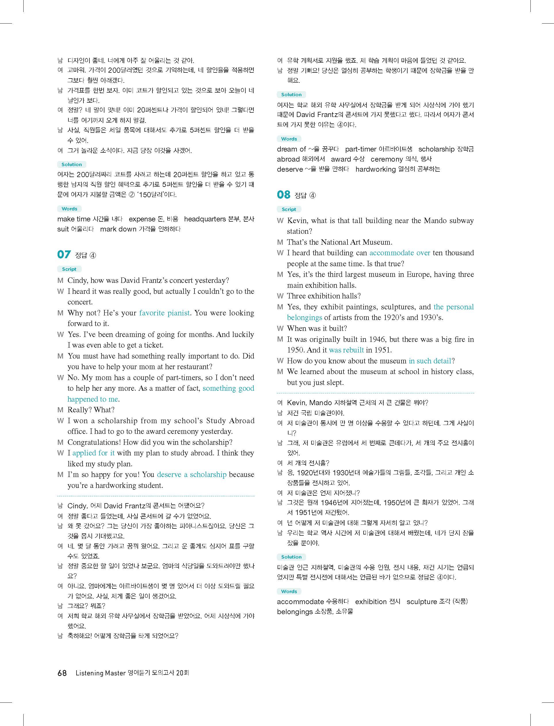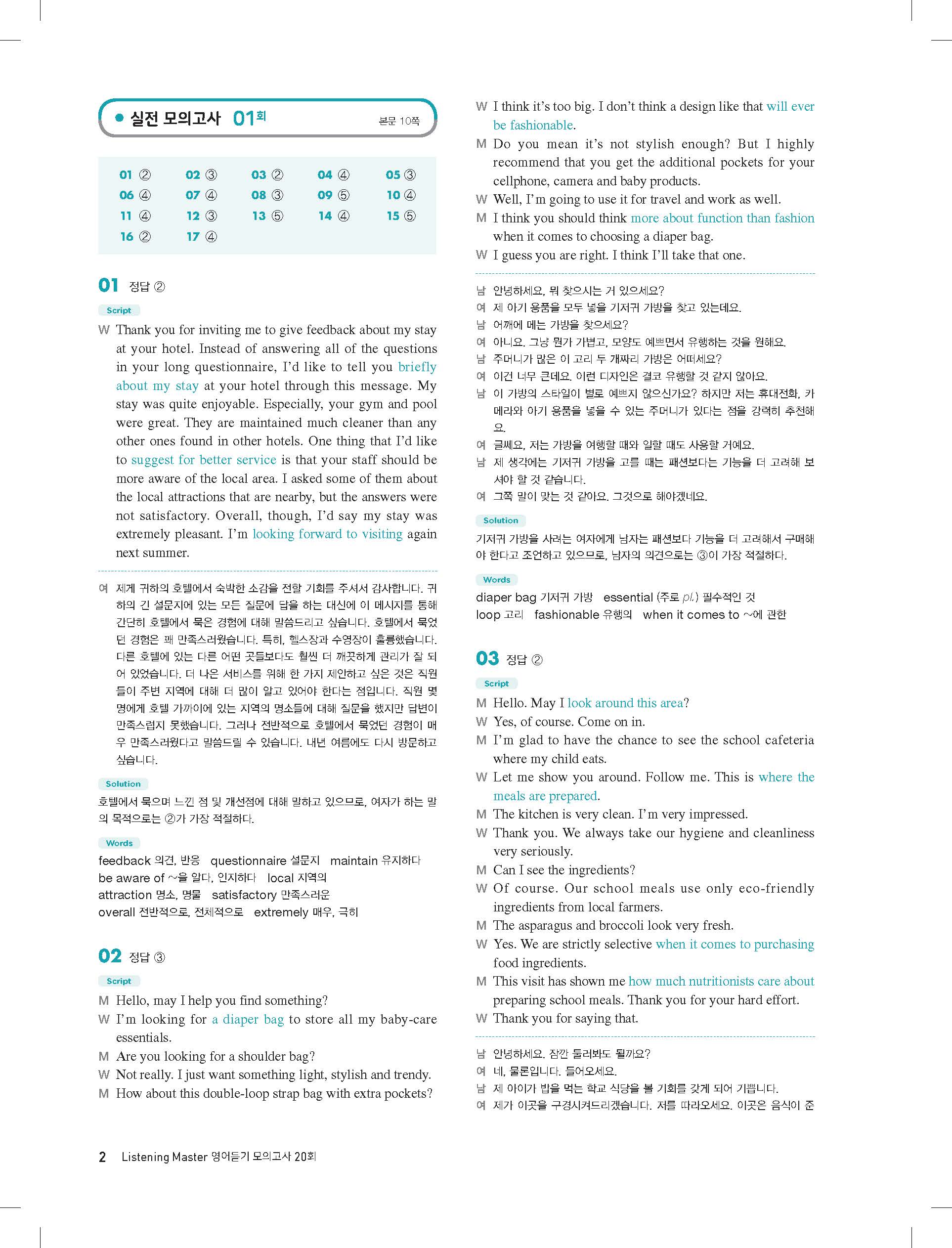 리스닝마스터 영어듣기 모의고사 20회 이투스 답지 사진답지 빠른답지 모바일최적화