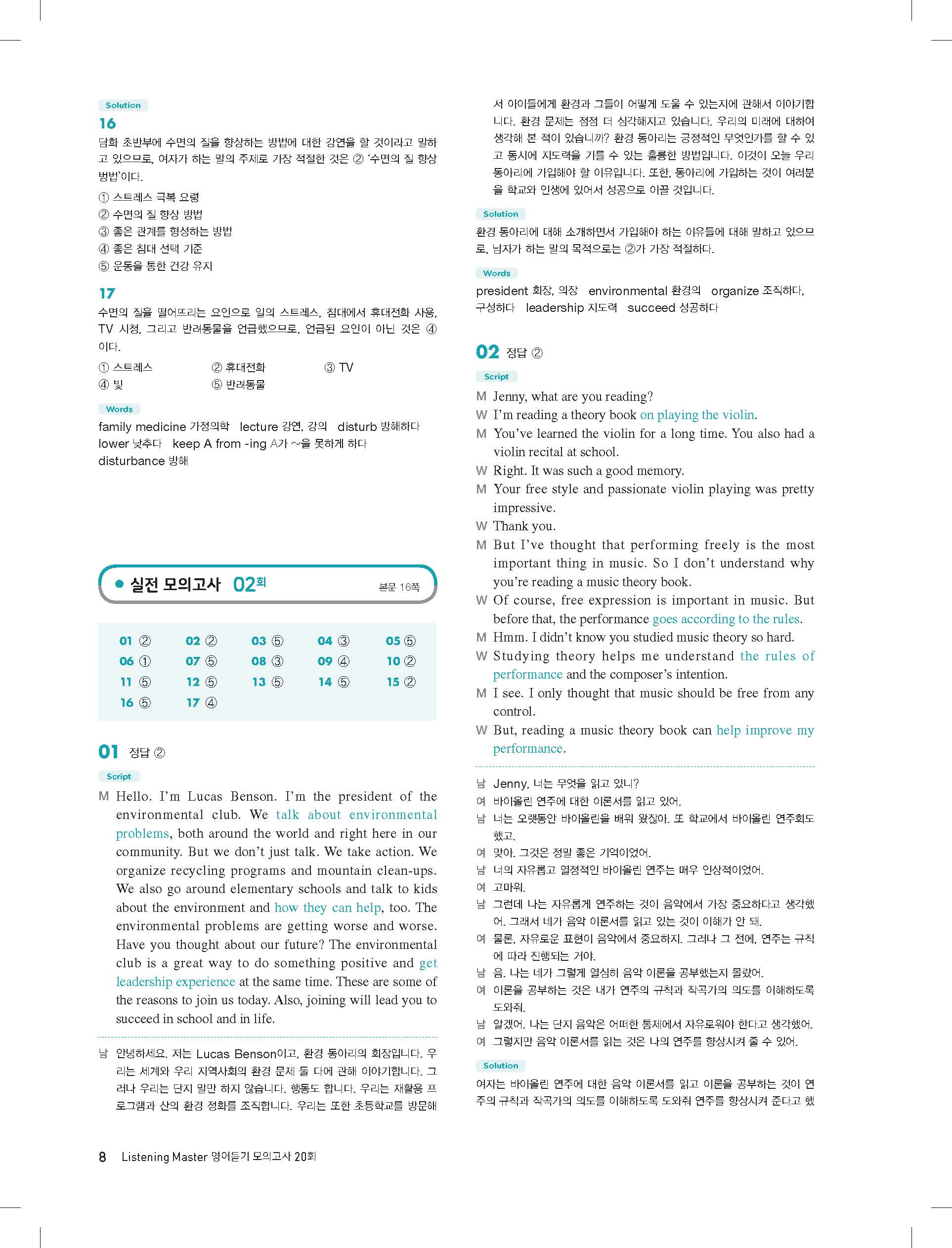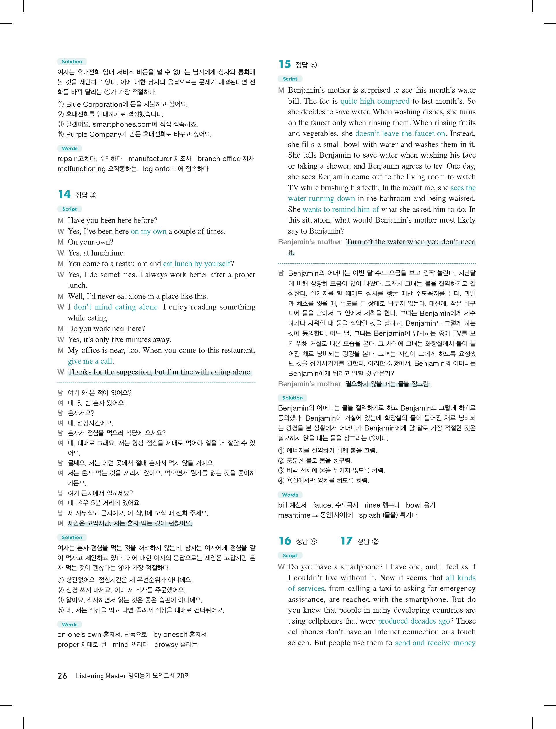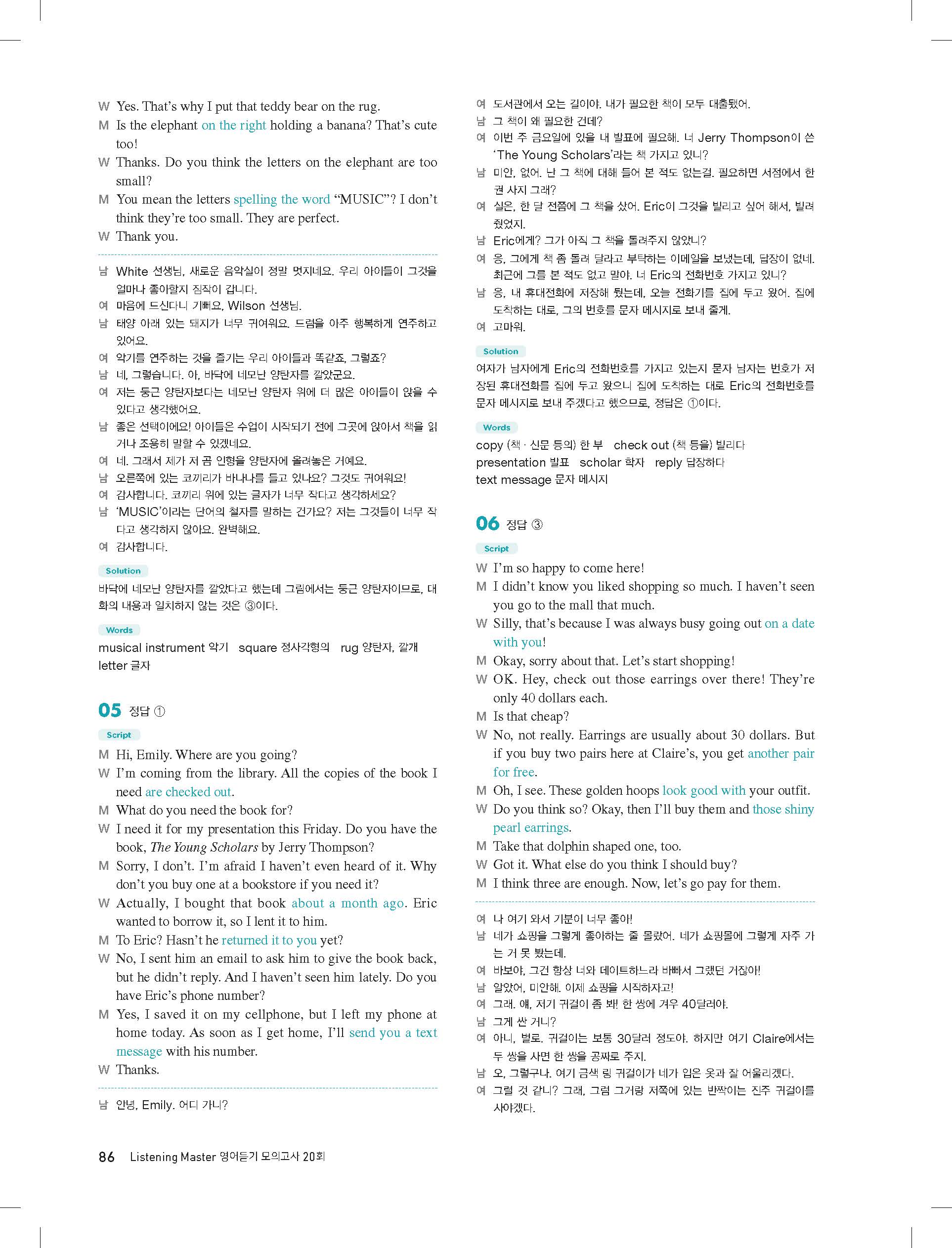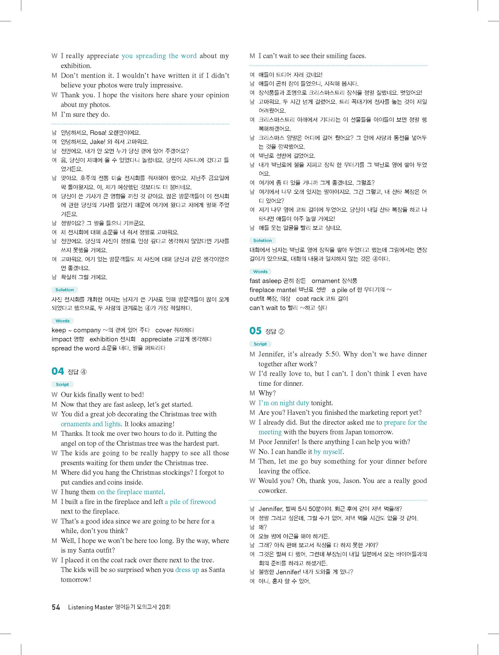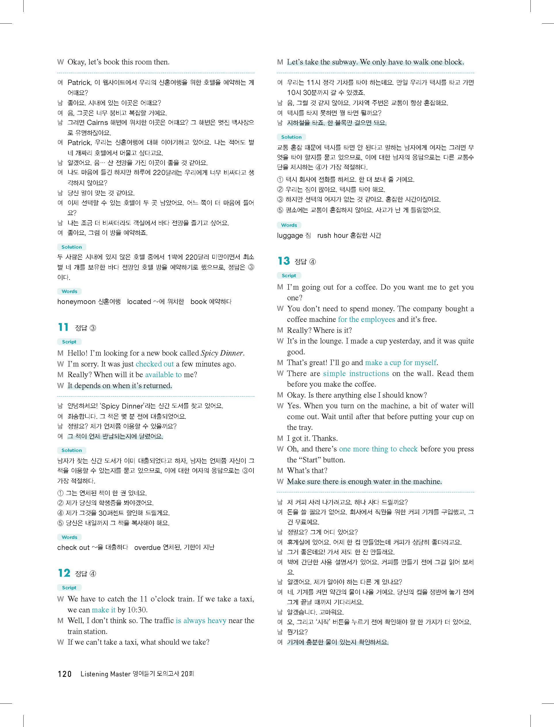 리스닝마스터 영어듣기 모의고사 20회 이투스 답지 사진답지 빠른답지 모바일최적화