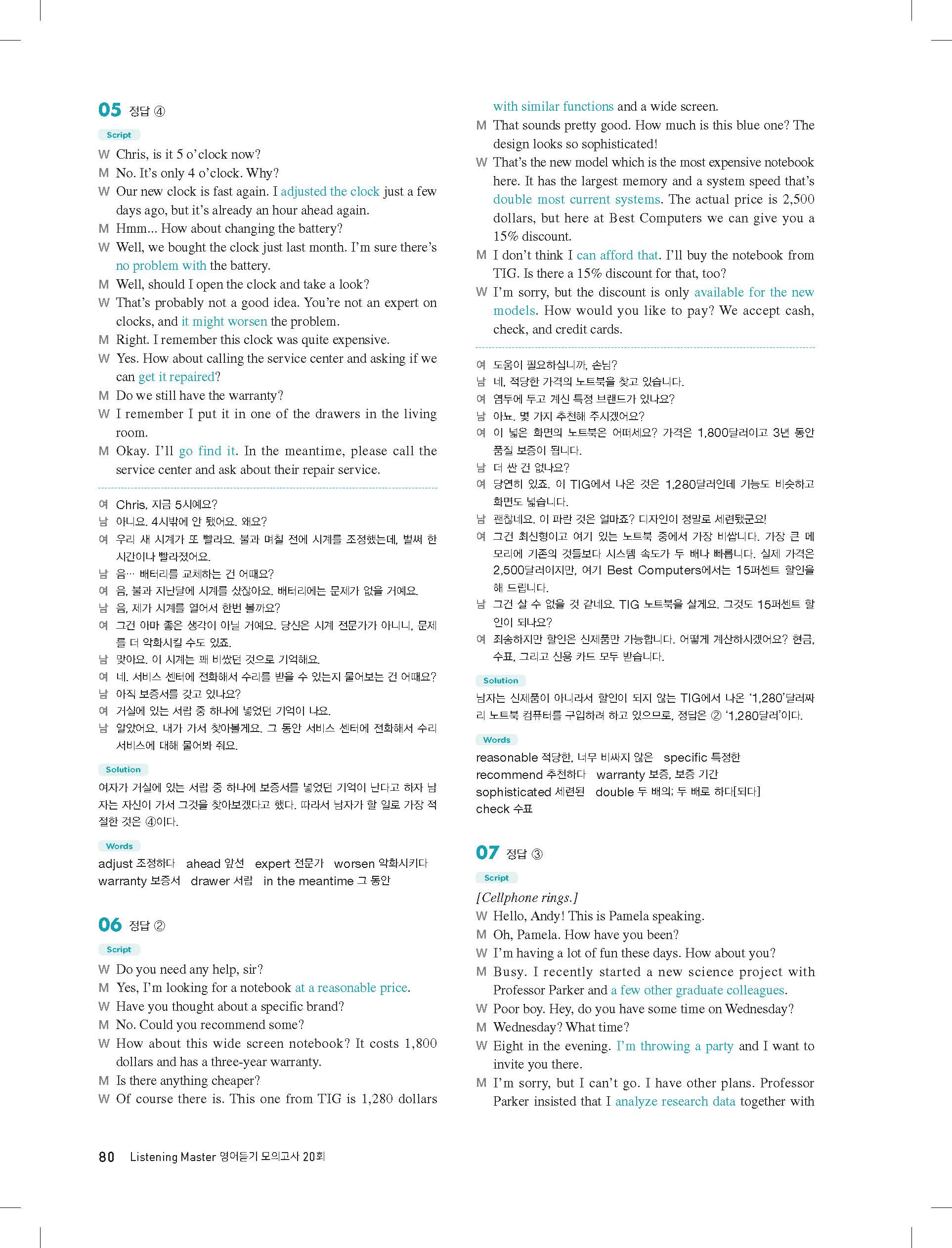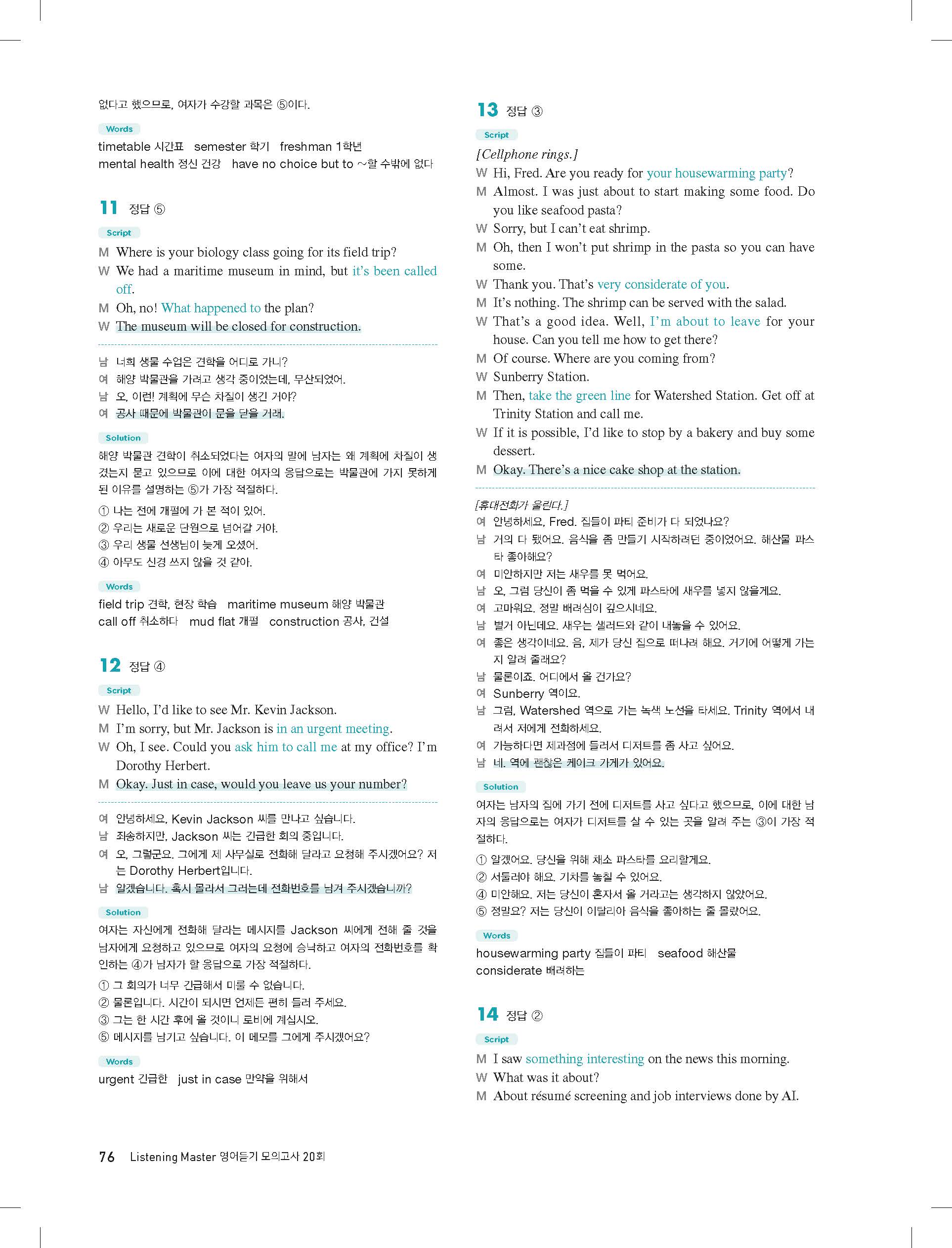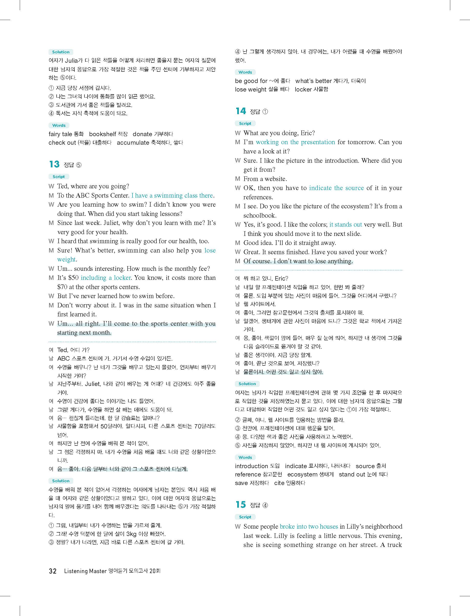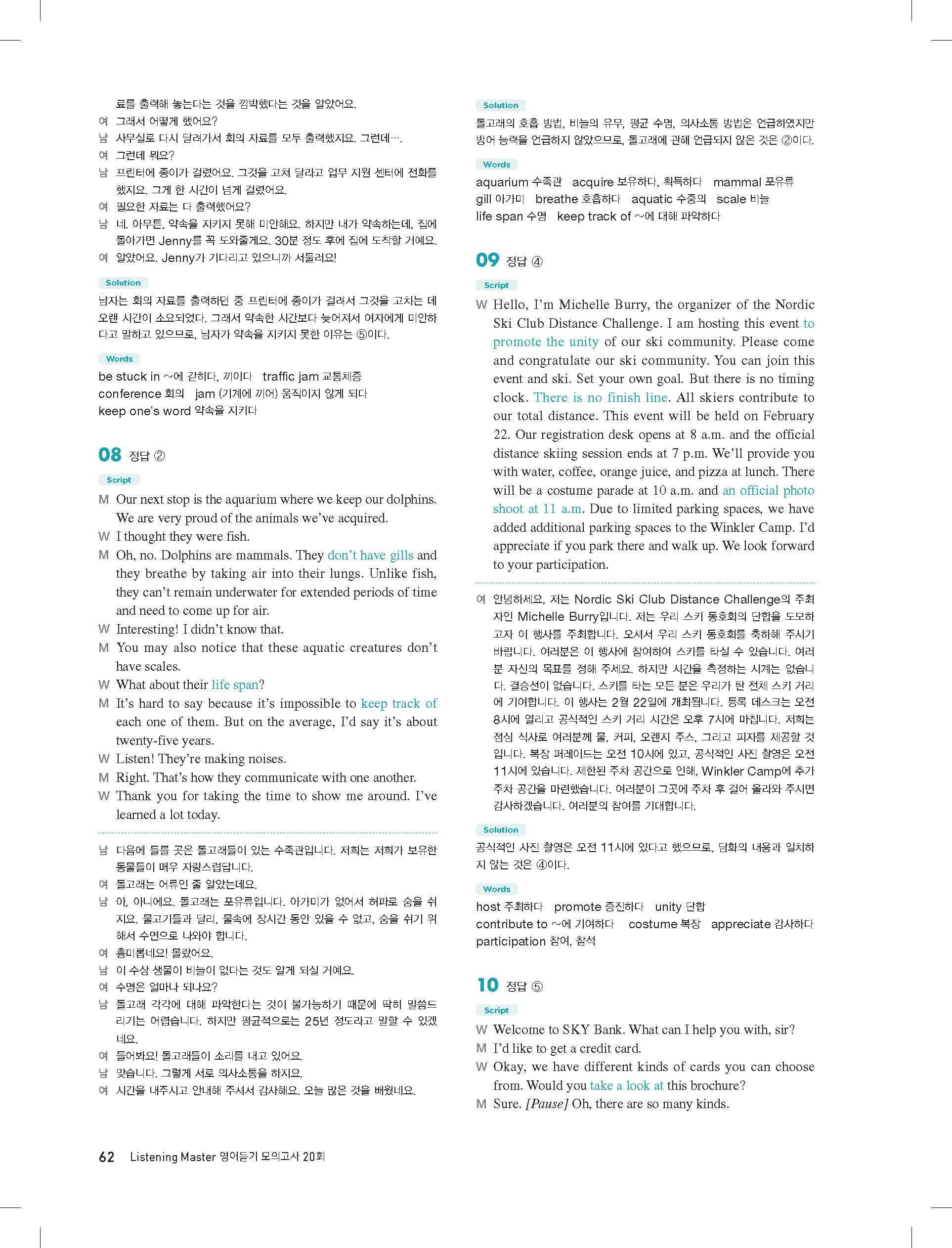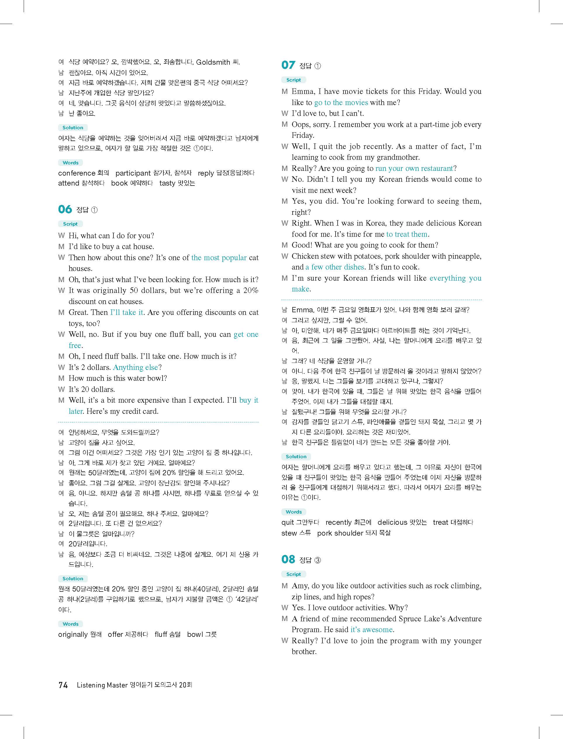 리스닝마스터 영어듣기 모의고사 20회 이투스 답지 사진답지 빠른답지 모바일최적화